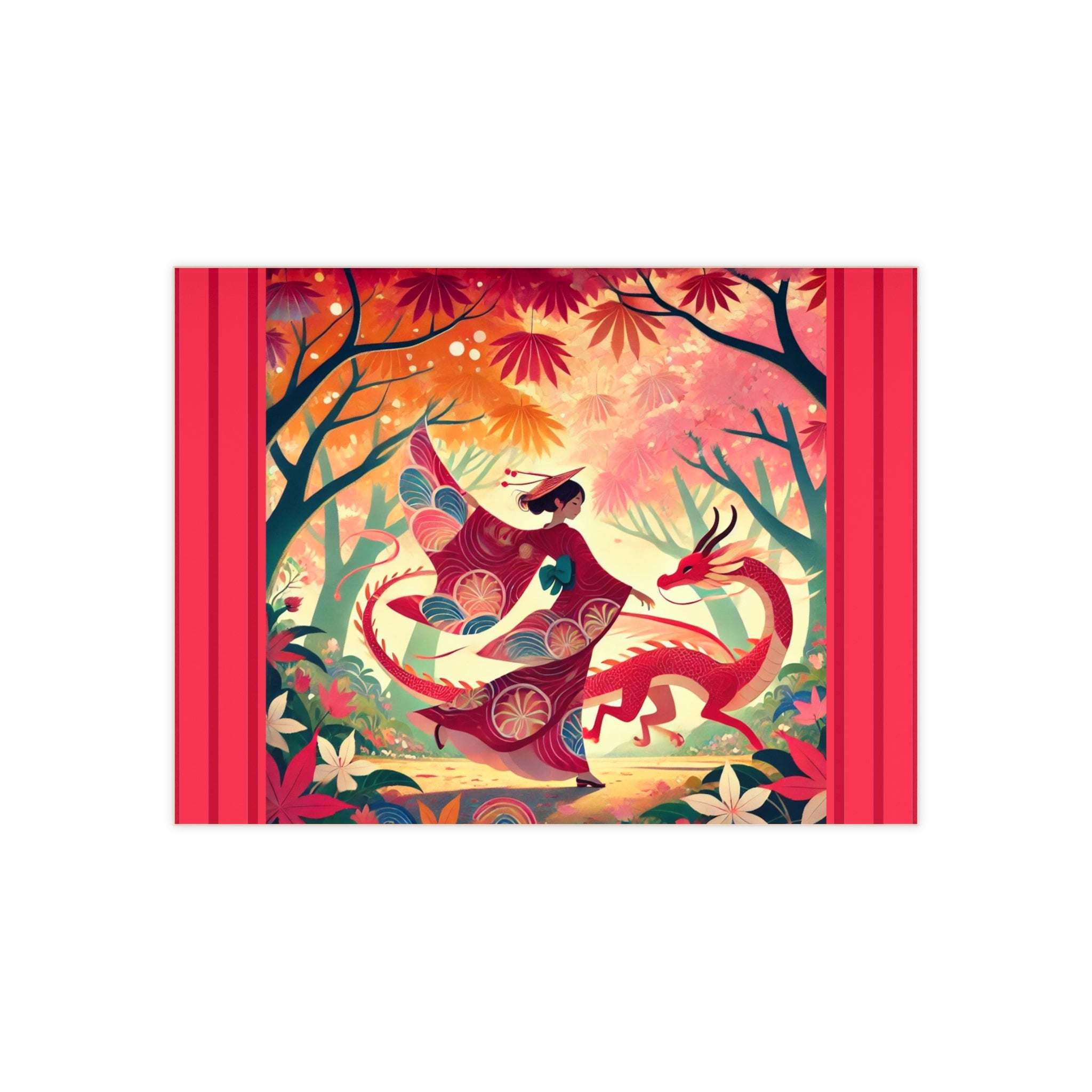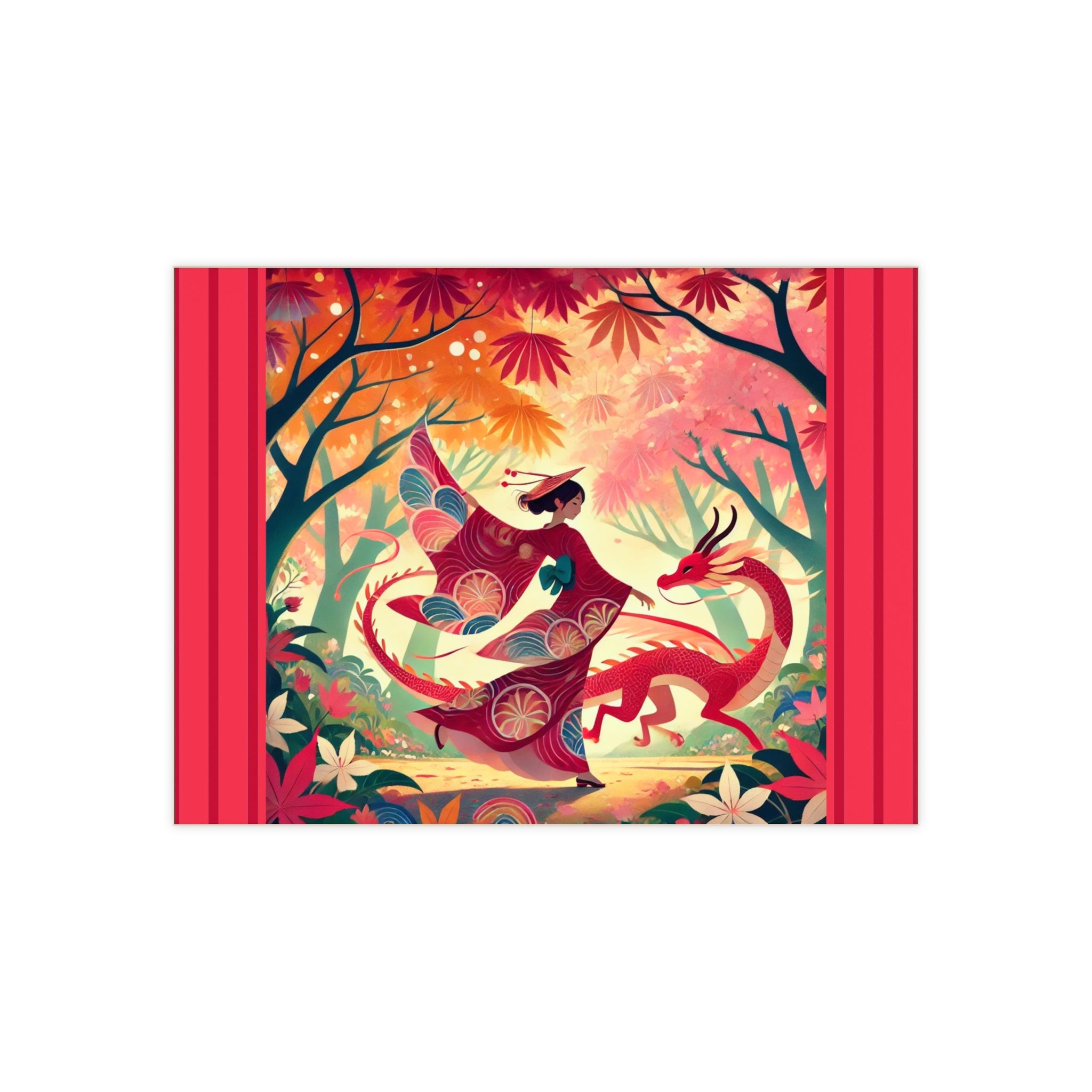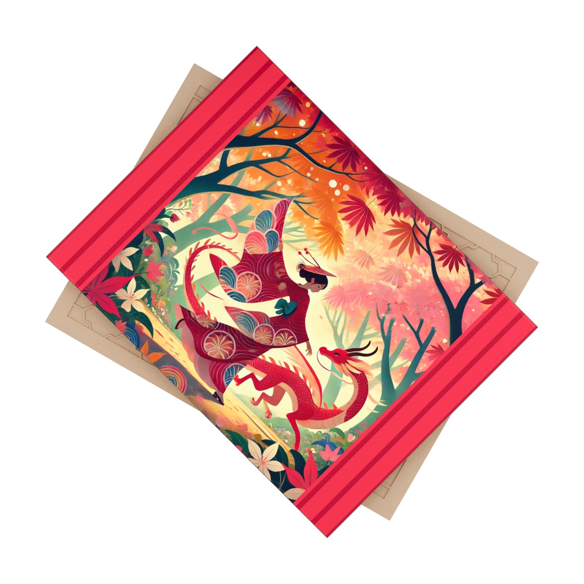 This exquisite ceramic tile features an enchanting illustration of a modern dragon fairy and her red dragon companion dancing through a grove of vibrant spring maples. The design captures the magic and energy of the season, making it a perfect accent piece for any room. Ideal for those who love fantasy art and mythical creatures, this tile is great for decorating during springtime, or as a unique gift for a myth lover.