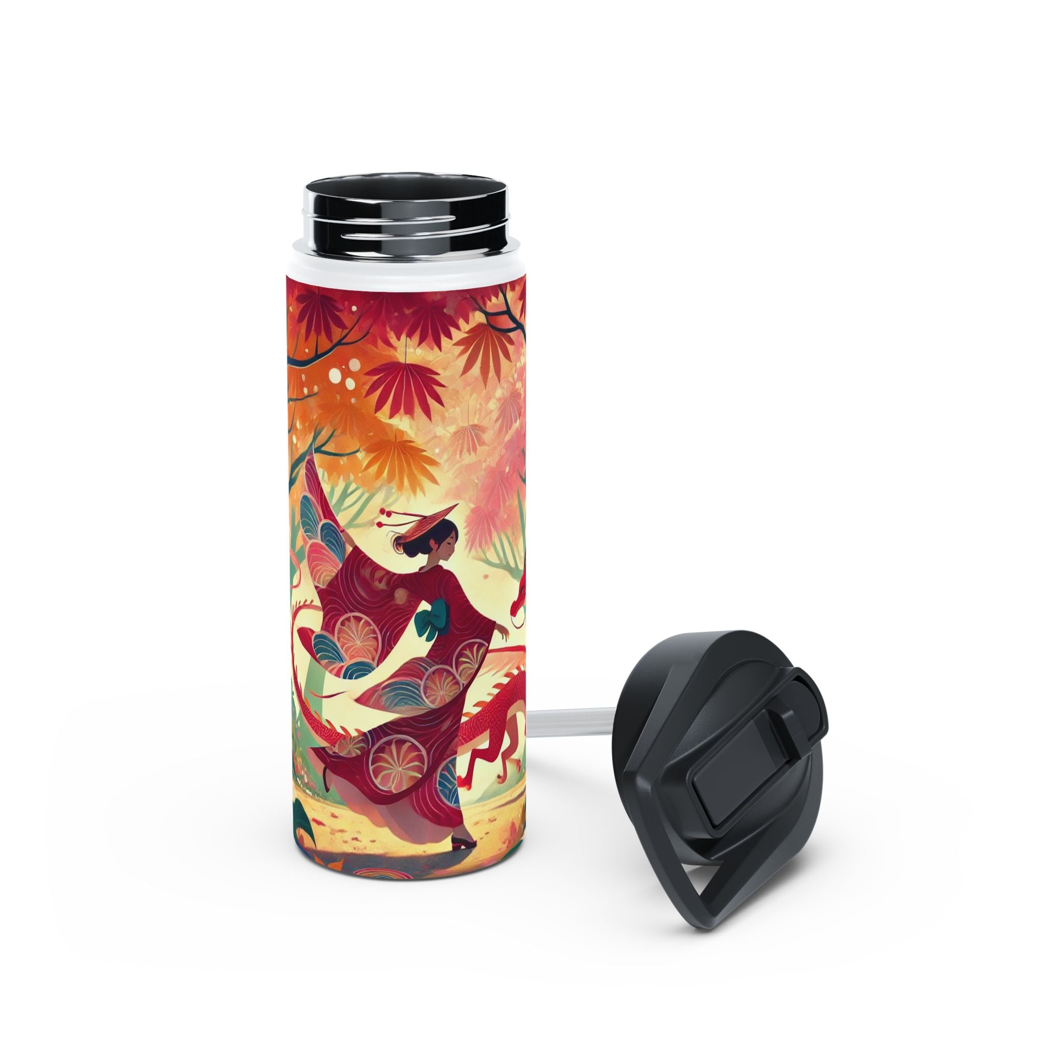 The Dragon Fairy’s Dance Stainless Steel Water Bottle, Standard Lid pairs artistic beauty with everyday practicality. Crafted from durable double-wall stainless steel, this BPA-free bottle keeps drinks cold for up to 24 hours and hot for 12. Its sleek form and twist-on lid make it perfect for daily use—whether you’re at school, work, or on an adventure. Available in 12oz, 18oz, and 32oz sizes, it’s a stunning balance of form, function, and fantasy.
