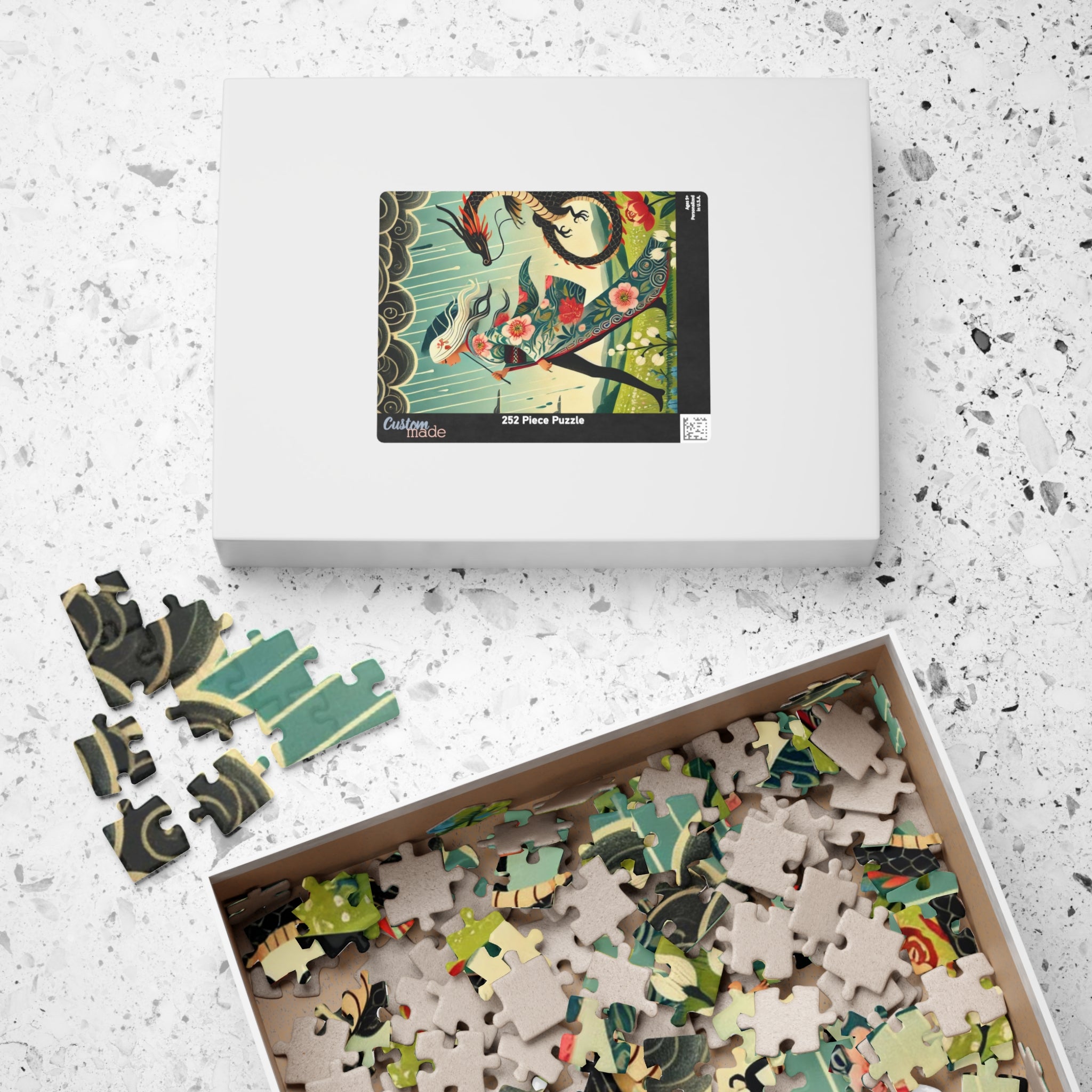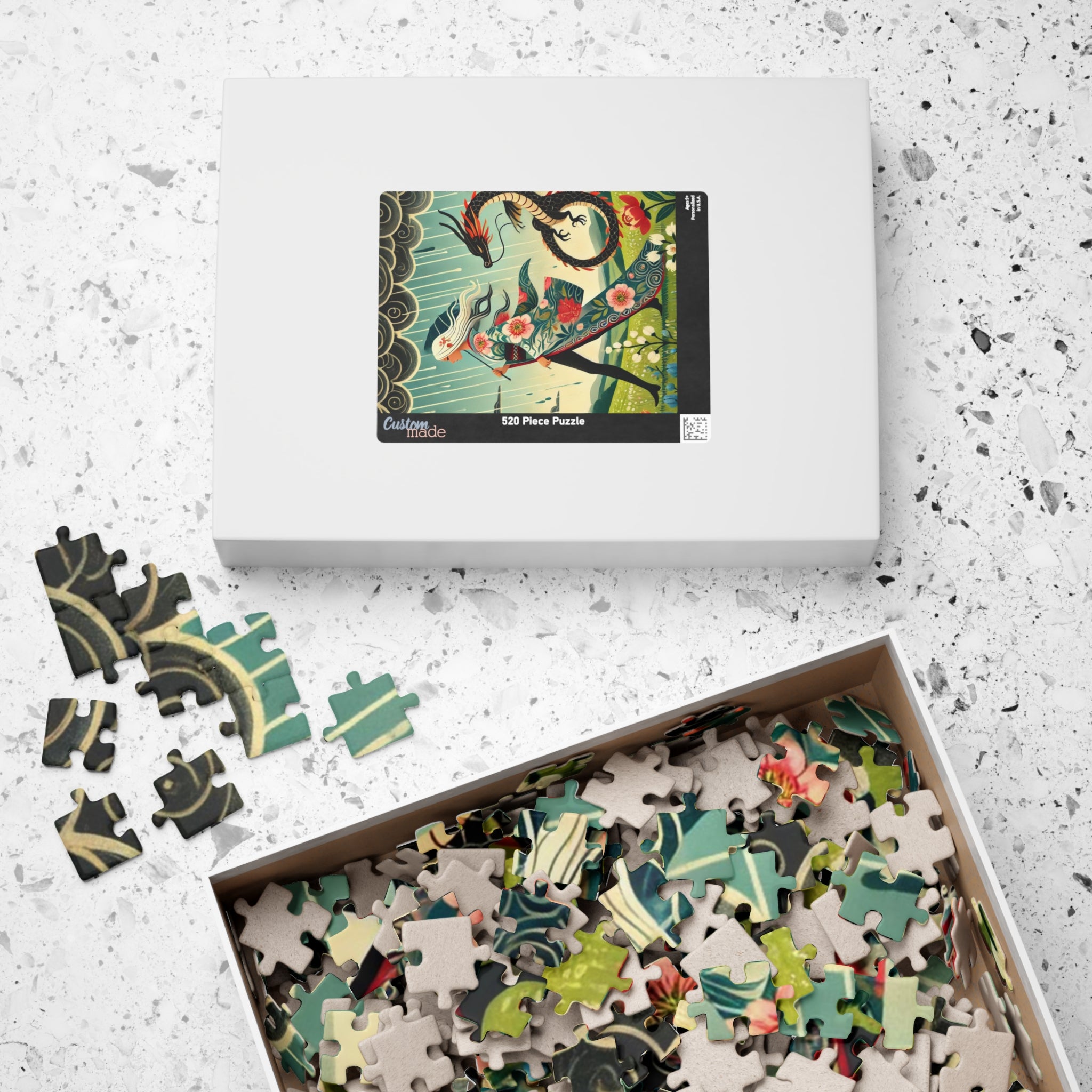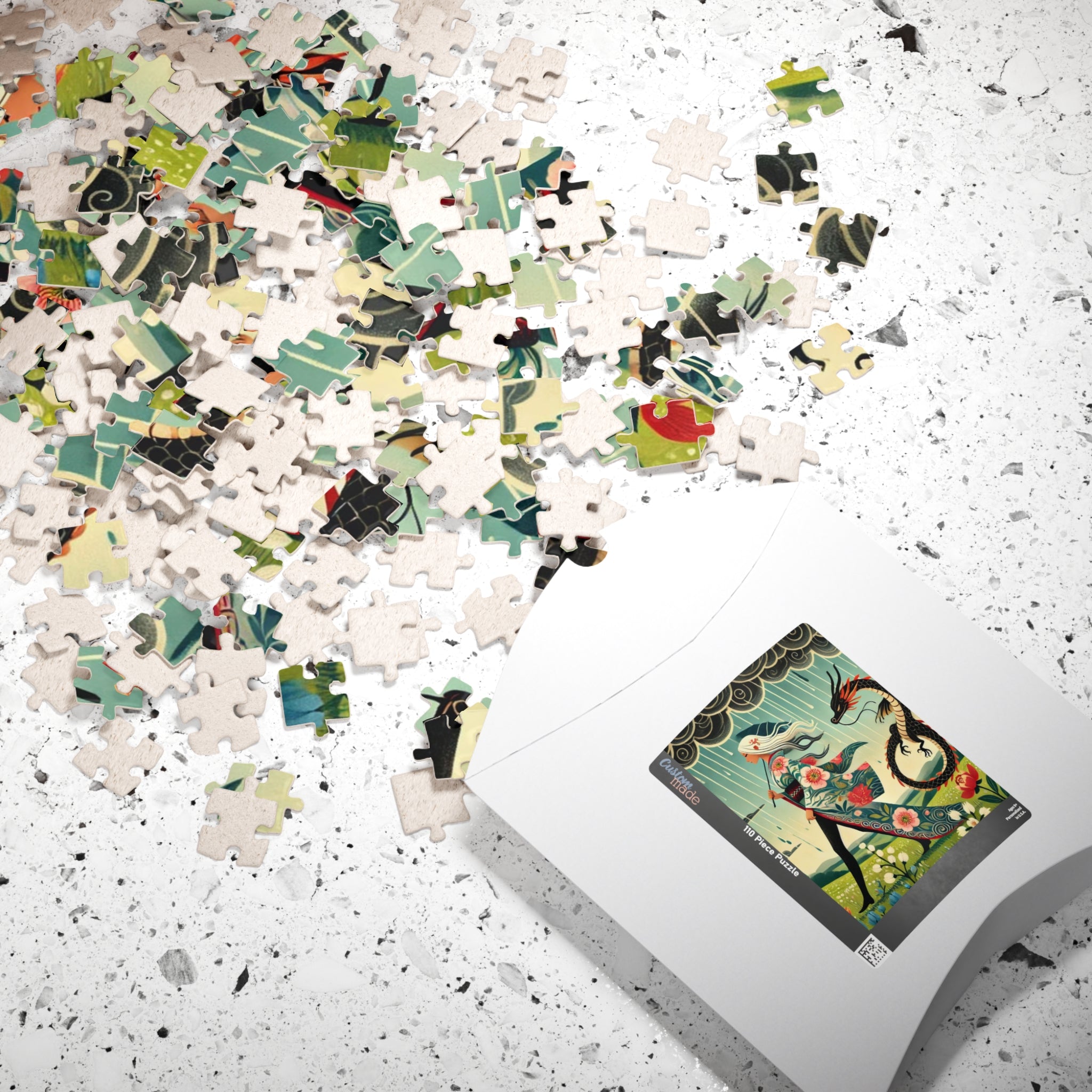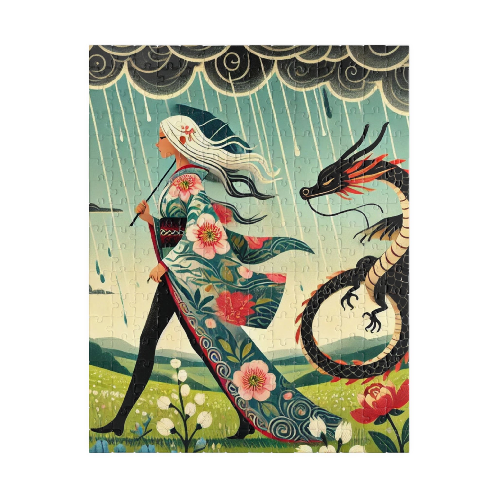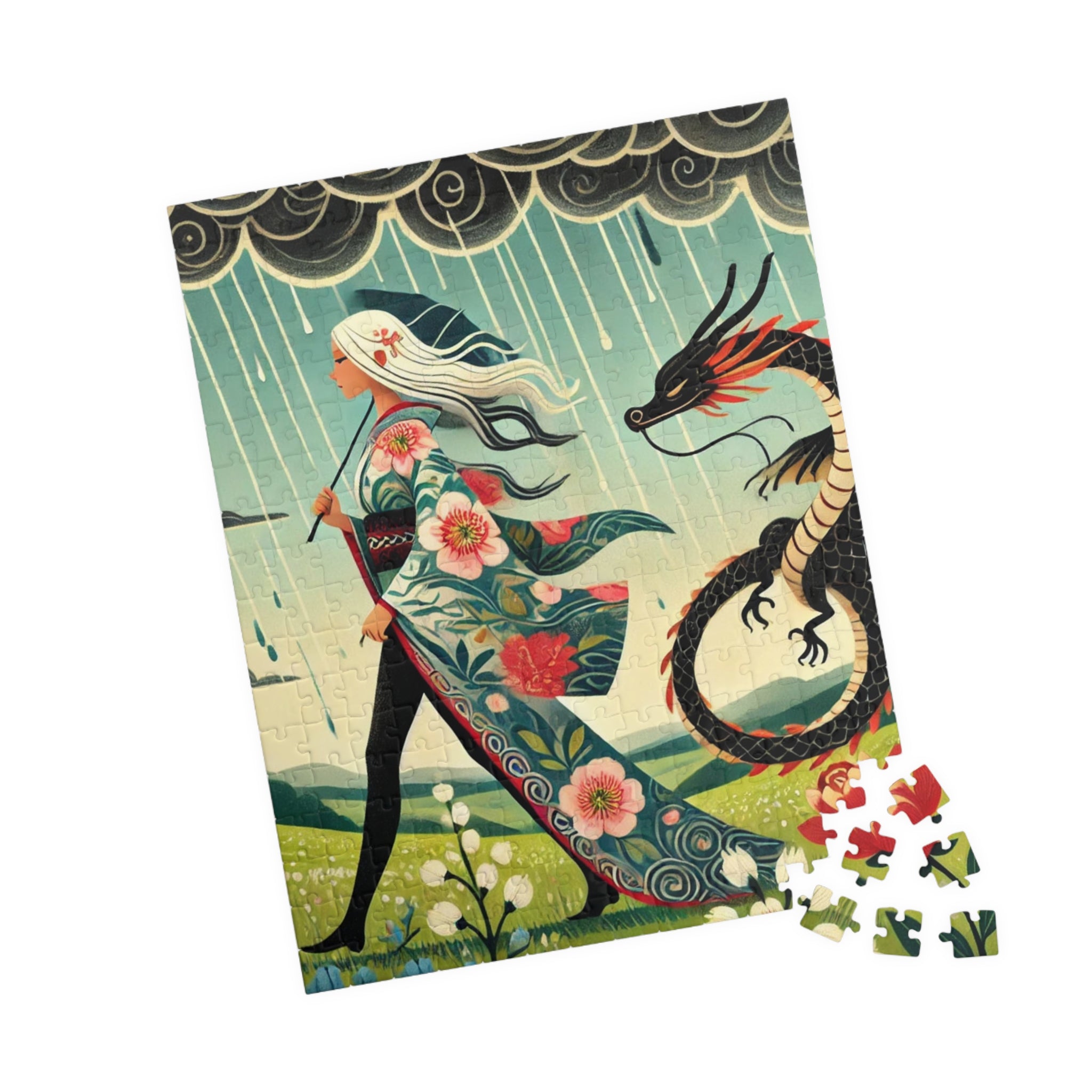 Embrace the magic of strength and serenity with The Dragon Fairy’s Stride Puzzle, a breathtaking fusion of fantasy and art. This captivating puzzle helps adults and kids alike spend quality time over a game they’ll love. Each puzzle comes in a glossy finish and features a sturdy chipboard backing, while each pack includes a reference print to easily put the puzzle together. Available in 110, 252, or 520 piece options, it’s a perfect balance of challenge, creativity, and imagination.