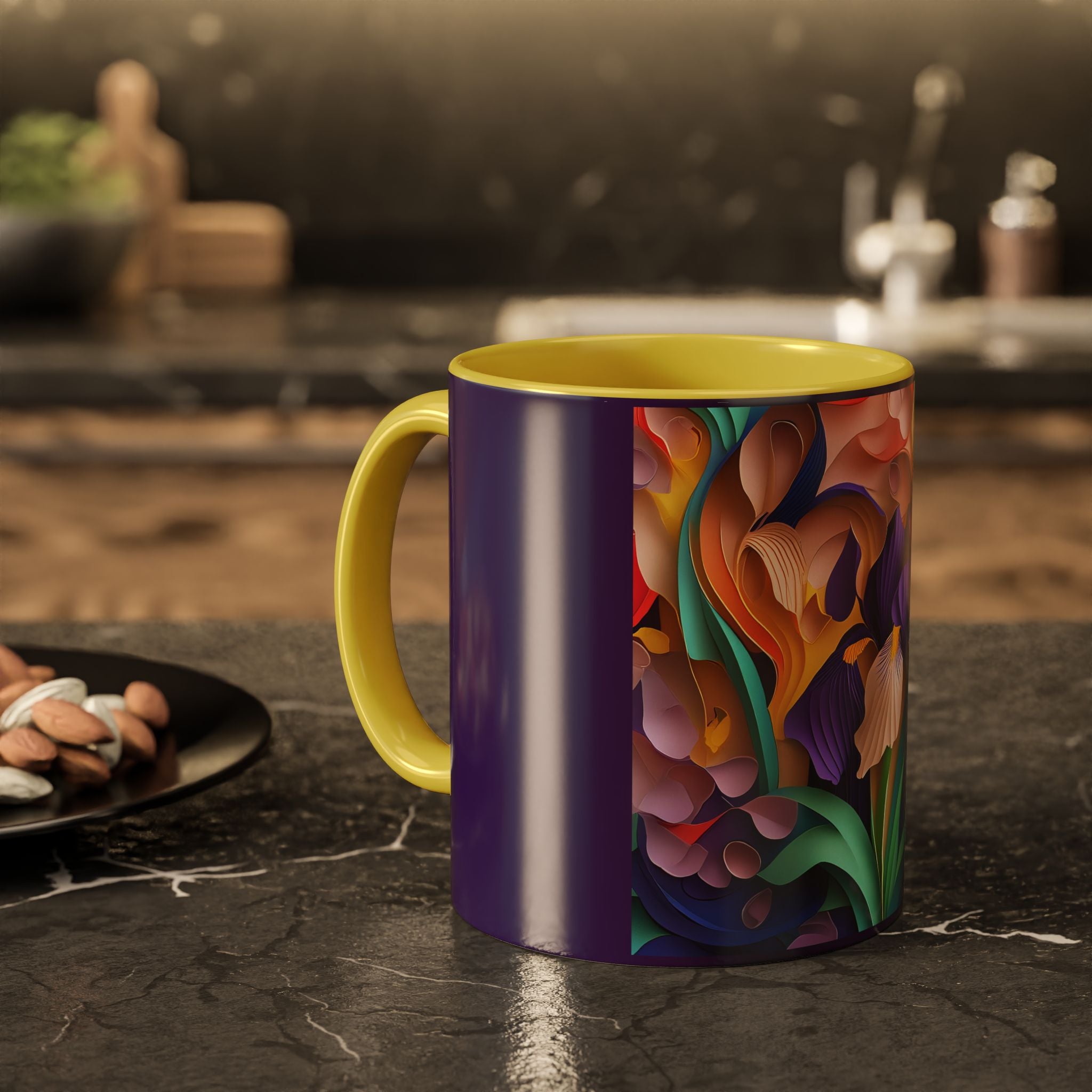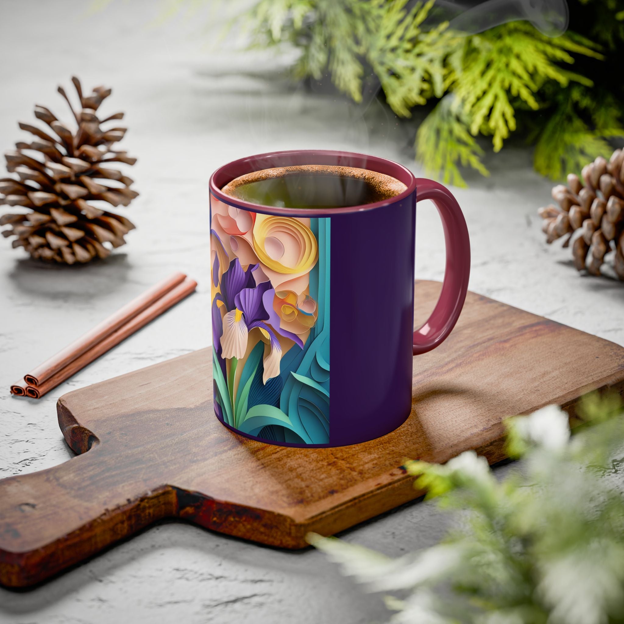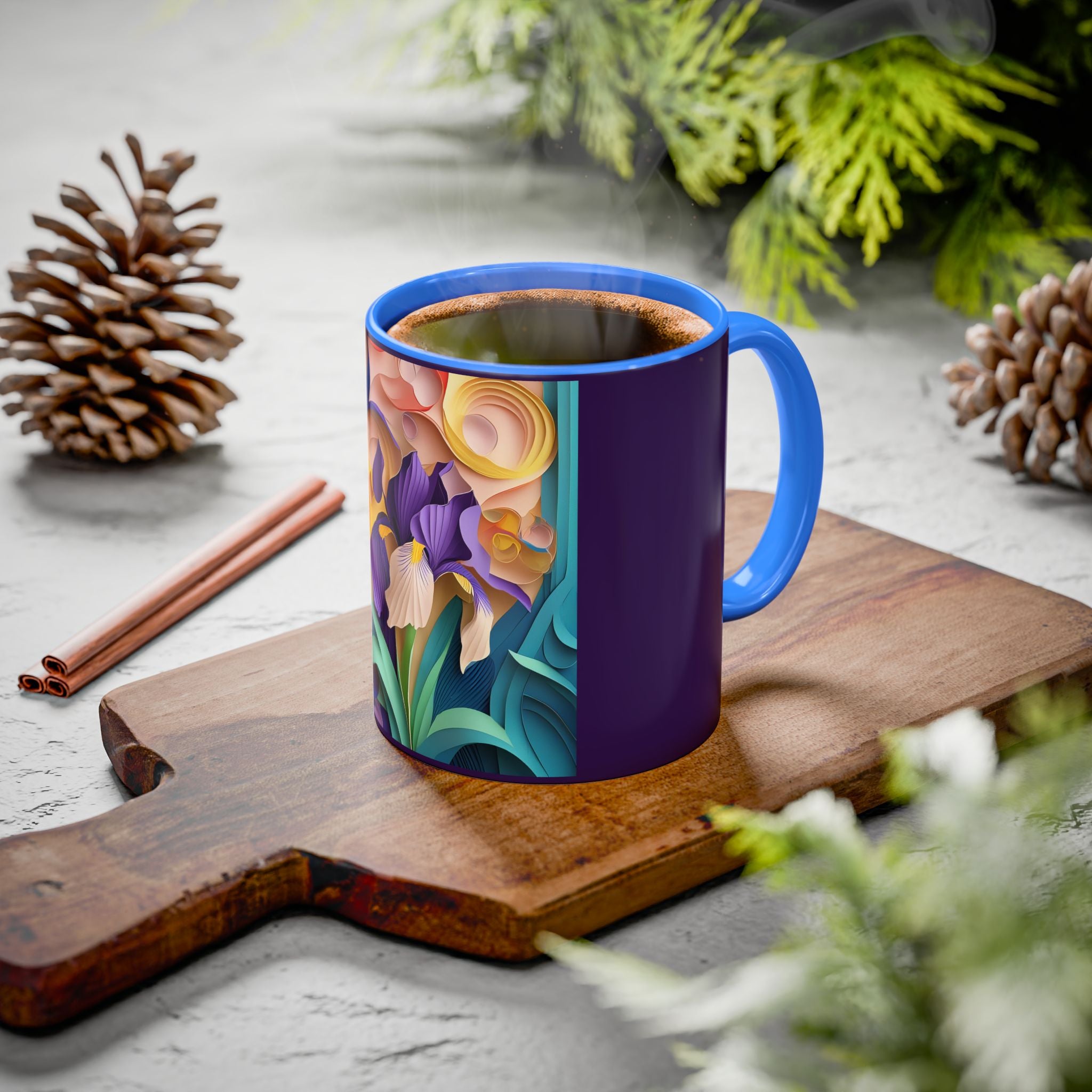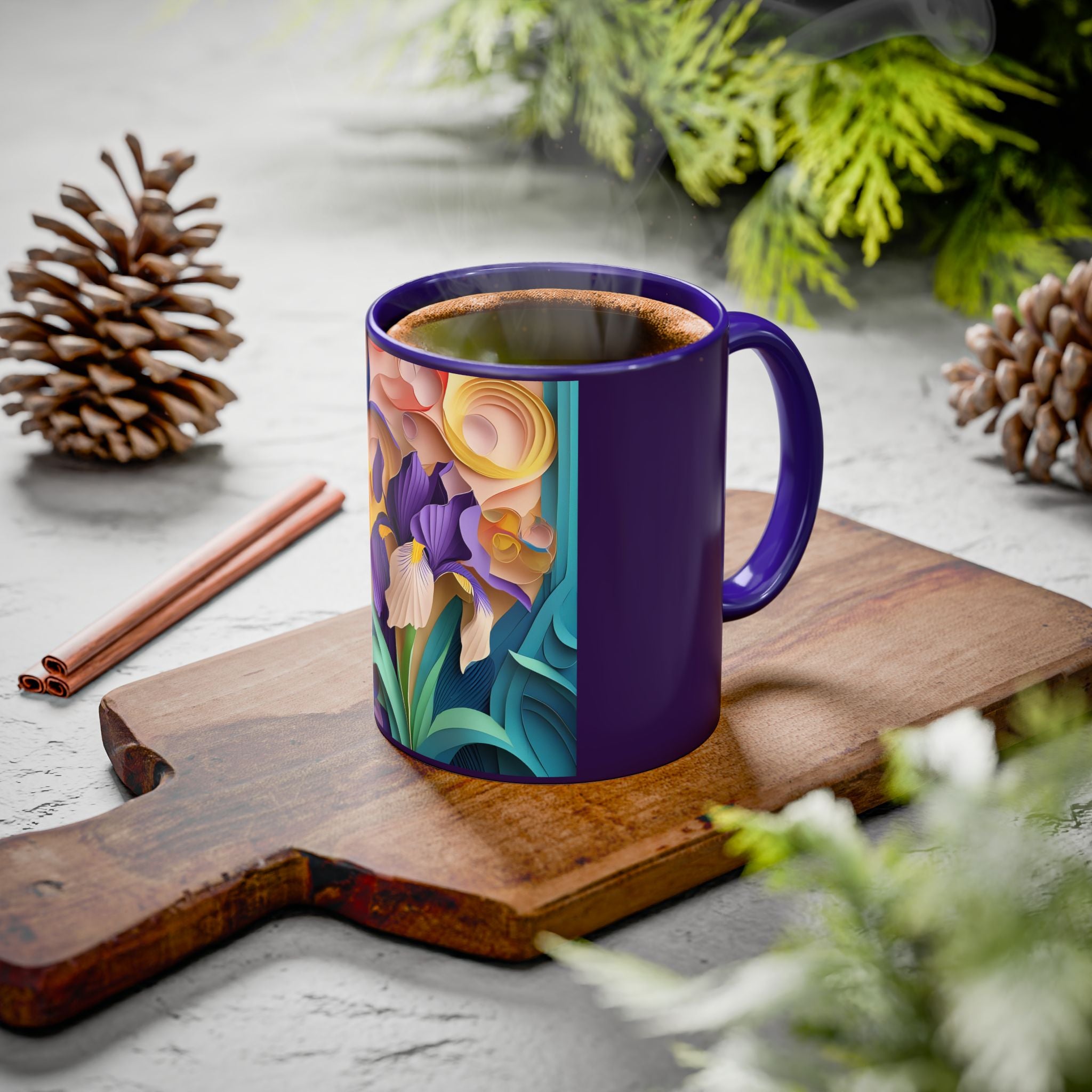Mugs are a kitchen essential, and when infused with a personalized touch, they transform into cherished favorites. These mugs, offered in 12 vibrant color choices, can hold up to 11oz of your preferred rejuvenating beverage and feature a colored handle and interior. The glossy finish adds an elegant accent that beautifully complements the high-fidelity artwork print, making them not only a delightful addition to your kitchen but also a fantastic choice for thoughtful gifts.