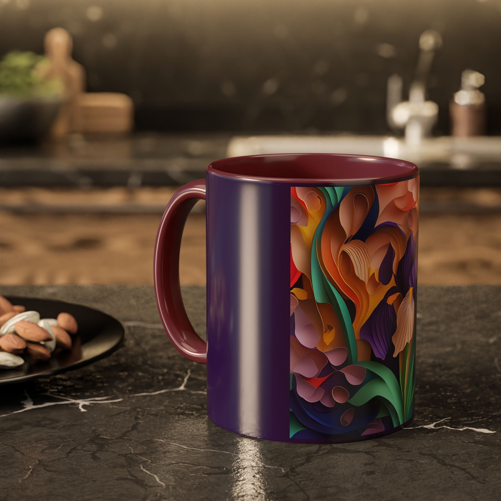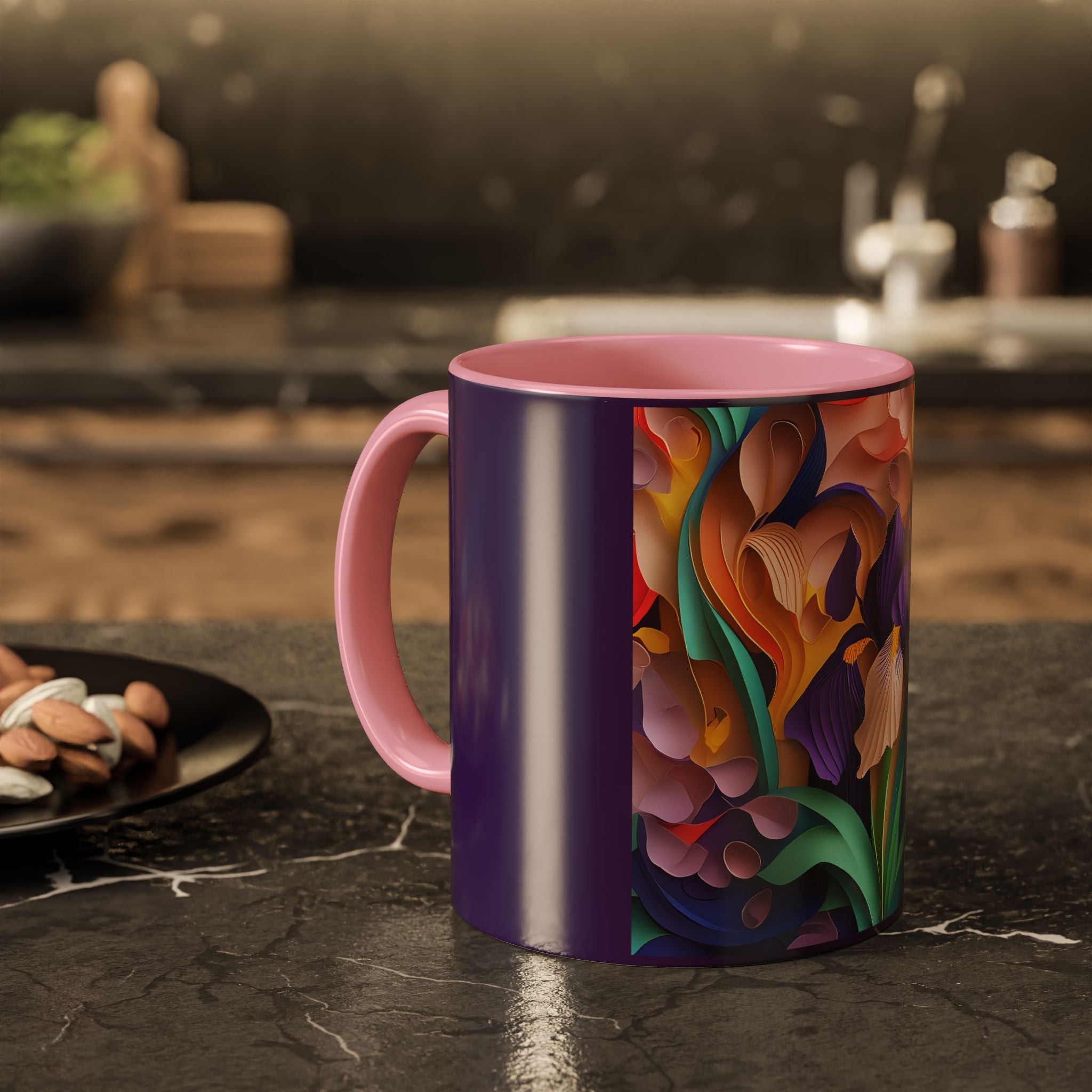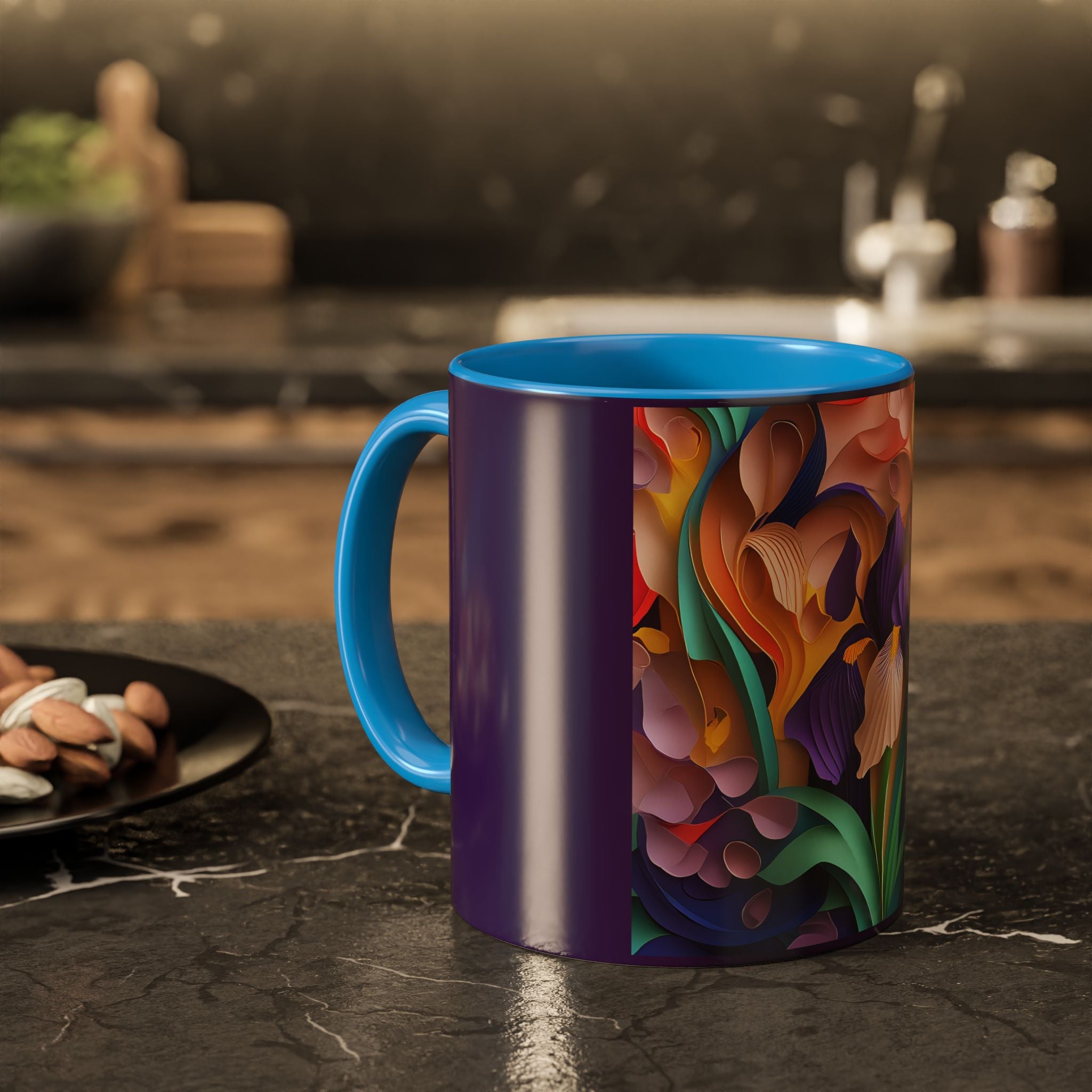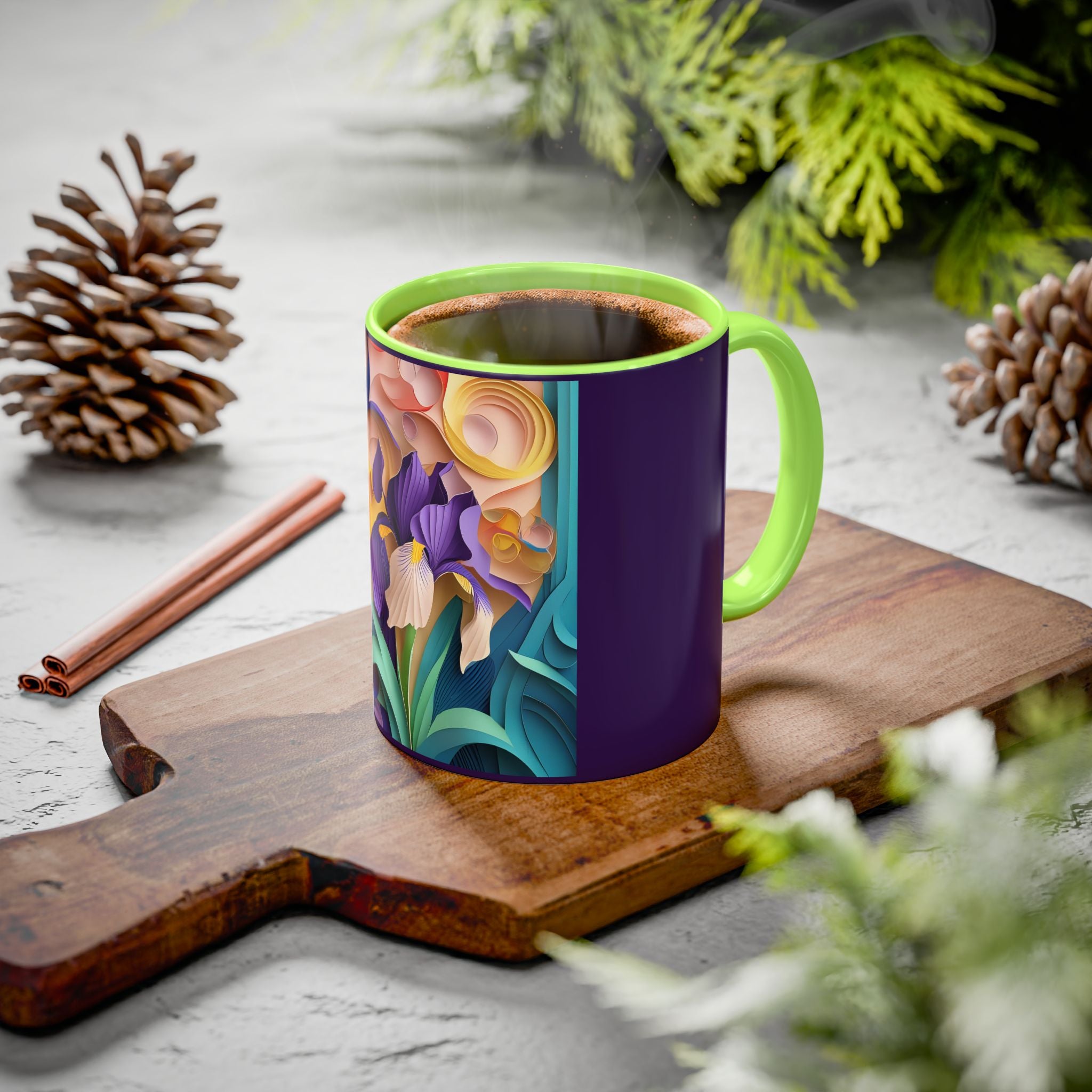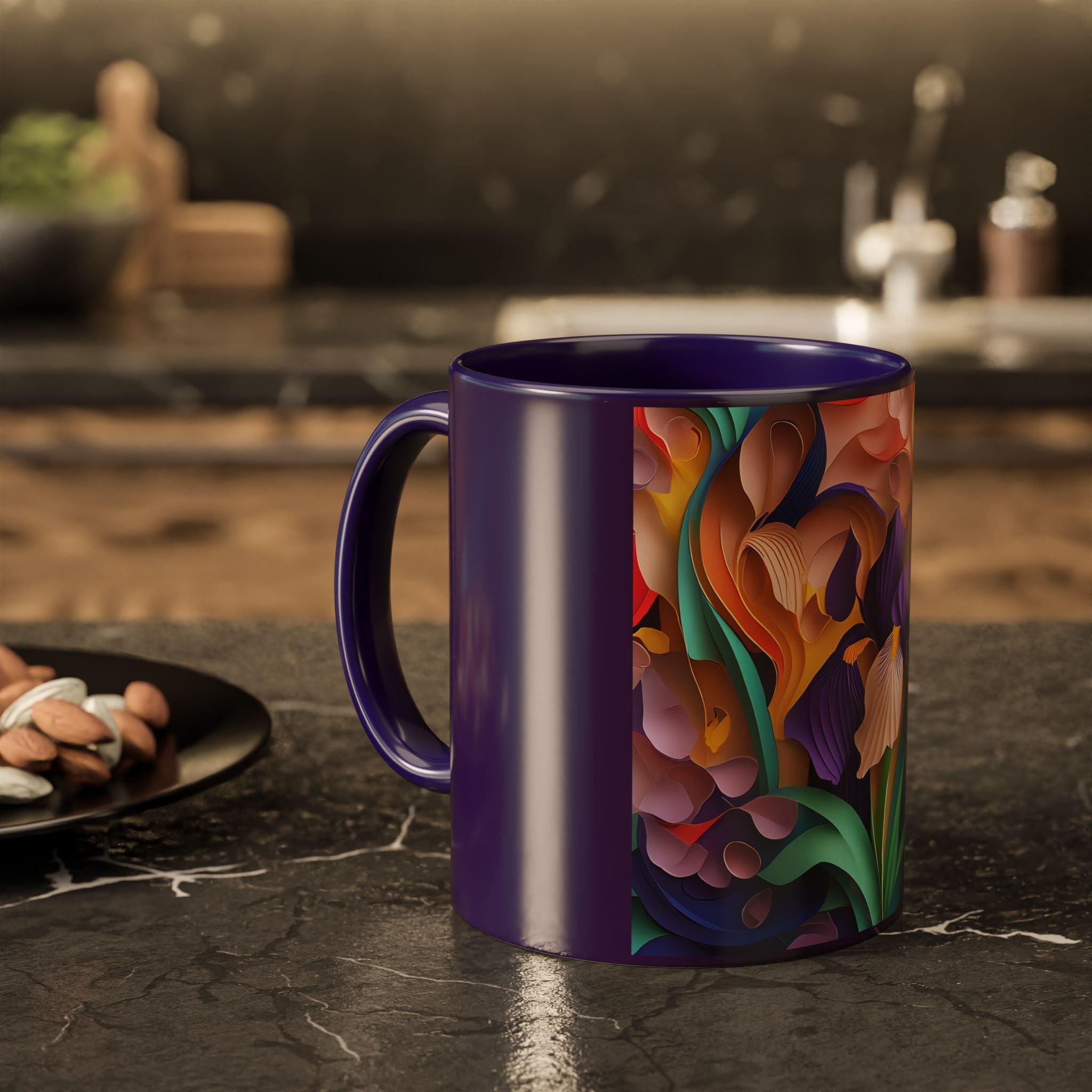 Mugs are a kitchen essential, and when infused with a personalized touch, they transform into cherished favorites. These mugs, offered in 12 vibrant color choices, can hold up to 11oz of your preferred rejuvenating beverage and feature a colored handle and interior. The glossy finish adds an elegant accent that beautifully complements the high-fidelity artwork print, making them not only a delightful addition to your kitchen but also a fantastic choice for thoughtful gifts.