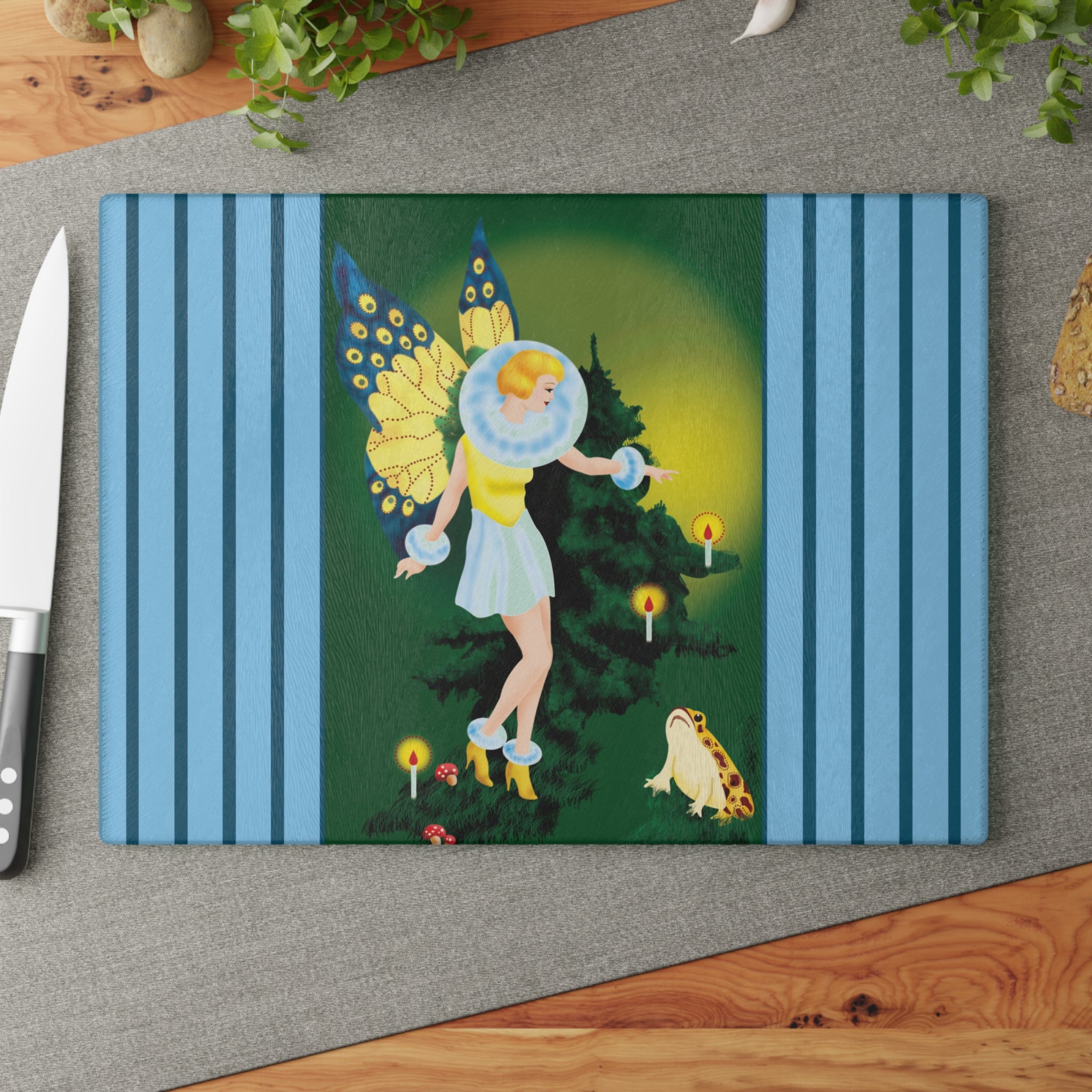 The Enchanted Encounter Glass Cutting Board blends durability with beauty. Made of tempered glass with a textured surface, it’s perfect for chopping, slicing, and dicing, and is available in two sizes: 8" x 11" and 11" x 15".