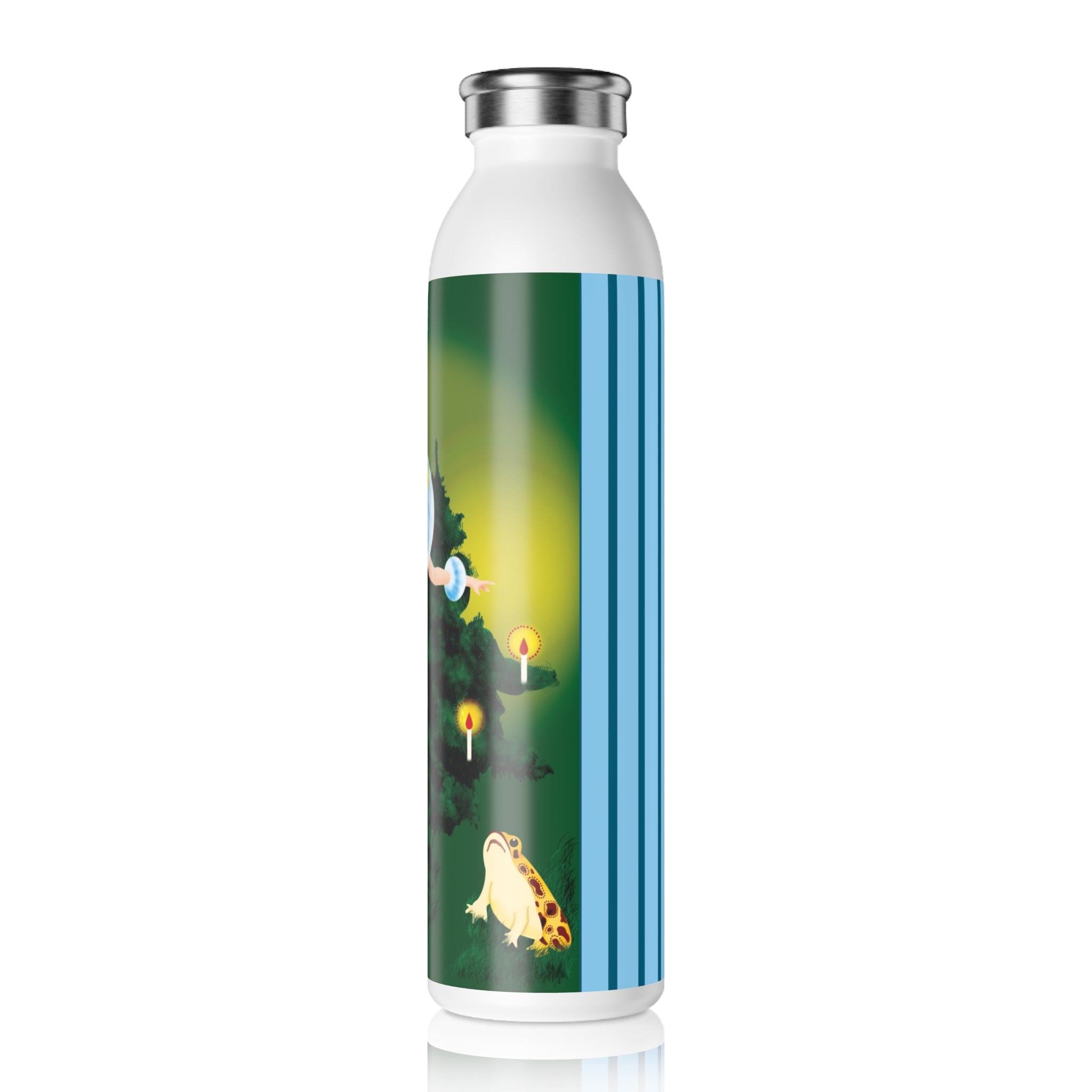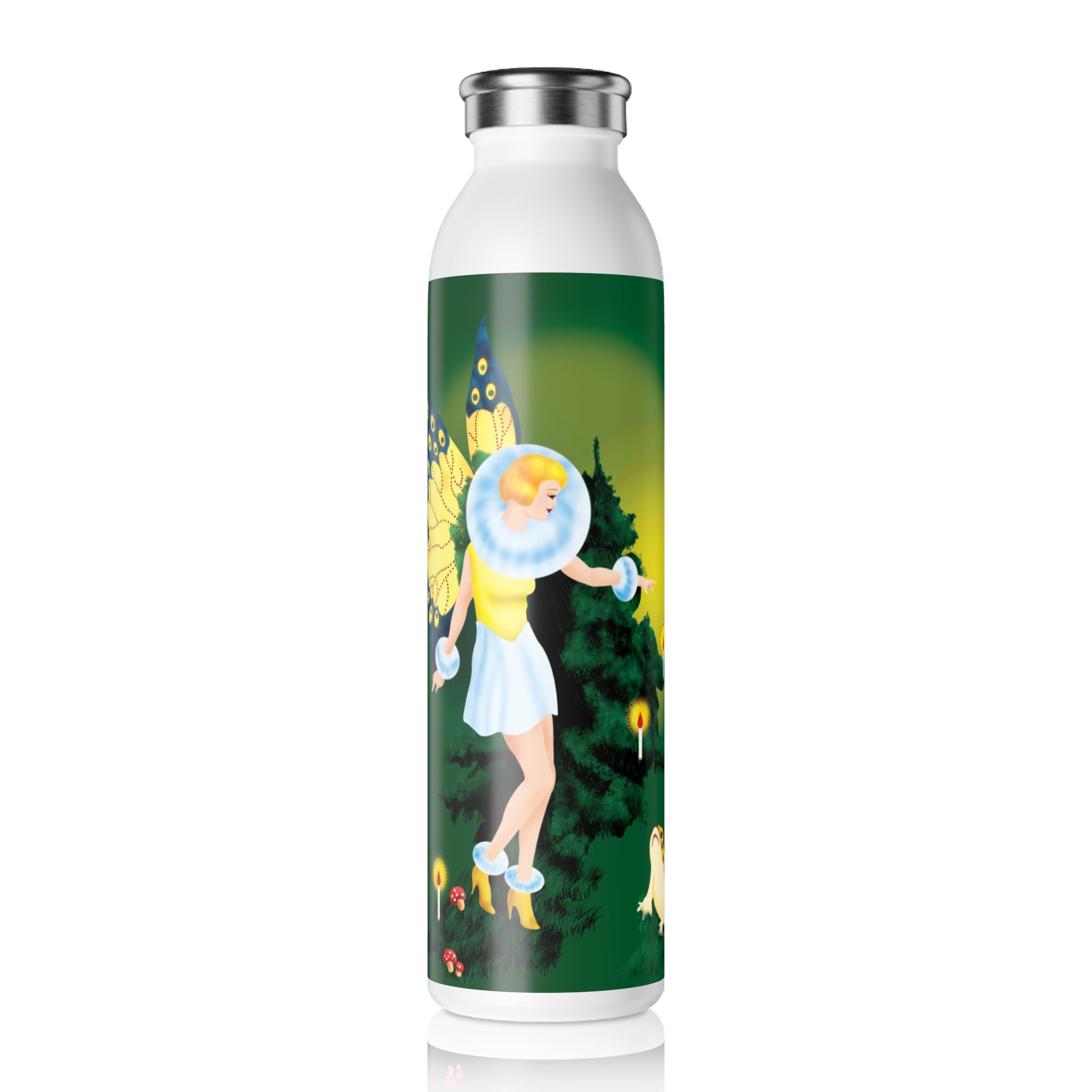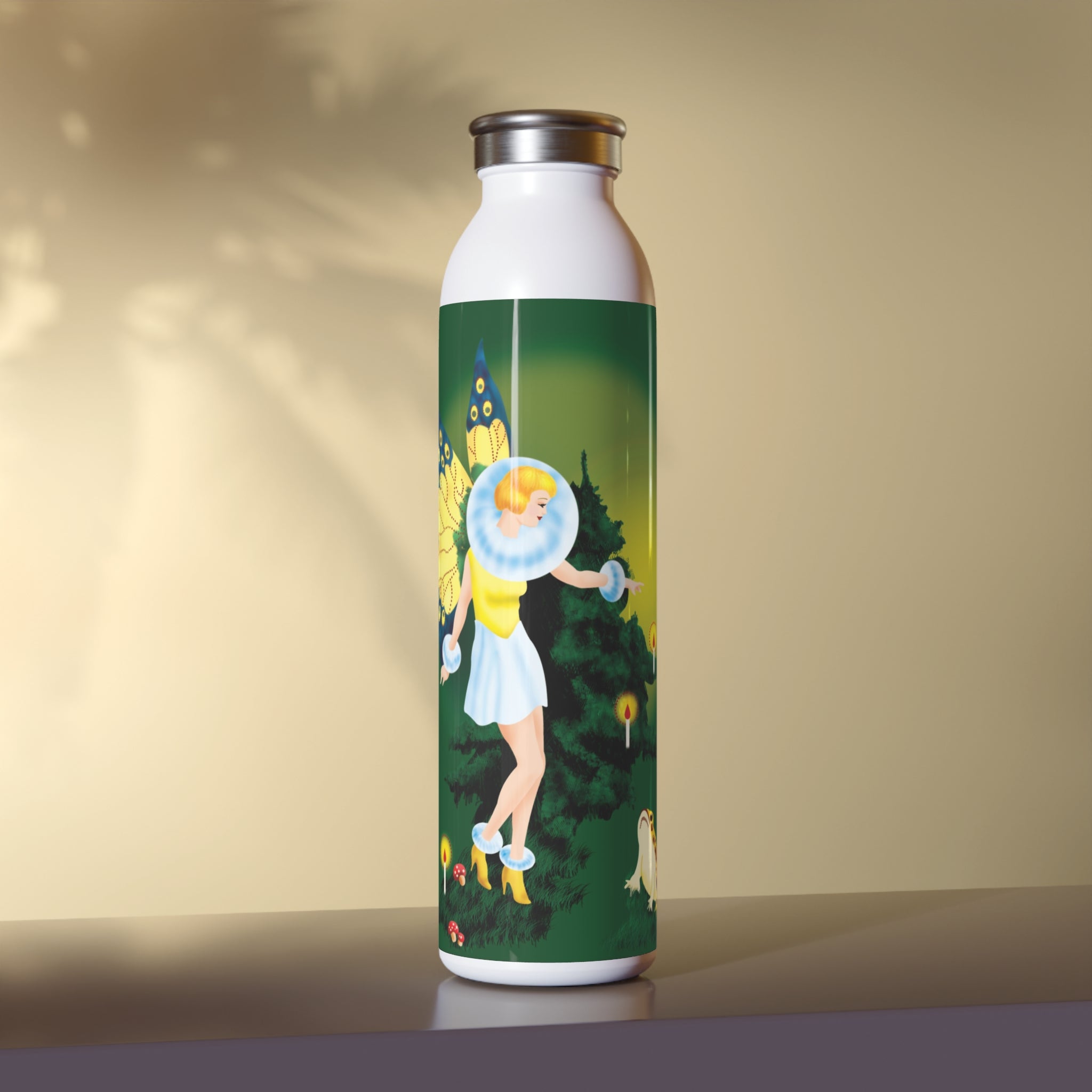 The Enchanted Encounter Slim Water Bottle combines function with fantasy. Its 20oz double-wall stainless steel frame with vacuum insulation keeps drinks hot or cold for hours, while the matte finish and stylish lid make it a sleek everyday companion.