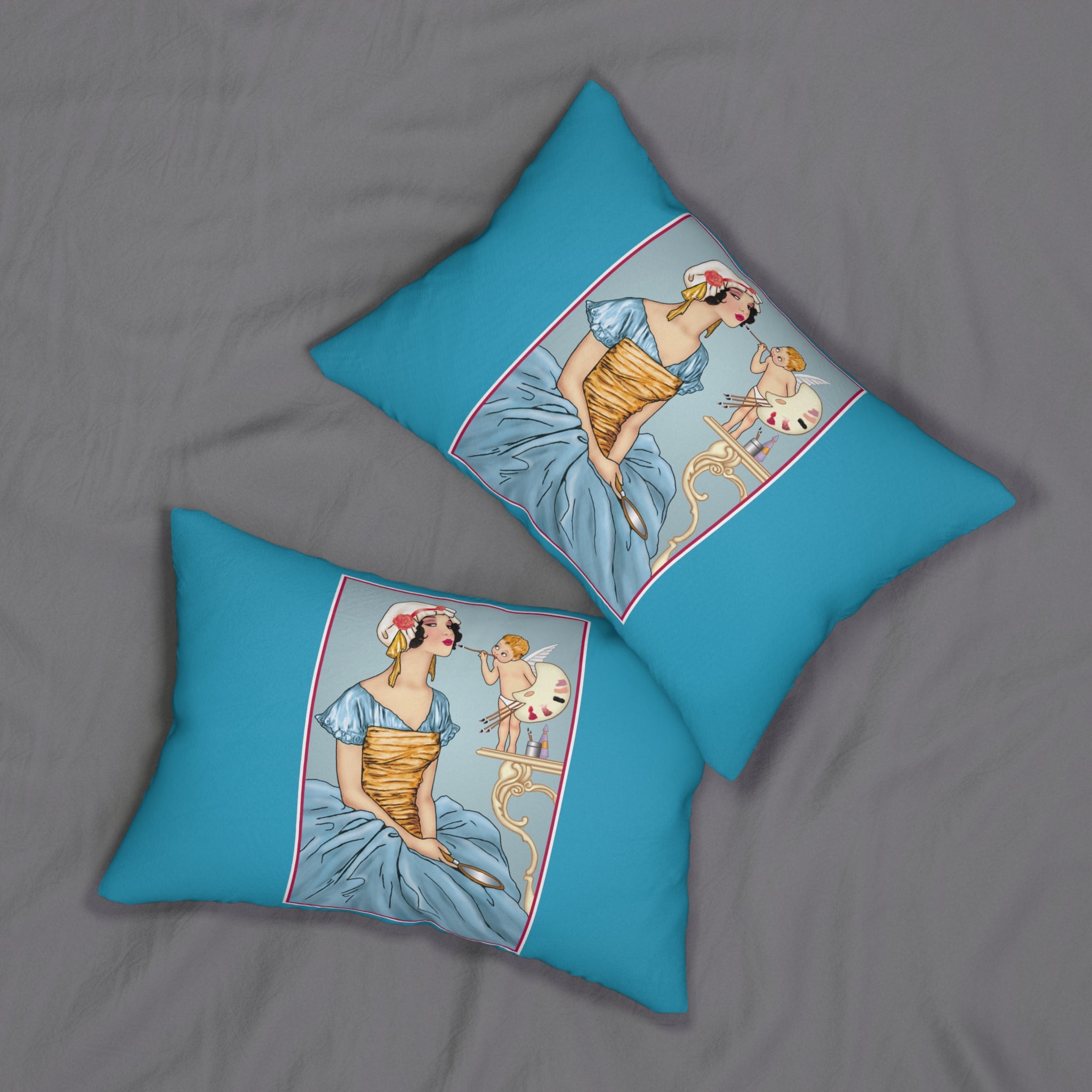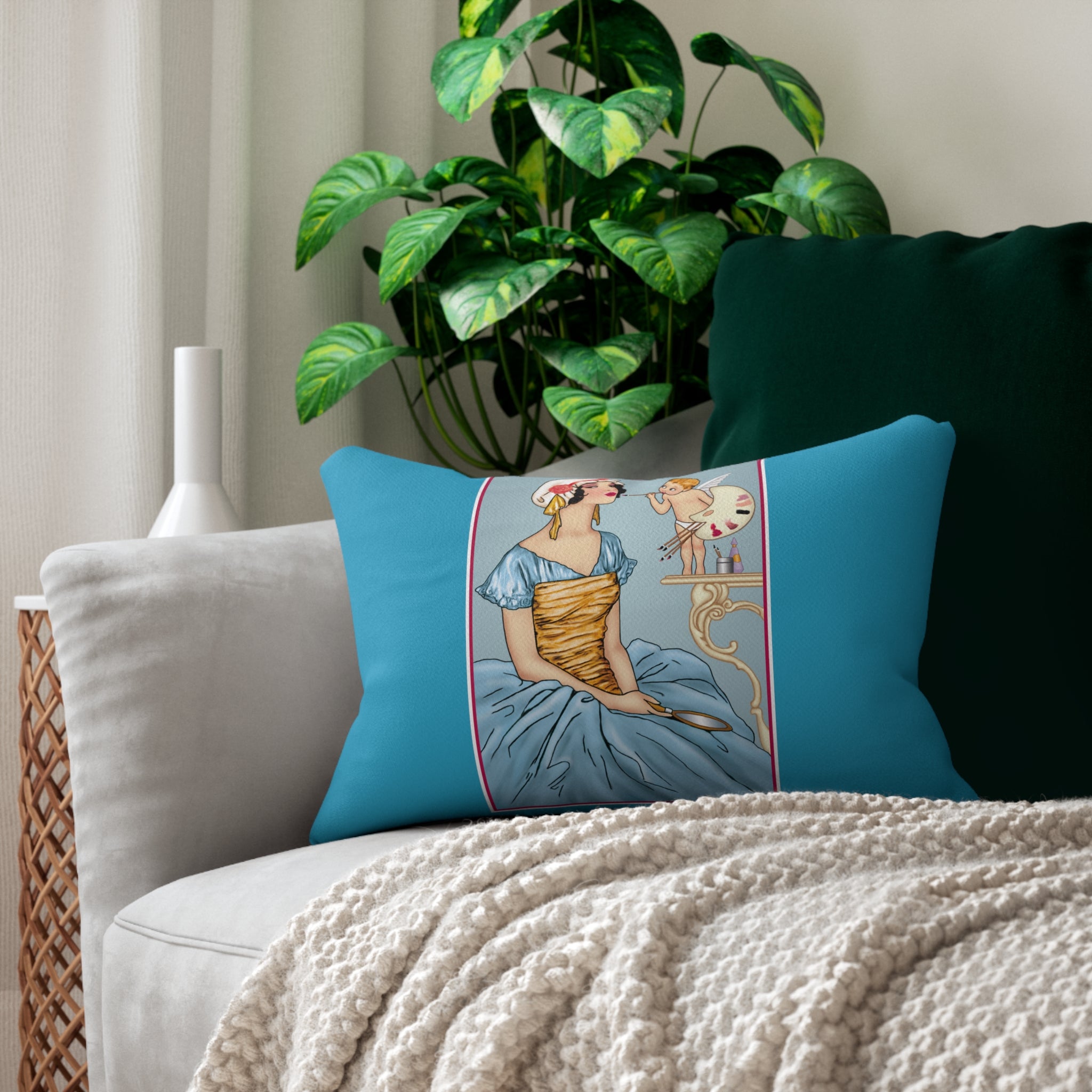 Enhance your home decor with this exquisite Art Deco inspired lumbar pillow. Crafted with care, it features a spun-polyester fabric casing that is not only inherently mildew and water-resistant but also radiates elegance. The pillow comes with a stuffing pillow included, ensuring a plump and comfortable feel. With its hidden beige zipper, this pillow maintains a finished and stylish appearance, seamlessly blending with your existing decor. Perfectly sized to provide lumbar support, it adds both aesthetic charm and functionality to your living space. Whether you're decorating your own home or searching for a thoughtful gift, this art deco-inspired lumbar pillow is a delightful choice that will be cherished for its beauty and practicality.