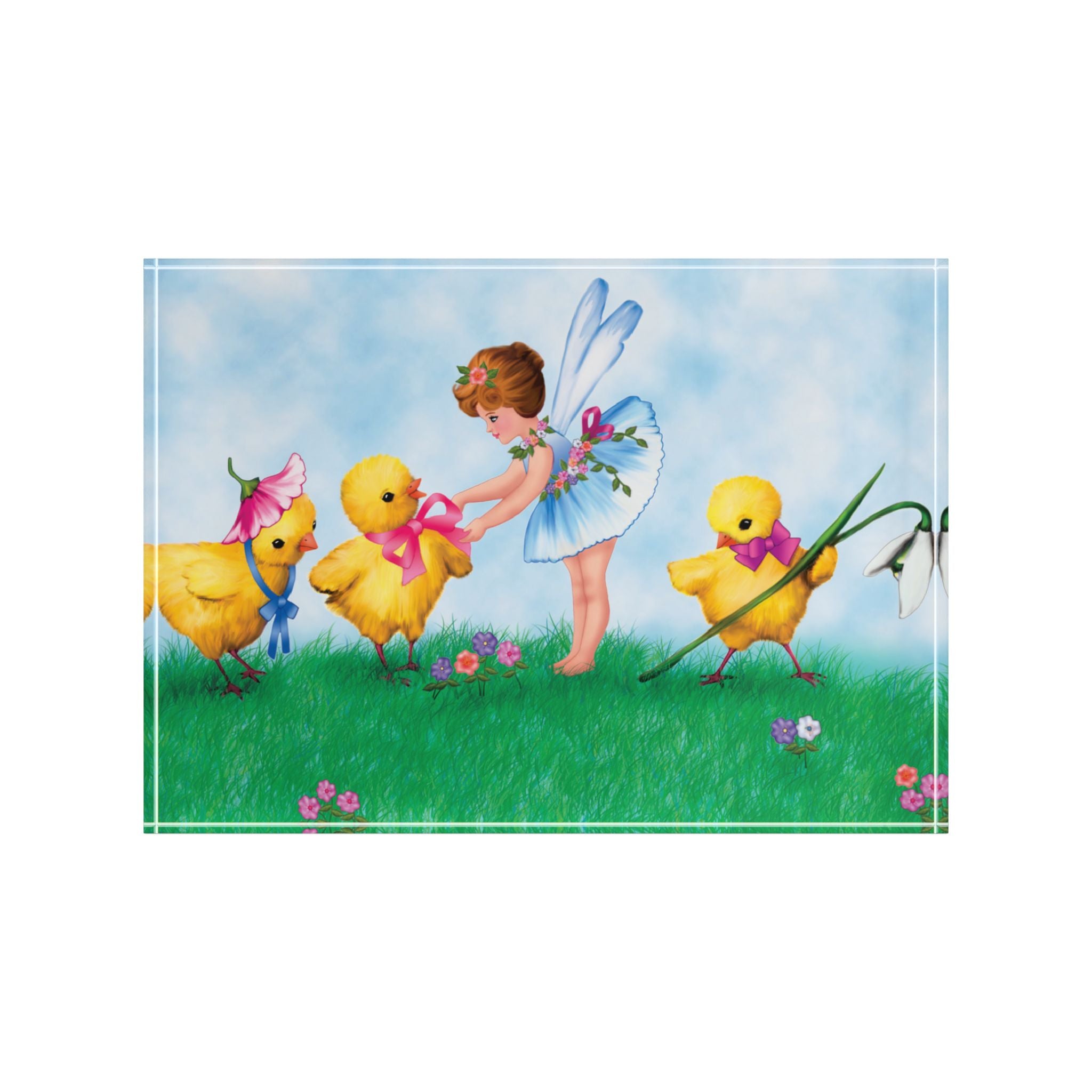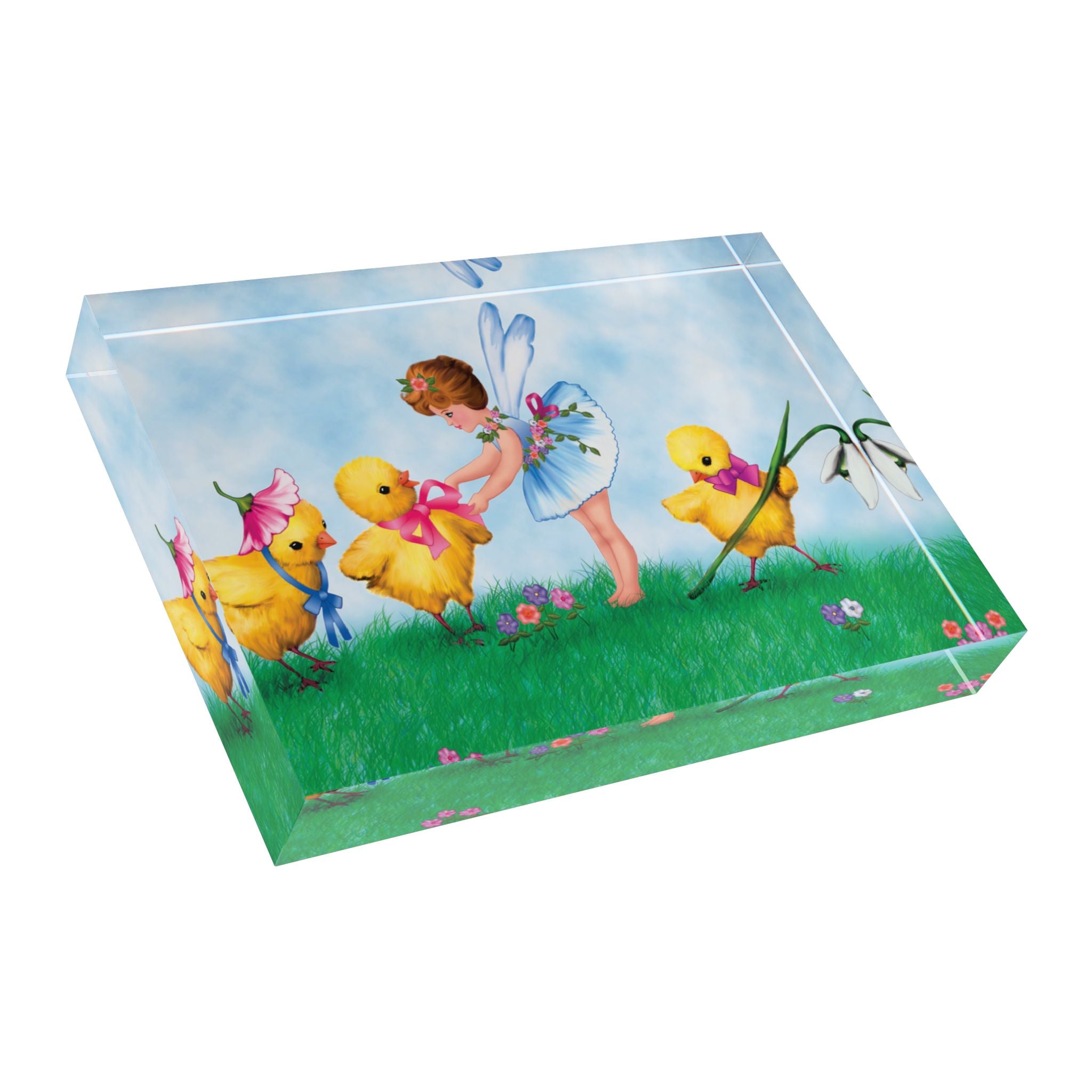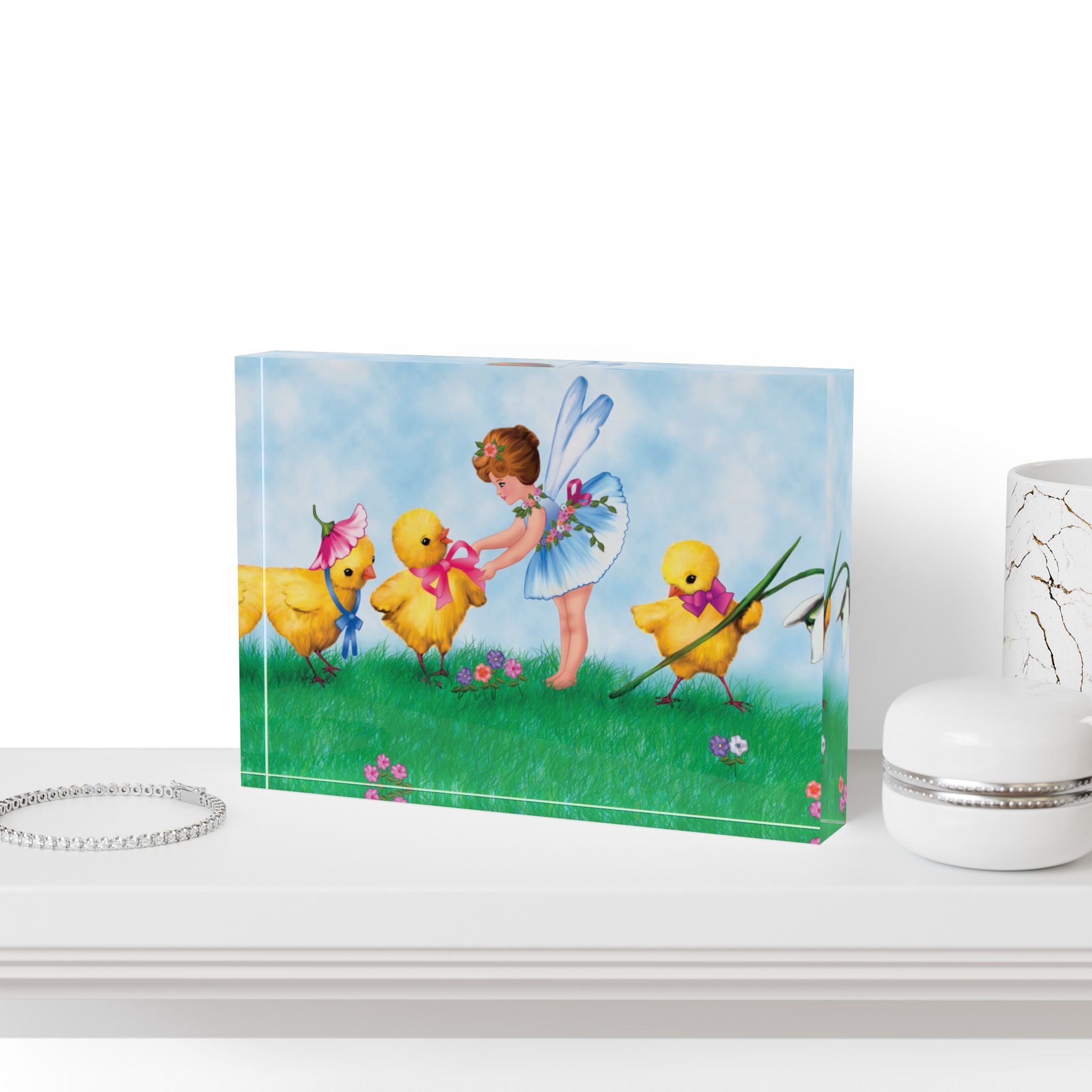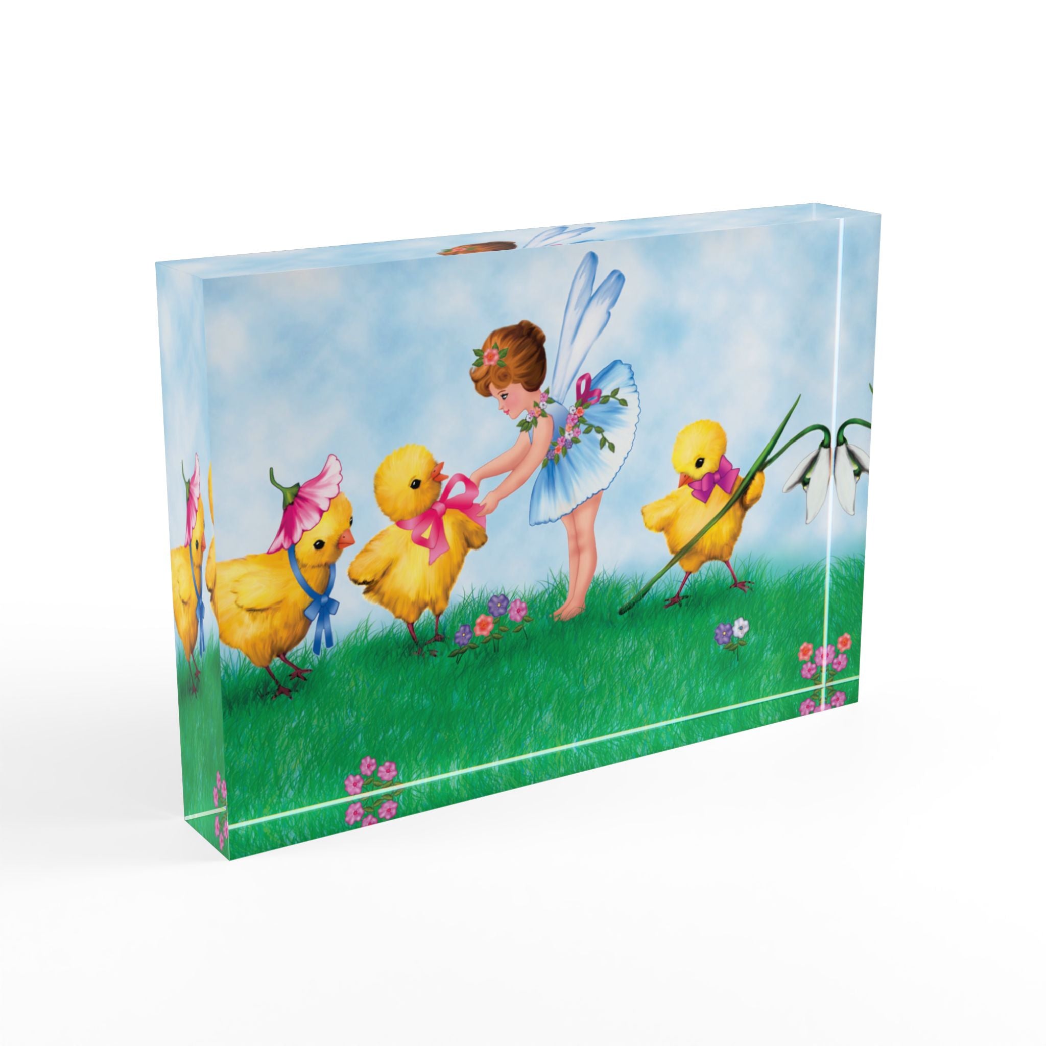 The Fairy’s Springtime Welcome Acrylic Art Block adds a bright, storybook touch to your space with a crystal-clear display that makes every color pop. Made using the AcryliPrint®HD printing process for high-end results, this acrylic art block looks stunning over the fireplace, on your desk, or on any wall—an easy way to bring springtime charm into your everyday.