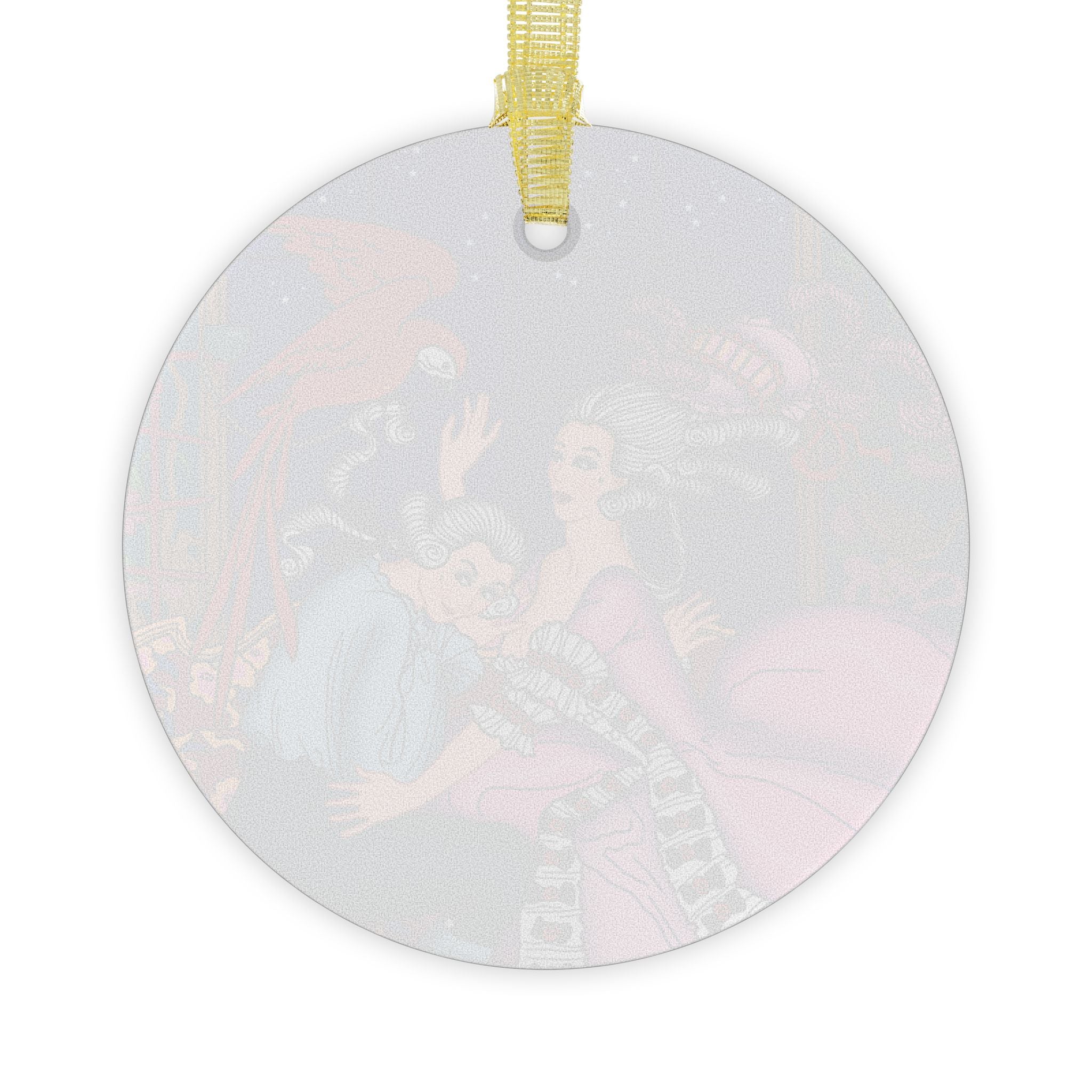 - Comes with a gold ribbon for hanging