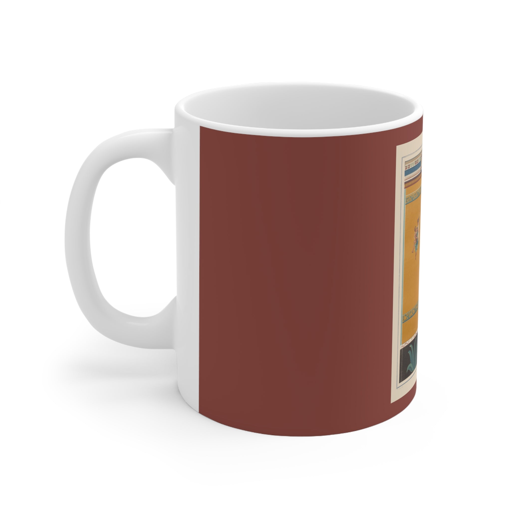 This 11 oz ceramic mug is the perfect gift for coffee, tea, and chocolate lovers. It's made of high-quality white ceramic that is lead and BPA-free, and it's microwave and dishwasher safe for easy cleanup. The mug has rounded corners and a comfortable C-handle for a secure grip.