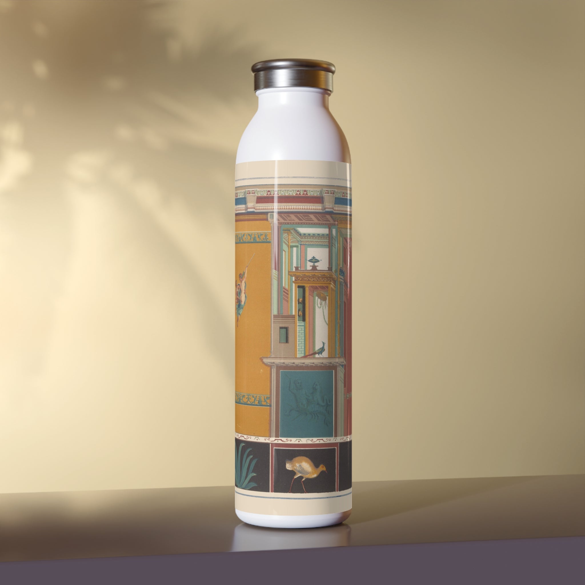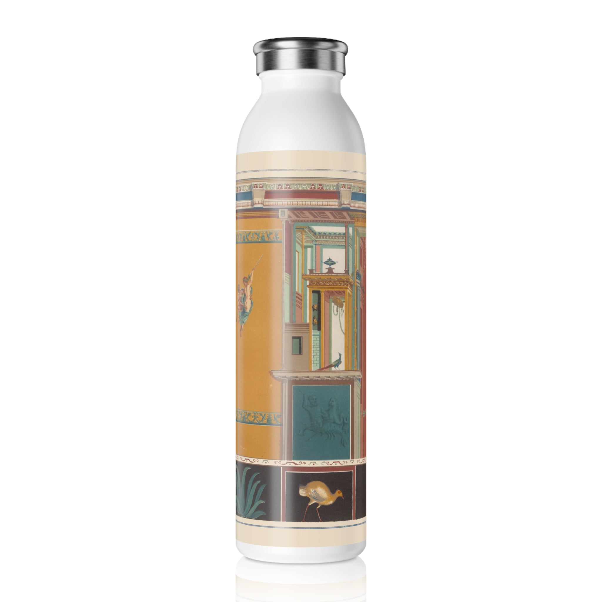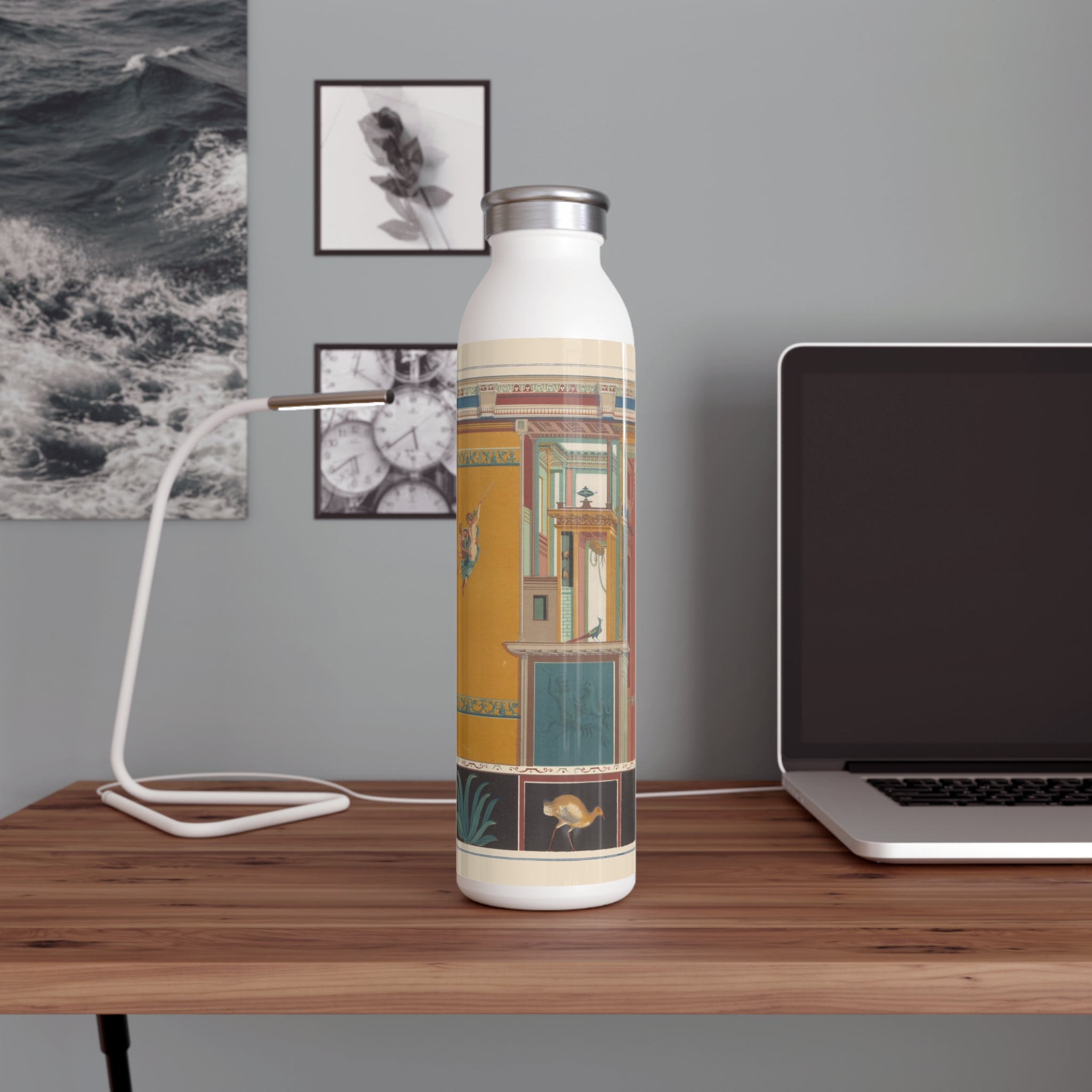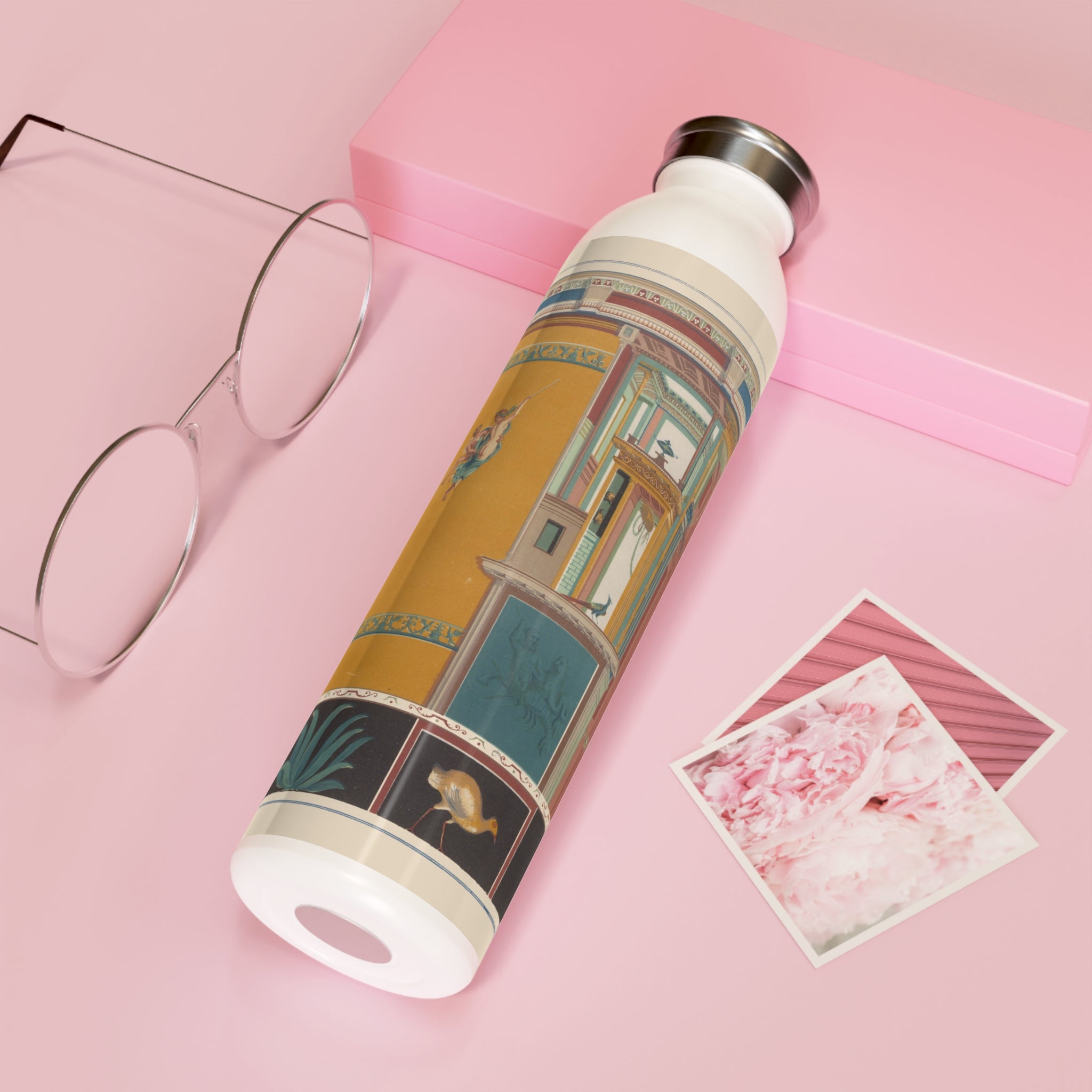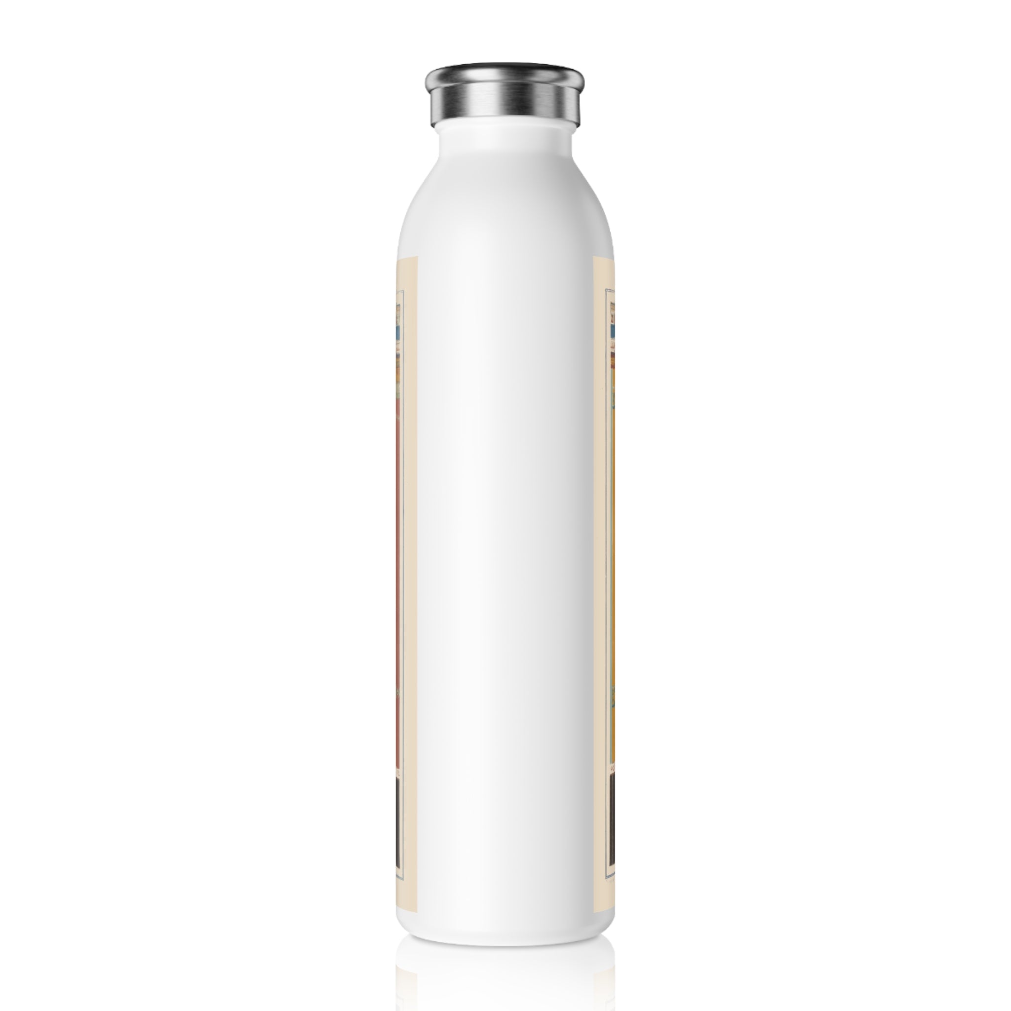 This artful water bottle boasts a 20oz capacity, a trendy lid, double-wall stainless steel construction, and employs vacuum insulation to maintain the ideal temperature of your beverages for extended periods. The vintage art design comes alive in vibrant detail against the chic matte finish.