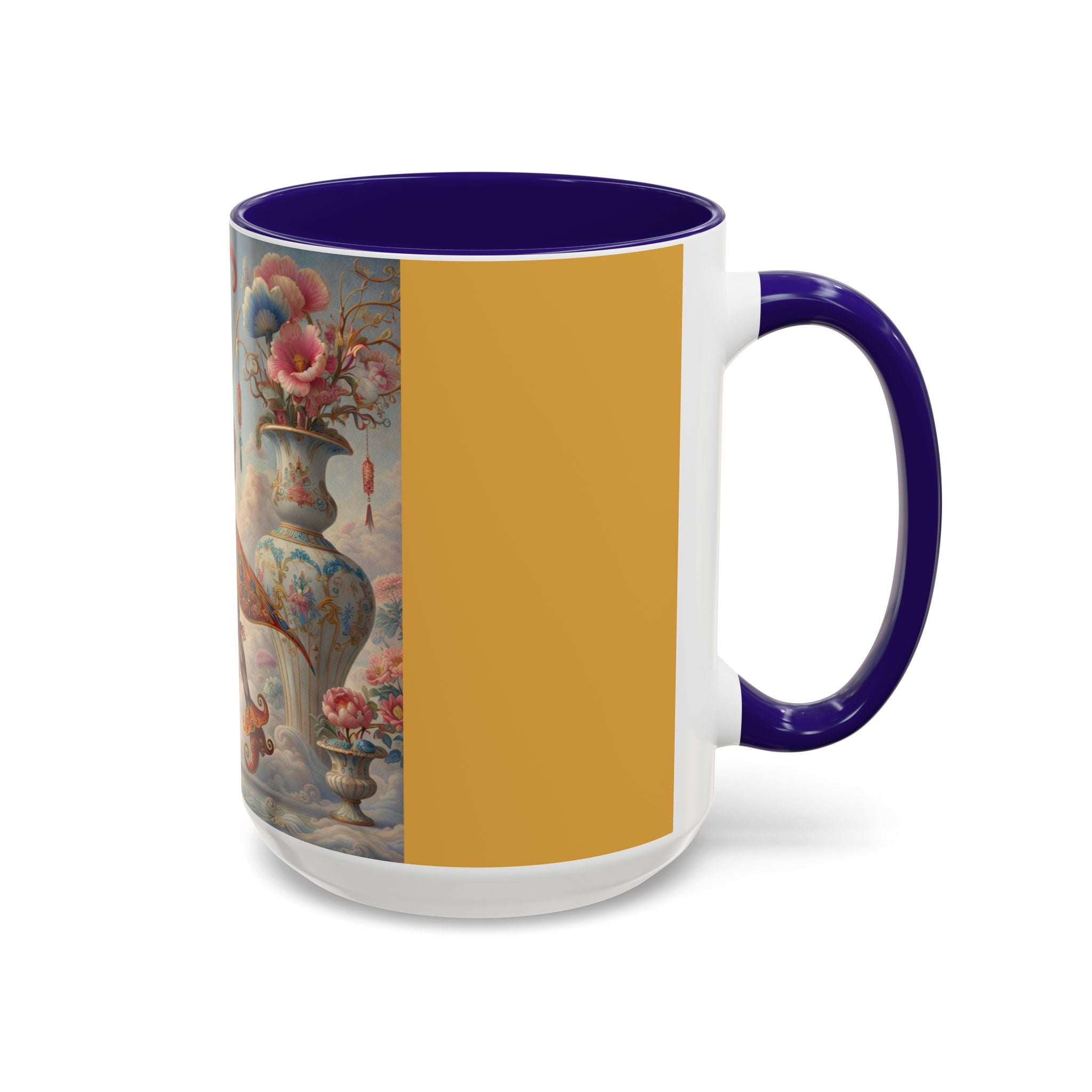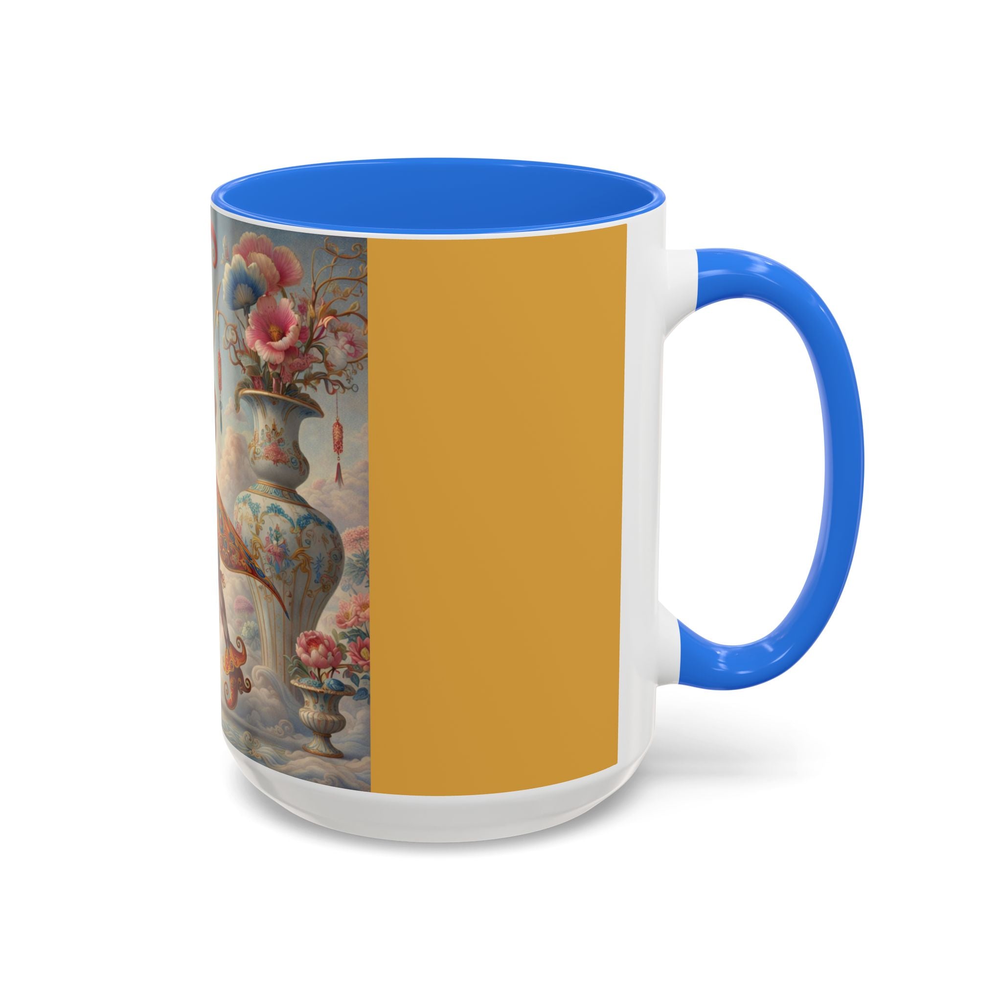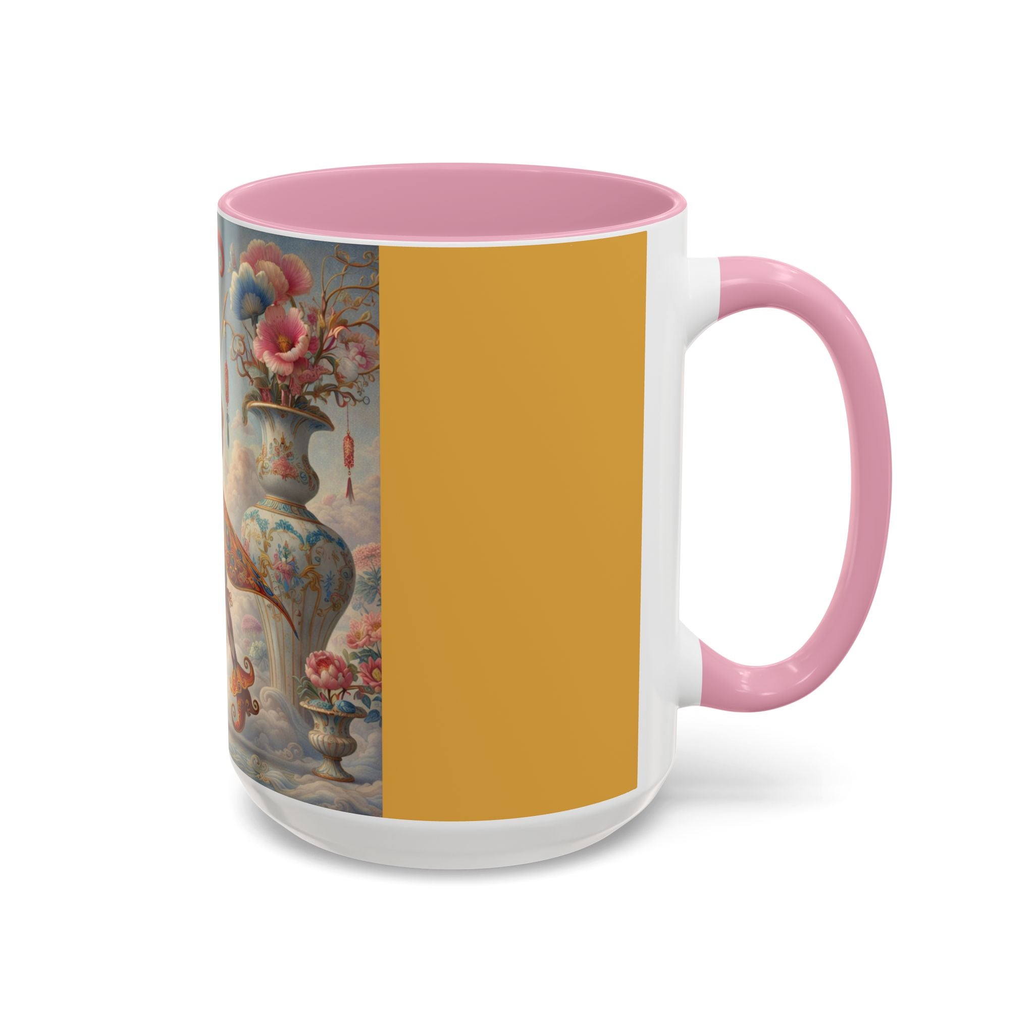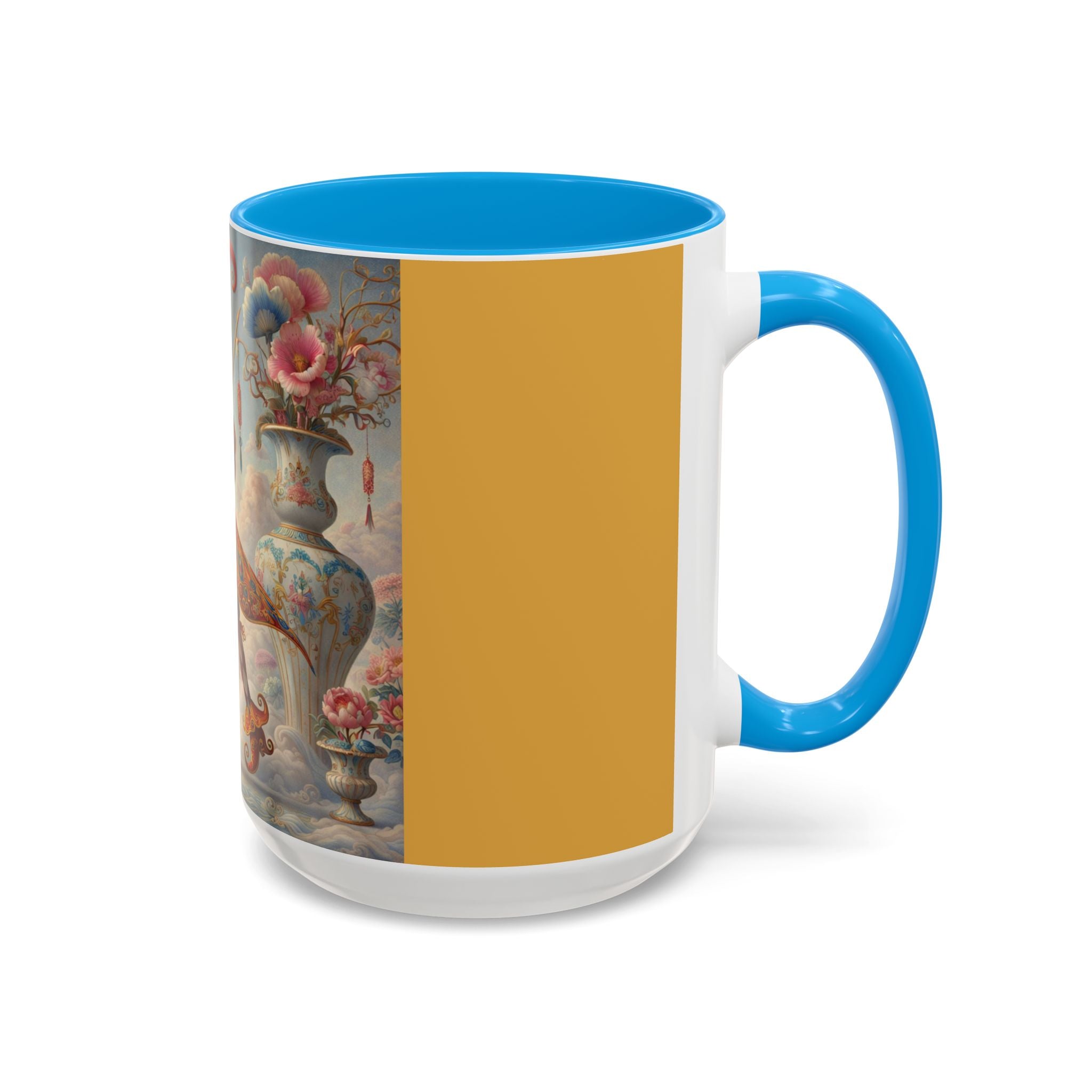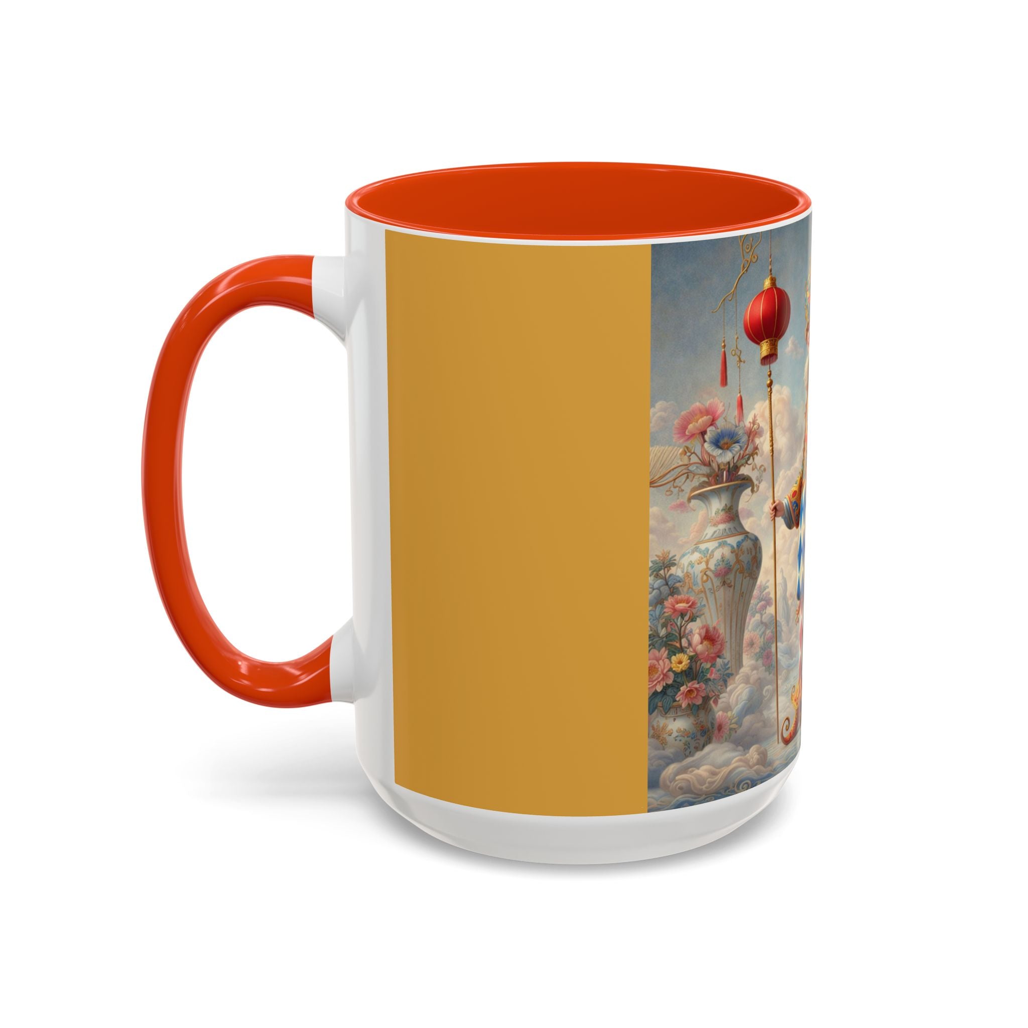 The Ornamental Jester Colorful Mugs (11oz, 15oz) bring everyday ritual and refined artistry together, turning your morning coffee or afternoon tea into a moment of quiet theater. Crafted from glossy ceramic and finished with a colored handle and interior, these mugs are available in two practical sizes and twelve accent colors, making them as expressive as they are functional. As you lift the mug, the artwork reveals a poised jester figure—elegant rather than comedic—rendered in porcelain whites, soft blush, and muted pastels, where ornamental costume details and floral accents suggest ceremony, balance, and curated beauty rather than spectacle. The result is a mug that feels timeless, decorative, and thoughtfully composed, perfect for both daily use and display.