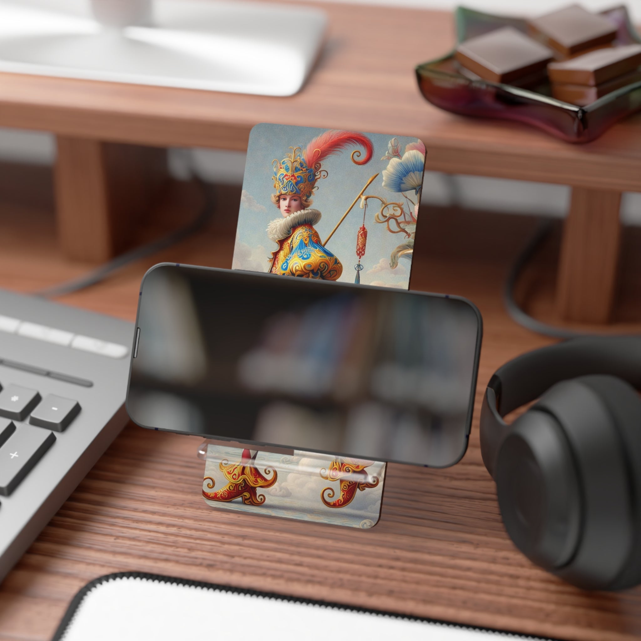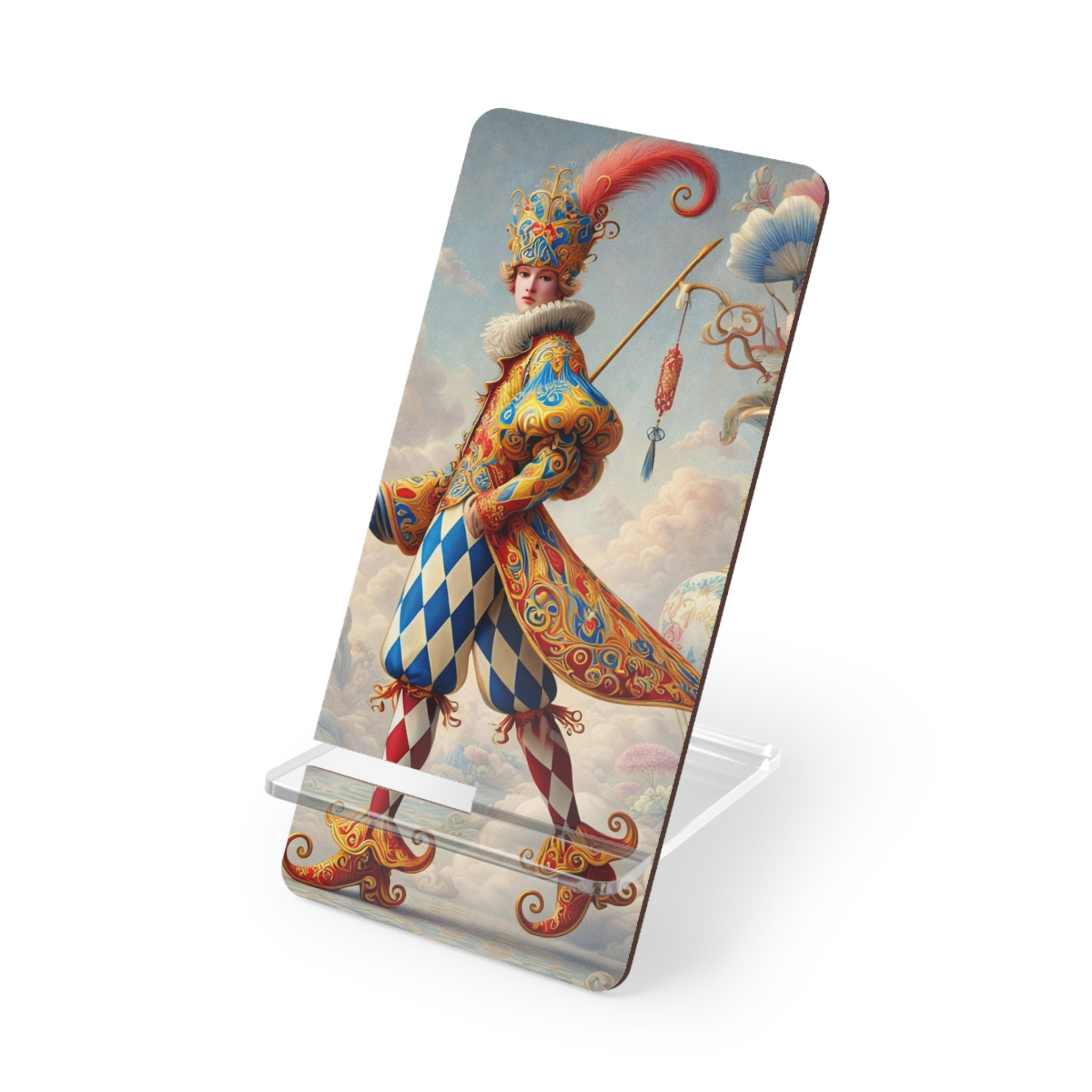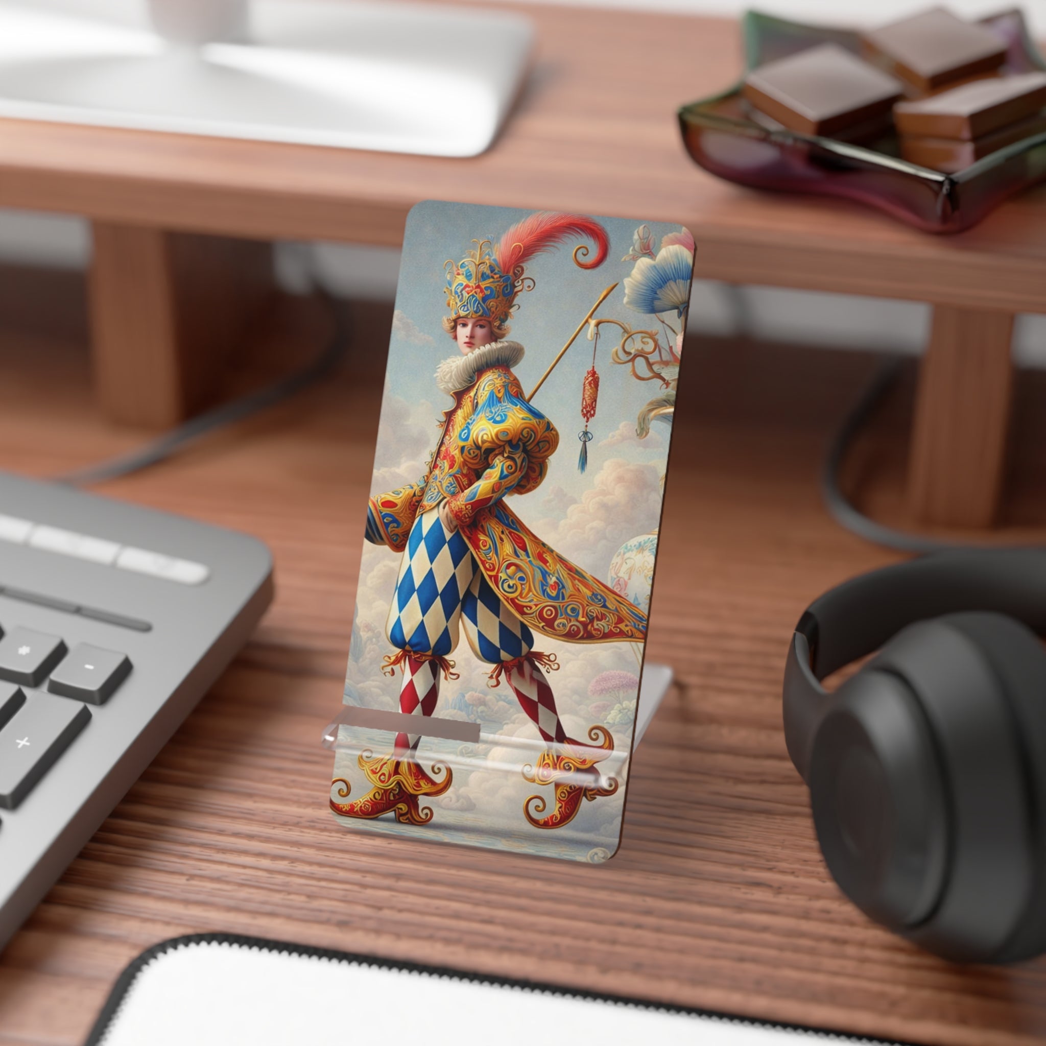 The Ornamental Jester Mobile Display Stand for Smartphones blends practical desk functionality with refined decorative art, making it an ideal companion for mobile browsing, video calls, or hands-free viewing. Designed to double as a compact décor piece, the stand assembles quickly from two pieces and provides stable, wobble-free support wherever you place it—on a desk, nightstand, or while traveling. Its glossy surface turns an everyday tech accessory into a small visual statement.