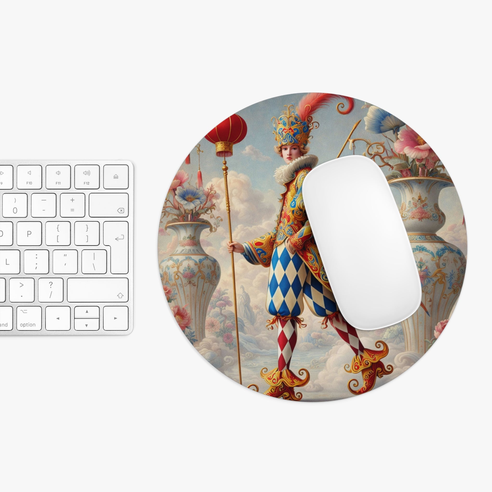 The Ornamental Jester Mouse Pad brings theatrical luxury and playful charm to your workspace, turning everyday scrolling into a miniature stage of art. Available in two shapes—round or rectangular—this mouse pad is any laptop’s dream companion, designed to breathe color into a cubicle, workspace, or home office. The neoprene construction with a non-slip rubber bottom helps prevent slips and mishaps while keeping your desk setup comfortable and dependable.