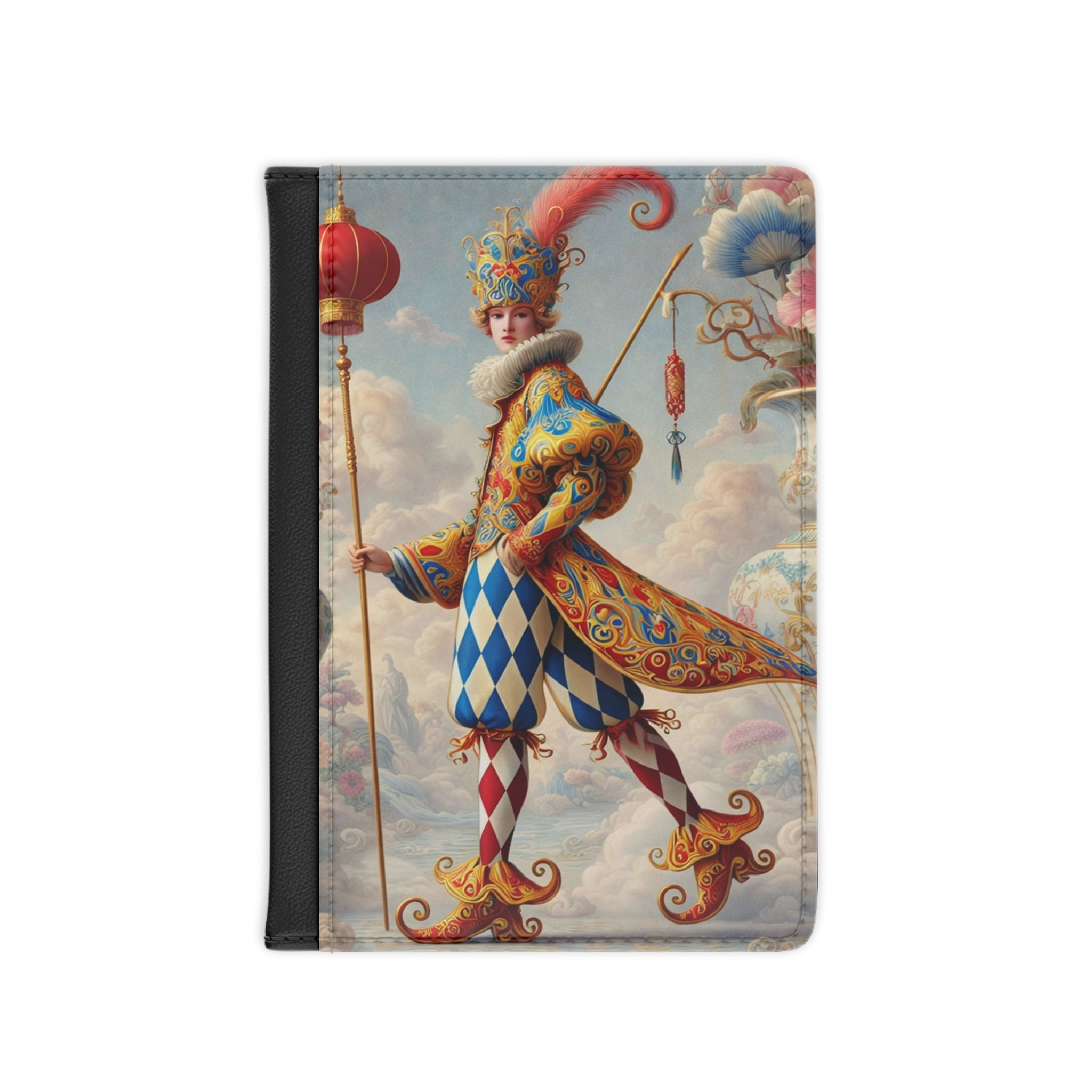 The Ornamental Jester Passport Cover is designed as a refined travel essential that blends everyday practicality with theatrical artistry, making it an elegant companion for journeys abroad and a distinctive gift for travelers who appreciate art-driven design. Crafted from smooth PU faux leather, it offers a luxurious feel while keeping important documents organized, protected, and close at hand.