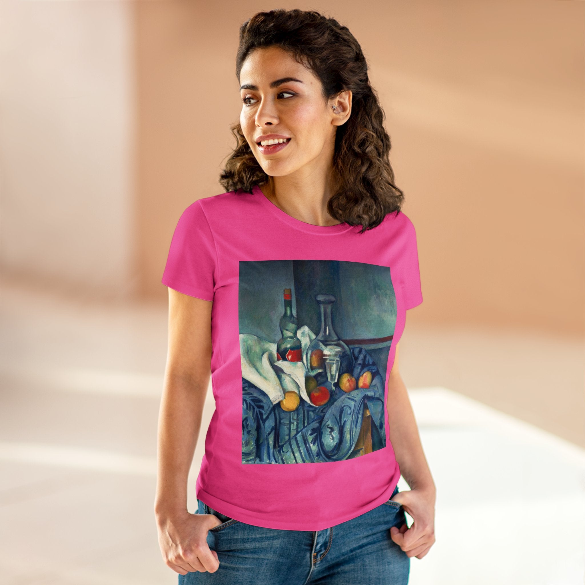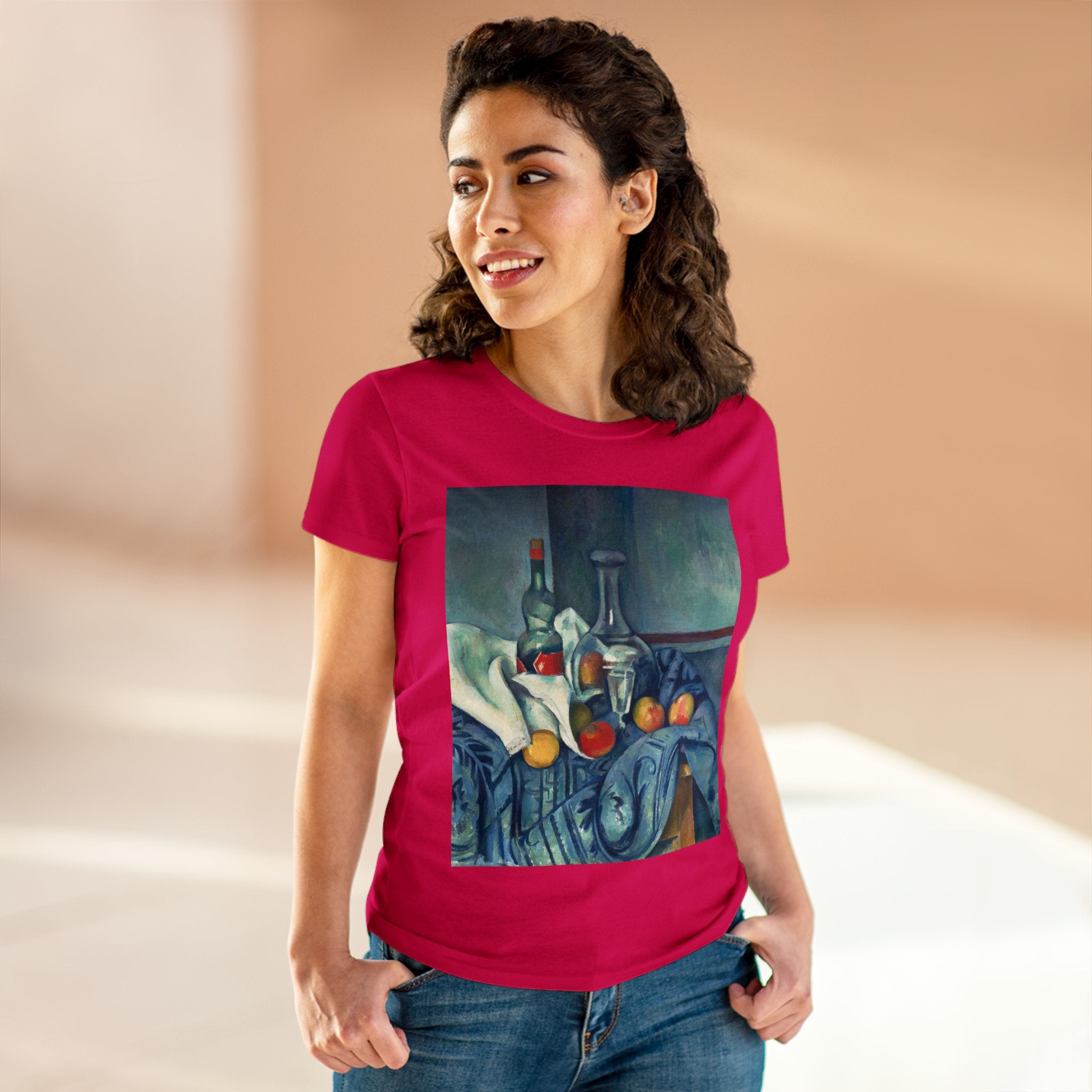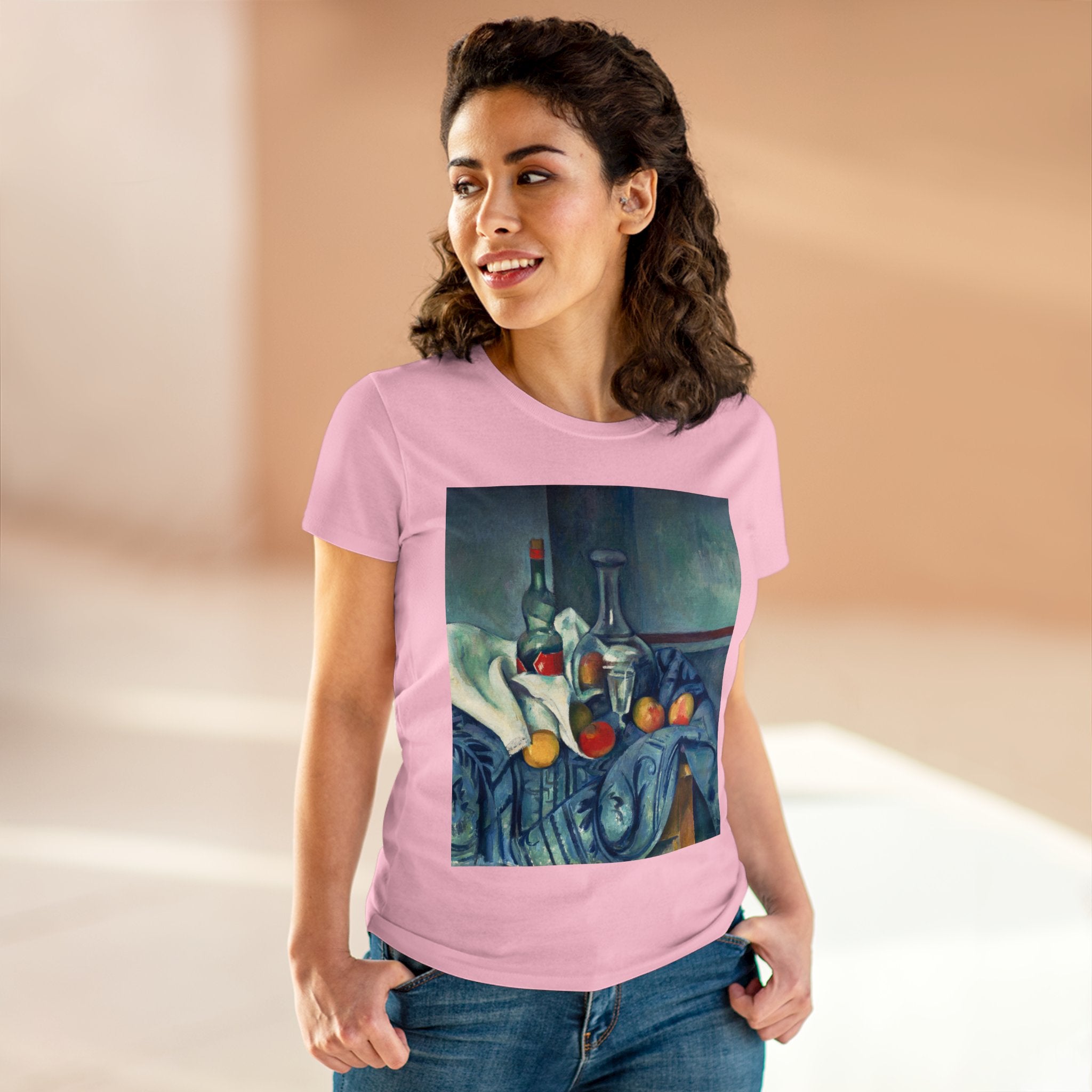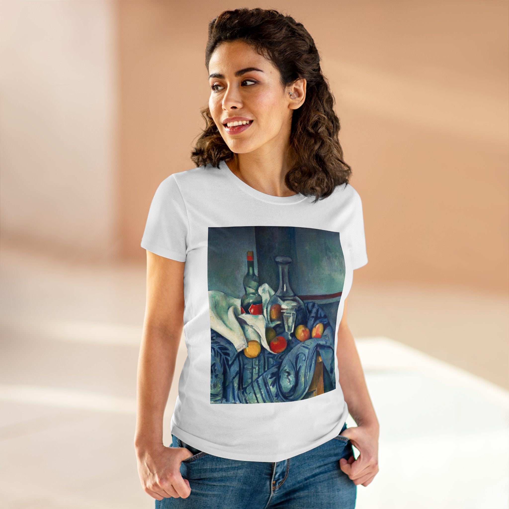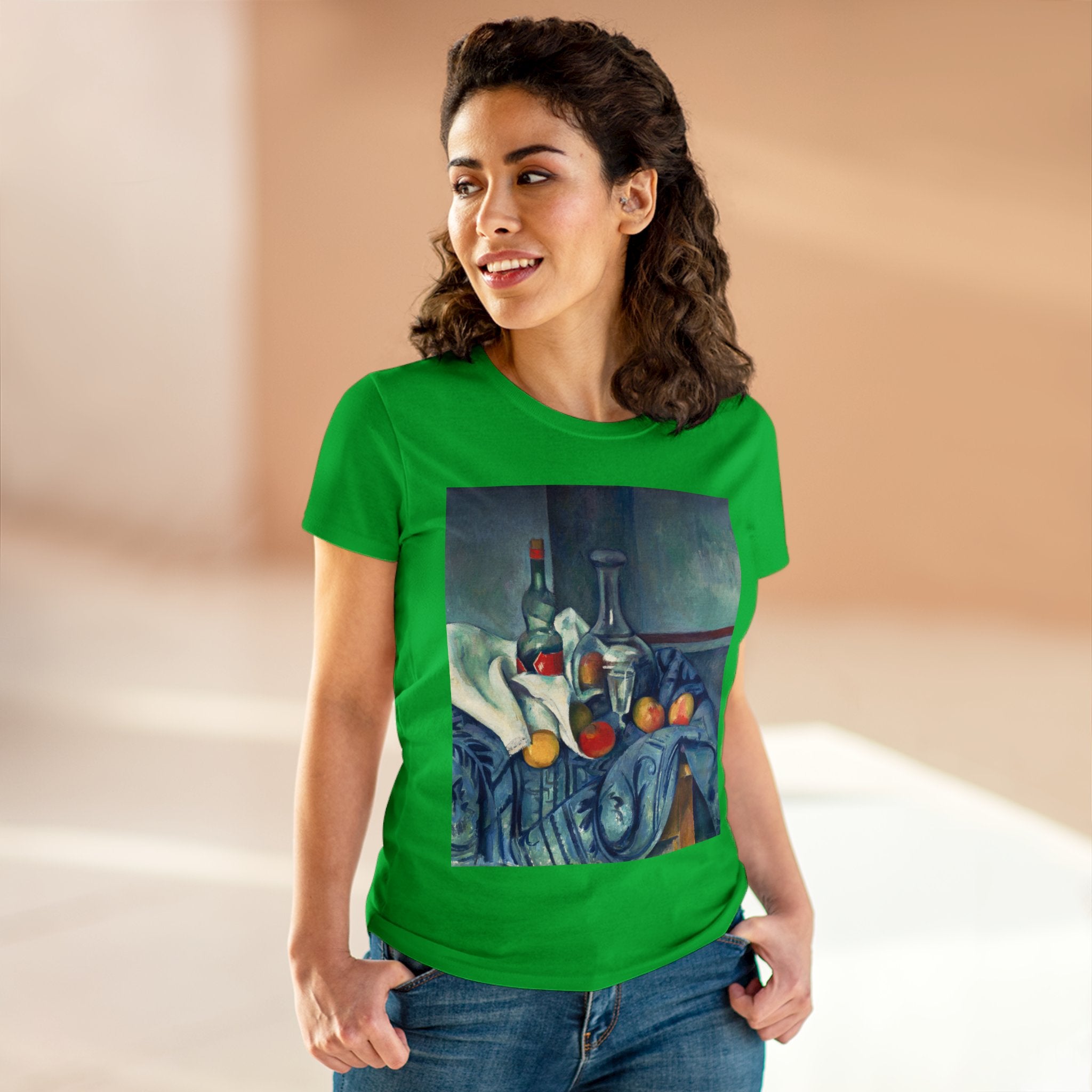 Artwork designed and digitally remastered by Sarasvati Designs. "The Peppermint Bottle" is an artwork created by the renowned French Post-Impressionist artist Paul Cézanne, believed to have been produced between 1893 and 1895. This painting is a striking example of Cézanne's innovative and influential style, which bridged the gap between Impressionism and the emergence of modern art in the 20th century. The painting presents a simple yet captivating still life composition. At the center of the artwork is a glass bottle containing peppermint liqueur. The bottle is placed on a table with a white tablecloth, and it is accompanied by other objects and utensils, such as a glass and a small dish. "The Peppermint Bottle," was highly influential in the development of modern art. His approach to form and space laid the groundwork for Cubism and other 20th-century art movements. This painting showcases his dedication to reimagining traditional still life through a modern lens.
