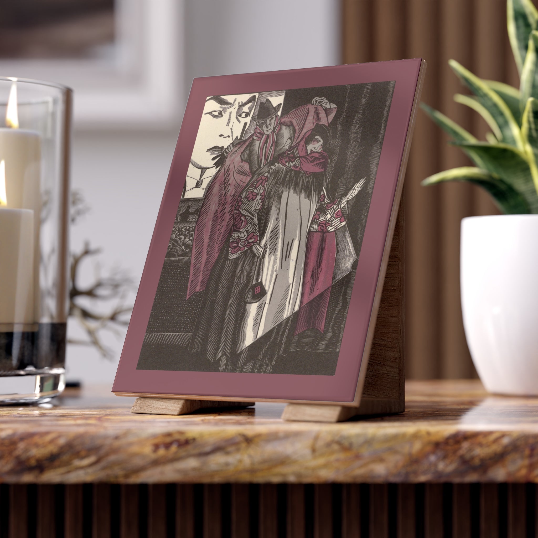 Artwork designed and digitally remastered by Sarasvati Designs. *L’écran* (1923) by Fernand Siméon captures a refined moment at the theater, where a fashionable couple prepares to leave the venue. To their right, a rich velvet curtain frames the scene, while in the background, a grand screen and an audience immersed in the performance create a sense of depth and ambiance. Below, an orchestra plays, completing the immersive theatrical experience. Siméon’s signature Art Deco-inspired style, with its elegant lines and sophisticated palette, enhances the charm of the era, blending fashion, entertainment, and societal elegance in a beautifully composed snapshot of 1920s cultural life.