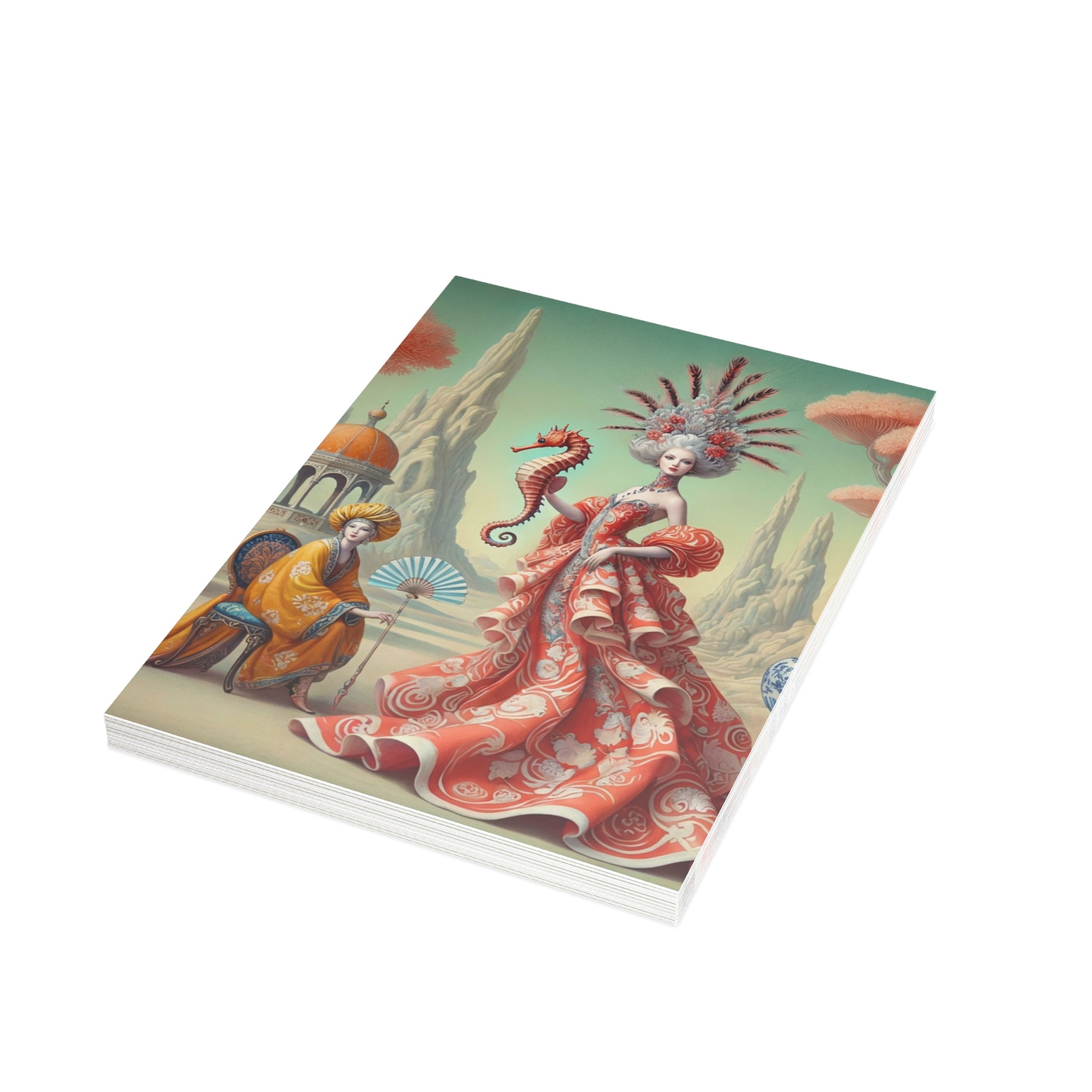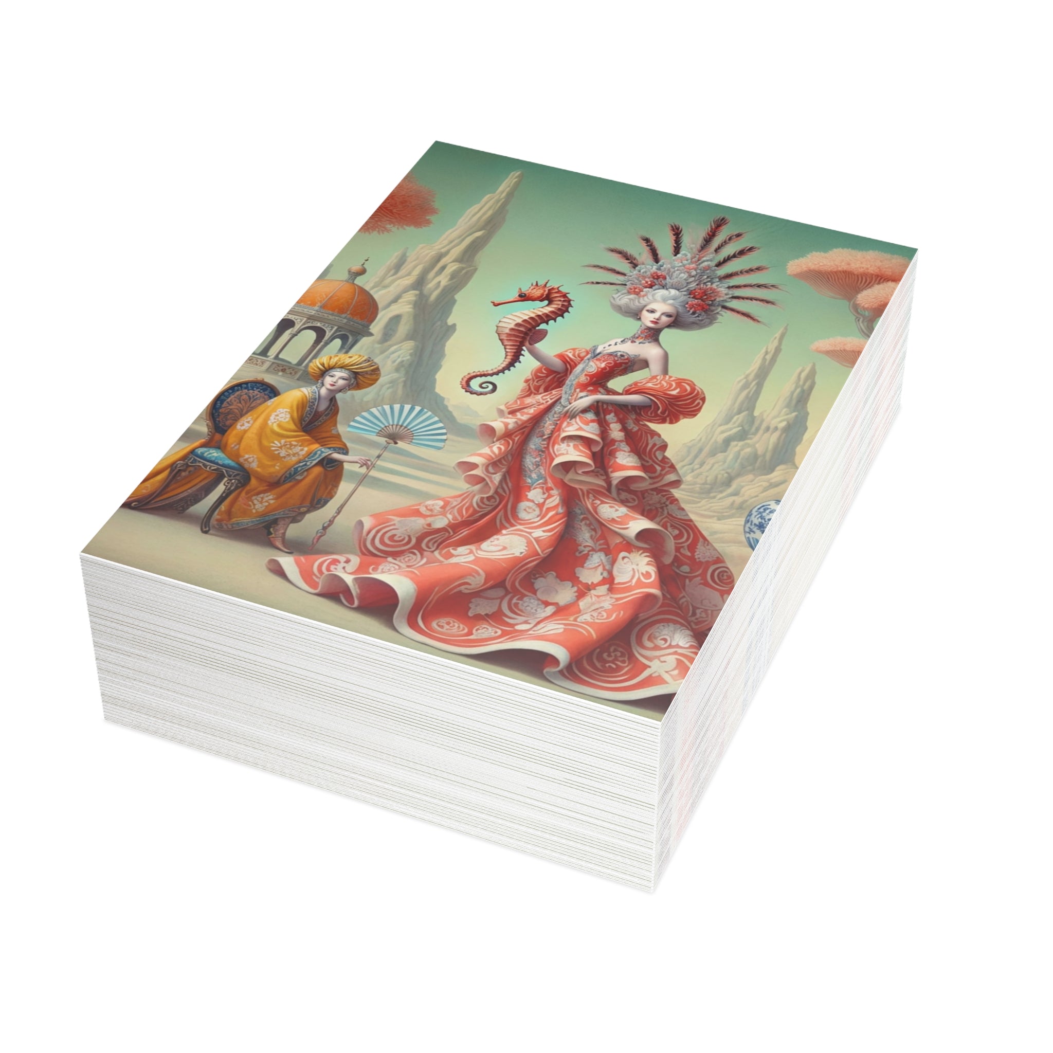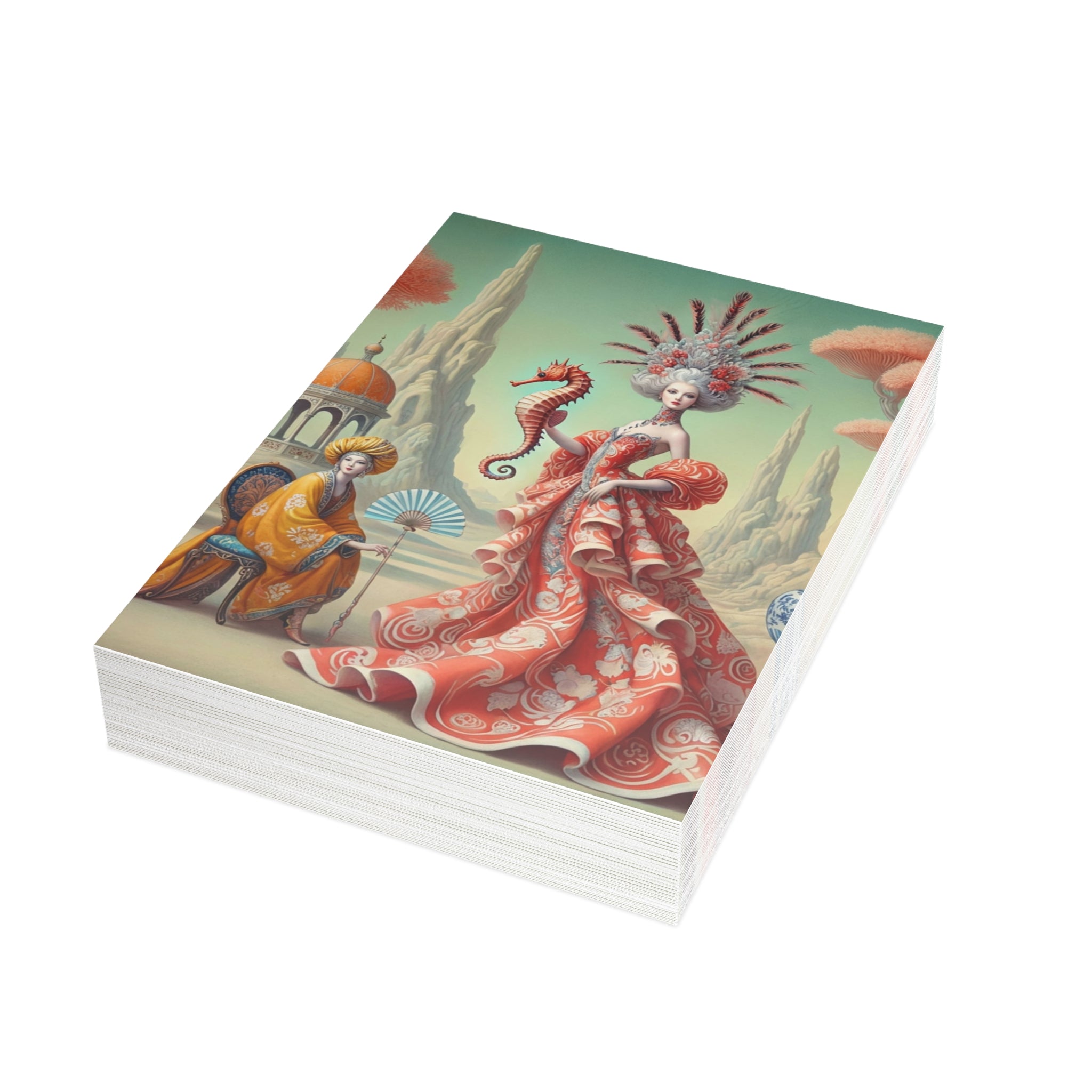 The Seahorse Court Postcard Bundles bring refined storytelling into a tangible, giftable format, offering beautifully printed postcards designed for correspondence, display, or collecting. Available in bundles of 10, 30, or 50 pieces and paired with envelopes, these postcards transform everyday mail into an elegant visual experience while showcasing a richly detailed artwork.