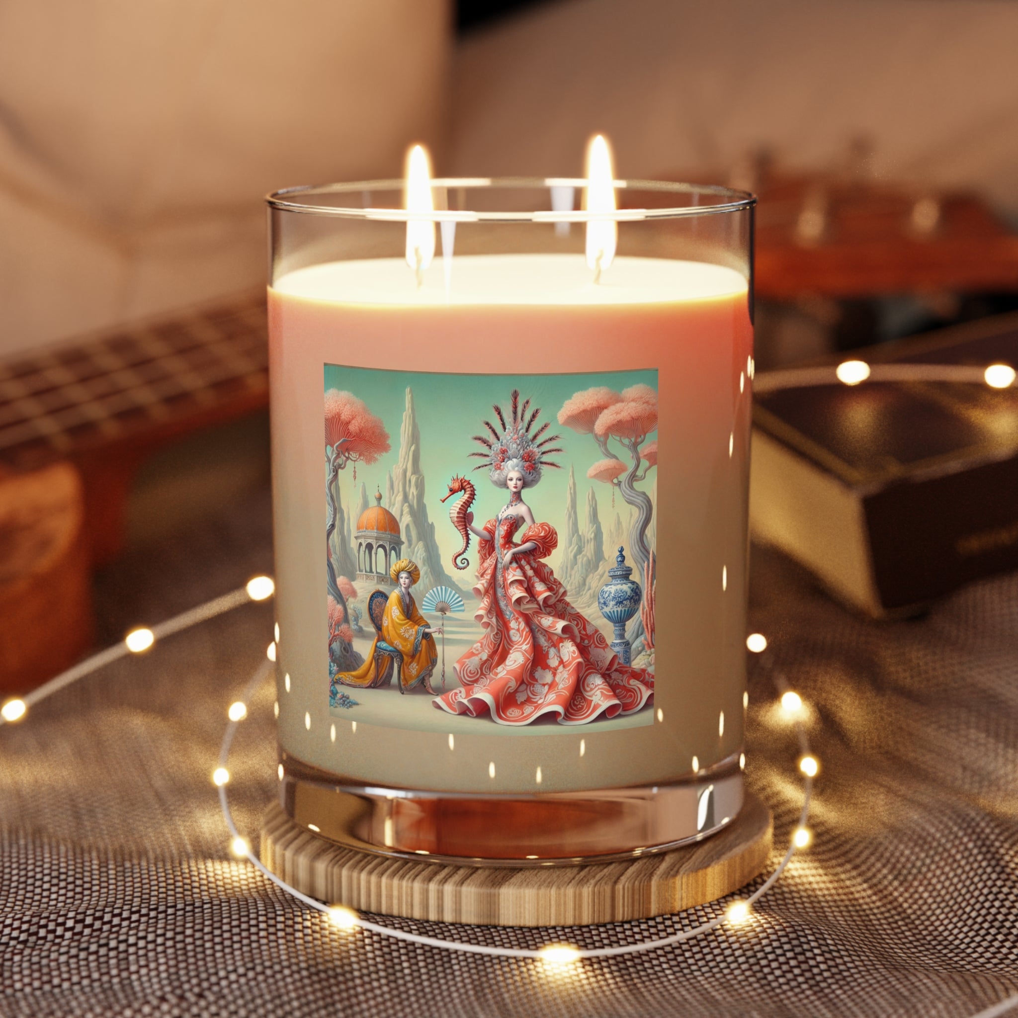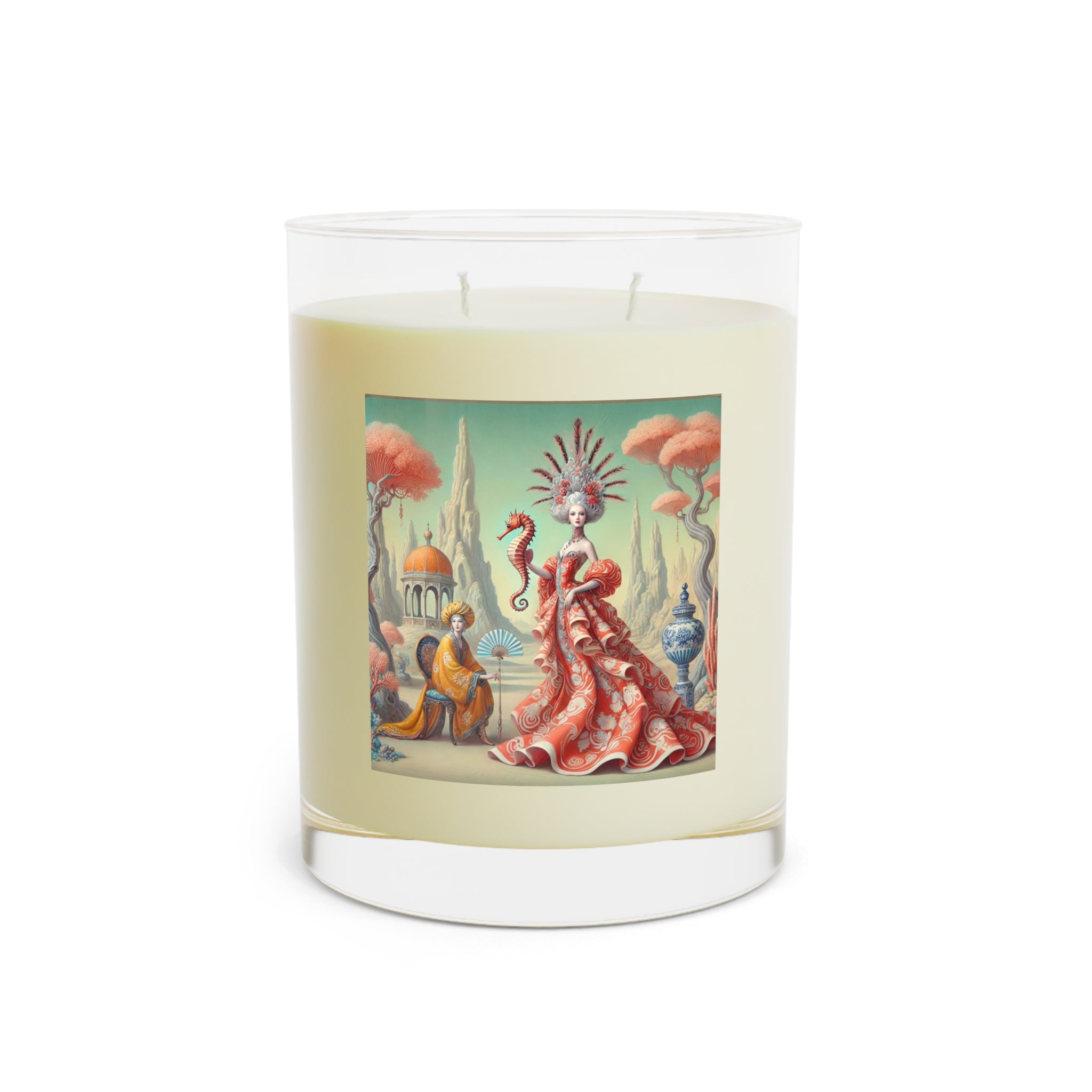 The Seahorse Court Scented Candle – Full Glass, 11oz brings atmosphere, artistry, and calm into your space through a refined blend of scent and imagery. This 11oz Seventh Avenue candle is crafted from 100% food-grade soy wax with premium fragrance oils, designed to burn cleanly for up to 65 hours while adding a sculptural, gallery-like presence to your home. Offered in White Tea & Fig, Lavender & Sage, and Ocean Mist & Moss, each scent complements the serene, ceremonial tone of The Seahorse Court, transforming everyday aromatherapy into a quiet ritual.
