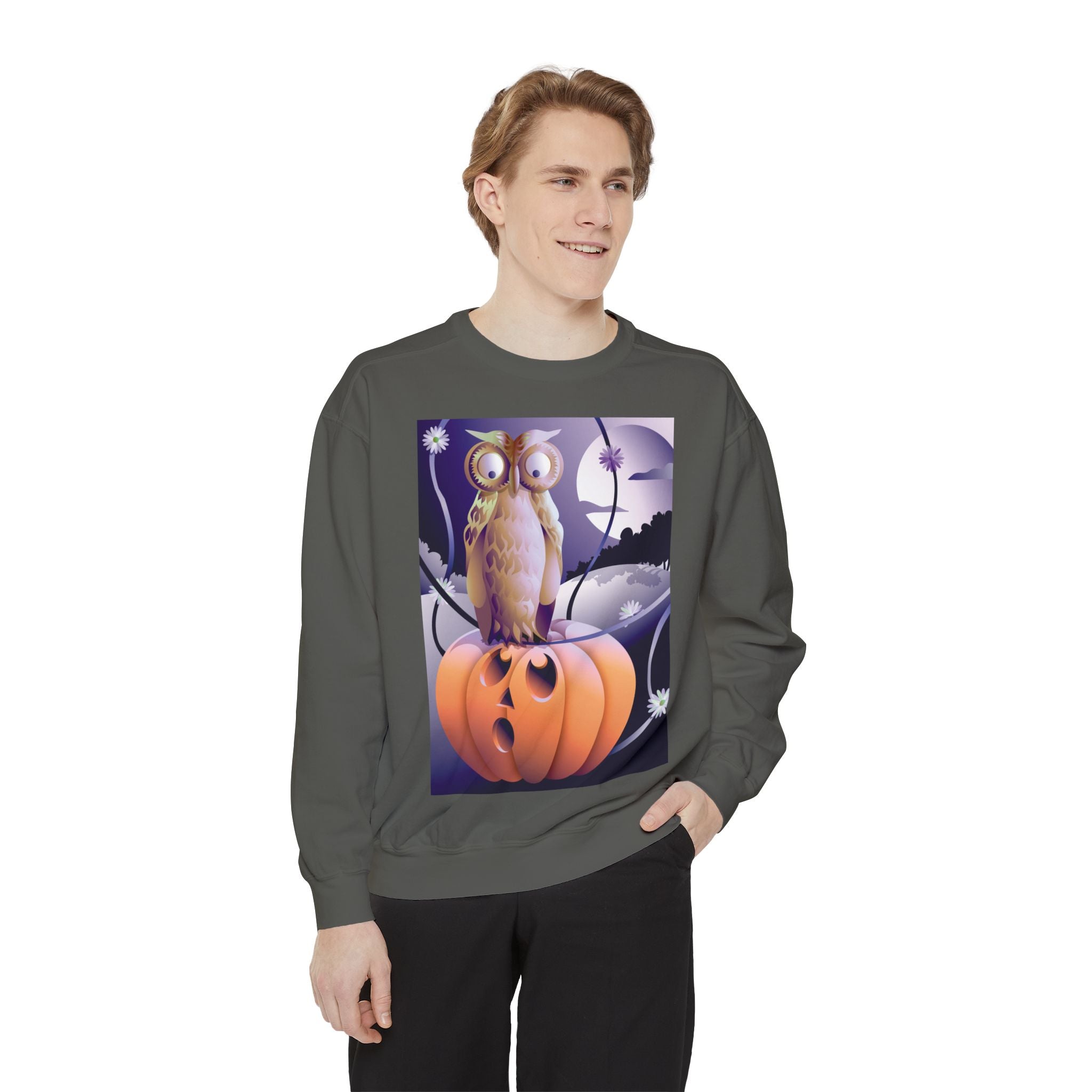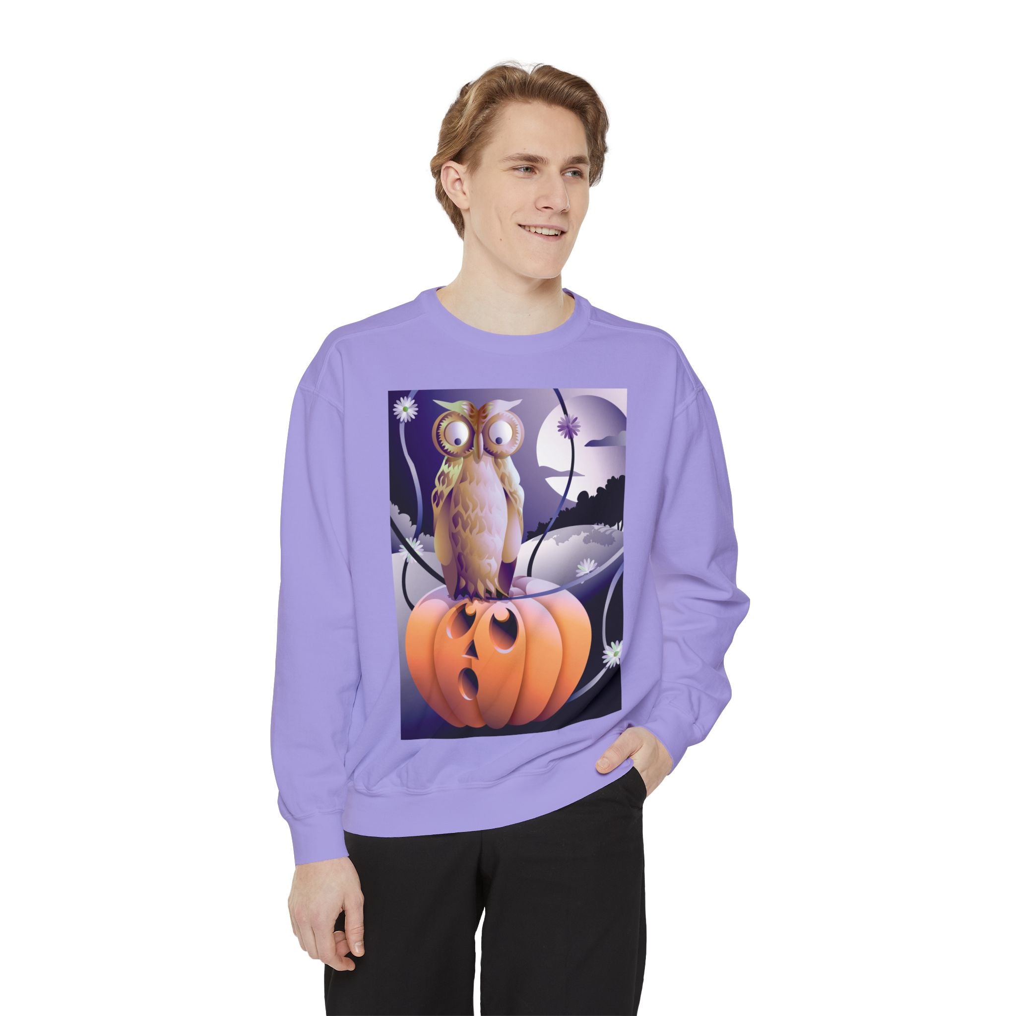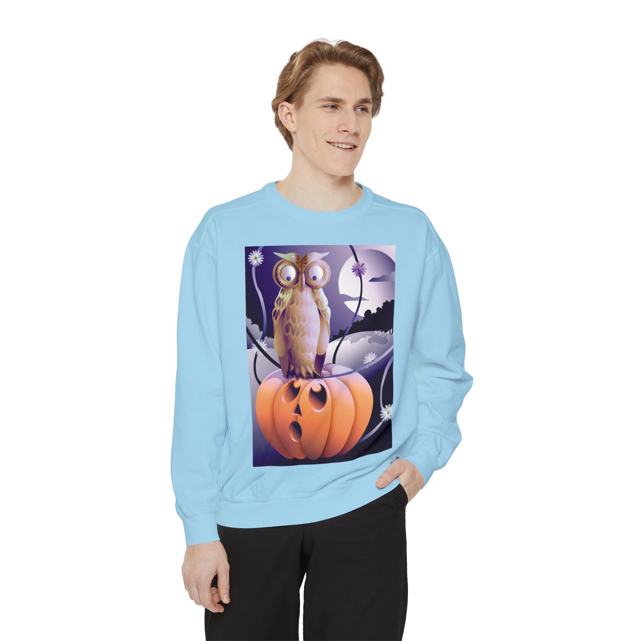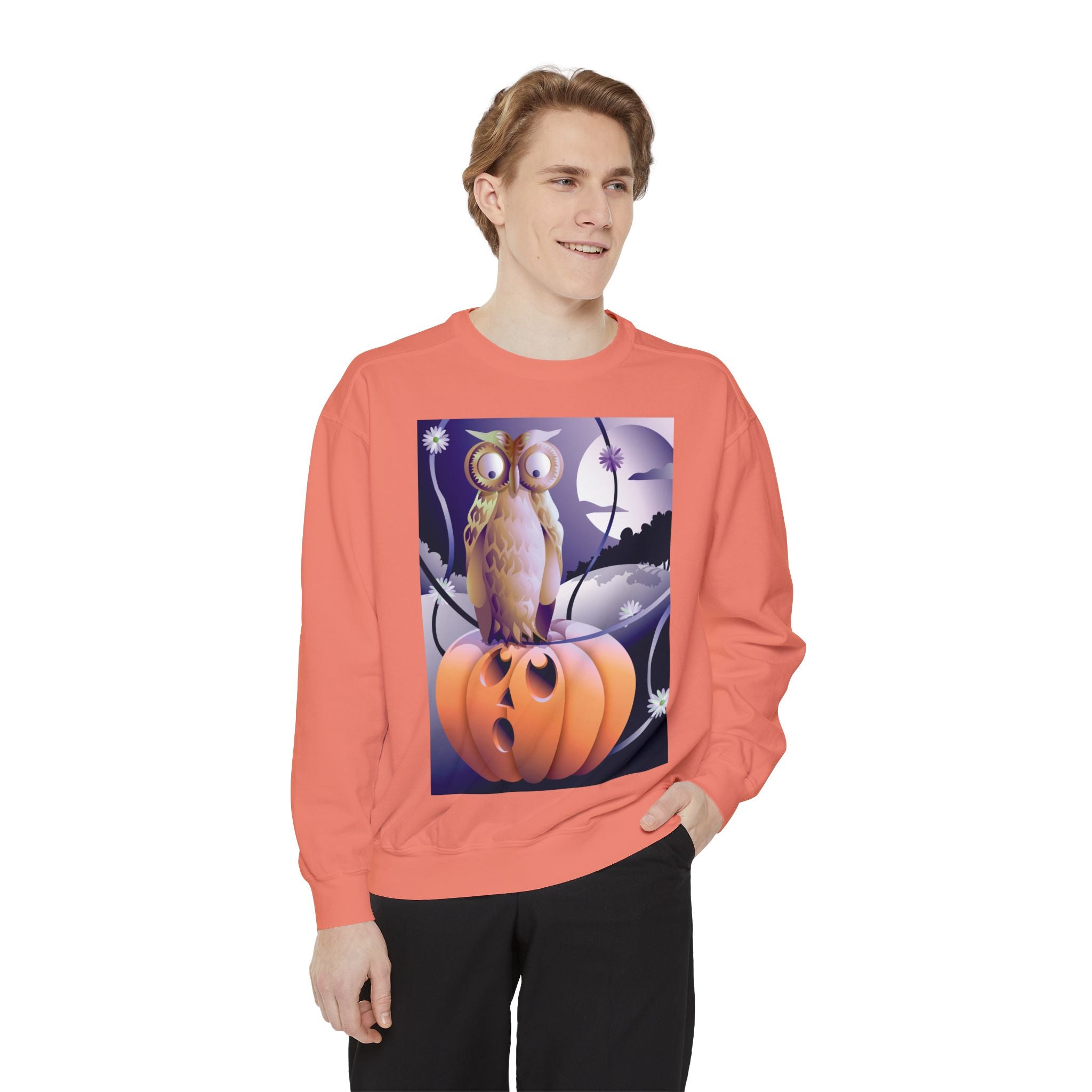 Embrace the Halloween season with luxurious comfort and style in this unisex, garment-dyed sweatshirt. Crafted from 80% ring-spun cotton and 20% polyester, this sweatshirt features a 3-end garment-dyed, ring-spun, color-blast fleece with a 100% cotton face, perfect for showcasing festive Halloween designs. With a relaxed fit, rolled-forward shoulder, and back neck patch, this sweatshirt combines cozy warmth with a touch of spooky flair, making it an ideal choice for all your Halloween activities.