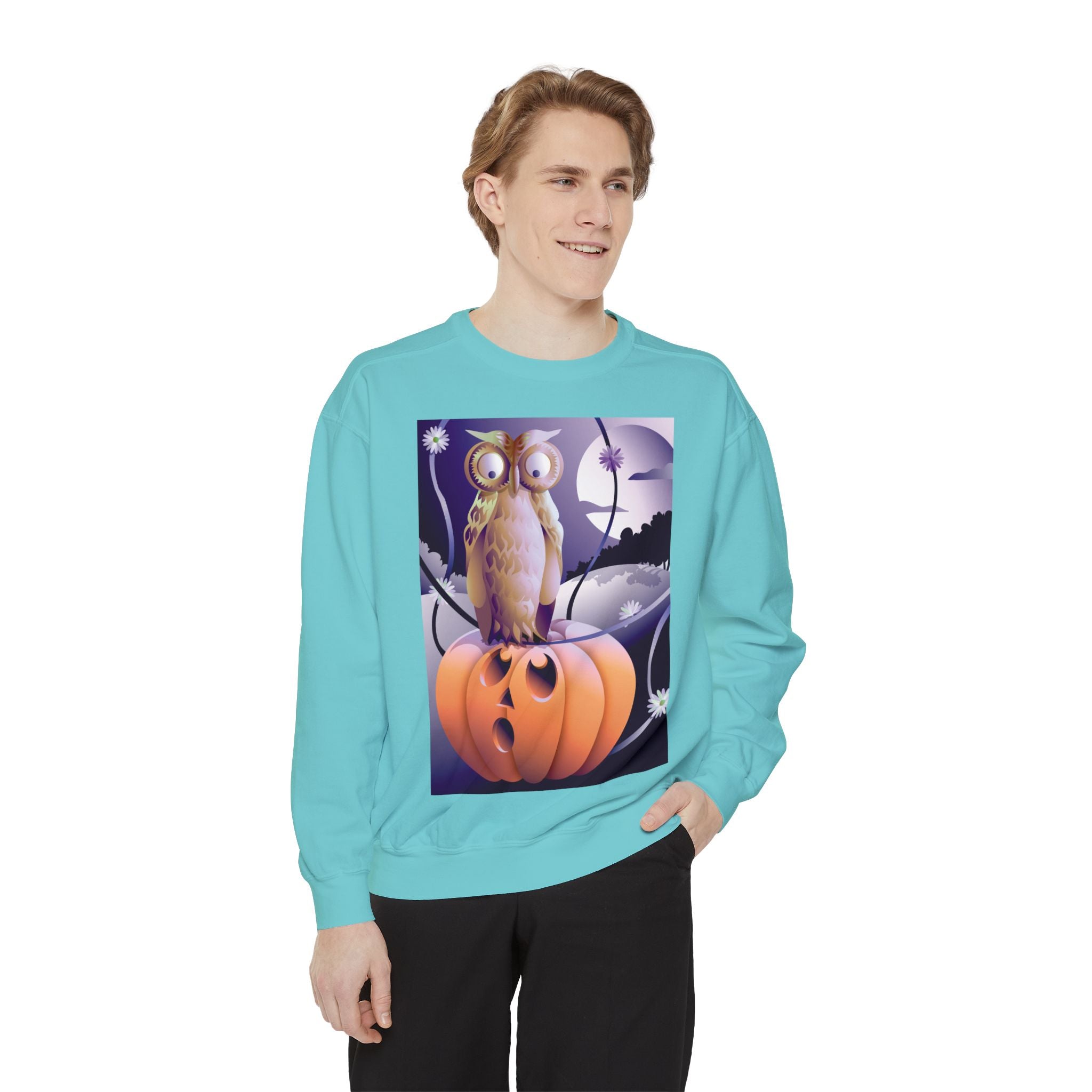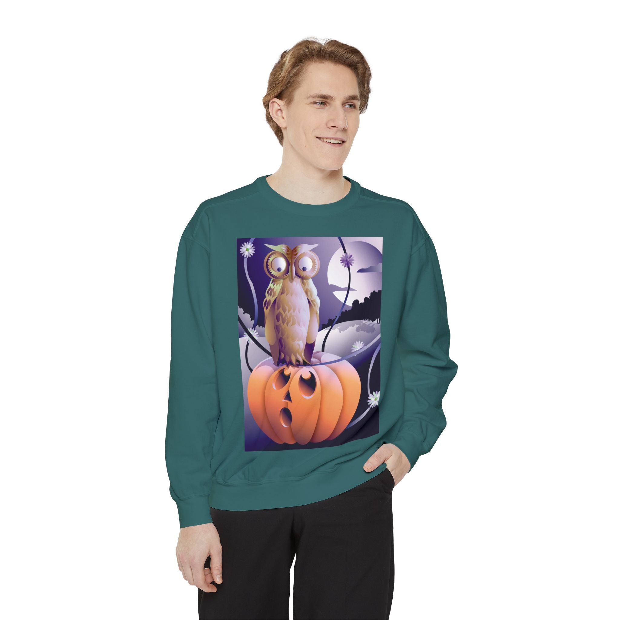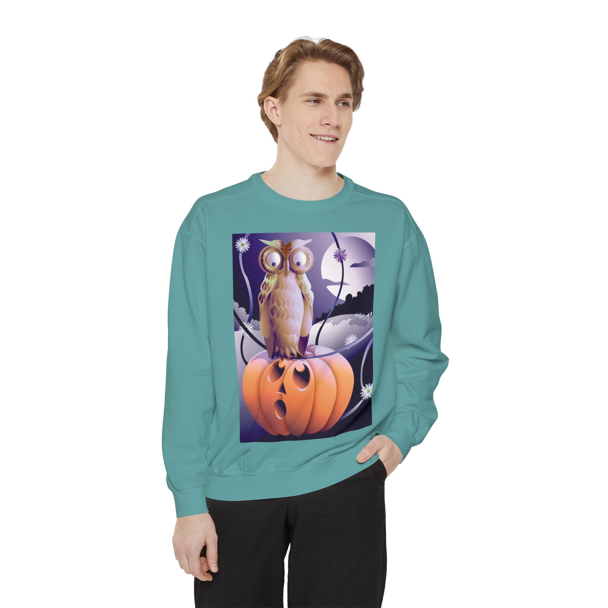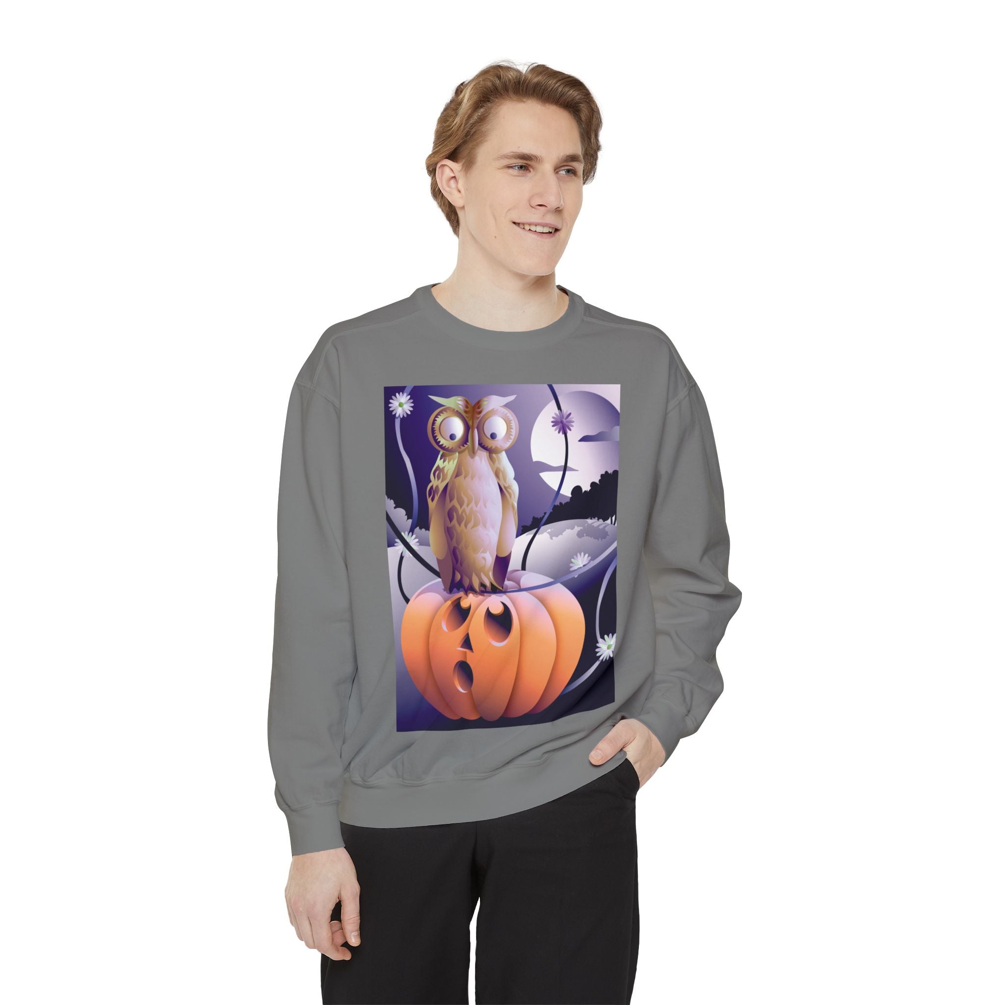 Embrace the Halloween season with luxurious comfort and style in this unisex, garment-dyed sweatshirt. Crafted from 80% ring-spun cotton and 20% polyester, this sweatshirt features a 3-end garment-dyed, ring-spun, color-blast fleece with a 100% cotton face, perfect for showcasing festive Halloween designs. With a relaxed fit, rolled-forward shoulder, and back neck patch, this sweatshirt combines cozy warmth with a touch of spooky flair, making it an ideal choice for all your Halloween activities.
