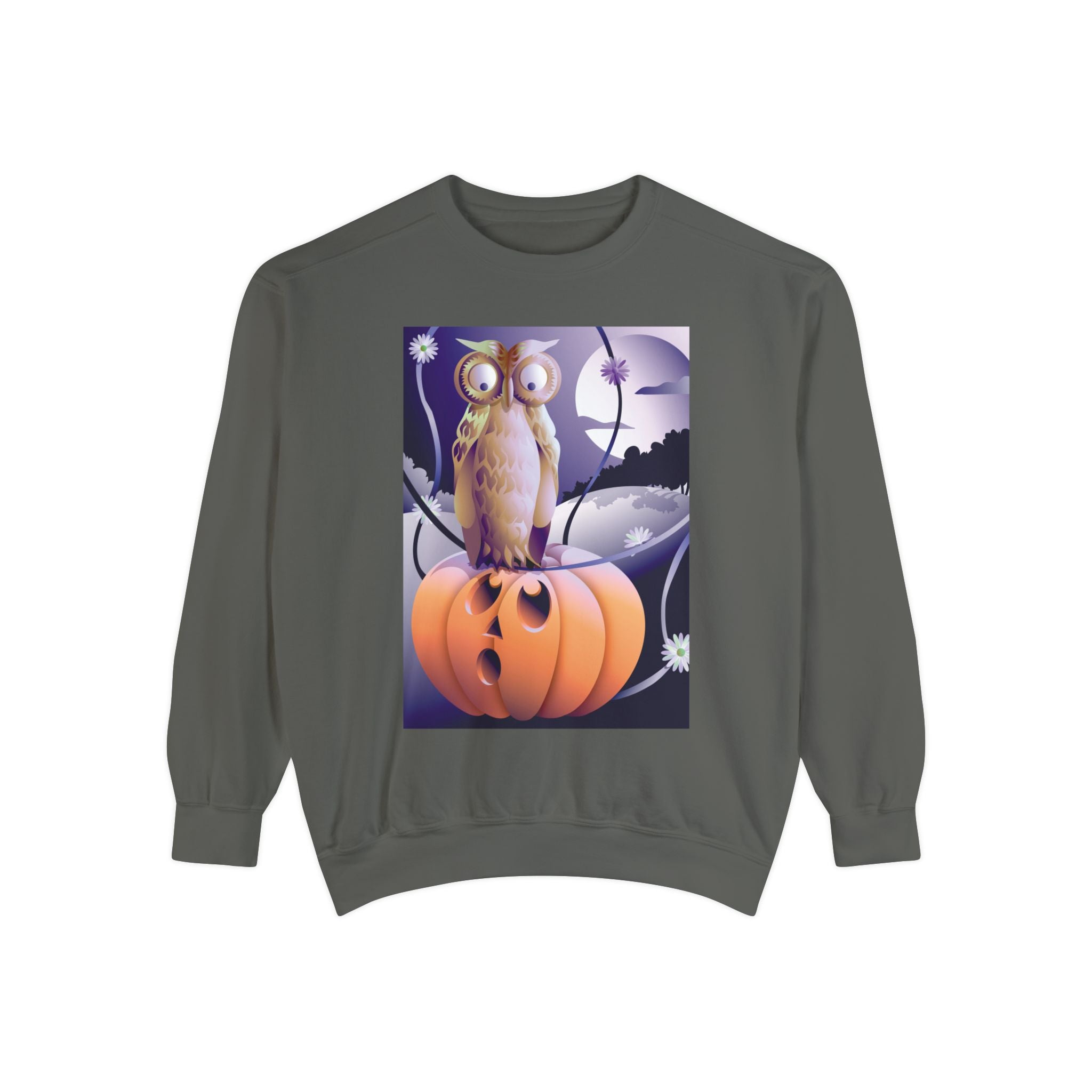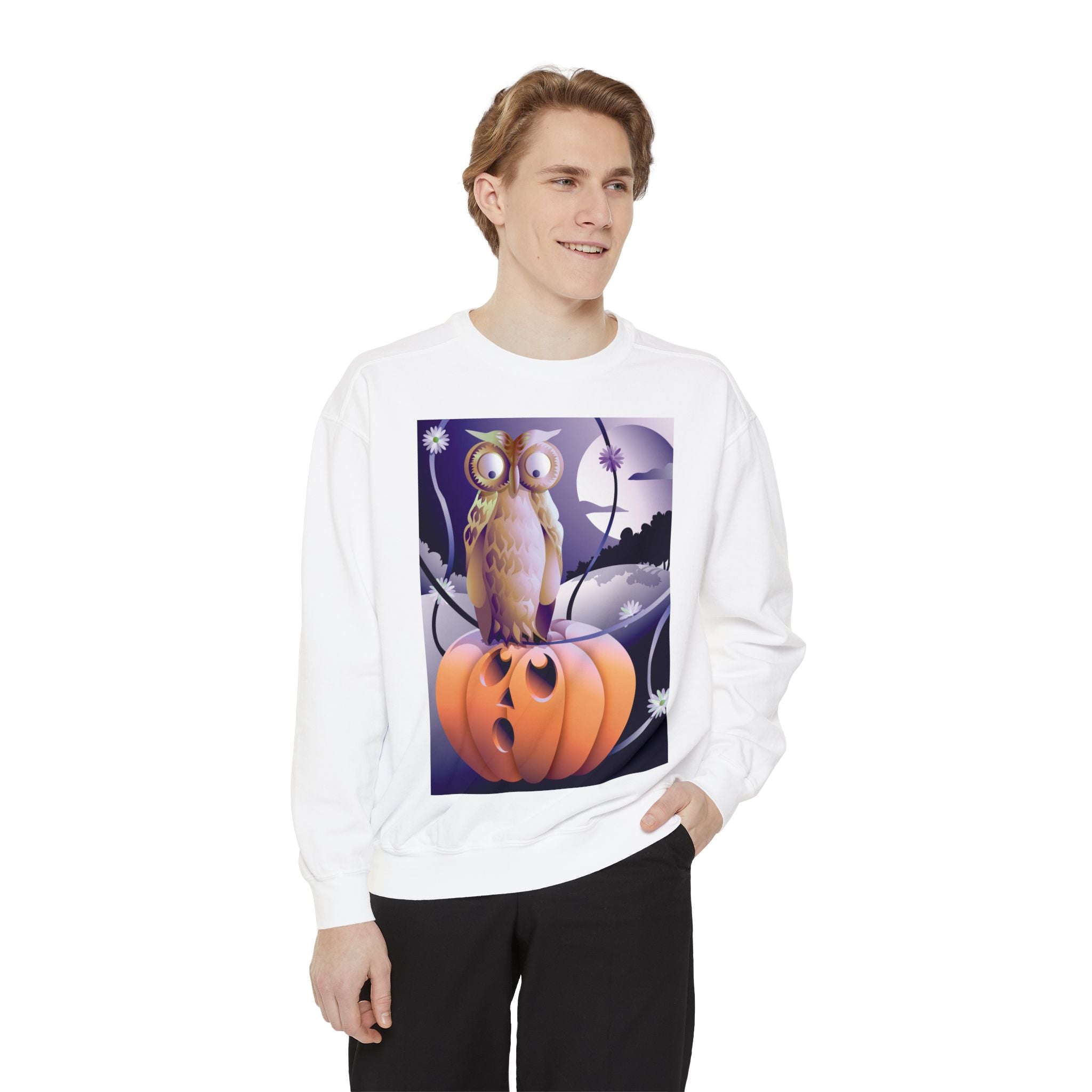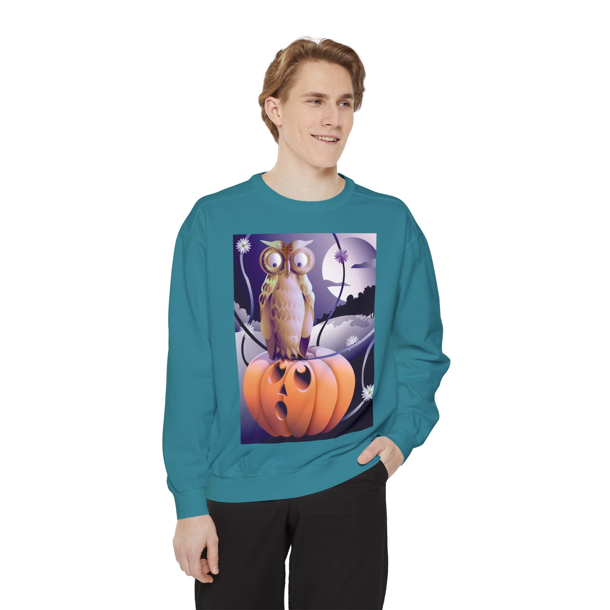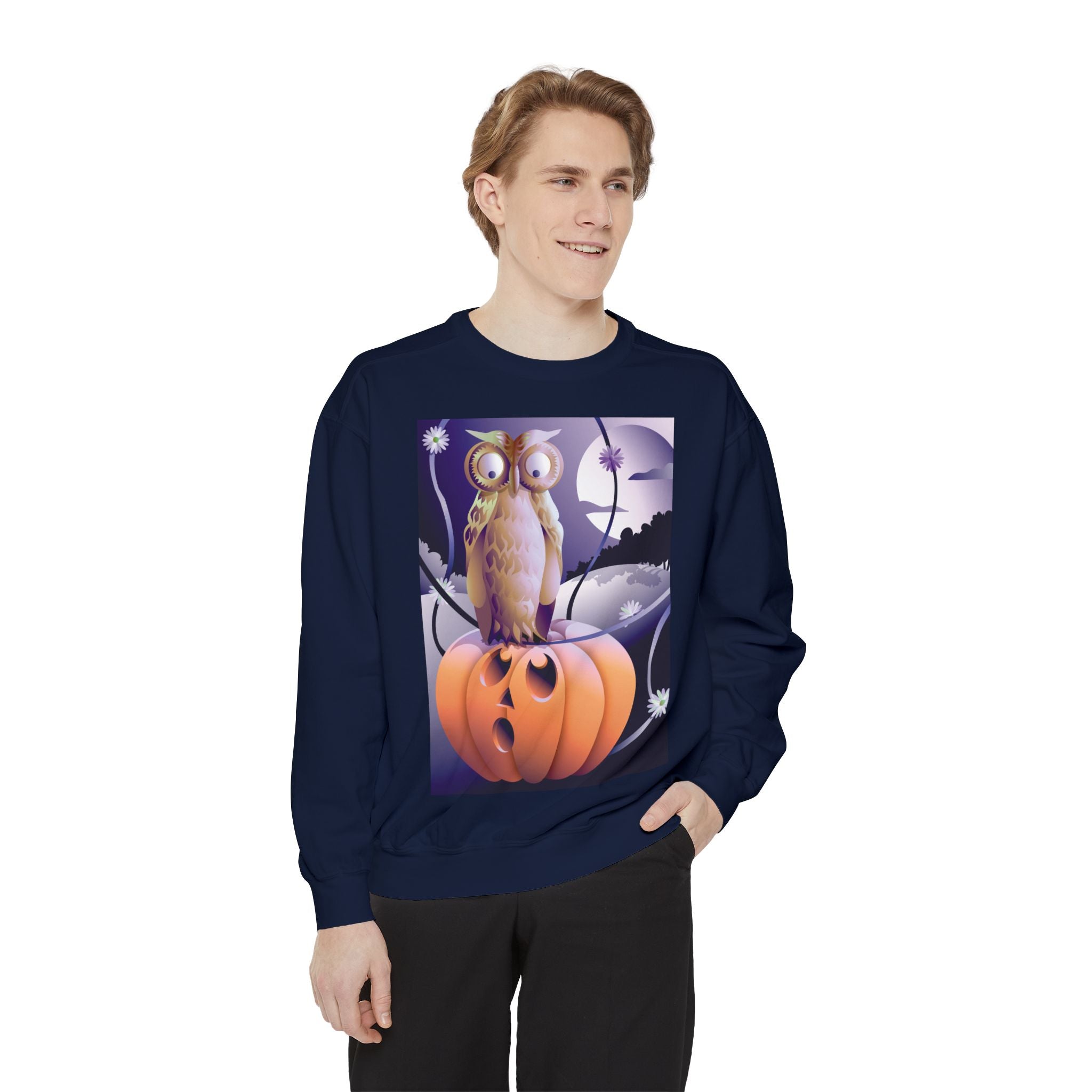 Embrace the Halloween season with luxurious comfort and style in this unisex, garment-dyed sweatshirt. Crafted from 80% ring-spun cotton and 20% polyester, this sweatshirt features a 3-end garment-dyed, ring-spun, color-blast fleece with a 100% cotton face, perfect for showcasing festive Halloween designs. With a relaxed fit, rolled-forward shoulder, and back neck patch, this sweatshirt combines cozy warmth with a touch of spooky flair, making it an ideal choice for all your Halloween activities.
