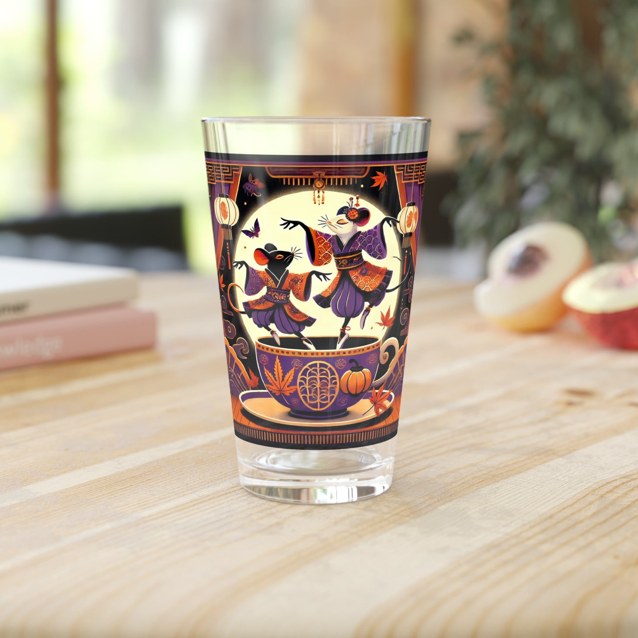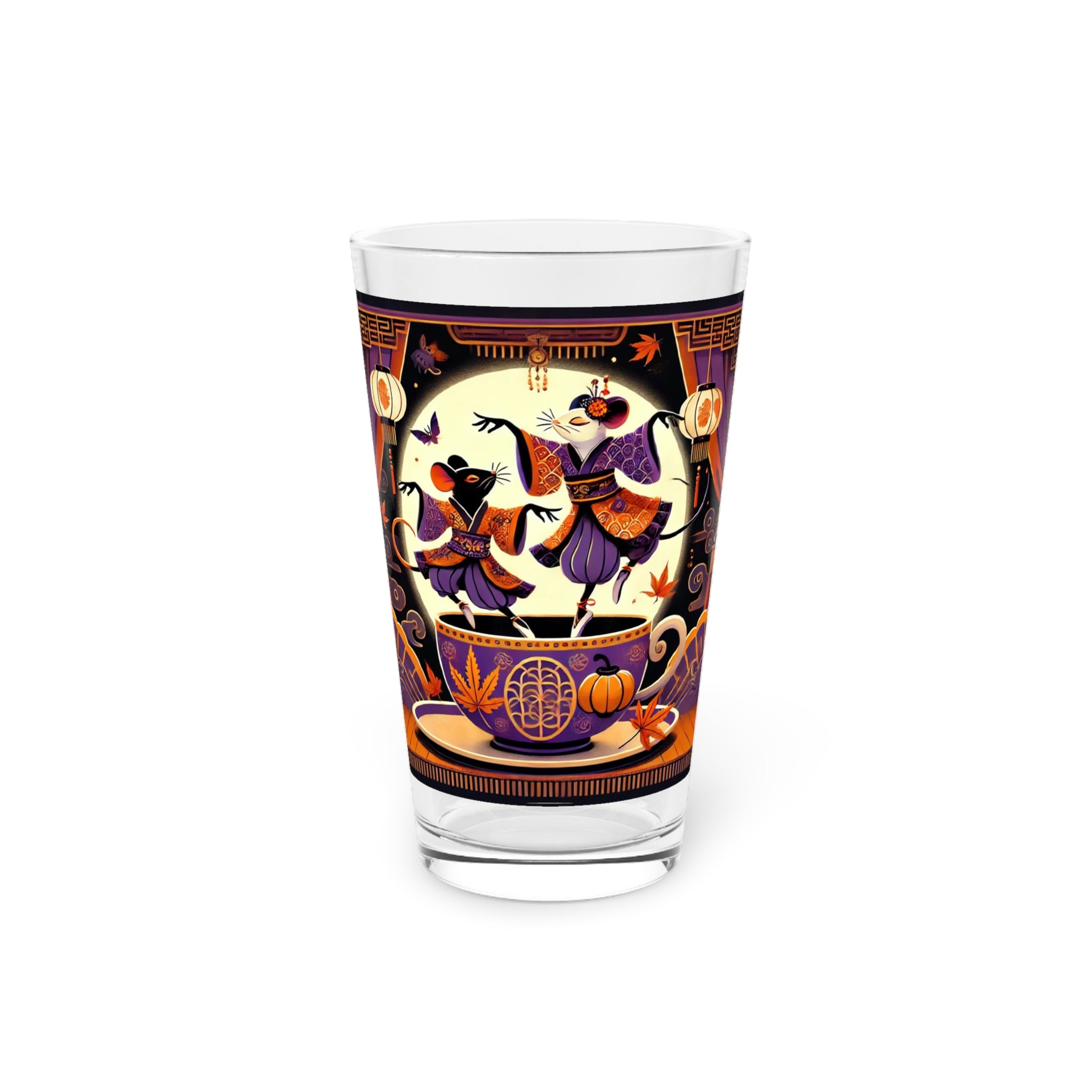 Bring a touch of theatrical whimsy to your table with this 16oz pint glass, perfect for everything from casual drinks to festive gatherings. Crafted with a long, transparent form, it’s both practical and versatile—ideal as a housewarming gift or everyday favorite. The design showcases two Kabuki-inspired mice dancing playfully on the rim of a decorated teacup, blending bold artistry with Halloween charm. The result is a functional glassware piece that doubles as a conversation-starting work of art, alive with drama and delight.