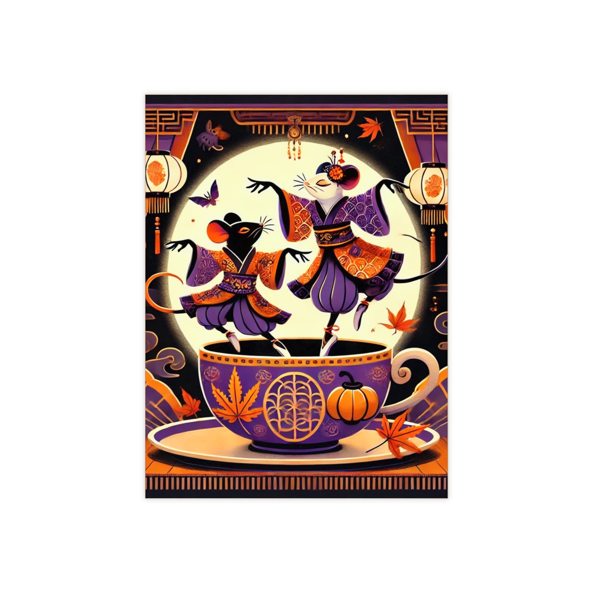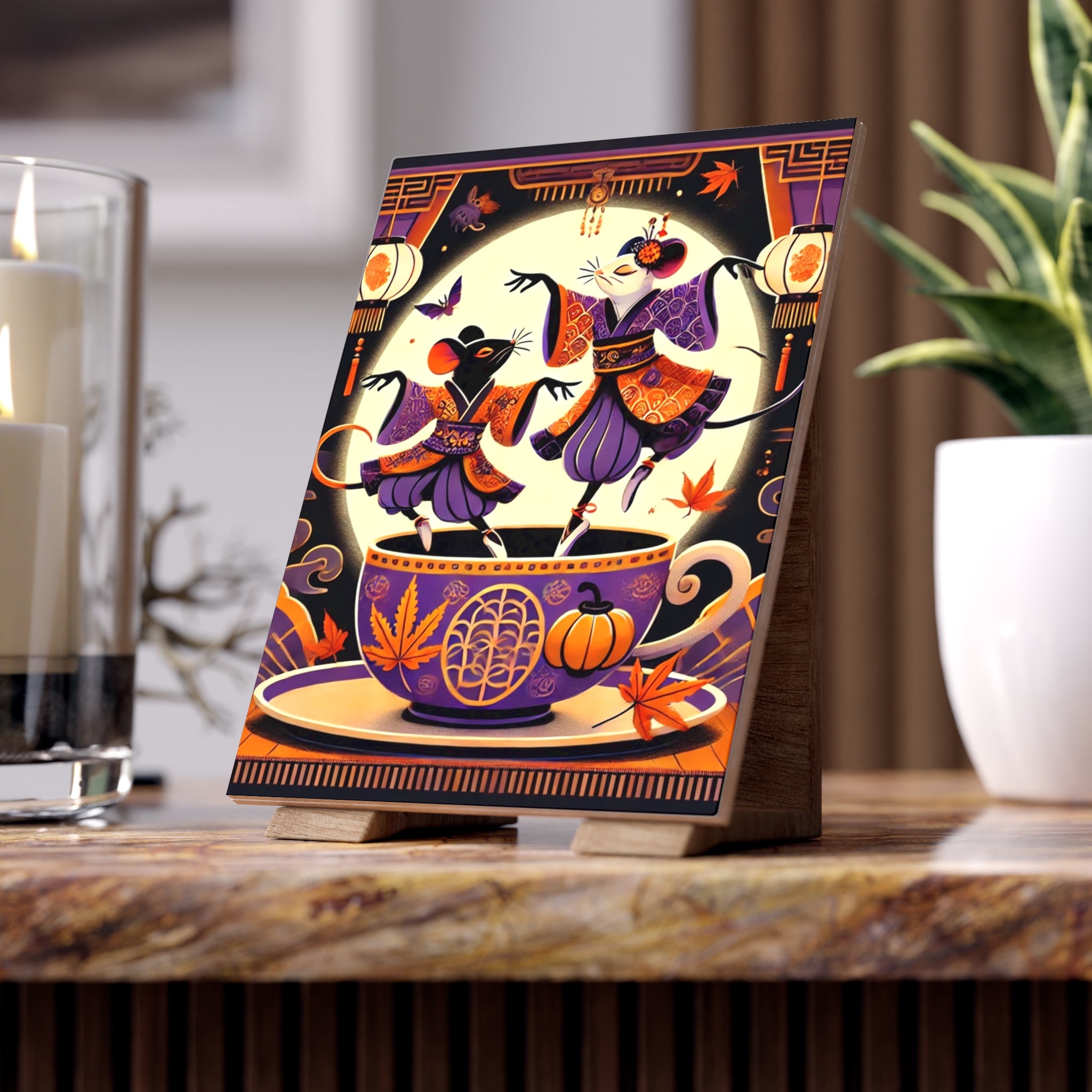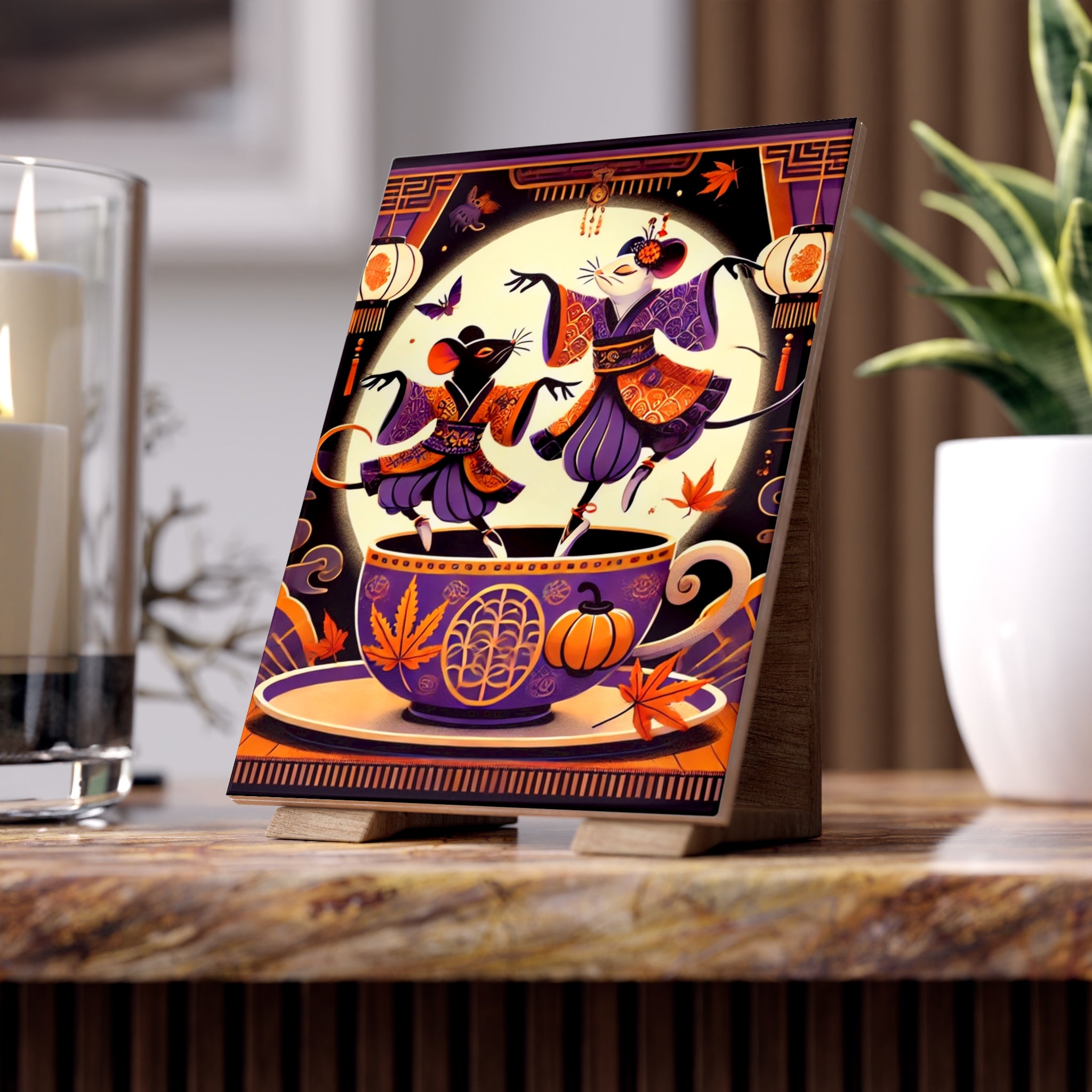 Theatrical Halloween Kabuki Mice on Teacup Ceramic Tile