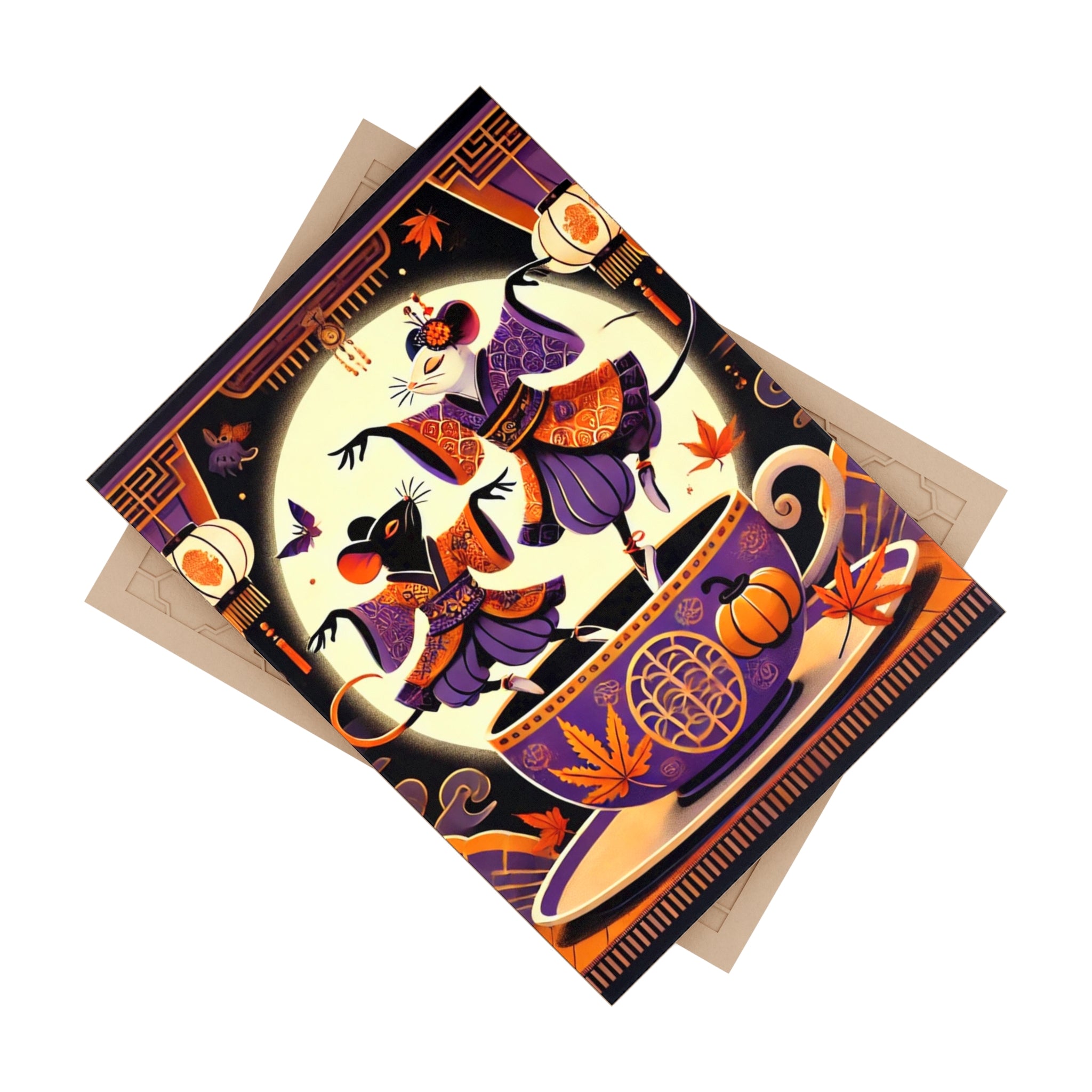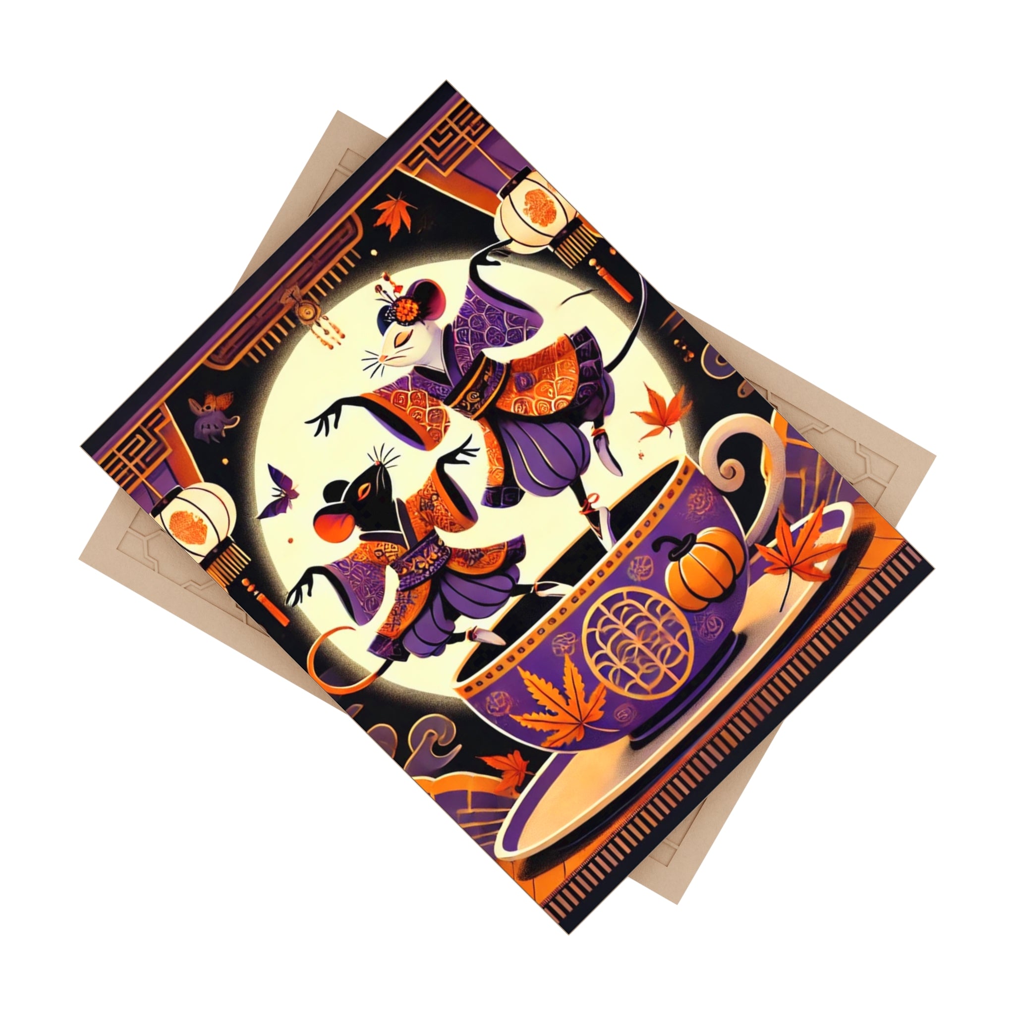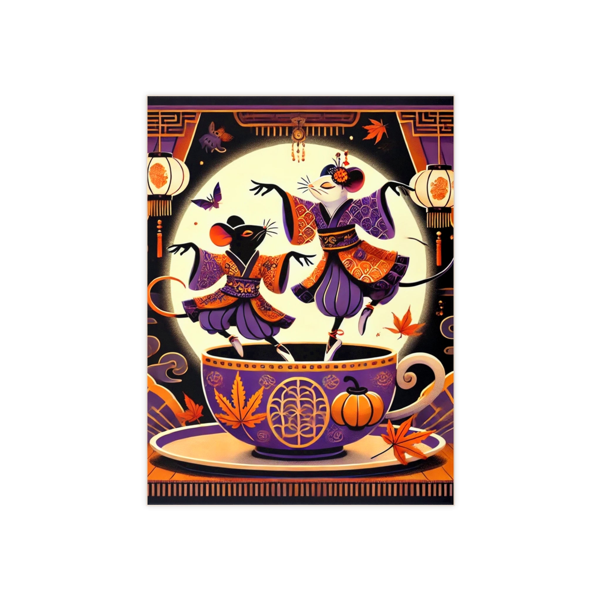 Theatrical Halloween Kabuki Mice on Teacup Ceramic Tile