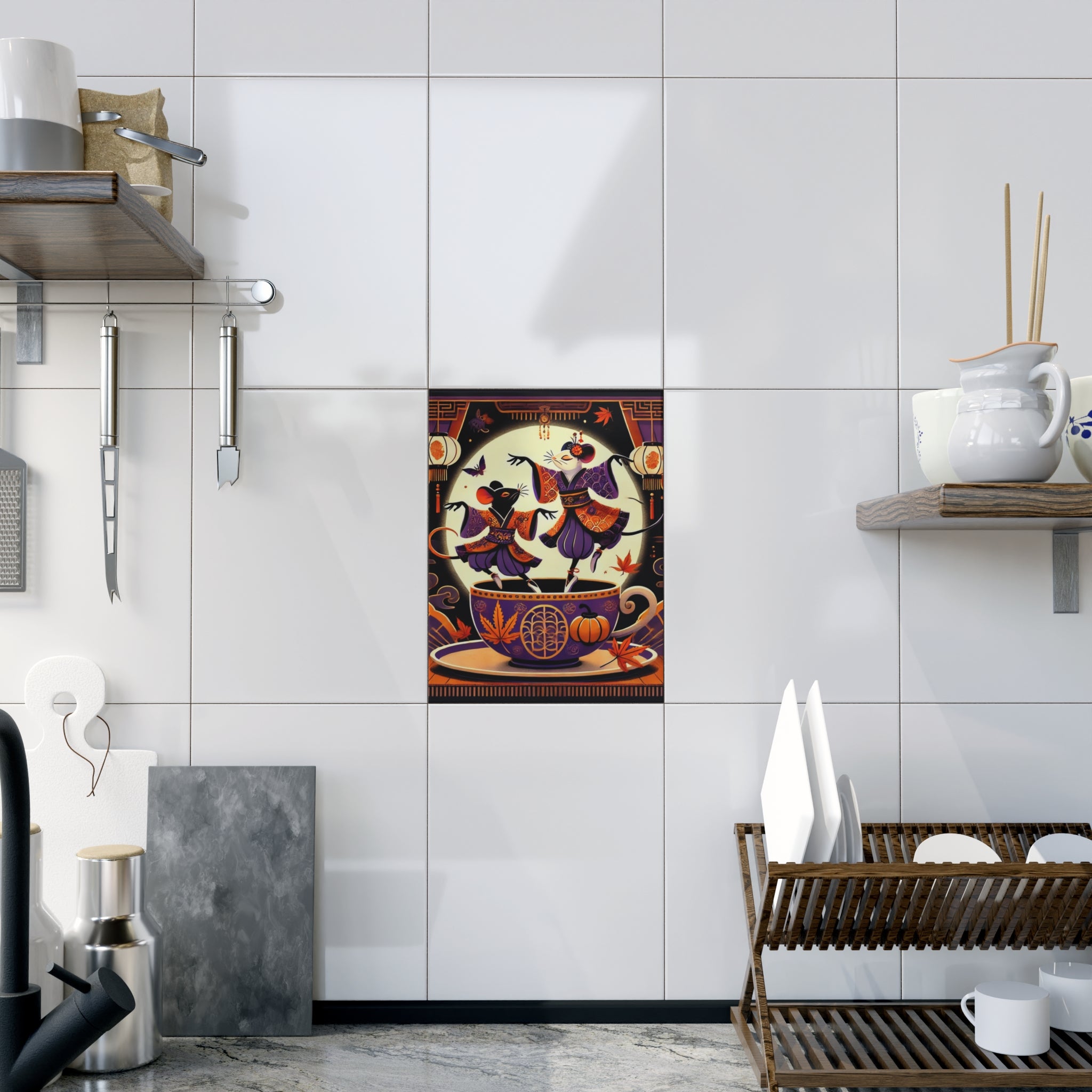 Add a touch of Halloween whimsy to your décor with the Kabuki Mice on Teacup Ceramic Tile. Available in your... Read more