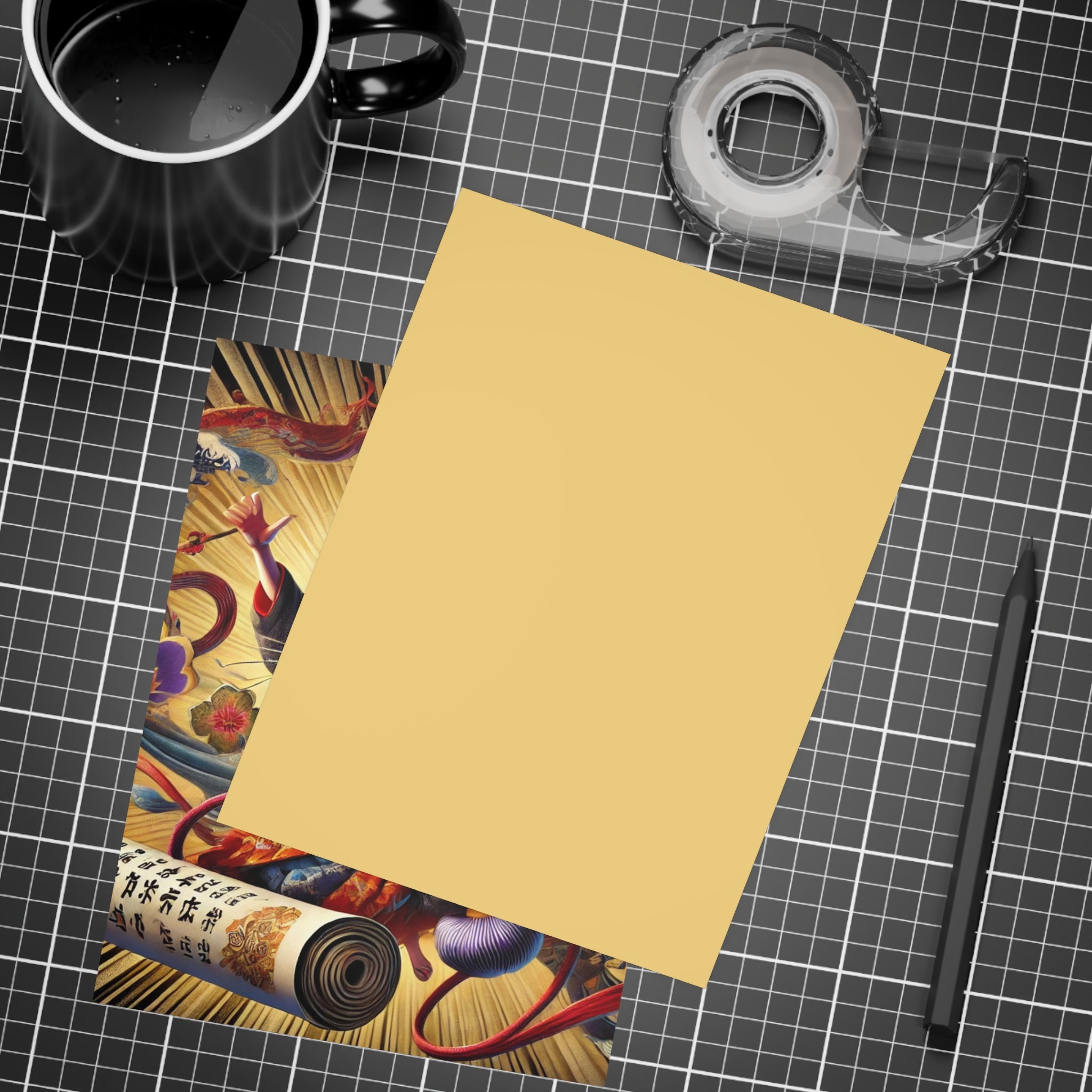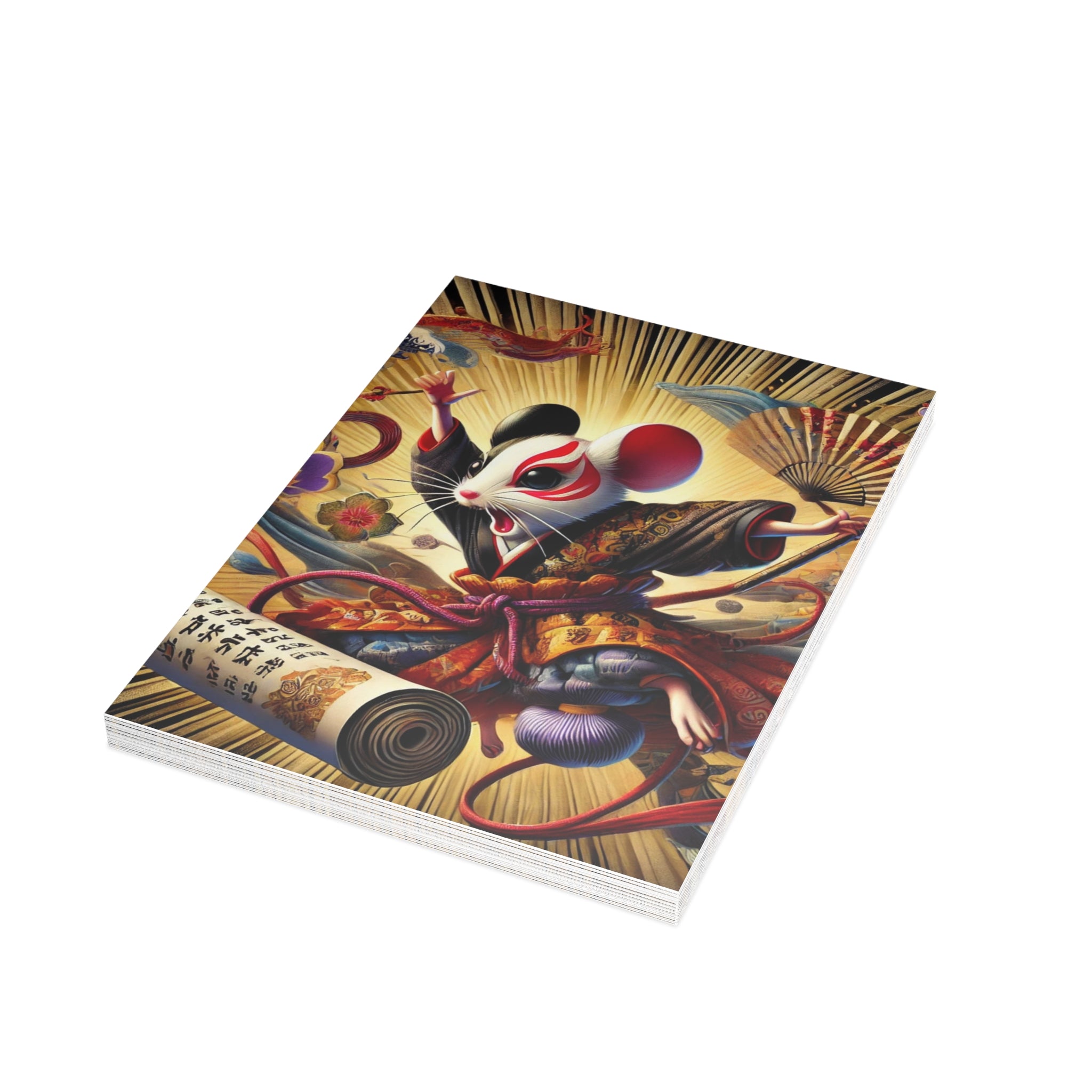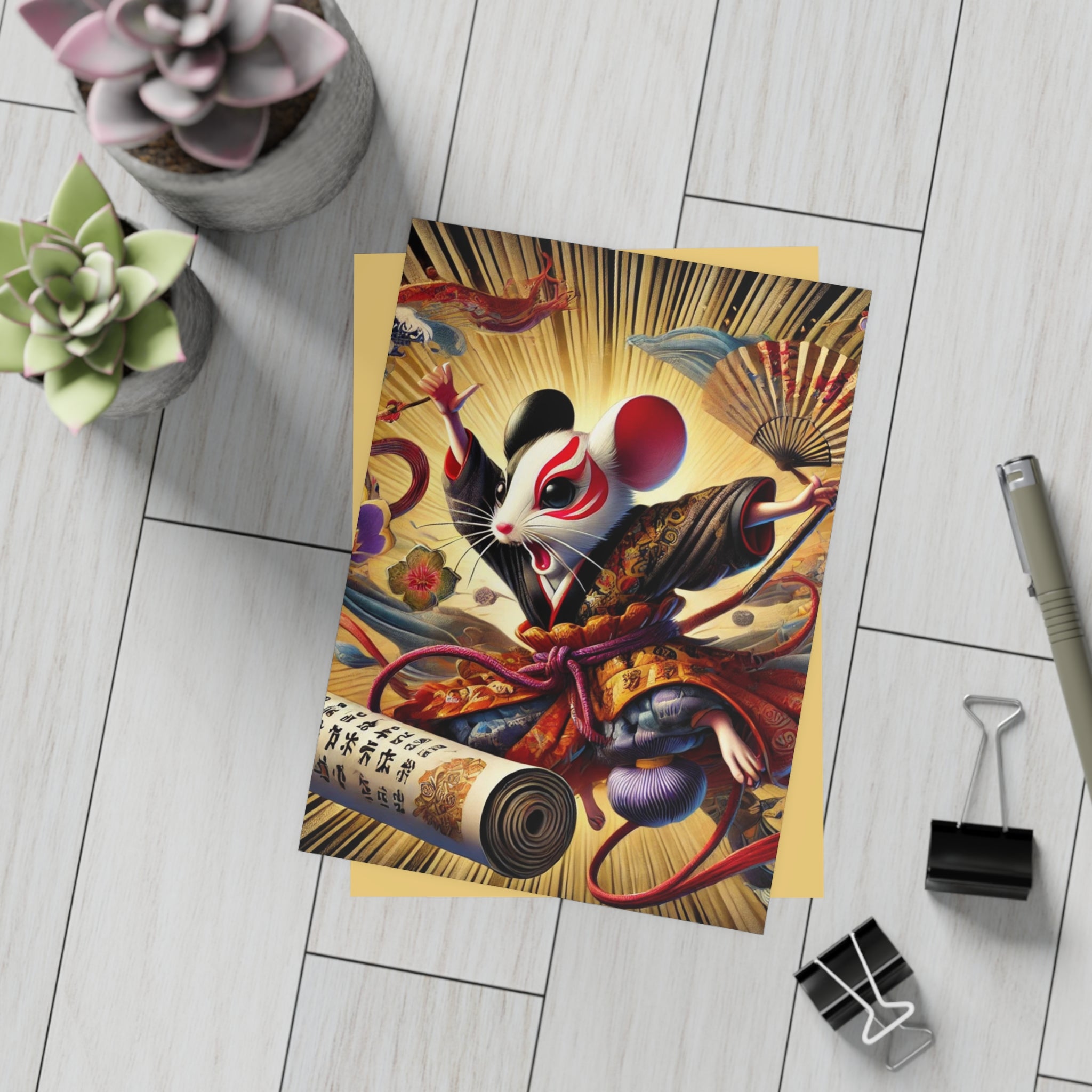 Send a touch of artistry with these high-quality postcards, available in bundles of 10, 30, or 50 and finished in your choice of matte, uncoated, one-side coat, or two-side coat. Each postcard features Theatrical Mouse on a Mission, a kabuki-inspired design where a bold little mouse bursts from an ancient scroll, its expressive red and black markings full of drama and whimsy. Blending Japanese theater flair with playful imagination, this design transforms ordinary correspondence into a cultural keepsake. Perfect for mailing, gifting, or collecting, these postcards merge function with captivating art.