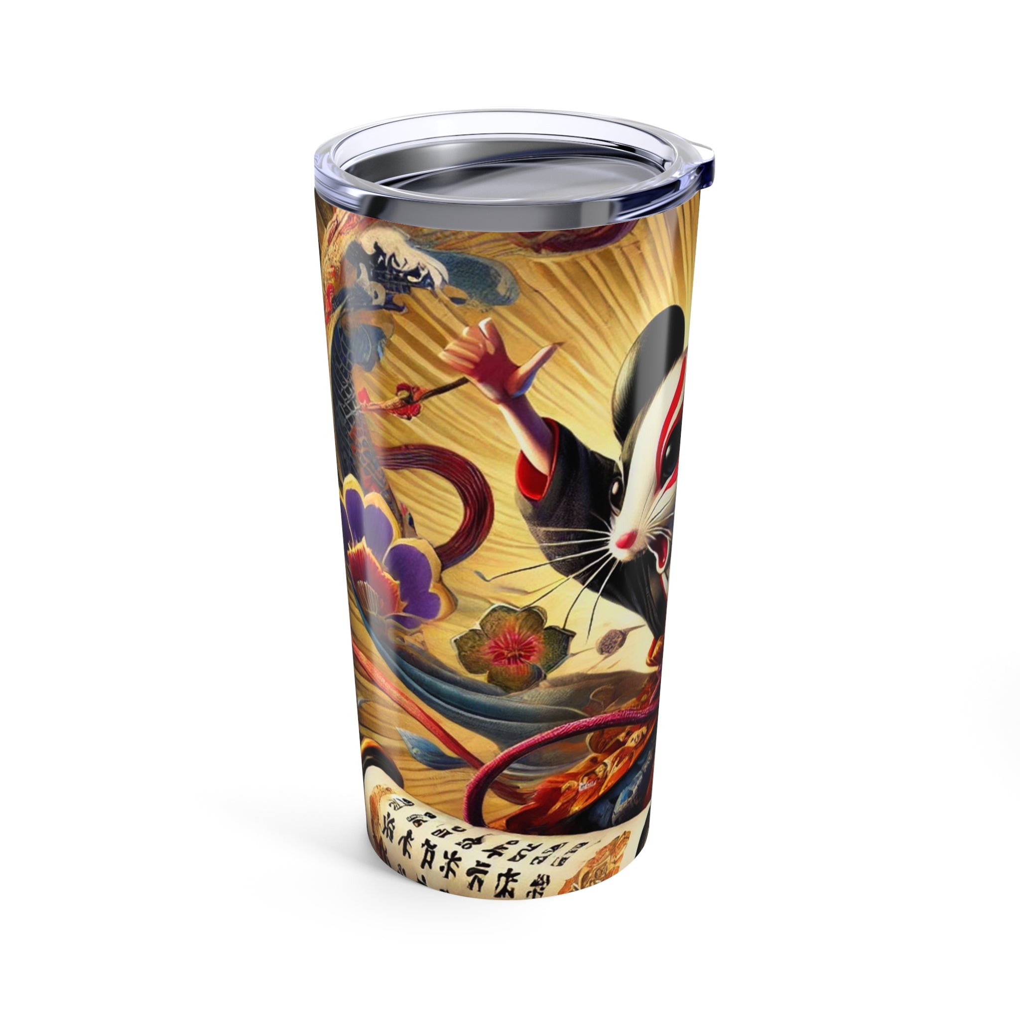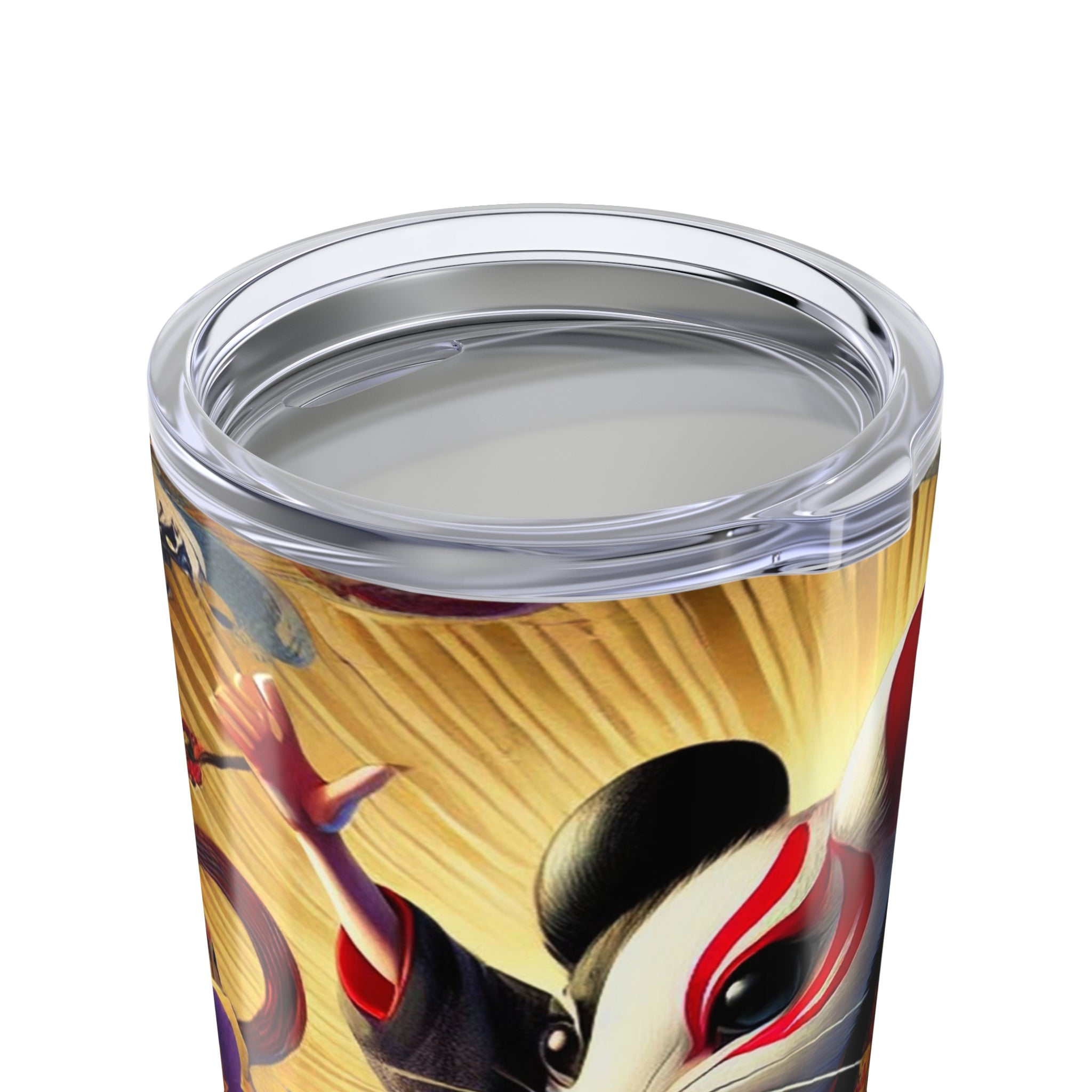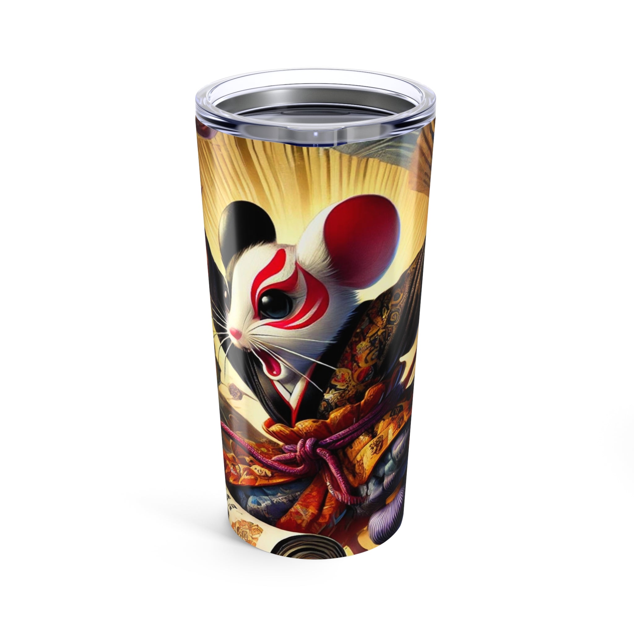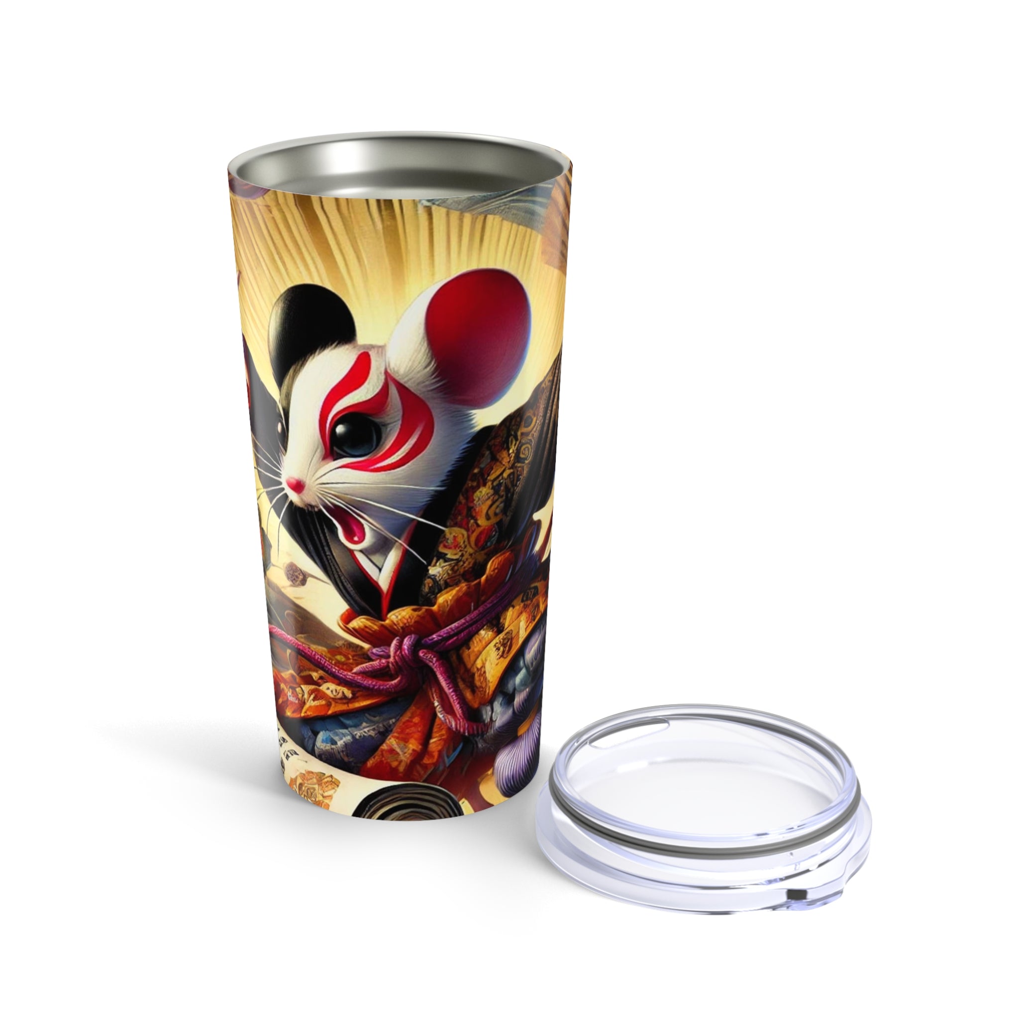 Theatrical Mouse on a Mission Tumbler 20oz is designed for both style and practicality, making it the perfect companion for everyday use. With double-wall insulation, it keeps drinks hot or cold for hours, while the stainless steel construction ensures lasting durability and resilience. A glossy finish enhances the bold artwork, featuring a kabuki-style mouse bursting from an ancient scroll in a dramatic pose with striking red and black markings. Playful yet powerful, the design captures the flair of Japanese theater, bringing a touch of whimsy and artistry to your daily routine. Dishwasher safe for effortless cleaning, this tumbler combines function with creativity in one sleek design.