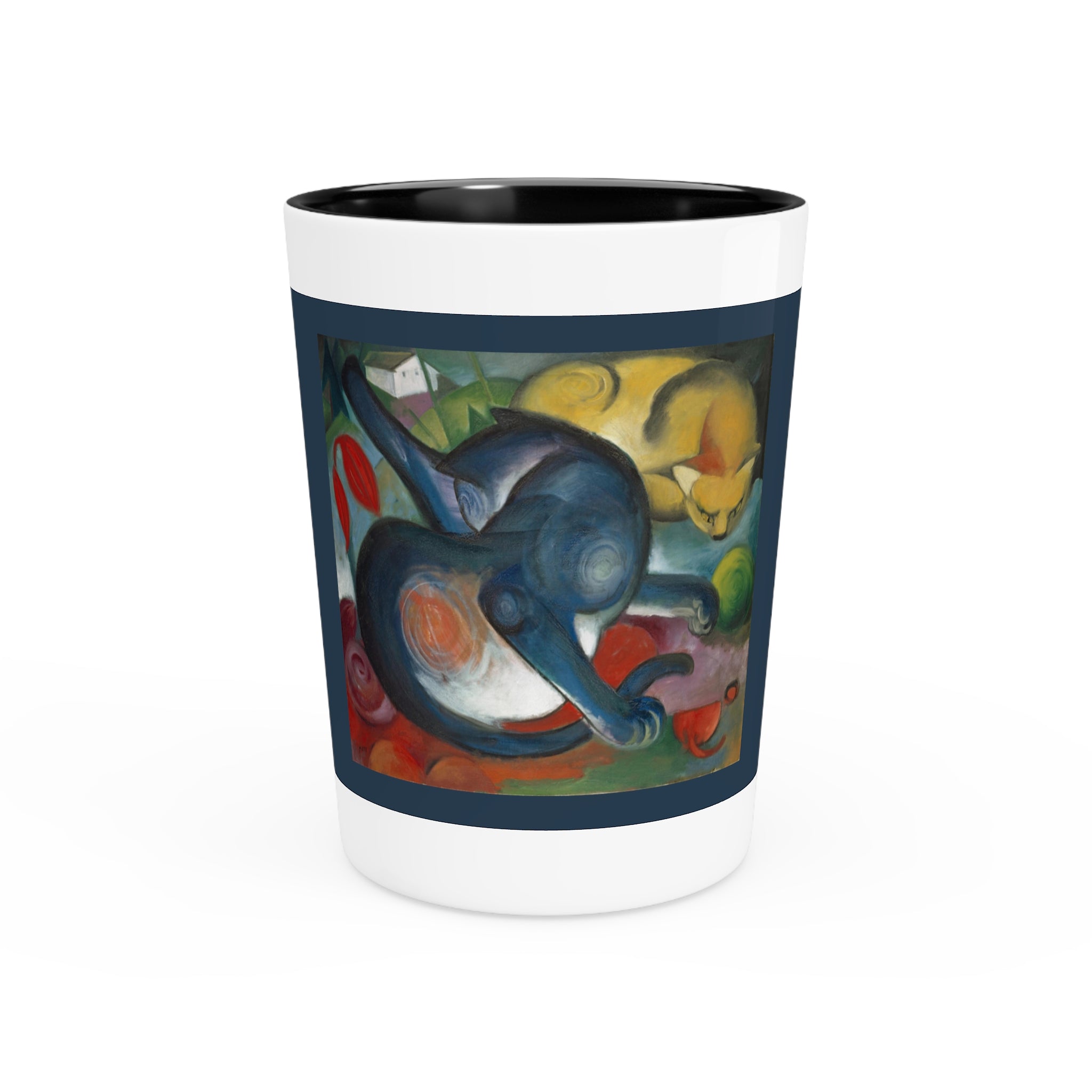 Artwork designed and digitally remastered by Sarasvati Designs. The original artwork, "Two Cats, Blue and Yellow," is a painting created by Franz Marc, a prominent German artist associated with the Expressionist movement. This artwork, painted in 1912, is a significant representation of Marc's style and his exploration of color, form, and emotion. Franz Marc was a key figure in the German Expressionist movement, and he was a co-founder of the group known as "Der Blaue Reiter" (The Blue Rider).
