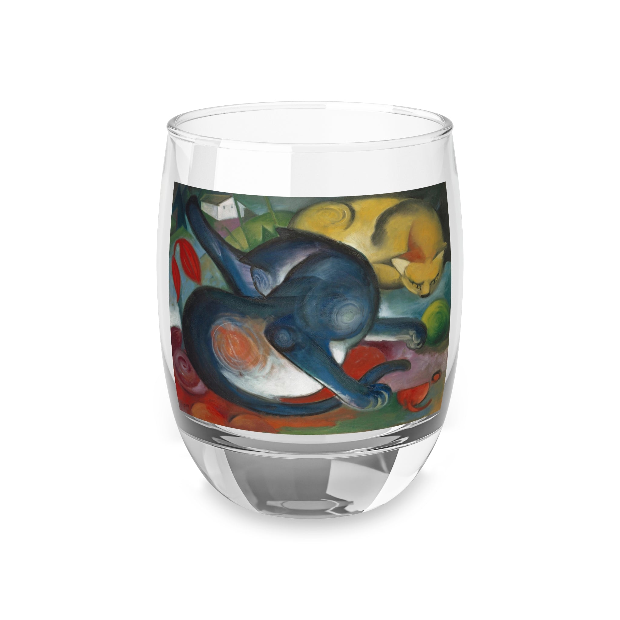 Artwork designed and digitally remastered by Sarasvati Designs. The original artwork, "Two Cats, Blue and Yellow," is a painting created by Franz Marc, a prominent German artist associated with the Expressionist movement. This artwork, painted in 1912, is a significant representation of Marc's style and his exploration of color, form, and emotion. Franz Marc was a key figure in the German Expressionist movement, and he was a co-founder of the group known as "Der Blaue Reiter" (The Blue Rider).