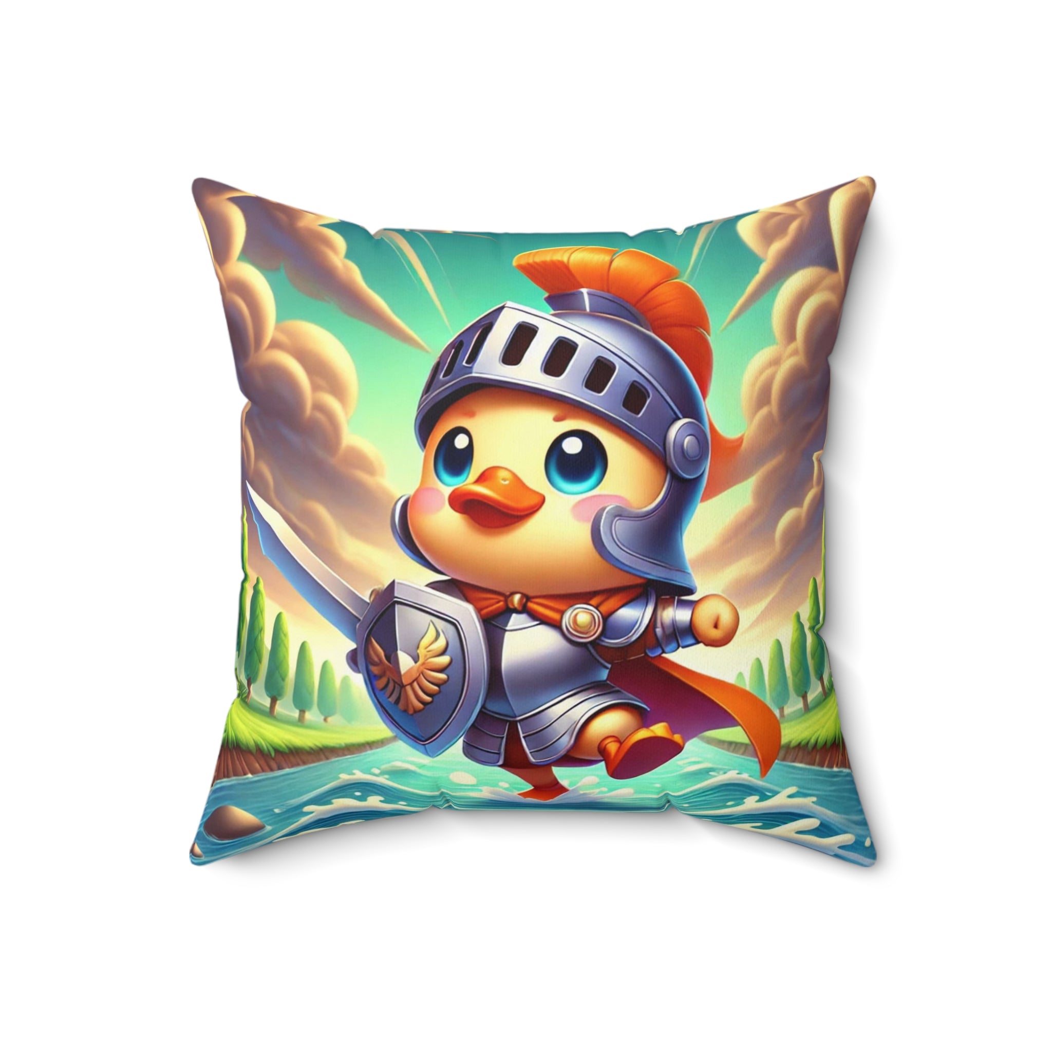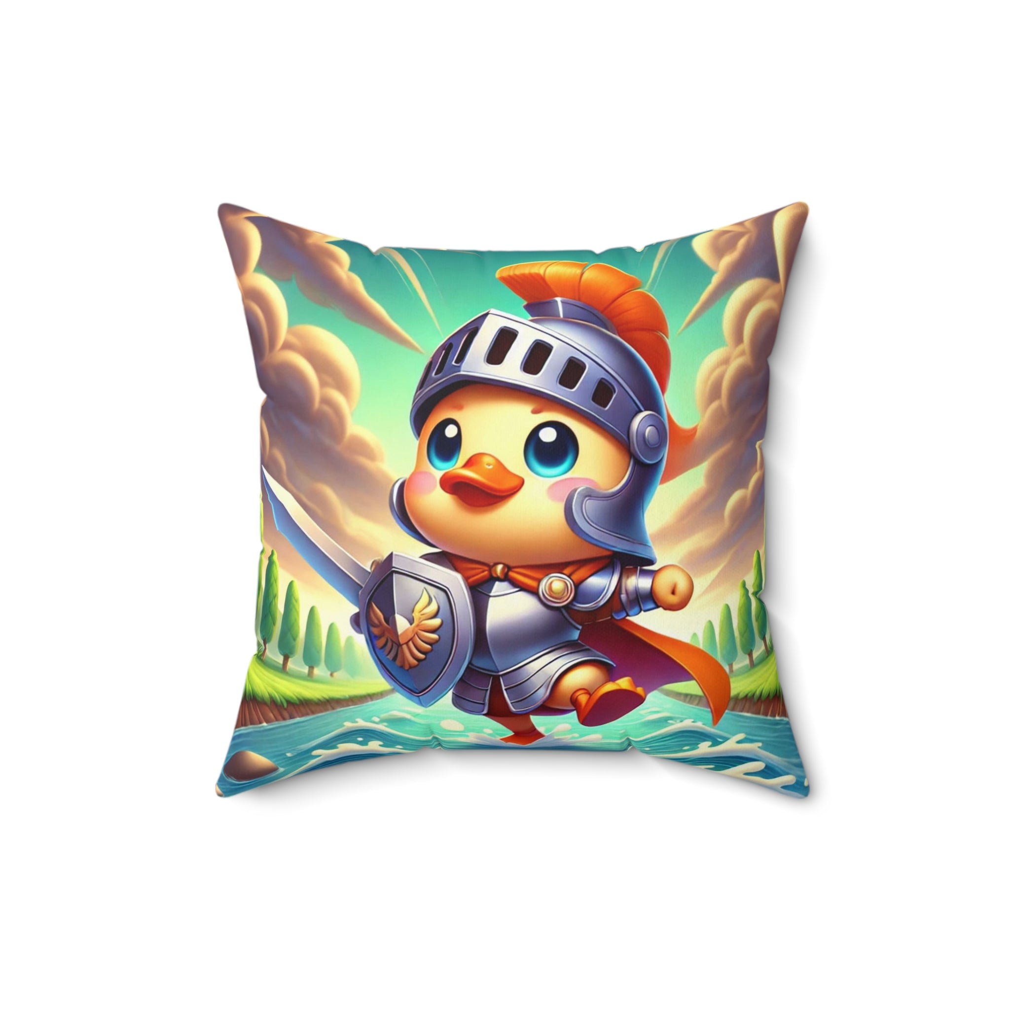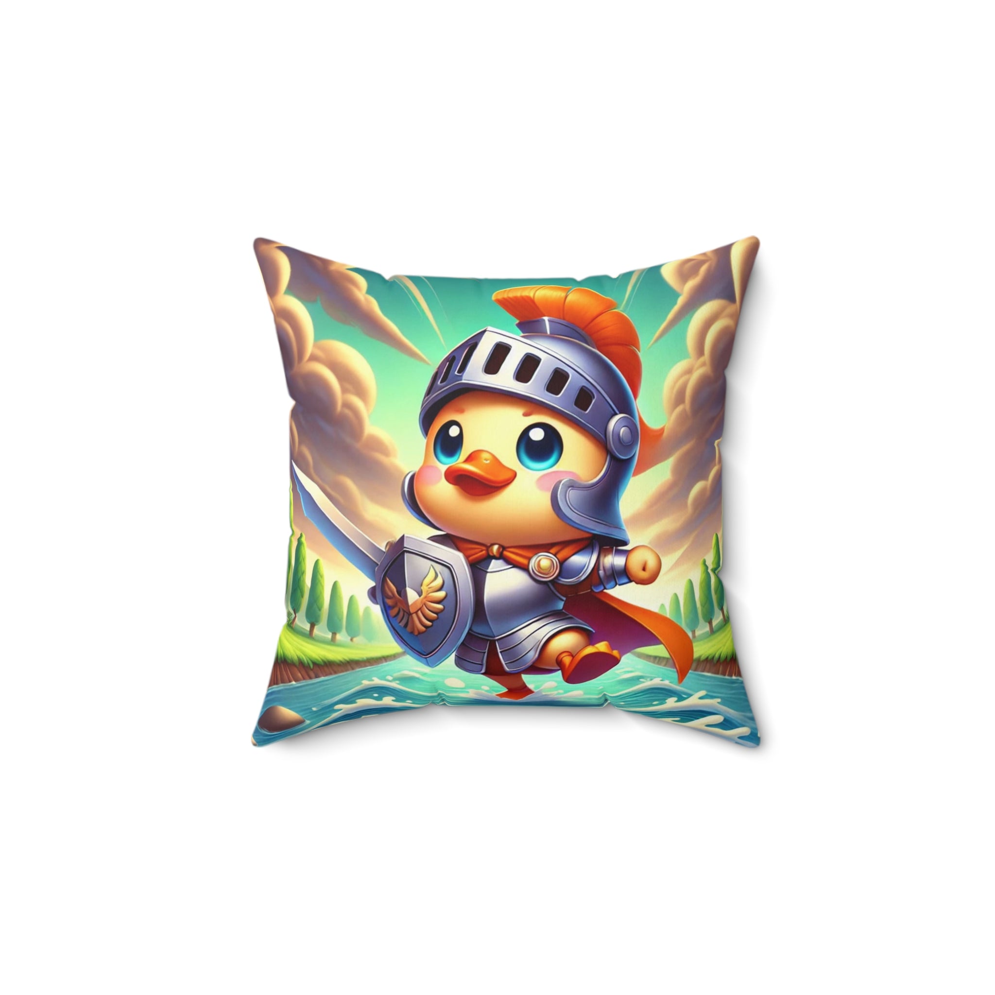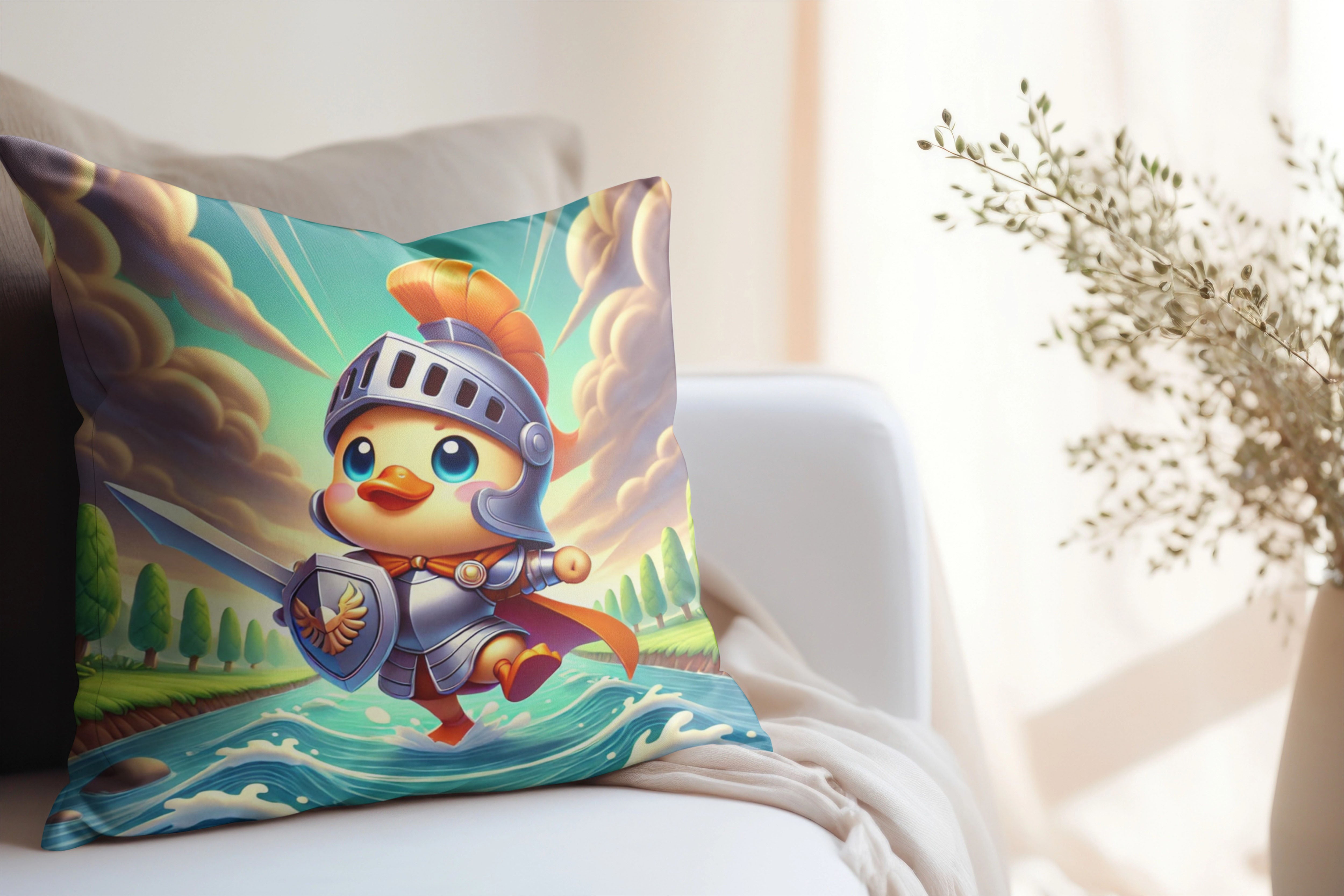 Valiant Duck Spun Polyester Square Pillow brings courage, humor, and vivid imagination into your home. These beautiful indoor pillows, available in various sizes, serve as statement pieces that create a lively and inspiring environment. Made from durable spun polyester, each pillow combines comfort with artistic brilliance—perfect for anyone who loves whimsical storytelling through design.