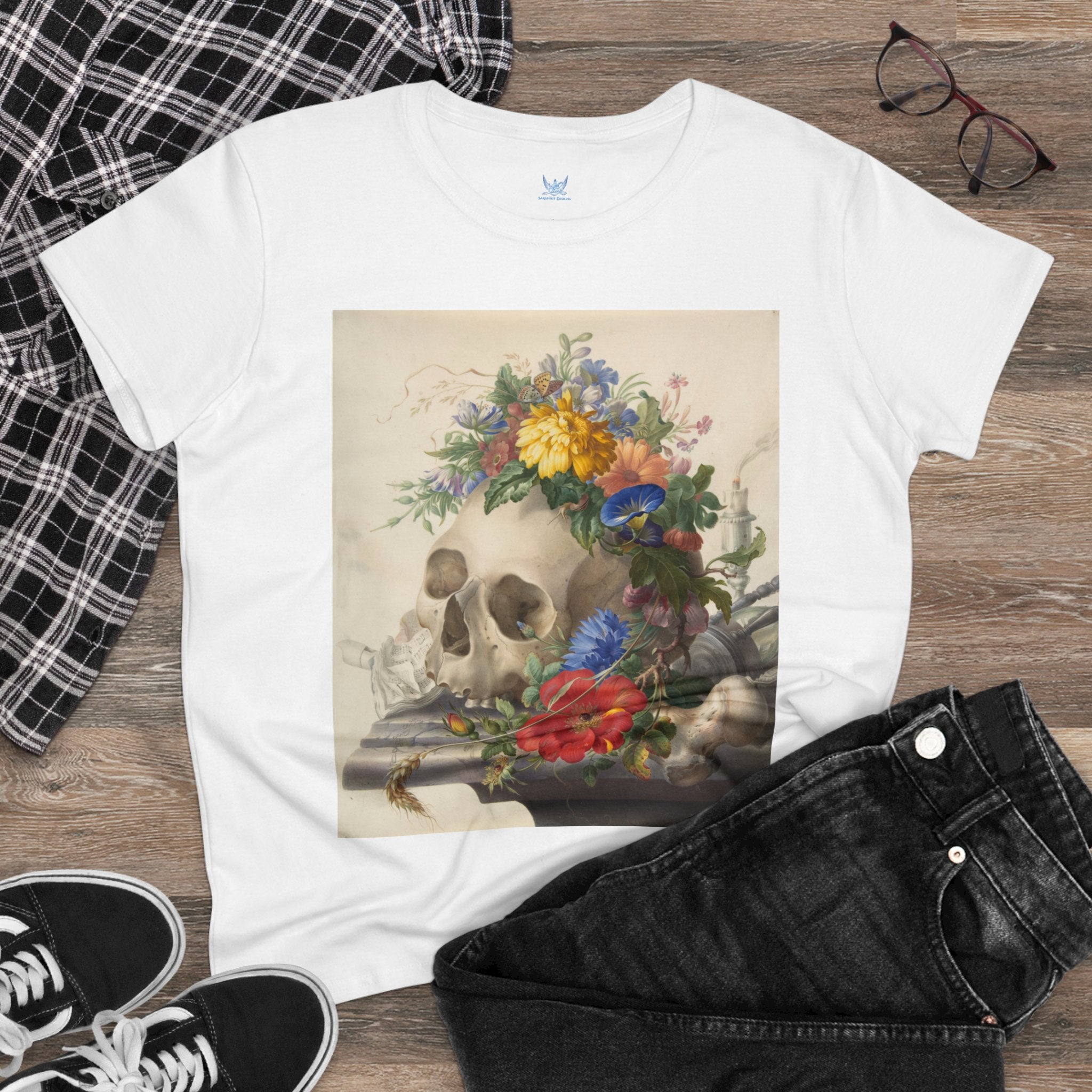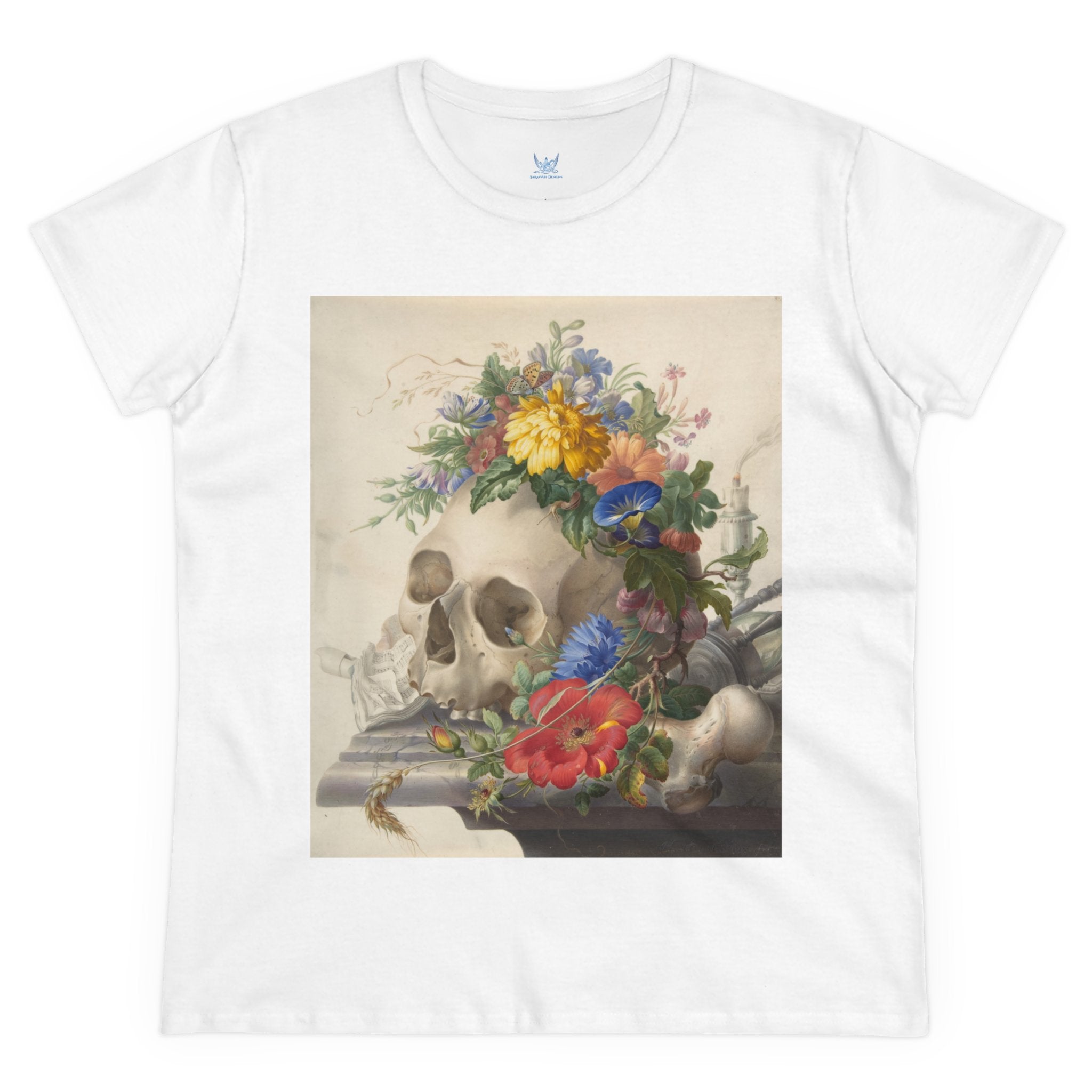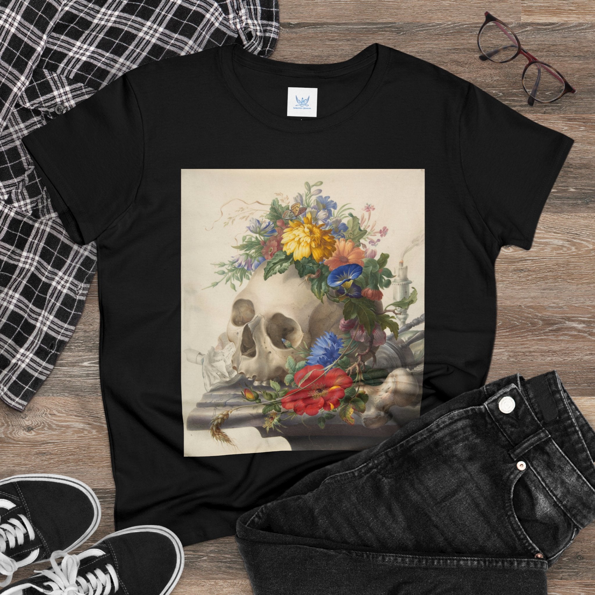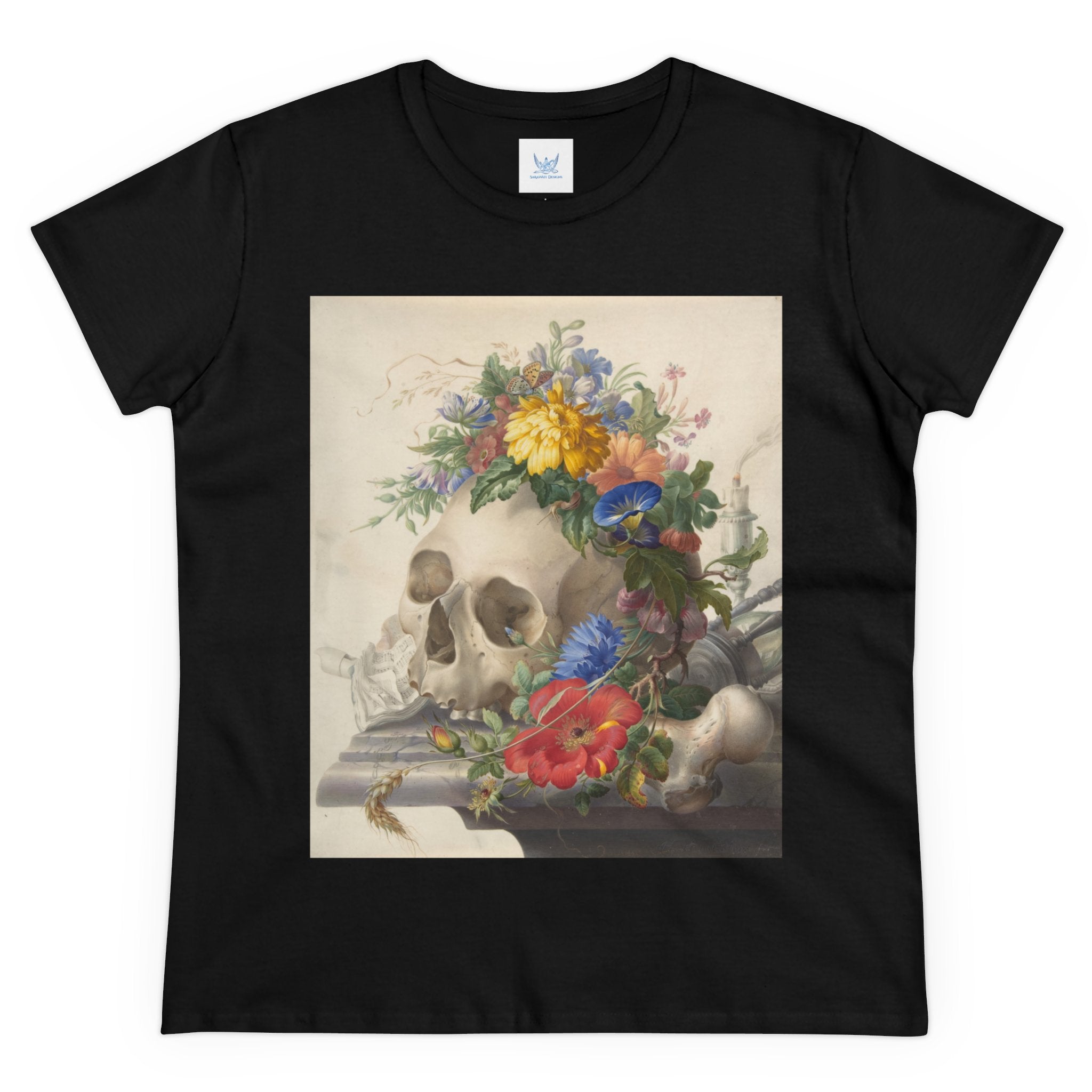 Artwork designed and digitally remastered by Sarasvati Designs. The original artwork, "Vanitas Still Life" by Herman Henstenburgh, is a thought-provoking artwork. It belongs to the genre of vanitas still life, which symbolically represents the fleeting nature of life and the inevitability of death. In this composition, various objects are meticulously arranged to convey deeper meanings and philosophical messages.