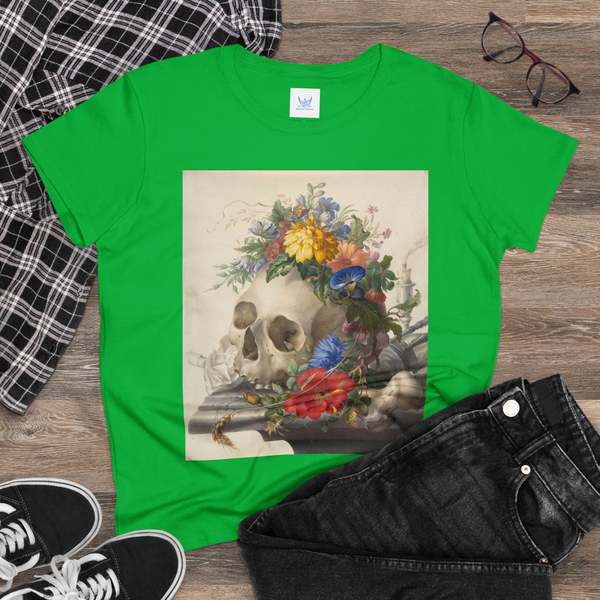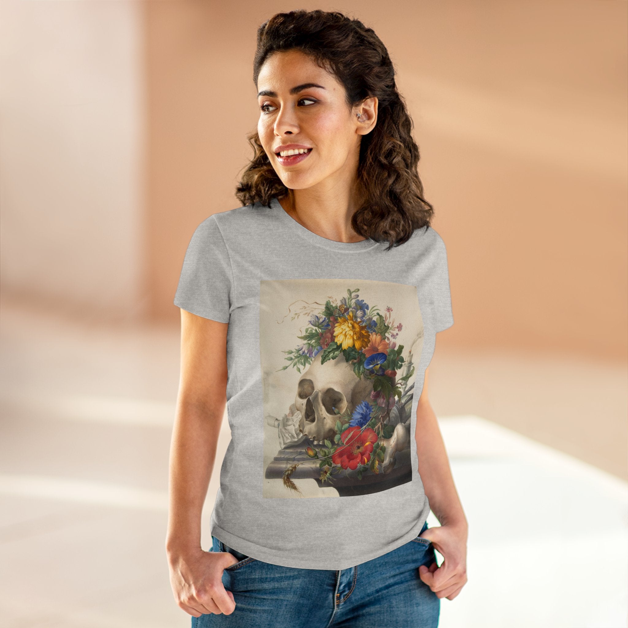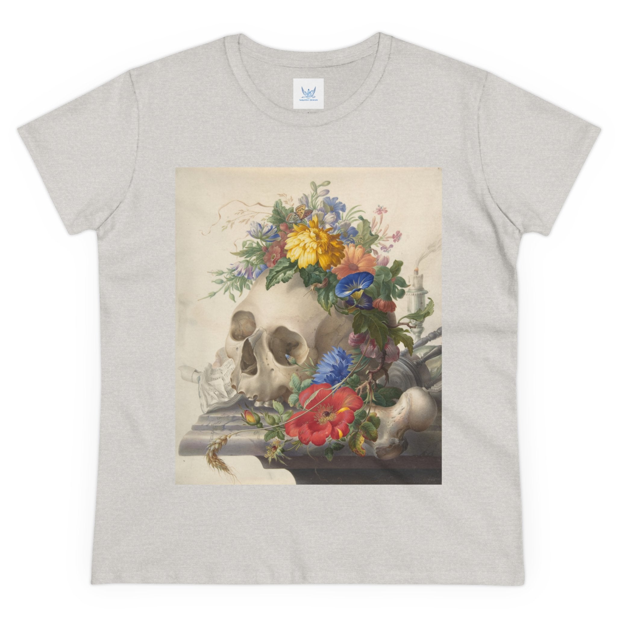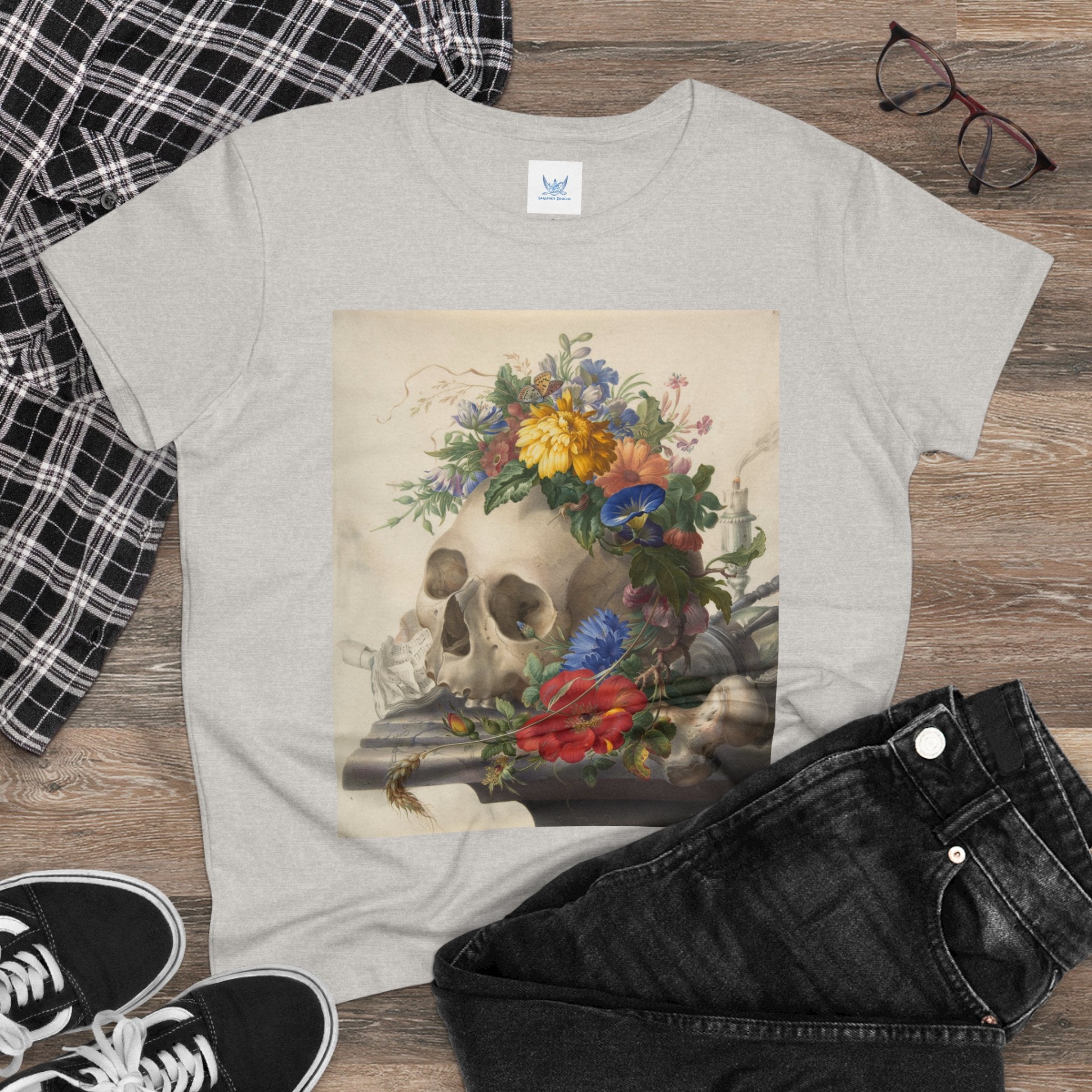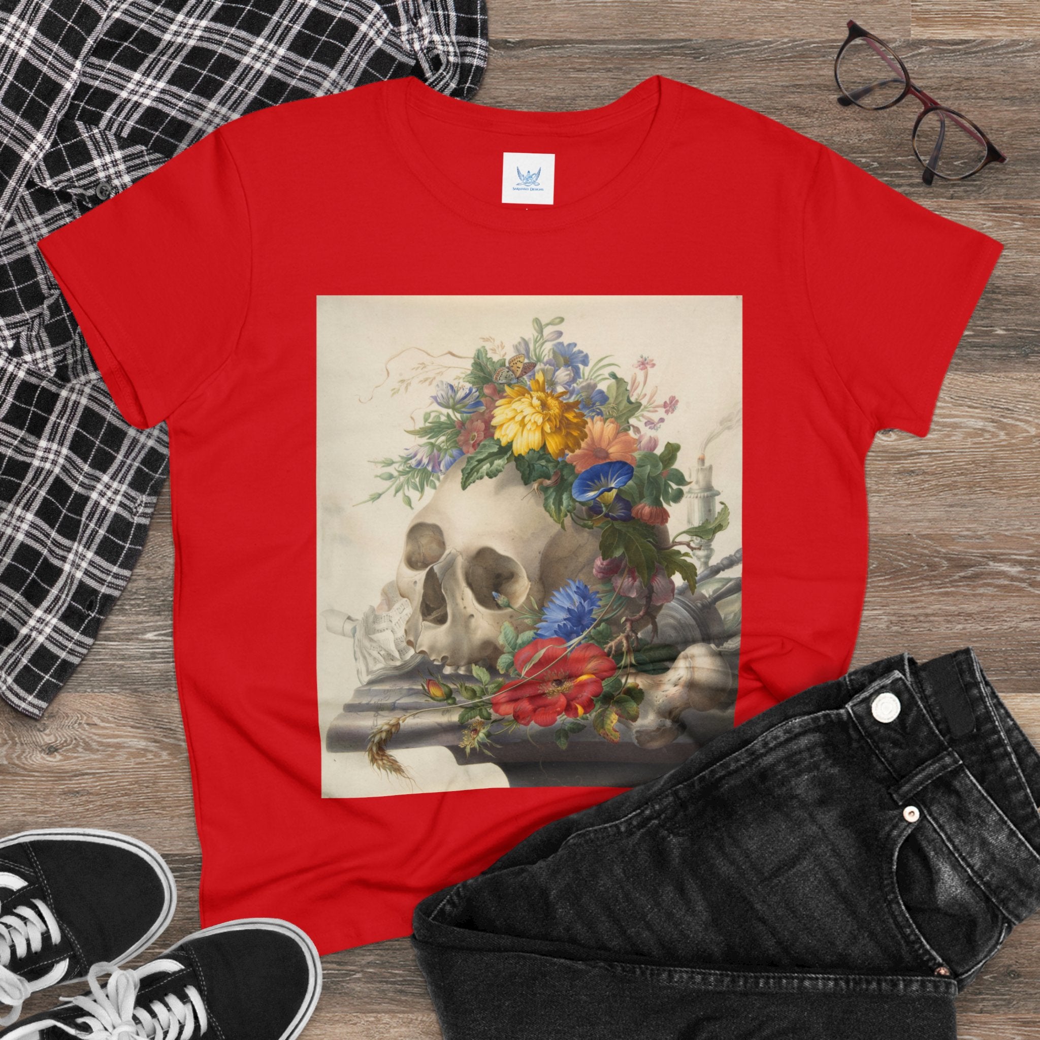 Artwork designed and digitally remastered by Sarasvati Designs. The original artwork, "Vanitas Still Life" by Herman Henstenburgh, is a thought-provoking artwork. It belongs to the genre of vanitas still life, which symbolically represents the fleeting nature of life and the inevitability of death. In this composition, various objects are meticulously arranged to convey deeper meanings and philosophical messages.