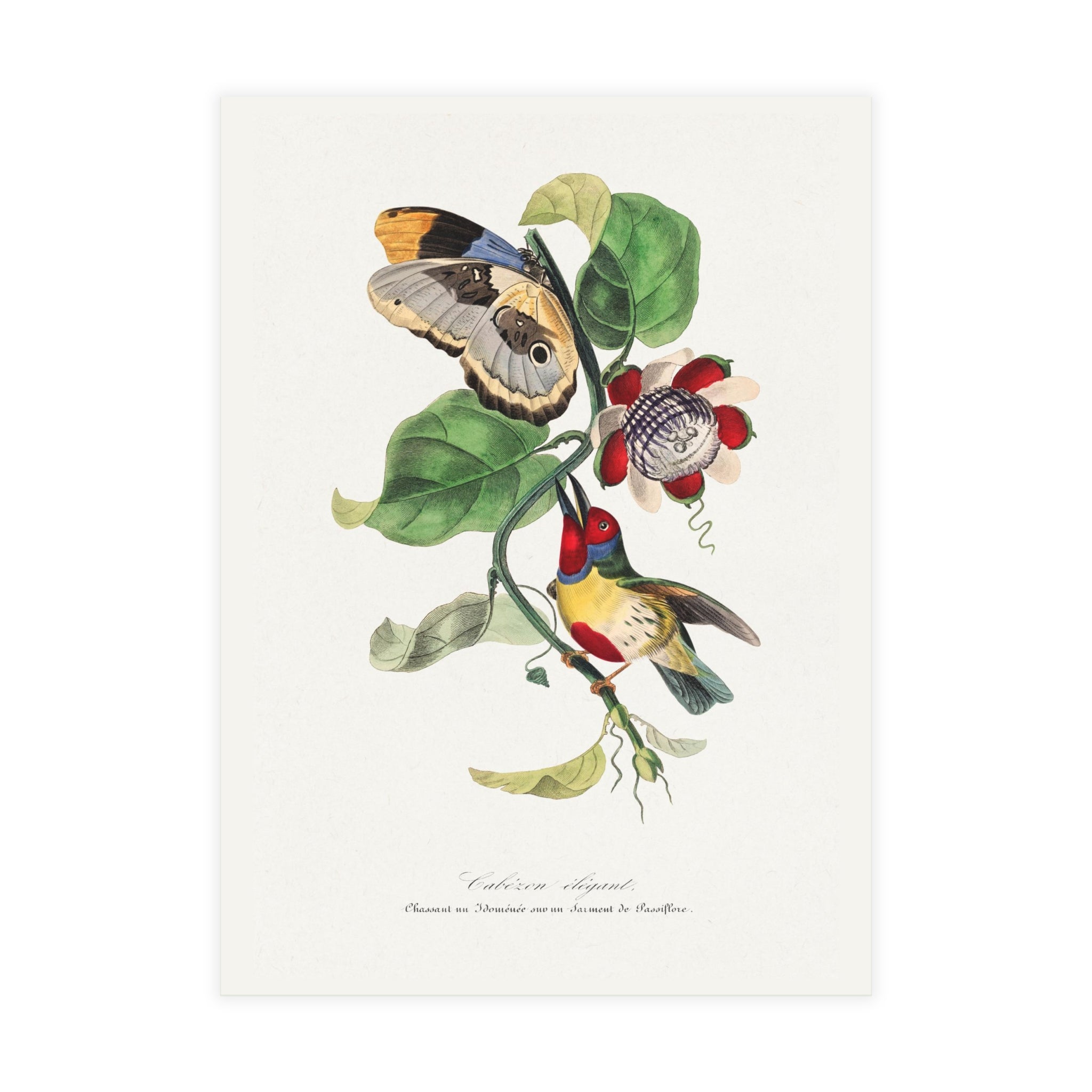 Artwork designed and digitally remastered by Sarasvati Designs. The Versicolored Barbet bird painting featured in the 1842 edition of "Le Jardin Des Plantes" is a work by Paul Gervais, a prominent French naturalist and artist of the 19th century. Gervais was known for his contributions to zoology and paleontology, as well as his artistic talents in depicting the natural world.