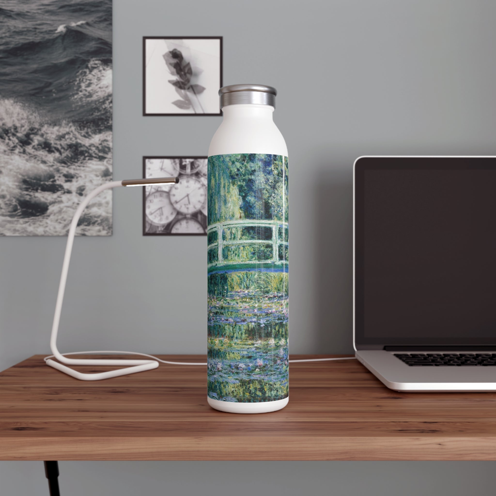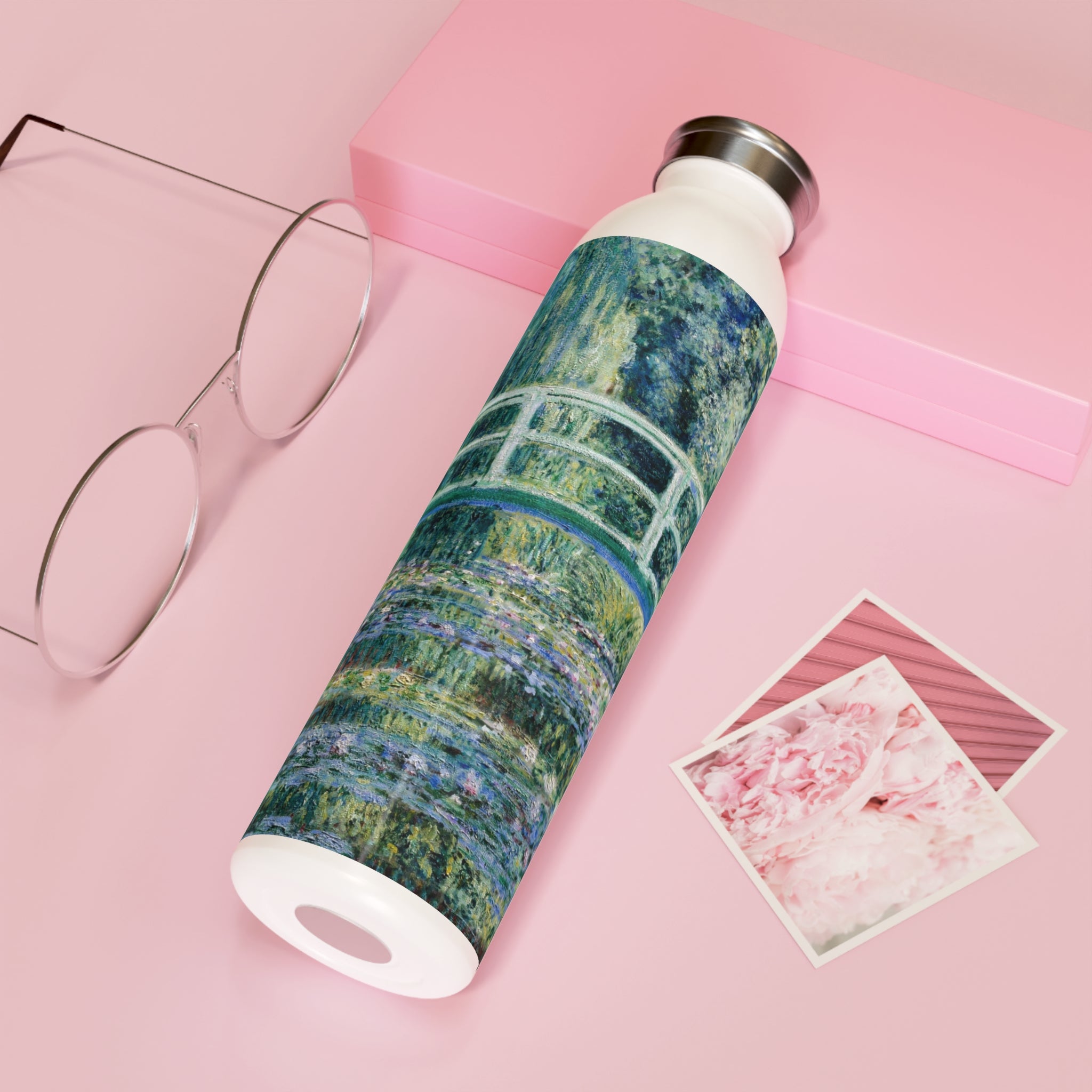 This artful water bottle boasts a 20oz capacity, a trendy lid, double-wall stainless steel construction, and employs vacuum insulation to maintain the ideal temperature of your beverages for extended periods. The vintage art design comes alive in vibrant detail against the chic matte finish.