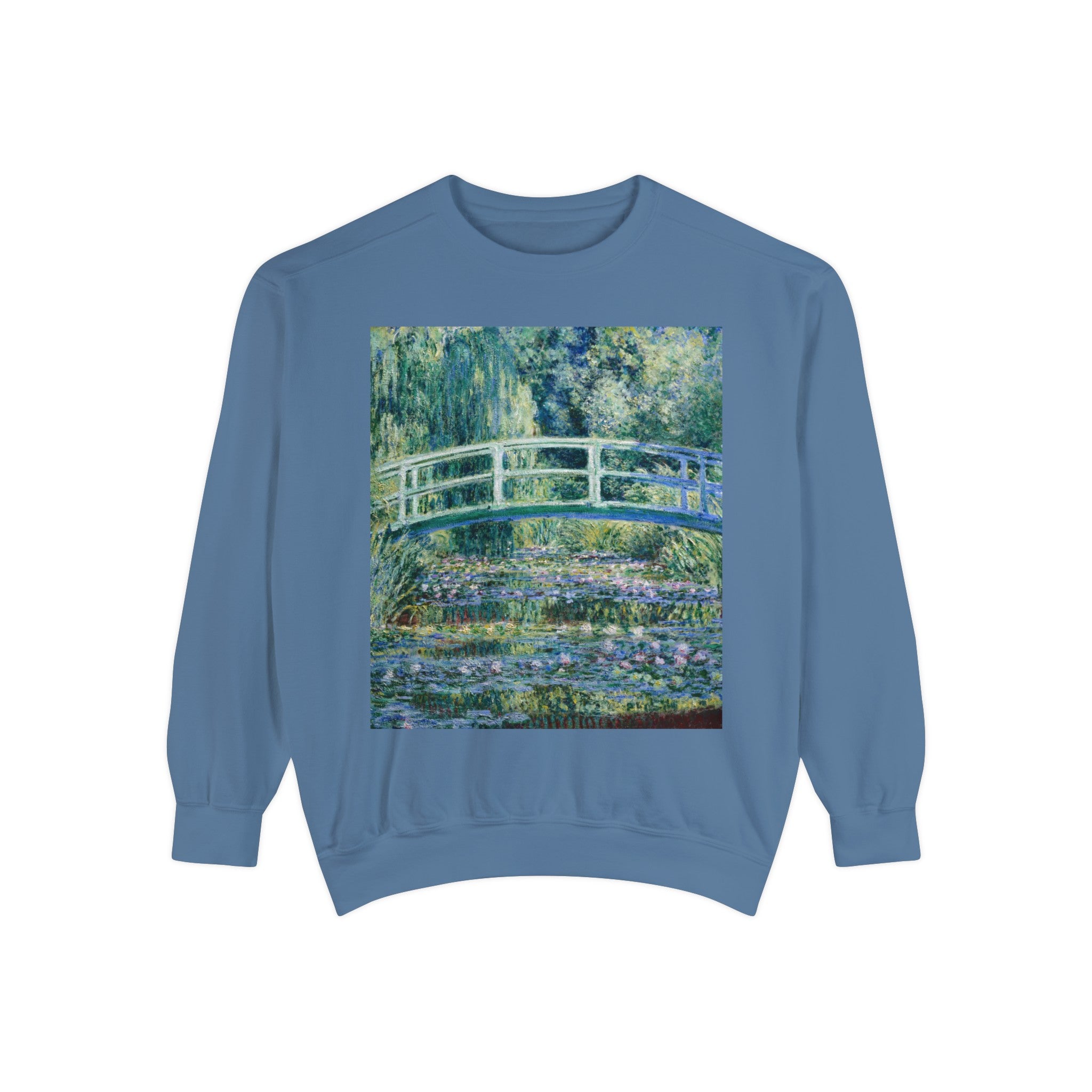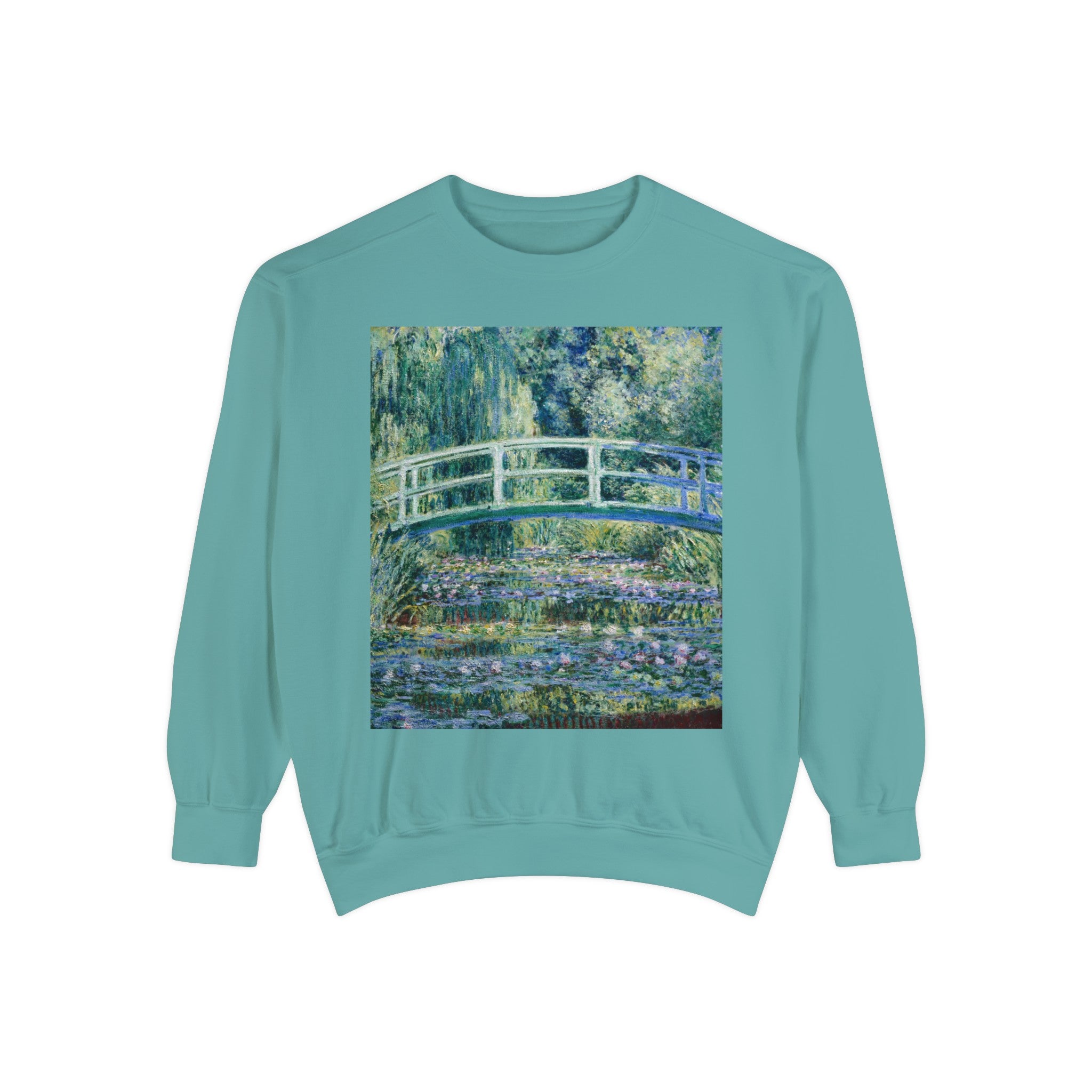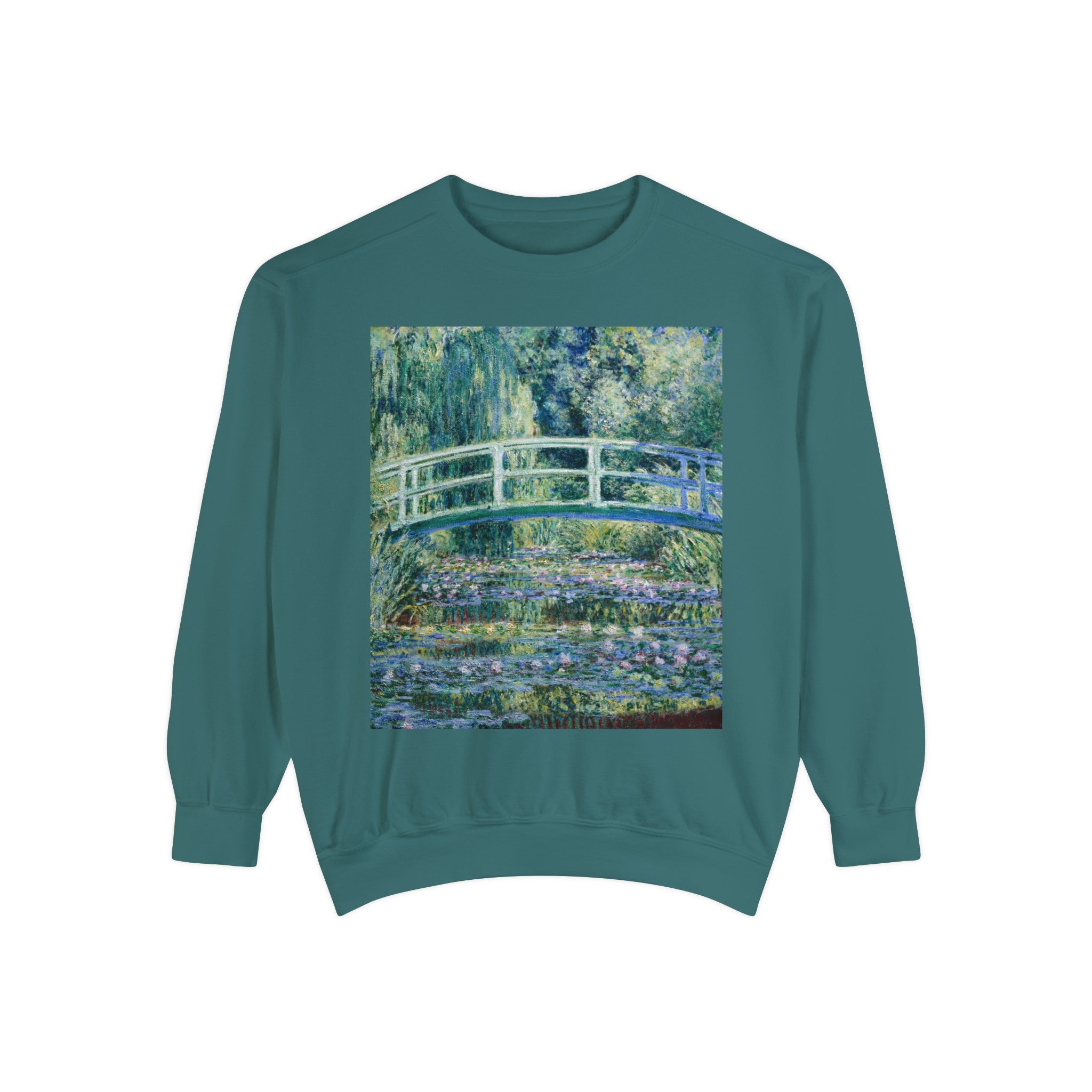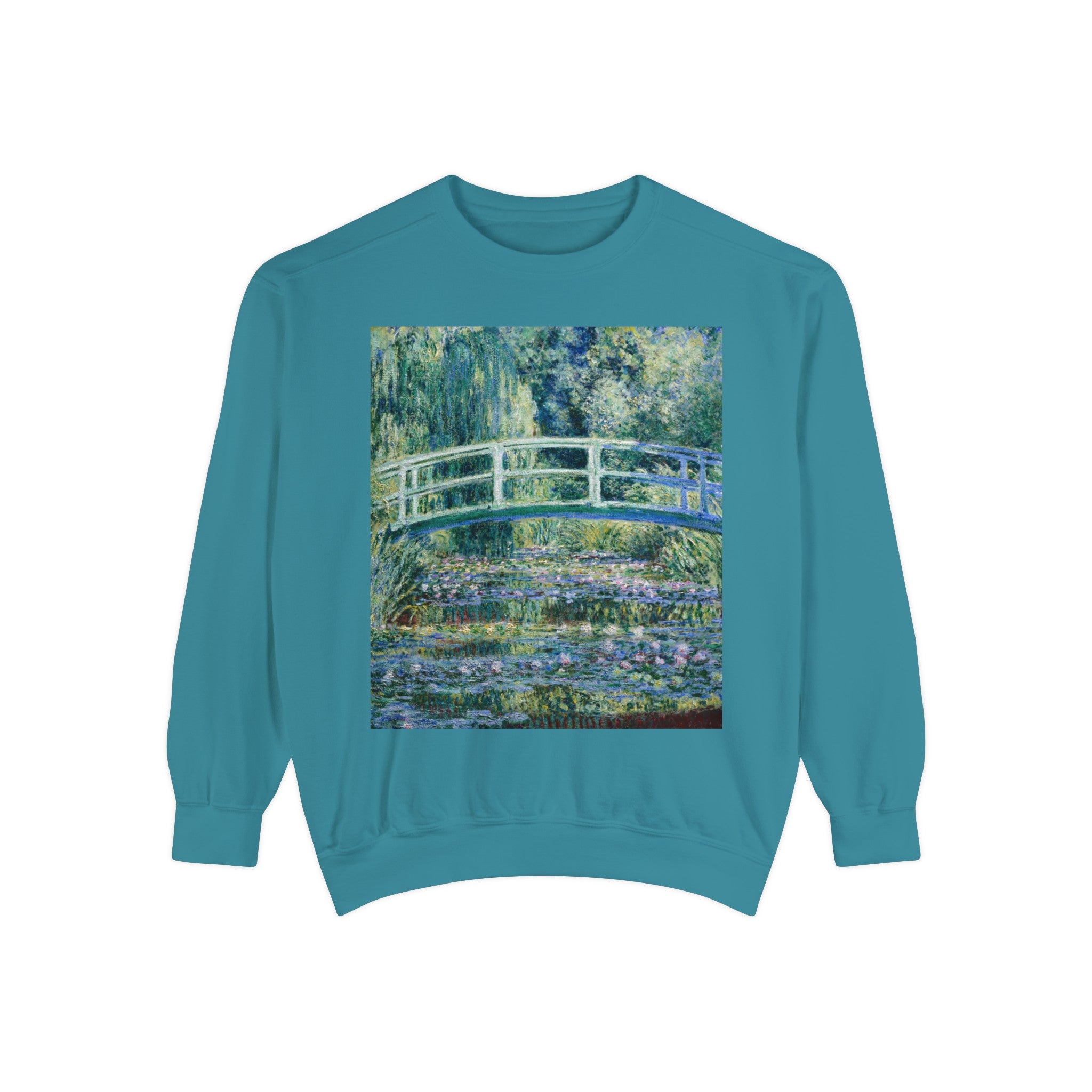 Artwork designed and digitally remastered by Sarasvati Designs. Claude Monet's "Water Lilies and Japanese Bridge," painted in 1899, is a quintessential work of Impressionist art. This painting is part of Monet's celebrated series of water lily pond scenes and is a remarkable representation of his dedication to capturing the play of light, color, and nature. The painting presents a tranquil view of Monet's water lily pond in Giverny, France, with a charming Japanese footbridge extending over the water. Monet's own garden and its elements, including the water lilies and bridge, served as enduring subjects of his art. "Water Lilies and Japanese Bridge" exemplifies Claude Monet's ability to encapsulate the beauty of the natural world through the lens of Impressionism. It is a masterful representation of his artistic vision and the allure of his cherished garden in Giverny.