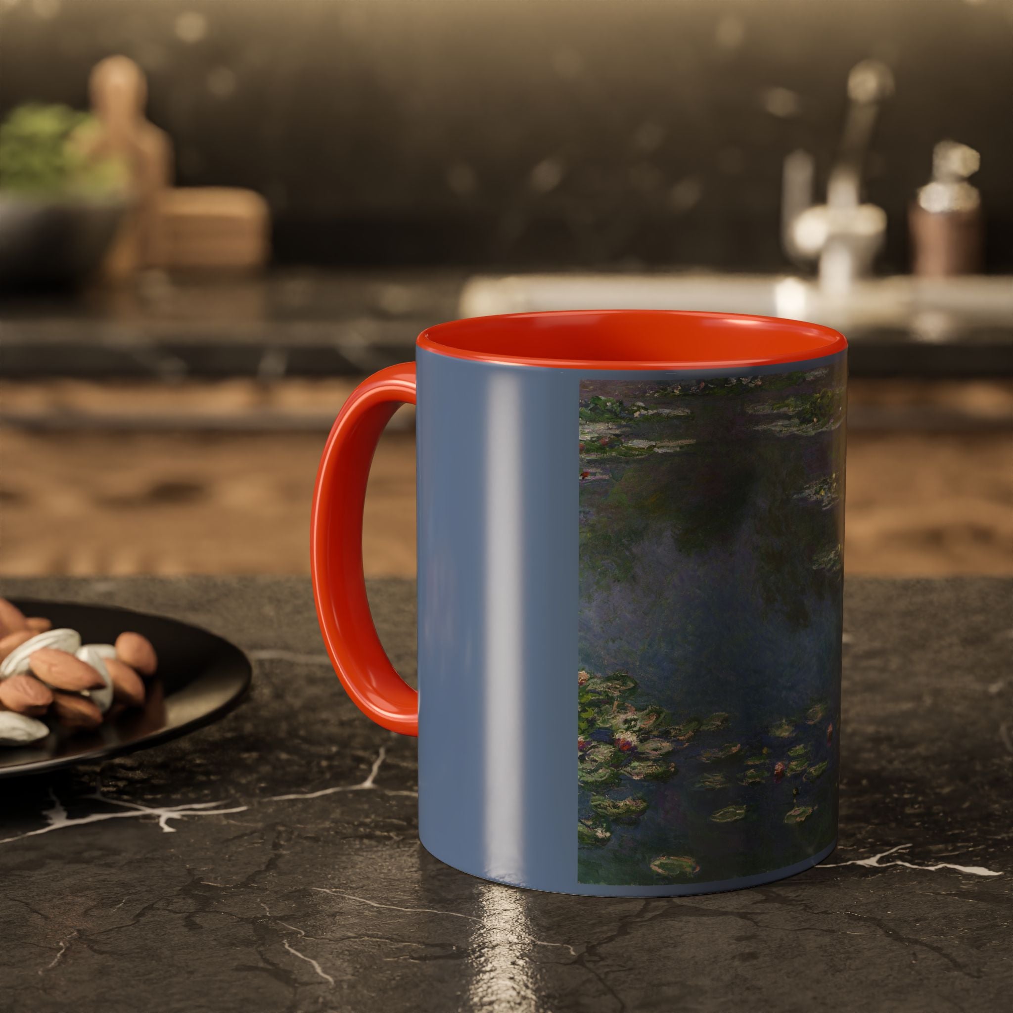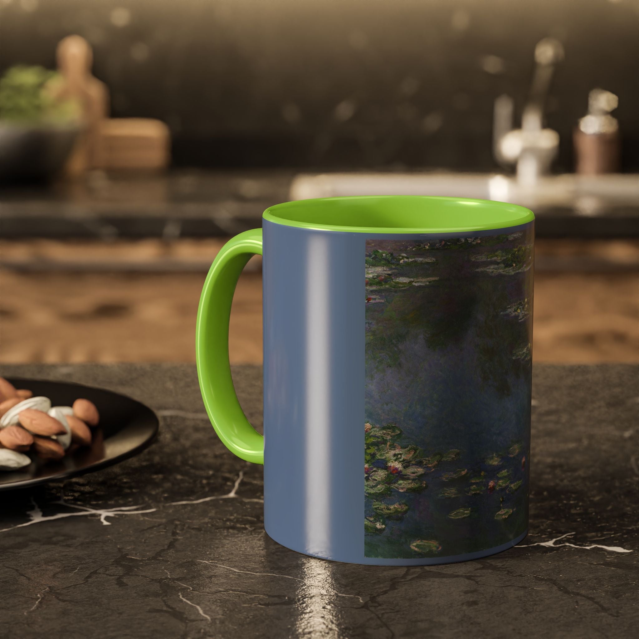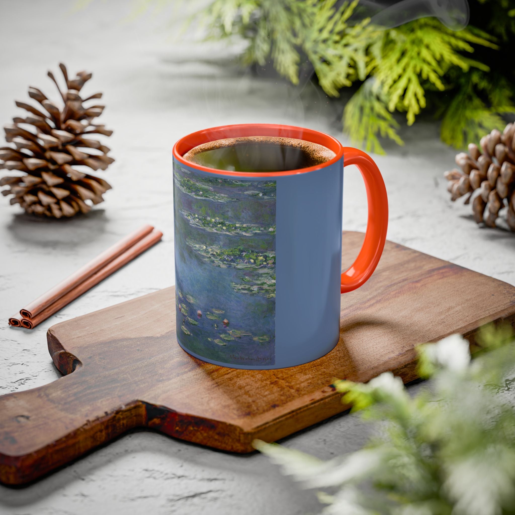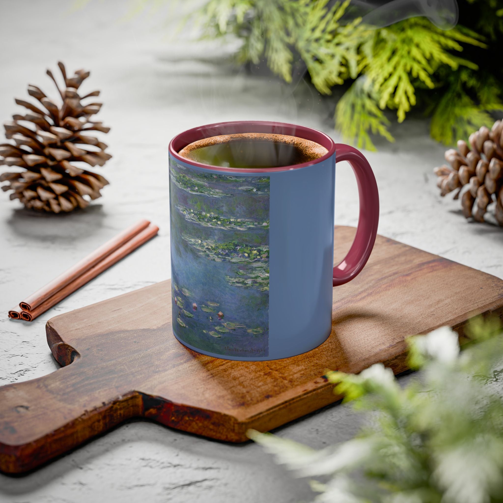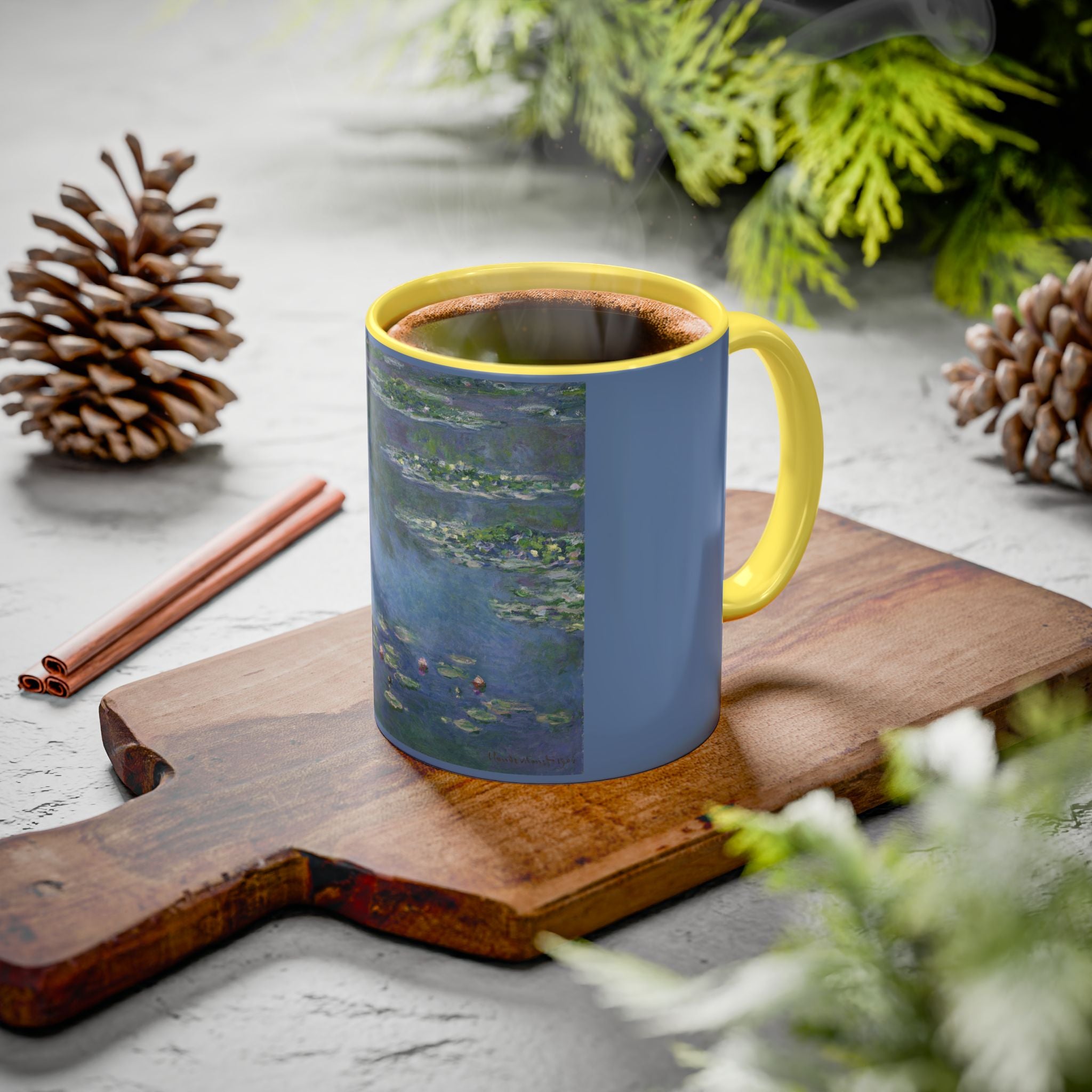 Mugs are a kitchen essential, and when infused with a personalized touch, they transform into cherished favorites. These mugs, offered in 12 vibrant color choices, can hold up to 11oz of your preferred rejuvenating beverage and feature a colored handle and interior. The glossy finish adds an elegant accent that beautifully complements the high-fidelity artwork print, making them not only a delightful addition to your kitchen but also a fantastic choice for thoughtful gifts.
