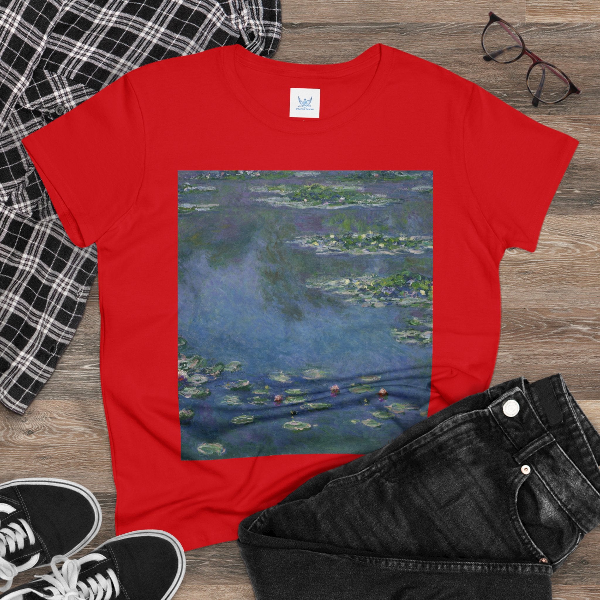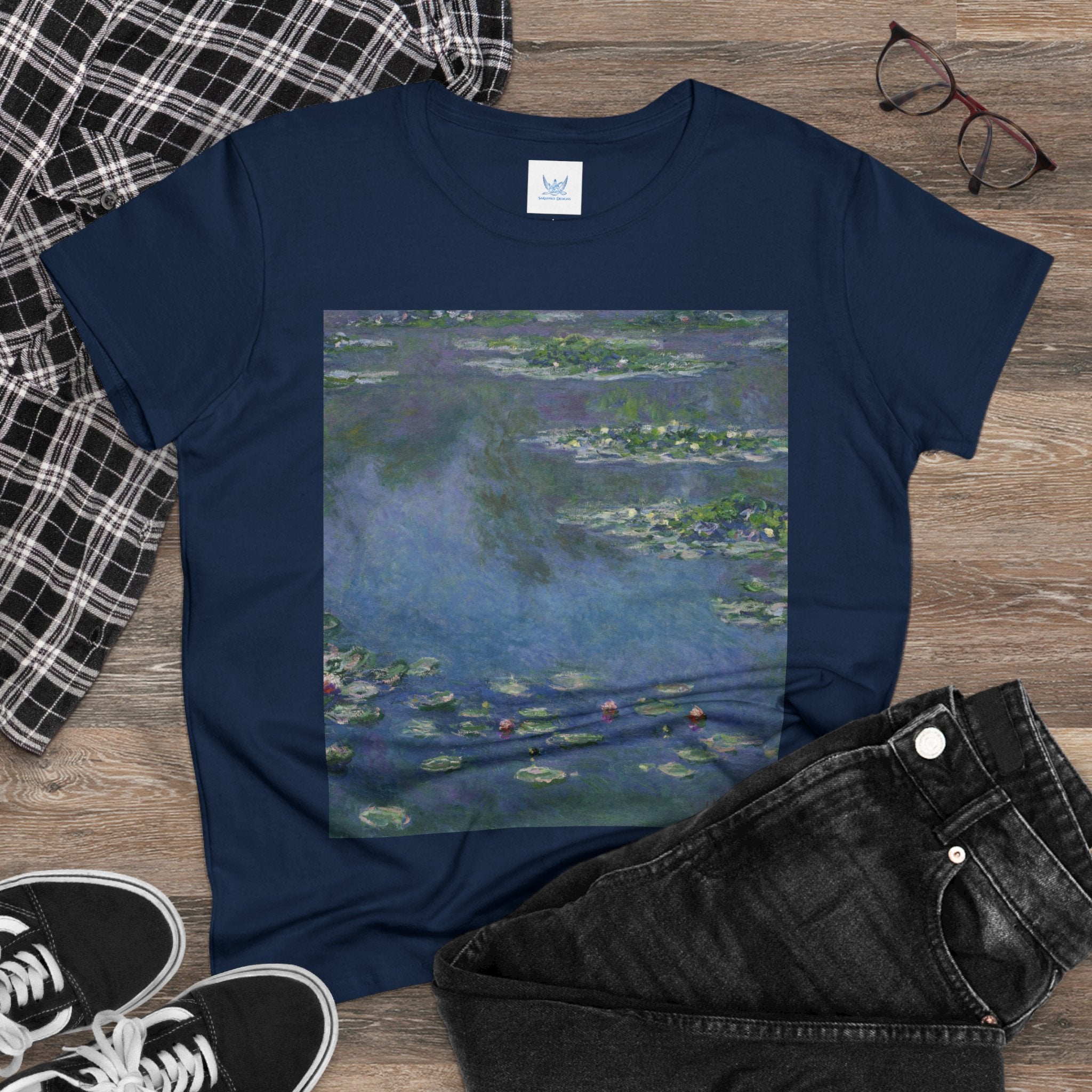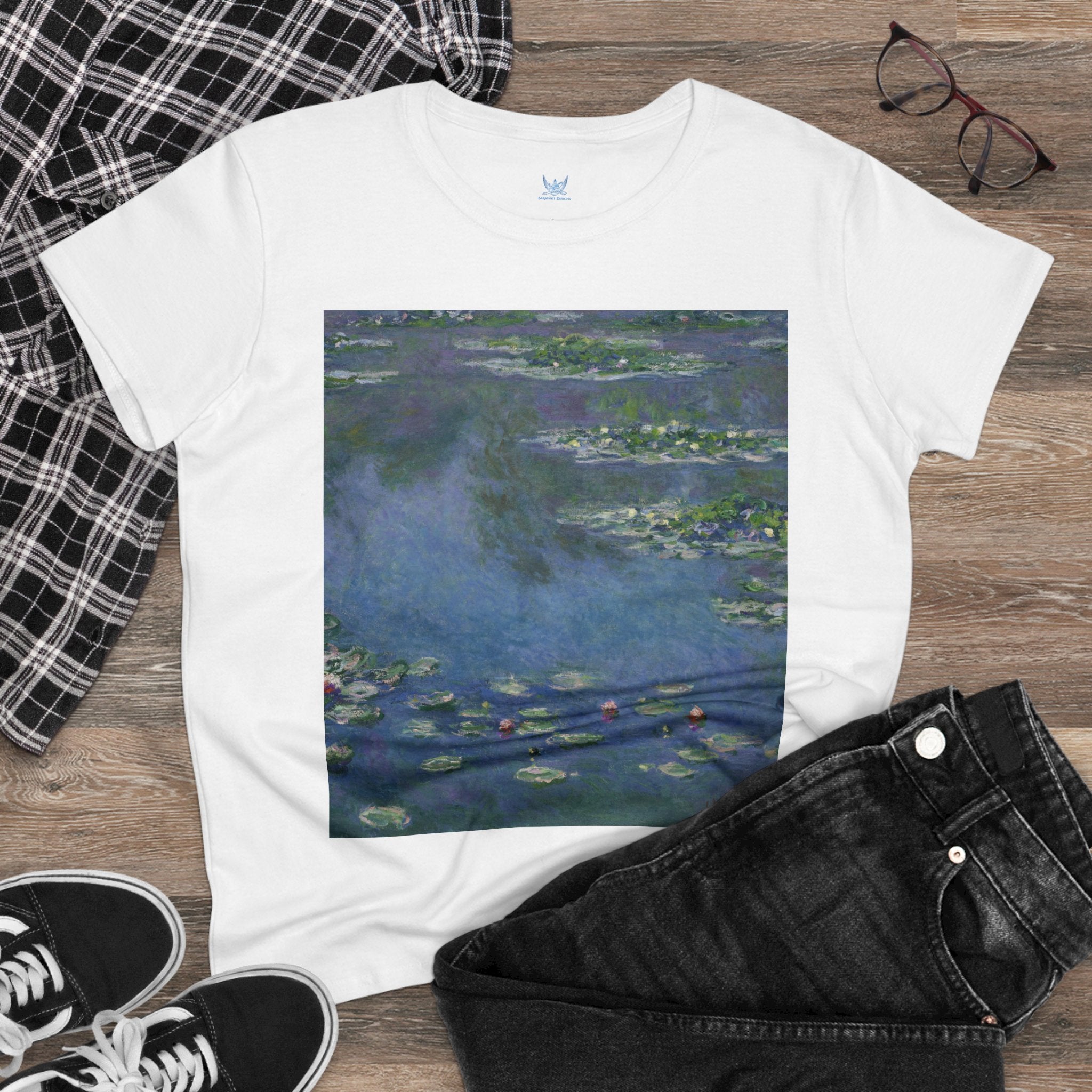 Artwork designed and digitally remastered by Sarasvati Designs. "Water Lilies" (1906) by the renowned French Impressionist artist Claude Monet is a part of his iconic series of water landscape paintings produced at his home in Giverny. These late masterpieces are a departure from the diverse contemporary subjects that Monet painted from the 1870s through the 1890s, as he embraced a single, timeless motif—water lilies. The central focus of these remarkable artworks was Monet's cherished flower garden at his Giverny residence. This garden featured a serene water garden adorned with water lilies and a smaller pond connected by a Japanese footbridge. Claude Monet's "Water Lilies" series is a testament to his profound connection with the natural world and his quest to capture the ever-changing qualities of light, color, and the ephemeral nature of time.