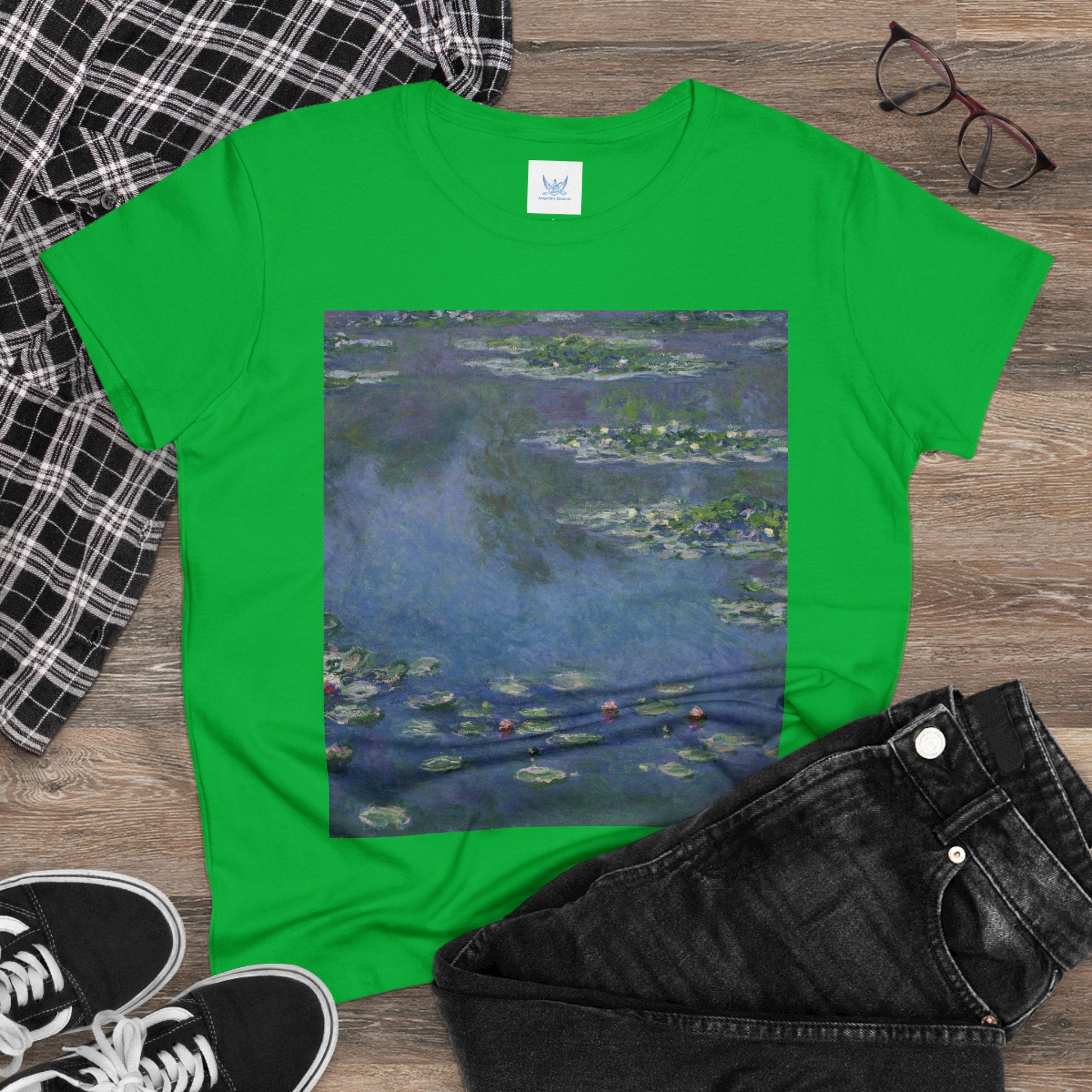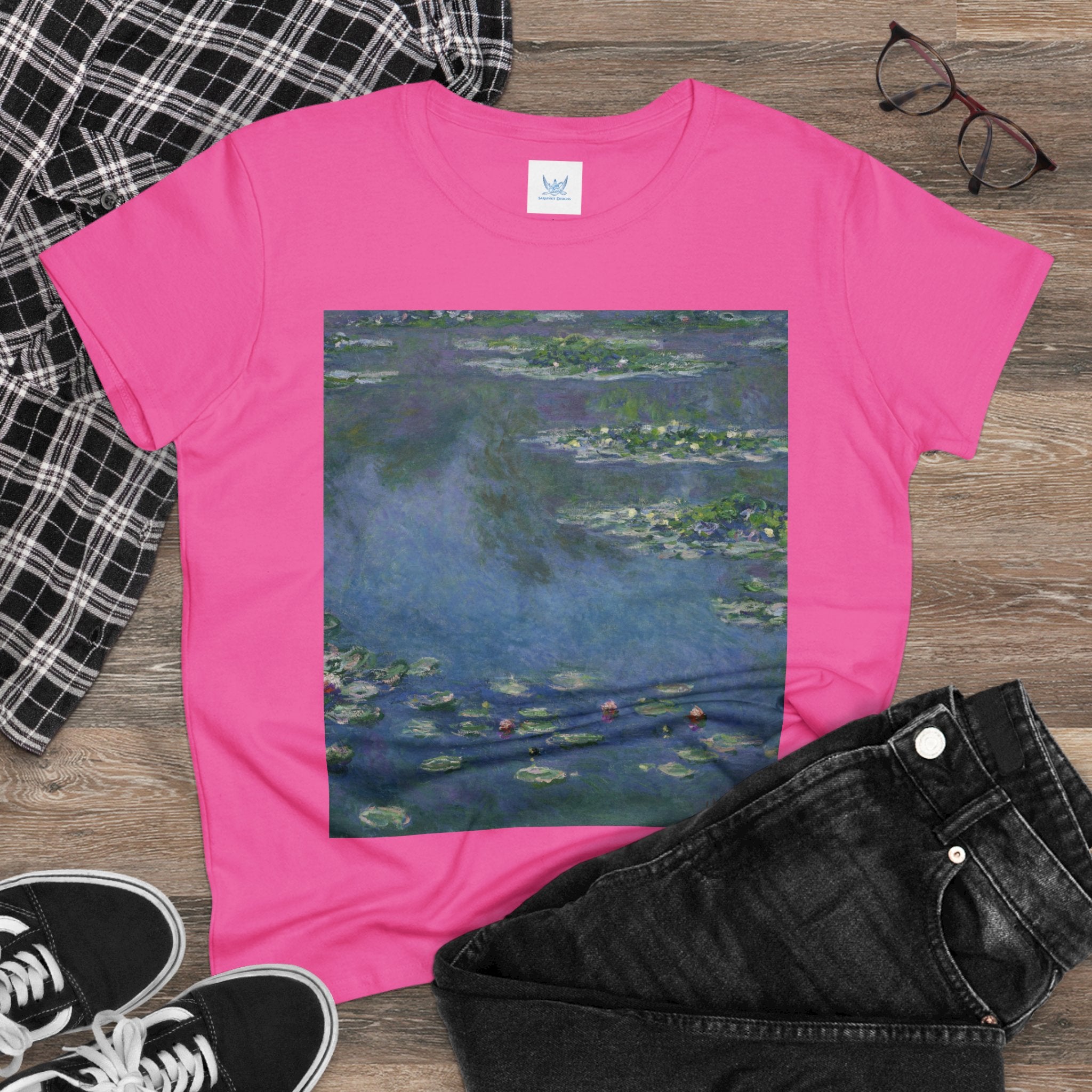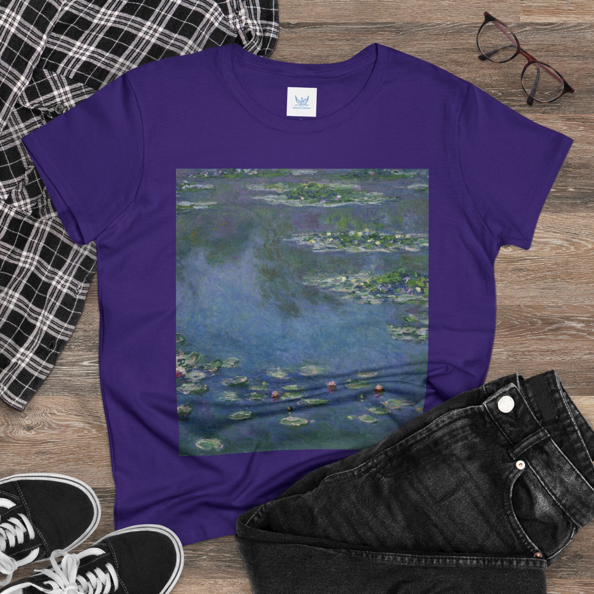 Artwork designed and digitally remastered by Sarasvati Designs. "Water Lilies" (1906) by the renowned French Impressionist artist Claude Monet is a part of his iconic series of water landscape paintings produced at his home in Giverny. These late masterpieces are a departure from the diverse contemporary subjects that Monet painted from the 1870s through the 1890s, as he embraced a single, timeless motif—water lilies. The central focus of these remarkable artworks was Monet's cherished flower garden at his Giverny residence. This garden featured a serene water garden adorned with water lilies and a smaller pond connected by a Japanese footbridge. Claude Monet's "Water Lilies" series is a testament to his profound connection with the natural world and his quest to capture the ever-changing qualities of light, color, and the ephemeral nature of time.