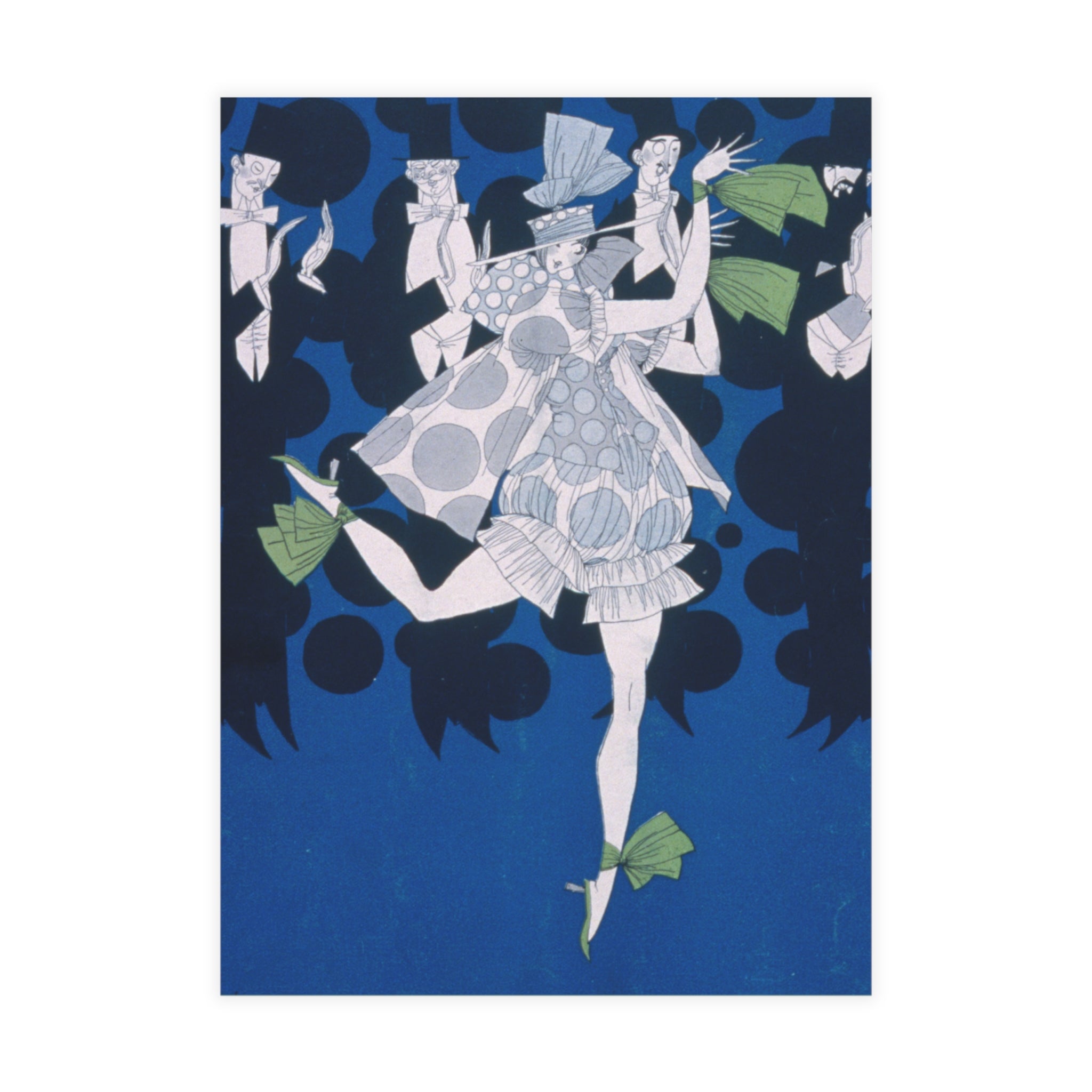 “Where is my boy to-night” by Ralph Barton, an American artist best known for his cartoons and caricatures of actors and other celebrities, depicts a woman in costume dancing and four men, wearing top hats and tails, applauding. This artwork appeared on the cover of Puck Magazine in April 1917.