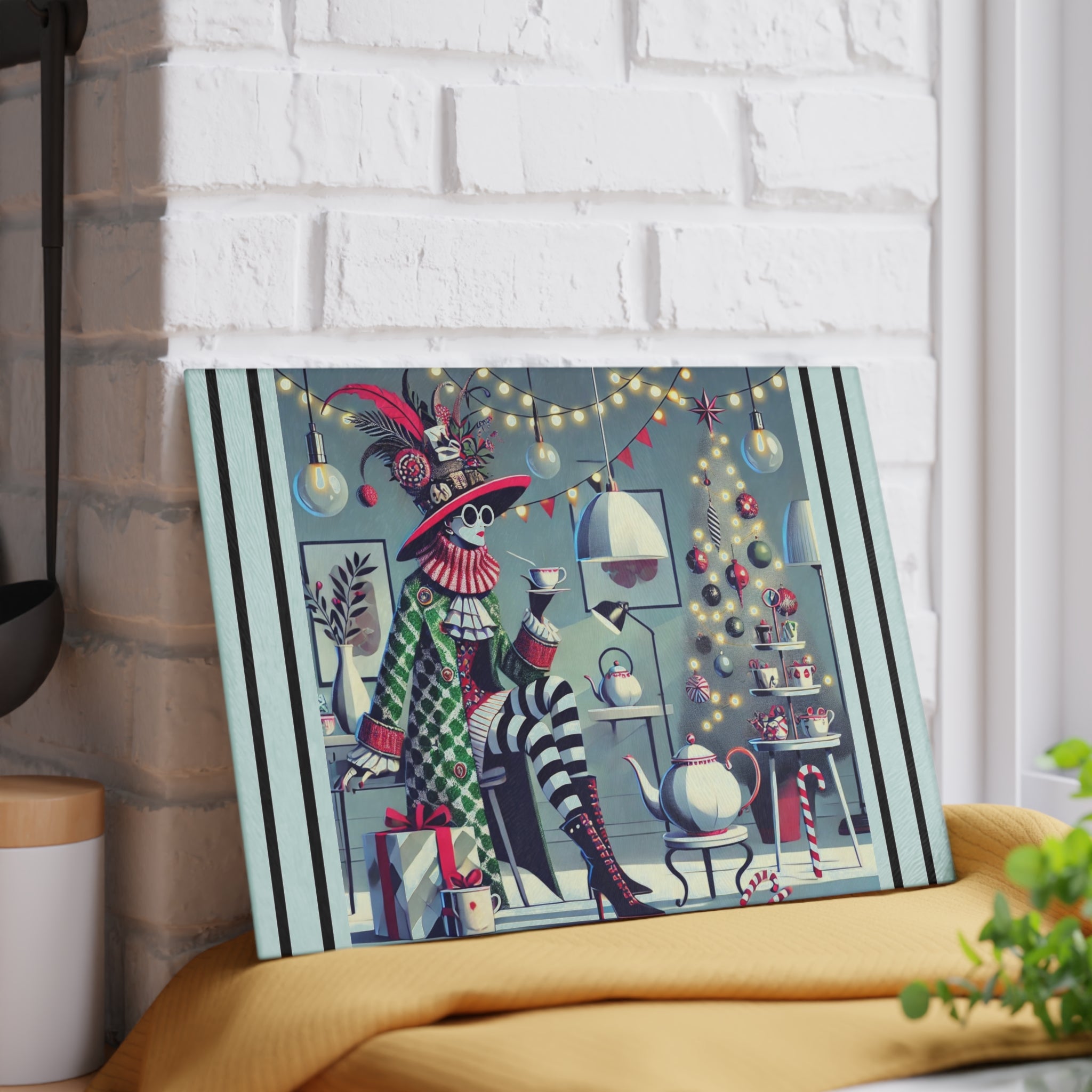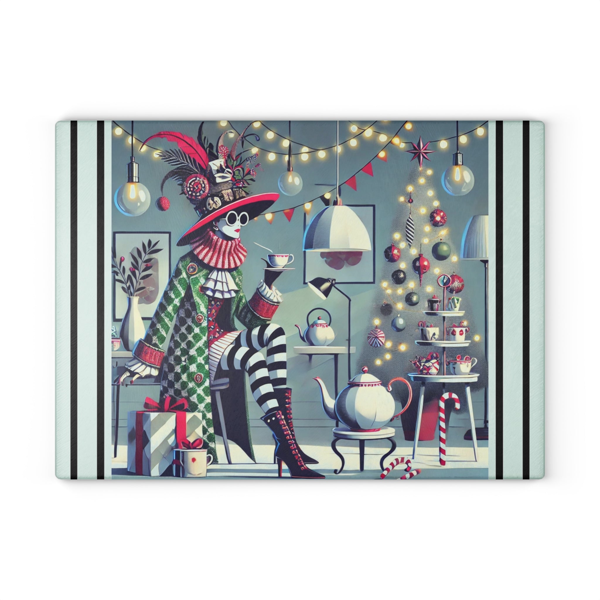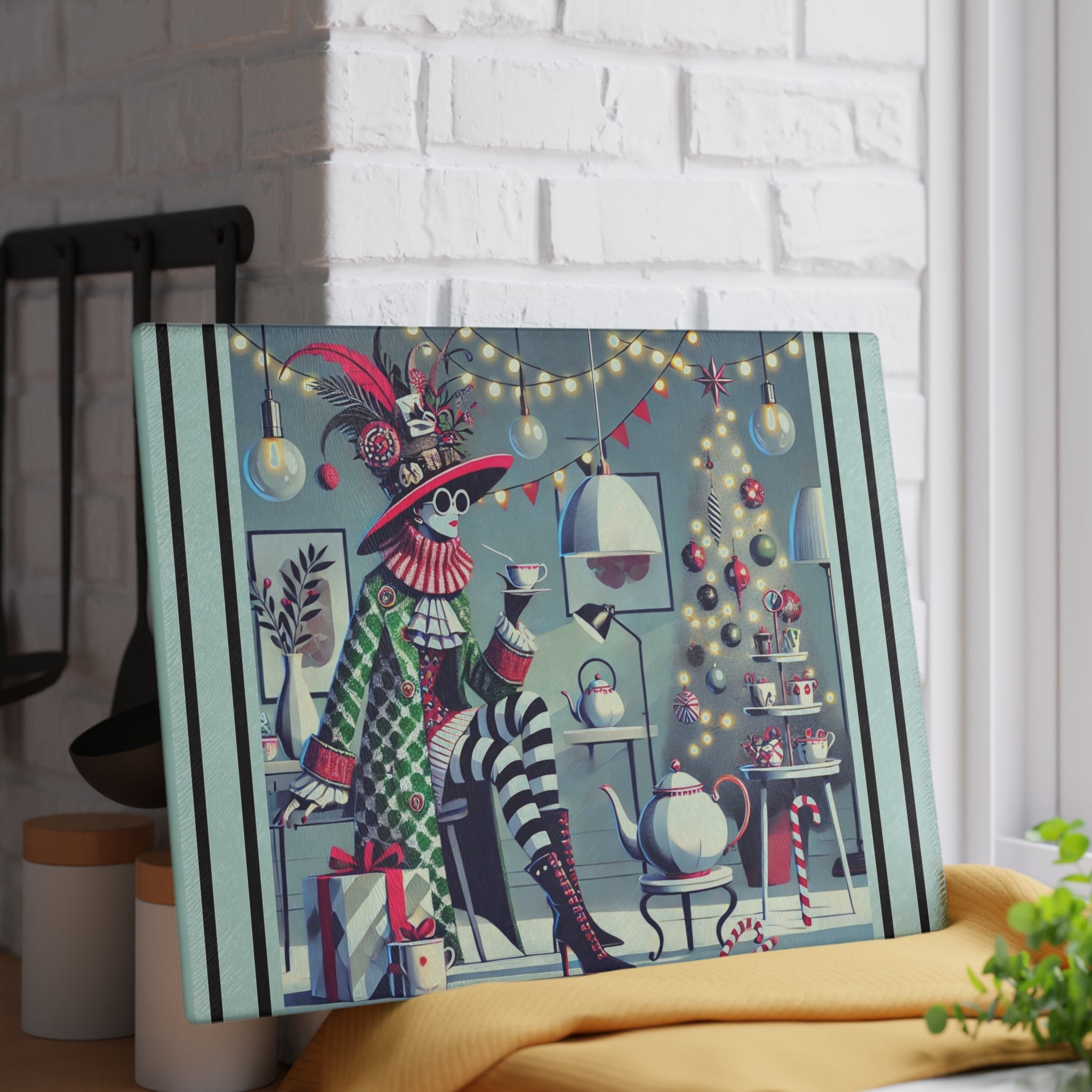 Every glance at this board brings holiday spirit to life—ornaments shimmering on the Christmas tree, candy canes and ribbons accenting the décor, and a glowing tea set radiating warmth and festivity. With its durable construction and radiant design, this cutting board is more than a kitchen tool—it’s a seasonal centerpiece ready to inspire joyful gatherings.