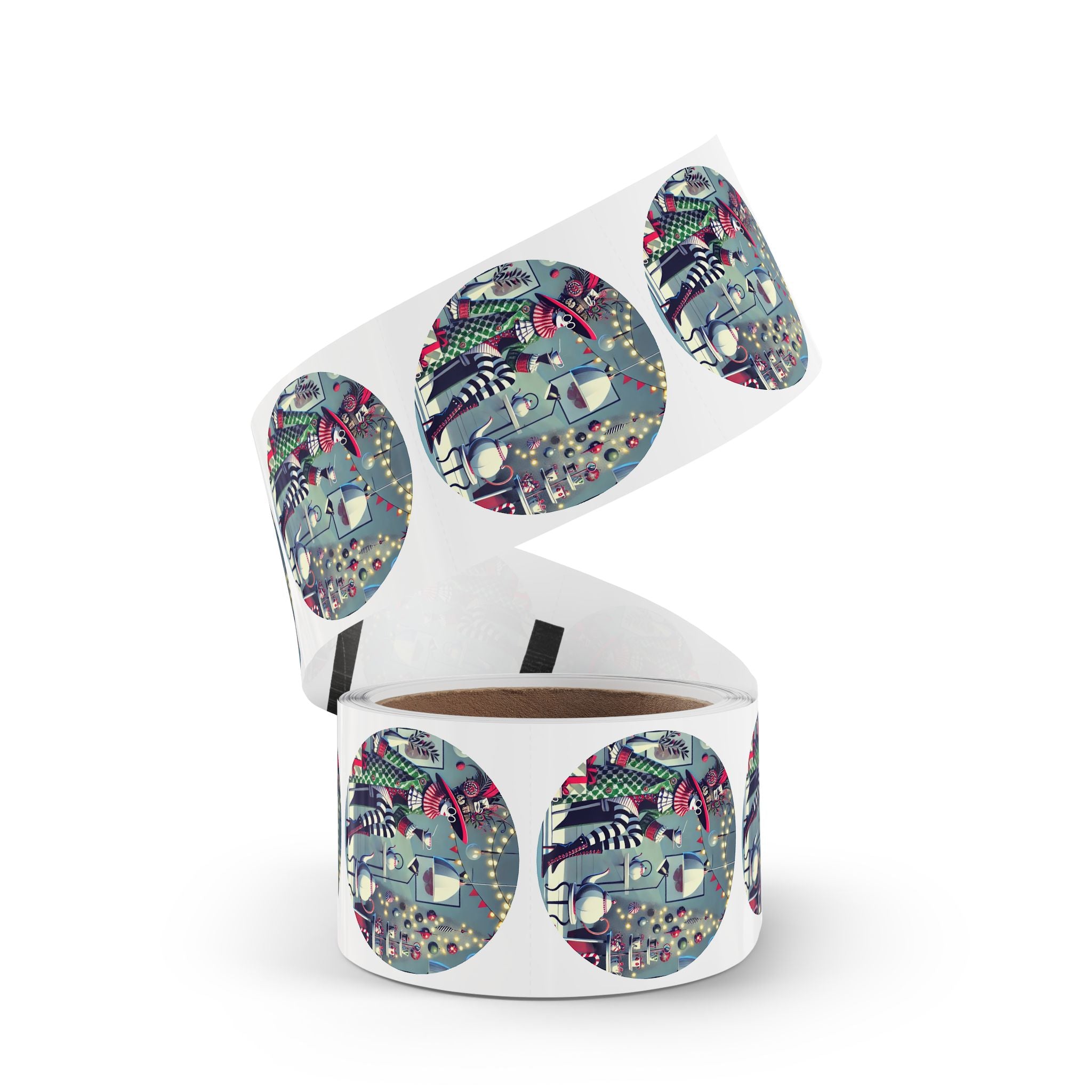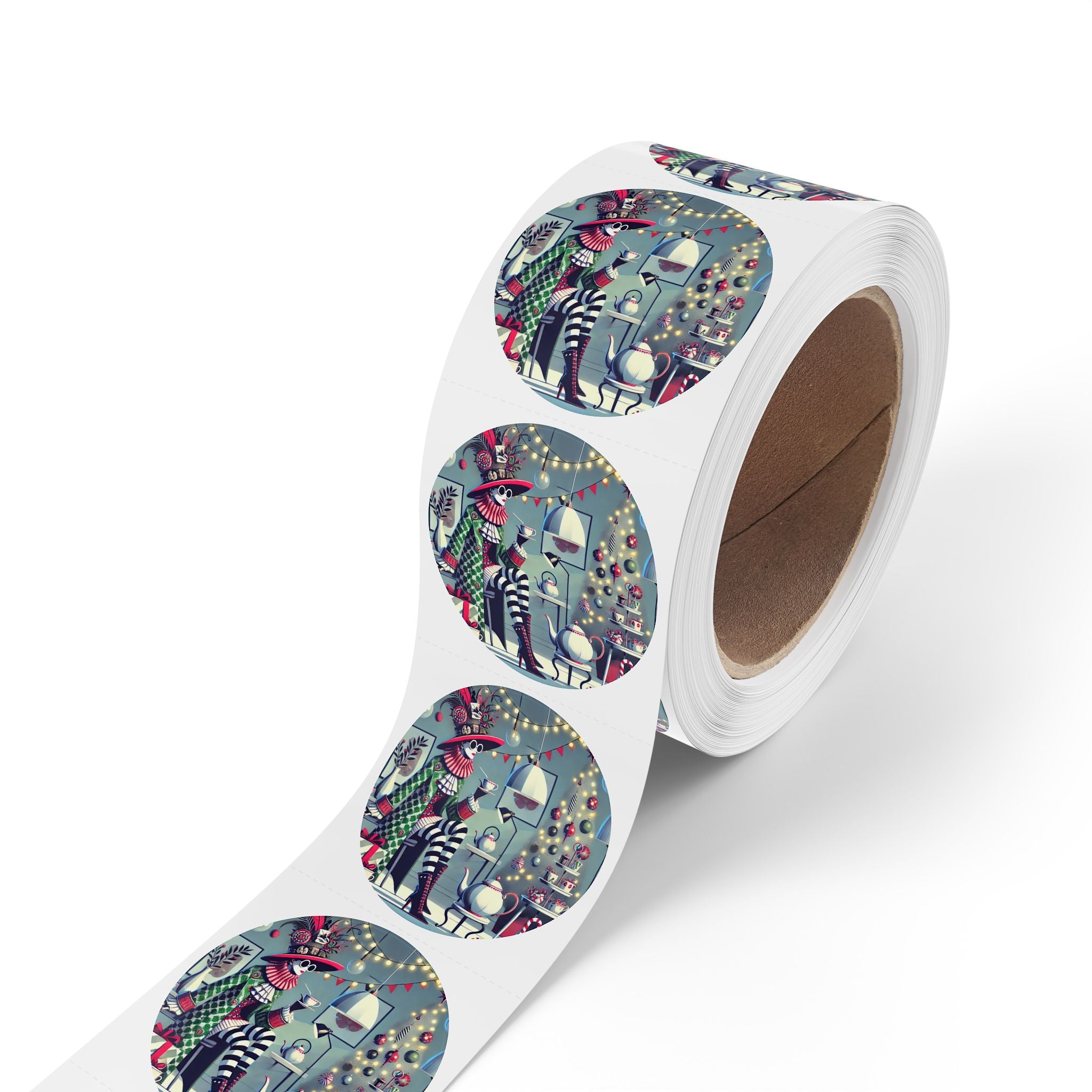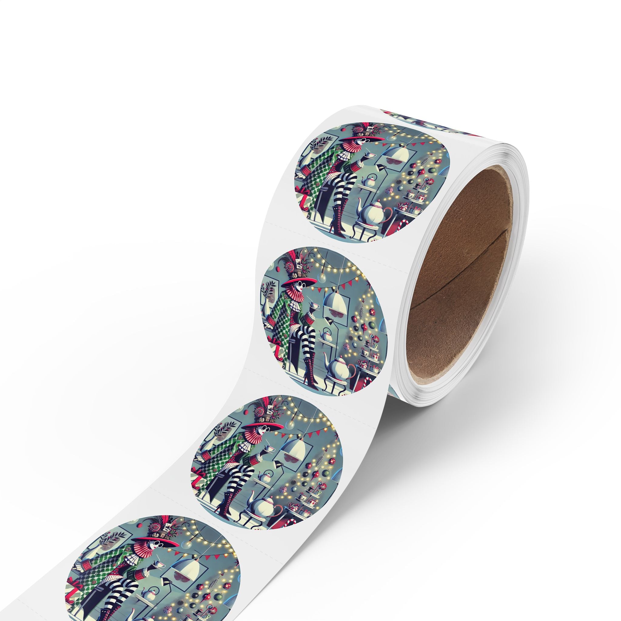 Add festive flair to gifts, packaging, and seasonal projects with these whimsical round sticker label rolls. Crafted from BOPP material, they’re designed for extra durability against scratches, high temperatures, water, and sunlight—ensuring your designs stay vibrant and intact. With a glossy finish for stunning looks that last, they’re available in 1" × 1" and 2" × 2" sizes, and come in rolls of 50, 100, or 250 pieces to suit everything from small crafts to large holiday gatherings.