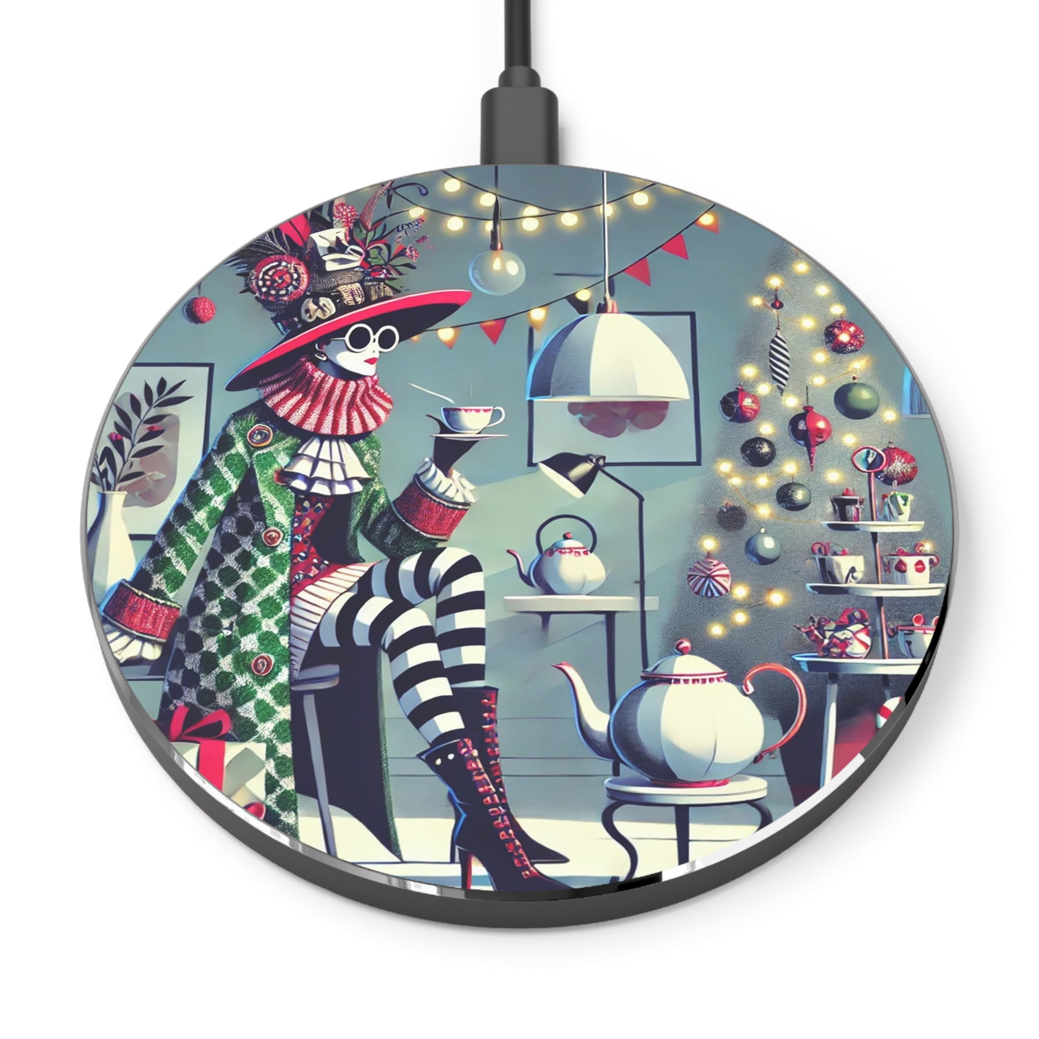 Every glance at the charger adds festive warmth to your space—ornaments shimmering on the Christmas tree, candy canes and ribbons accenting the décor, and a glowing tea set illuminating the scene with cheer. Practical, stylish, and enchanting, this wireless charger doesn’t just power your phone—it powers your holiday spirit.