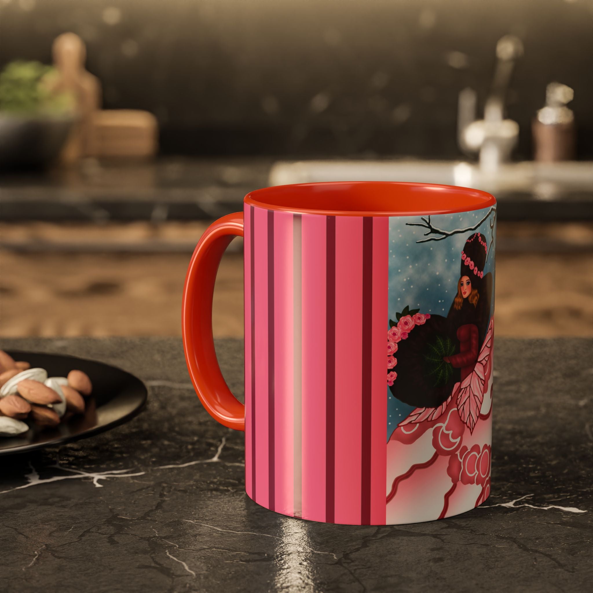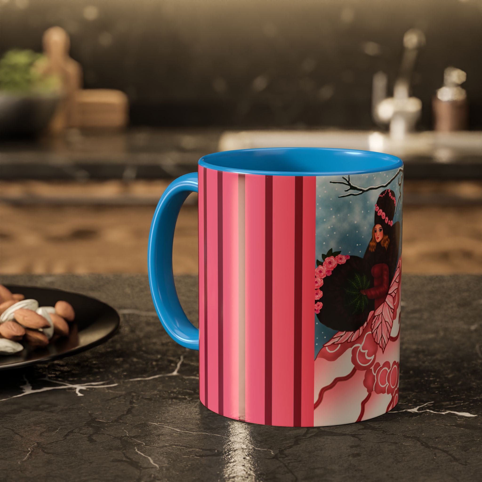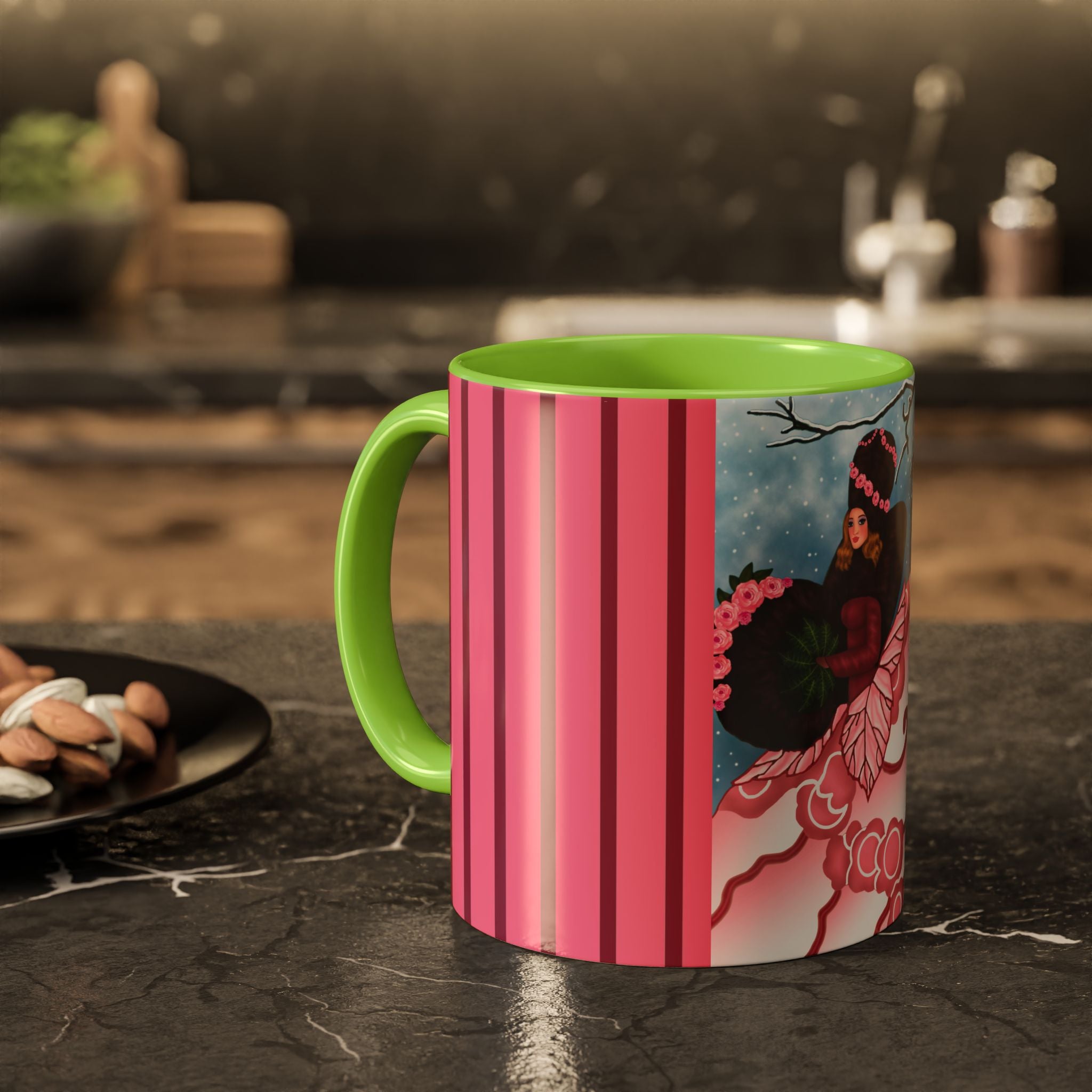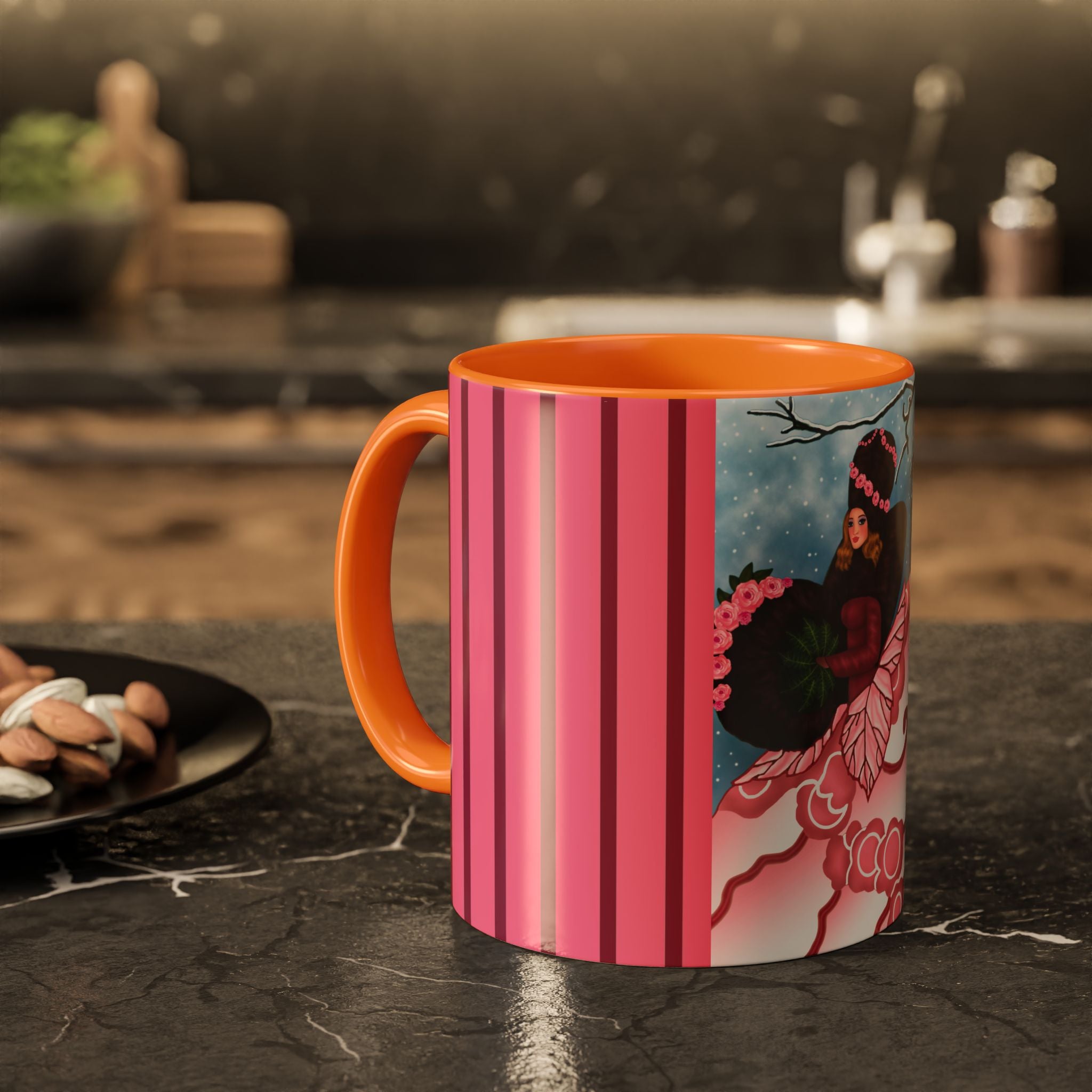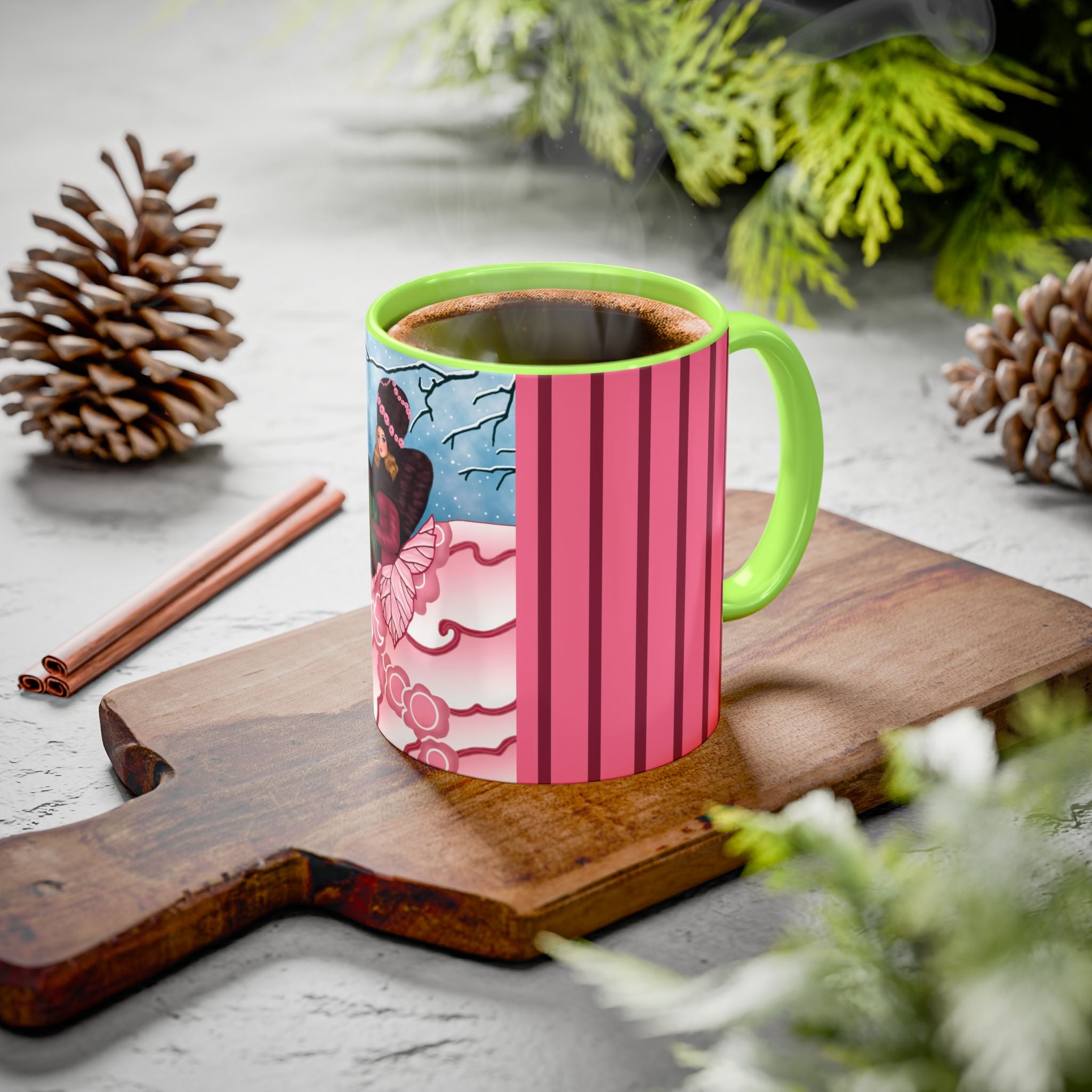 Mugs are a staple in every kitchen, and this one is no exception—except it comes alive with a story all its own. Available in 12 vibrant color options, these mugs hold 11oz or 15oz of your favorite hot or cold beverages, making them perfect for cozy mornings or festive gatherings. Each piece is crafted with a glossy finish that elevates both durability and design, while the colored handle and interior add a stylish touch that enhances the striking artwork print.