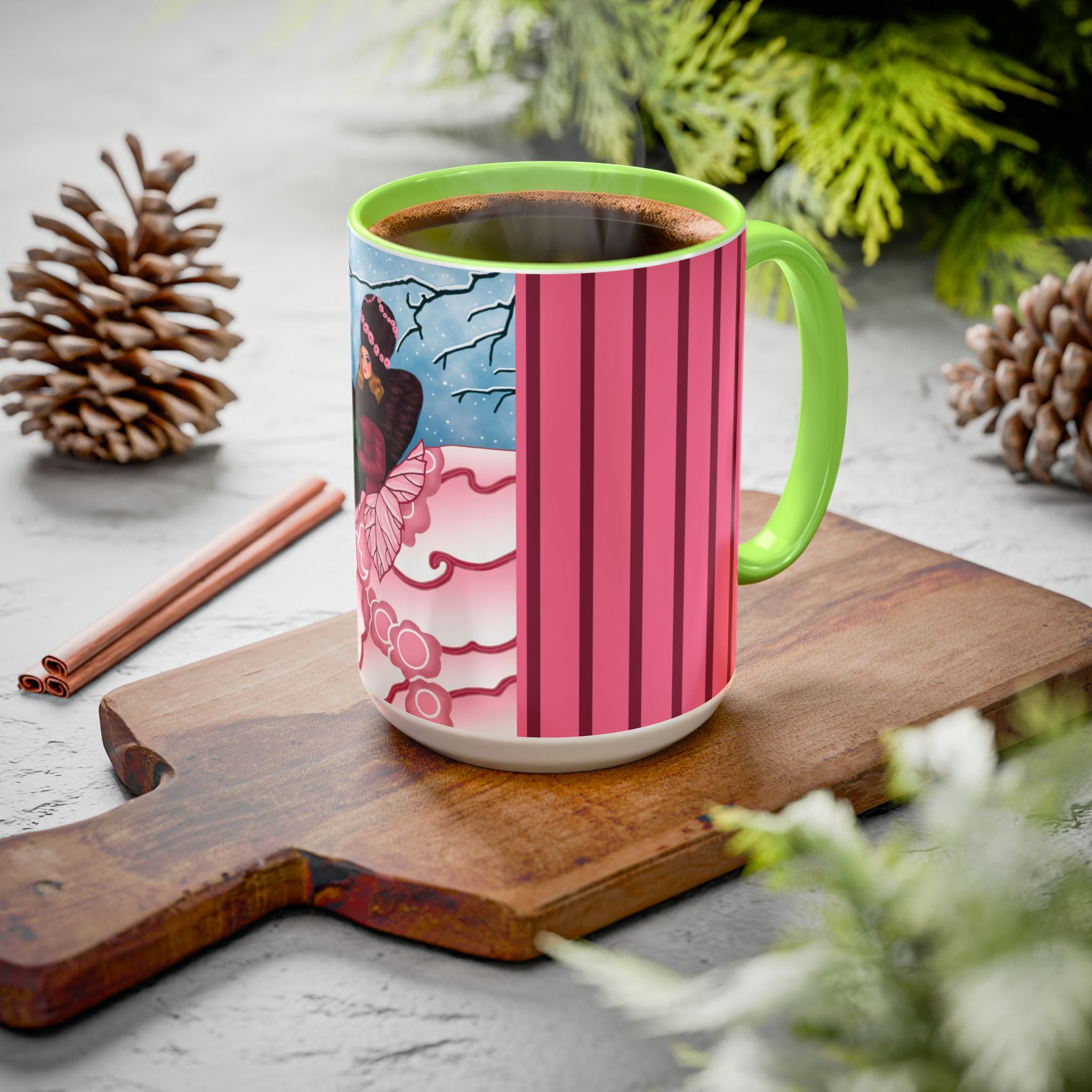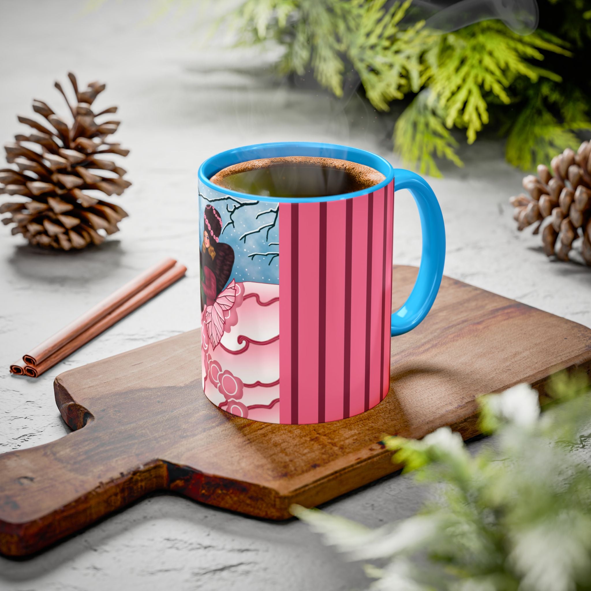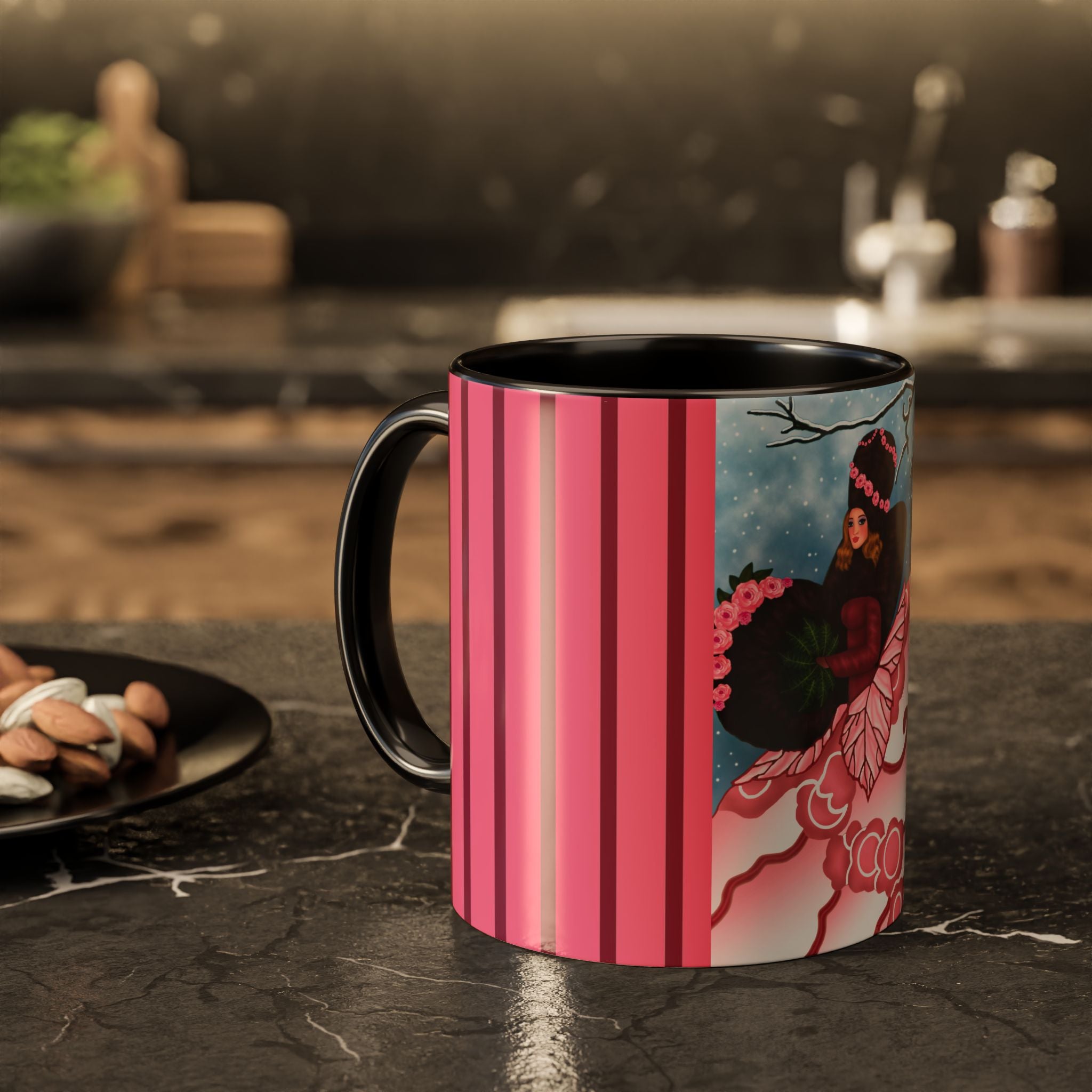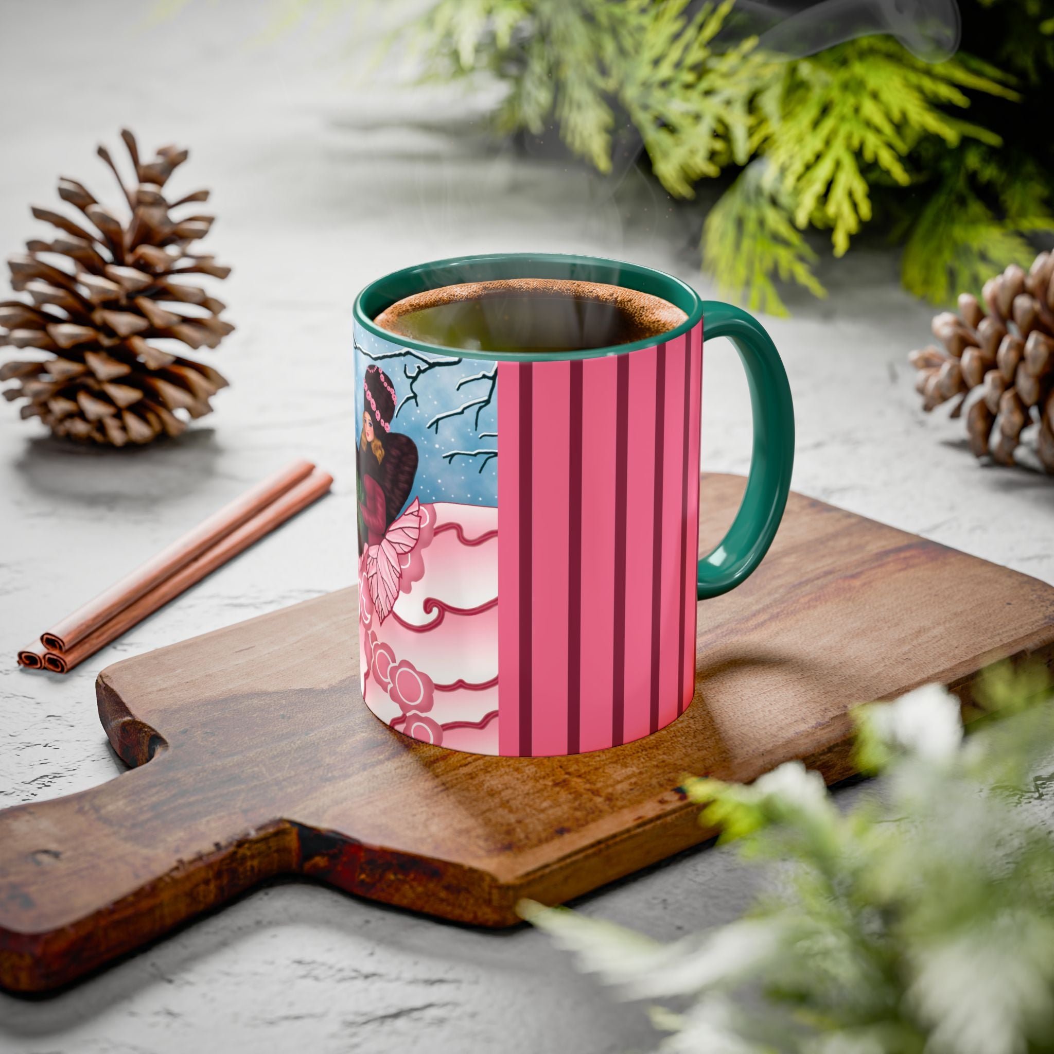 Mugs are a staple in every kitchen, and this one is no exception—except it comes alive with a story all its own. Available in 12 vibrant color options, these mugs hold 11oz or 15oz of your favorite hot or cold beverages, making them perfect for cozy mornings or festive gatherings. Each piece is crafted with a glossy finish that elevates both durability and design, while the colored handle and interior add a stylish touch that enhances the striking artwork print.