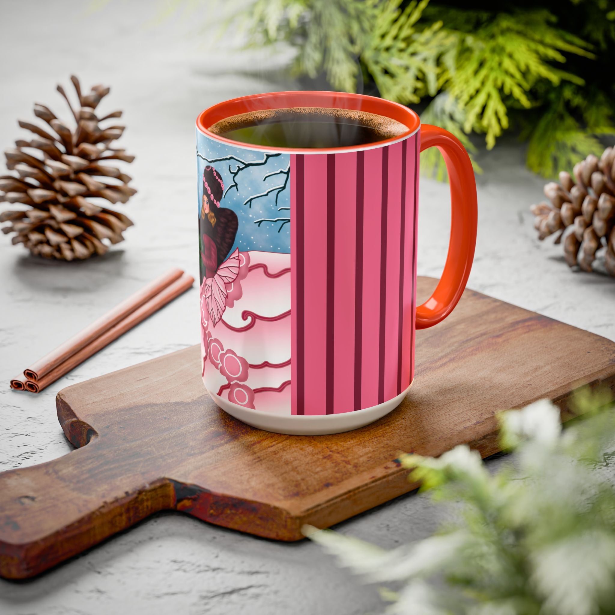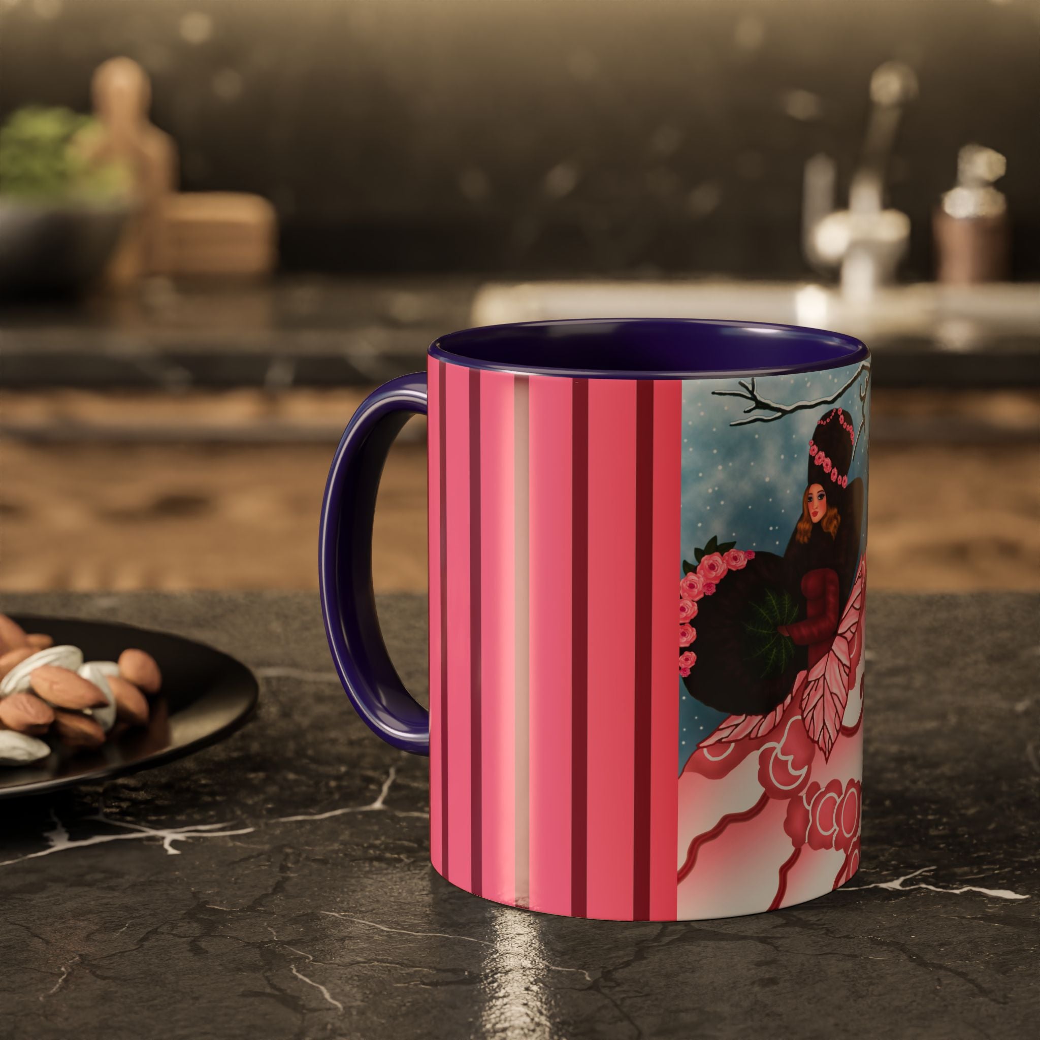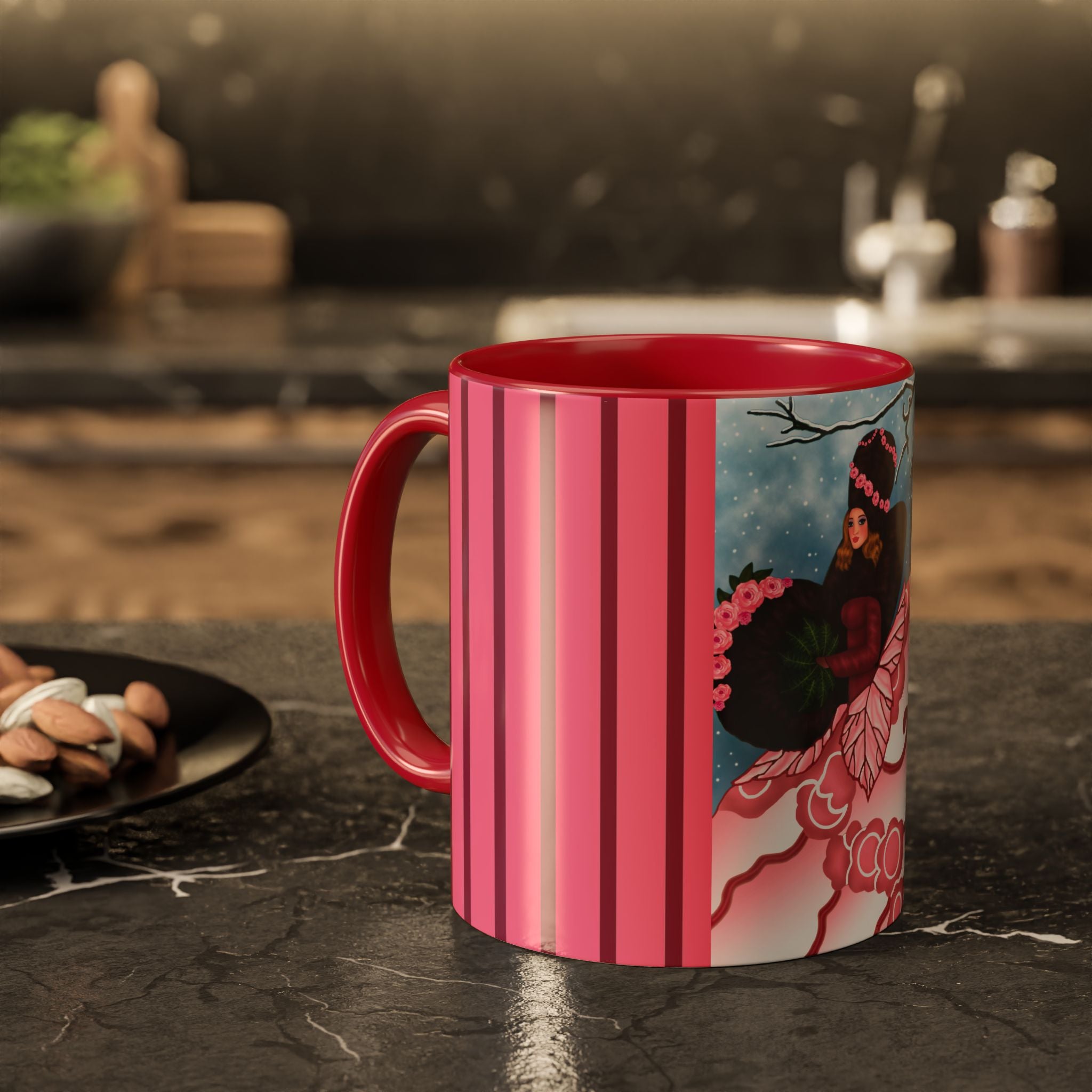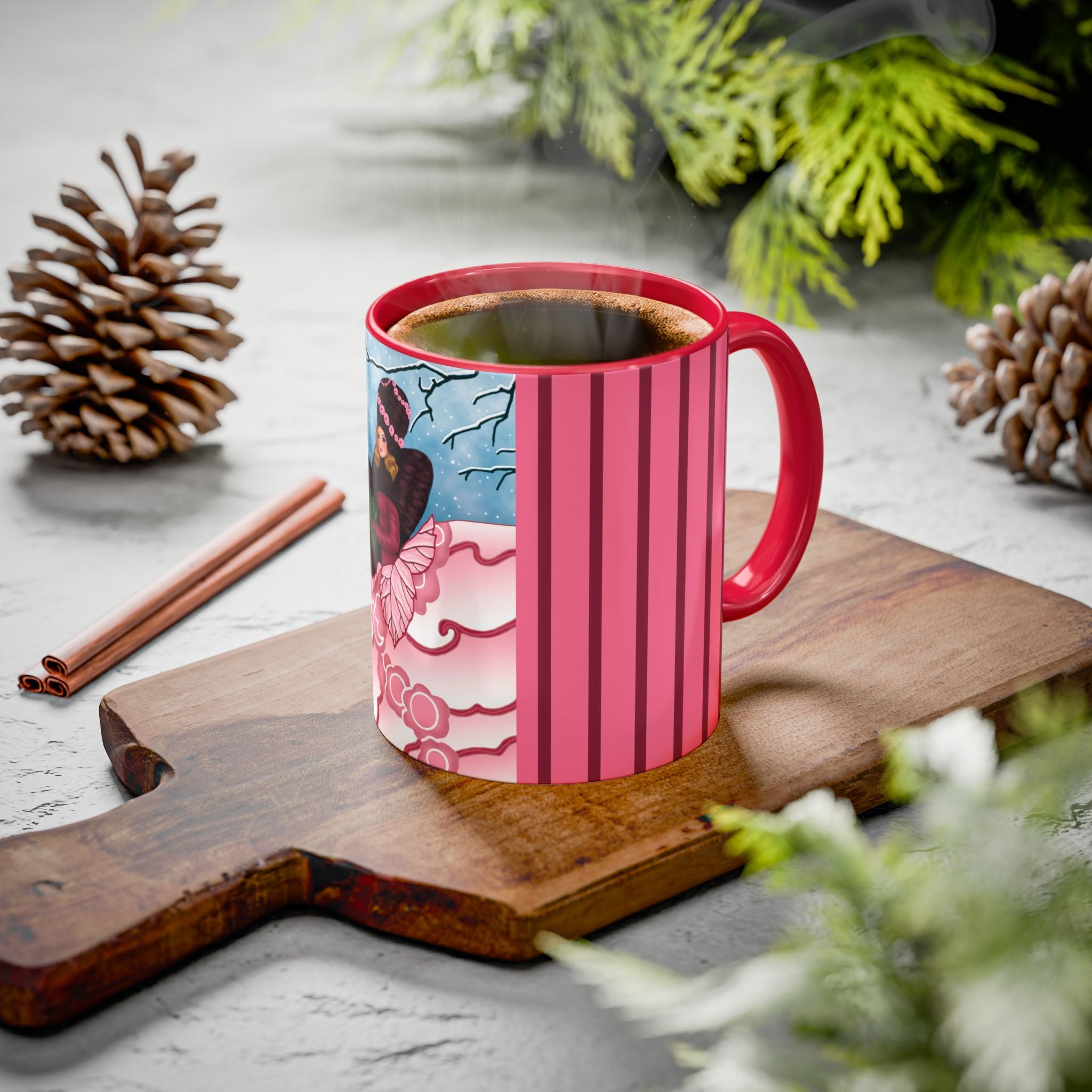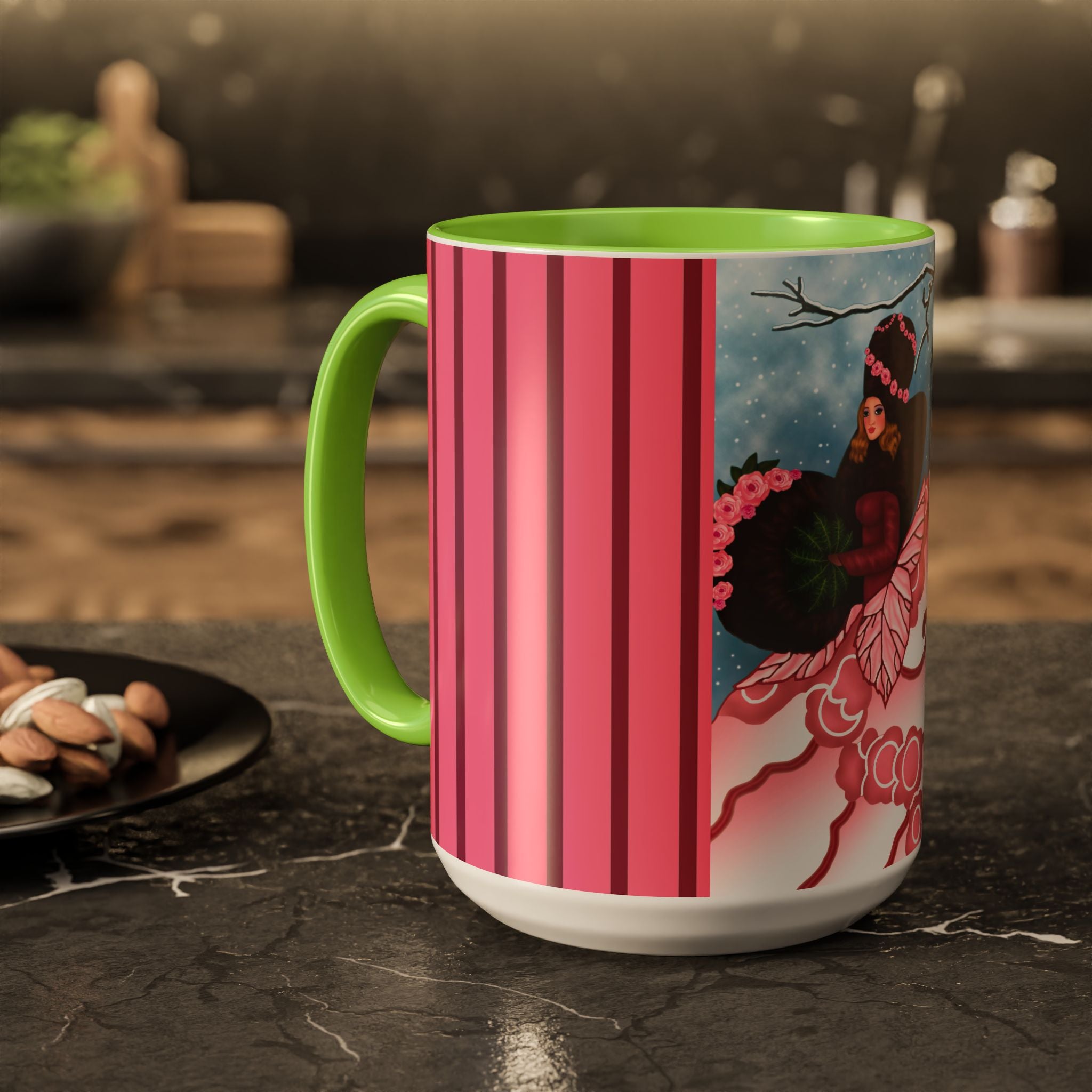 Mugs are a staple in every kitchen, and this one is no exception—except it comes alive with a story all its own. Available in 12 vibrant color options, these mugs hold 11oz or 15oz of your favorite hot or cold beverages, making them perfect for cozy mornings or festive gatherings. Each piece is crafted with a glossy finish that elevates both durability and design, while the colored handle and interior add a stylish touch that enhances the striking artwork print.