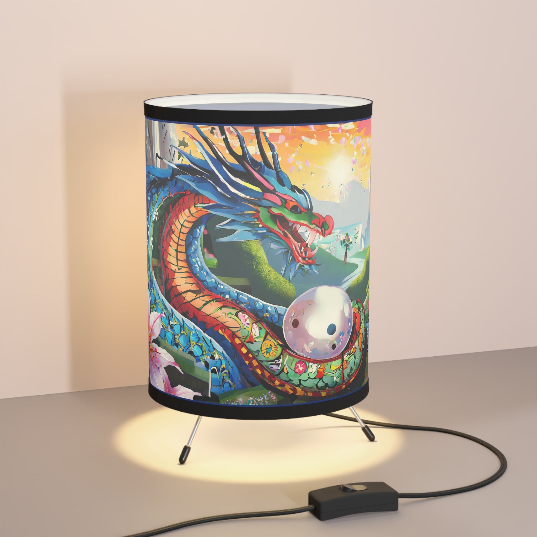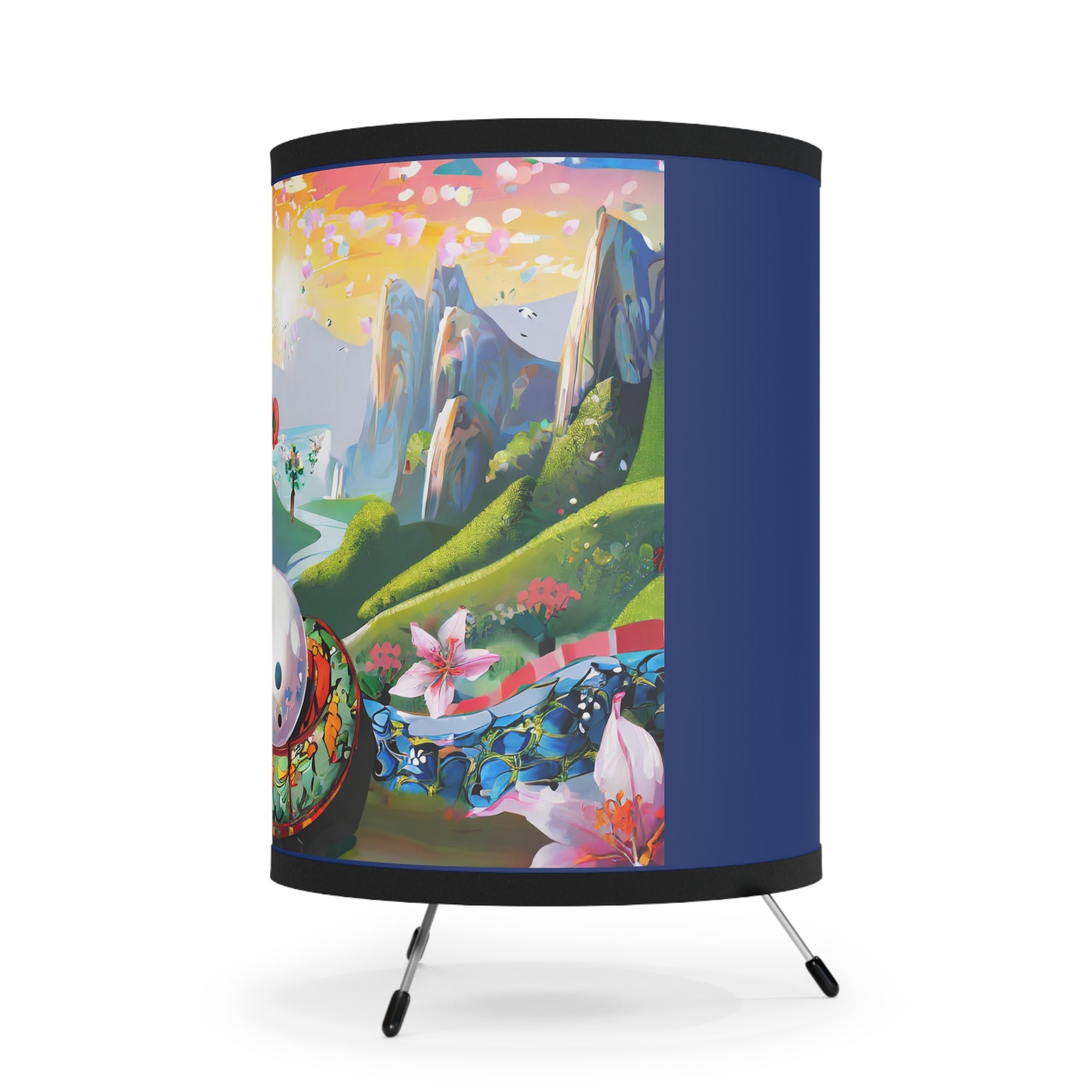 Transform your room with this epic tripod lamp! This sturdy lamp has a cool metal base, and the best part? It comes with an awesome pre-designed artwork for the shade! The high-resolution image is super vibrant, so your favorite design will light up your space in style. This lamp isn't just for lighting, it's a statement piece that lets you show off your personality. Light up your room and your imagination with this must-have lamp!
