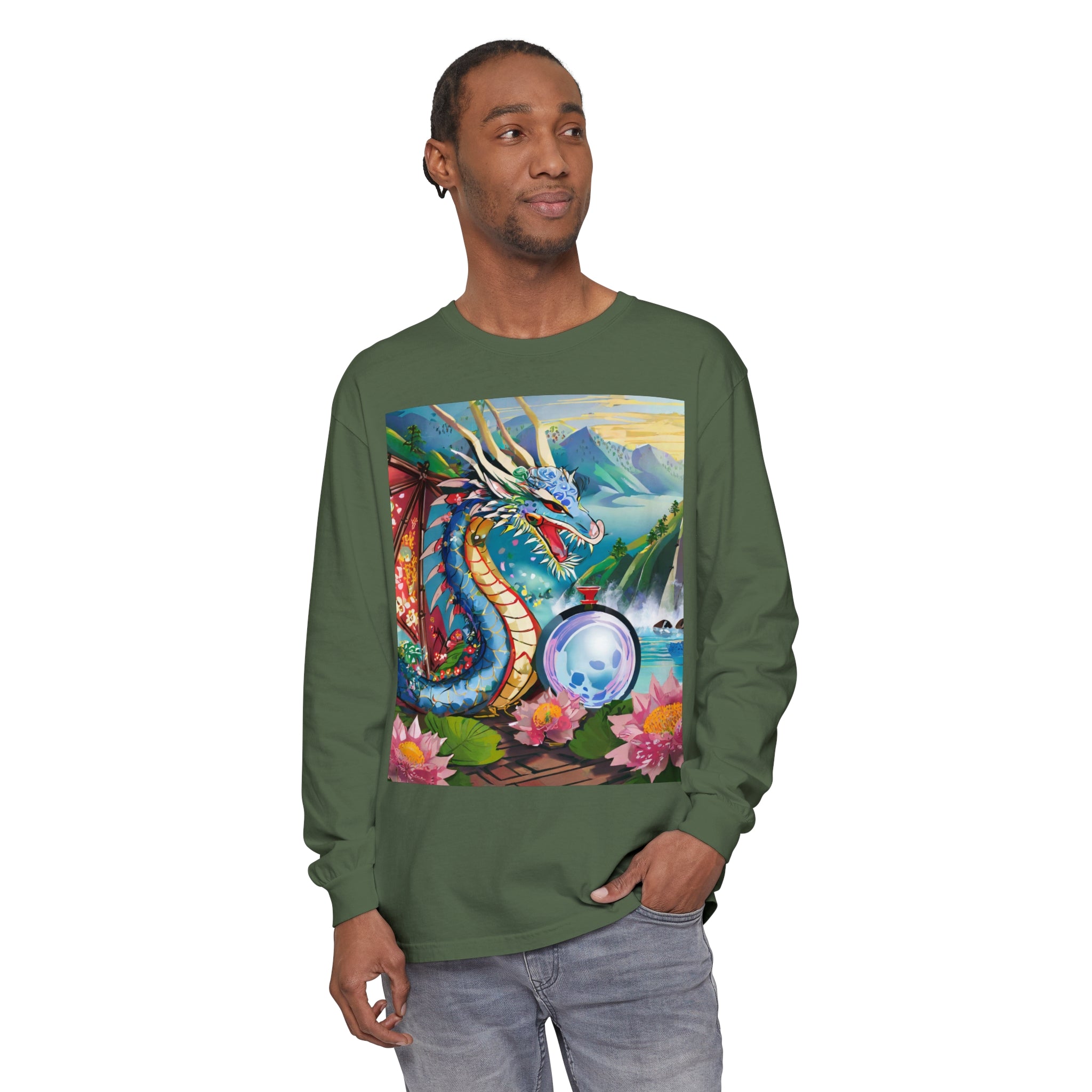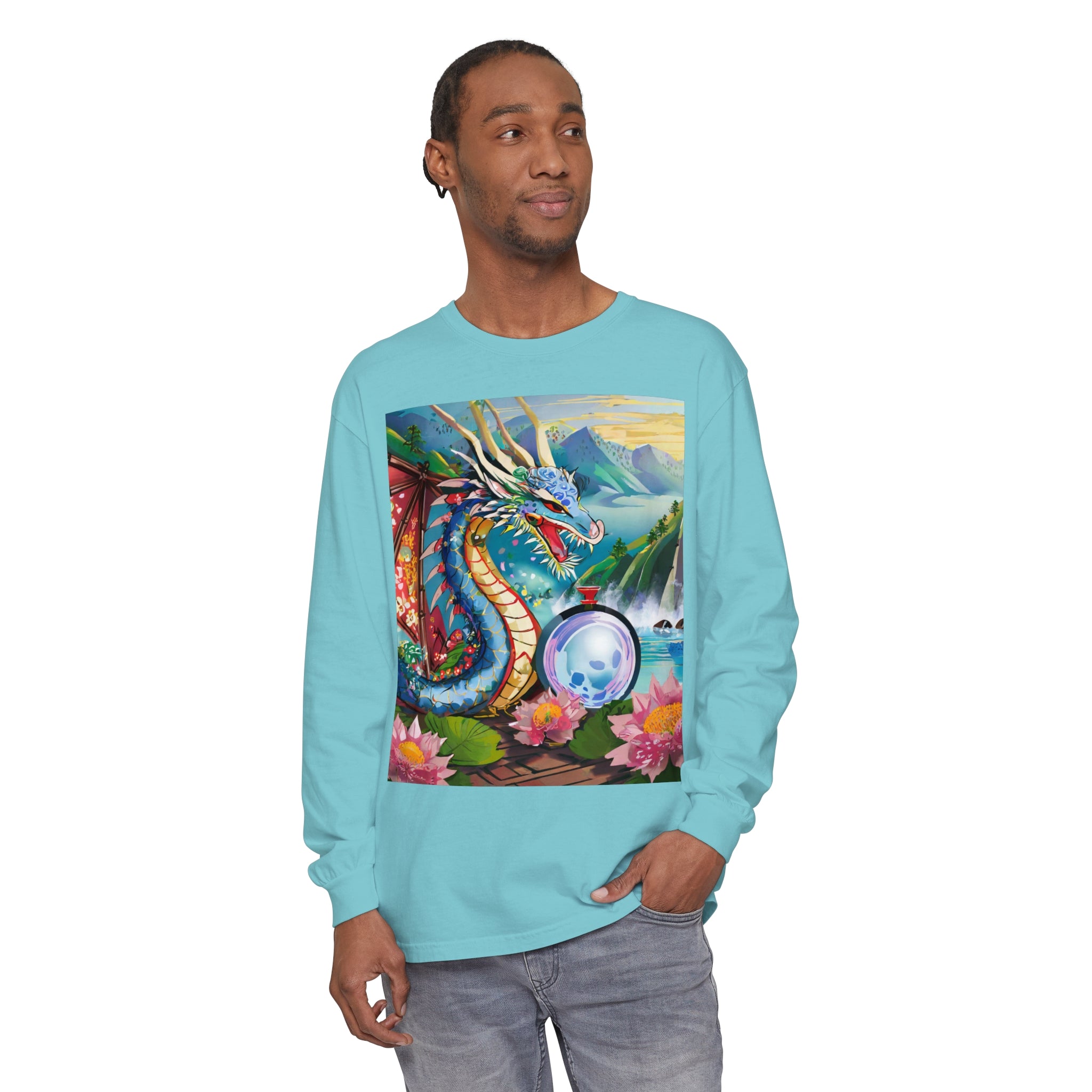 Artwork created, designed and digitally remastered by Sarasvati Designs. In "Wisdom's Guardian: Dragon's Embrace," a majestic dragon coils around a luminous pearl of wisdom, symbolizing protection, enlightenment, and the eternal cycle of knowledge.