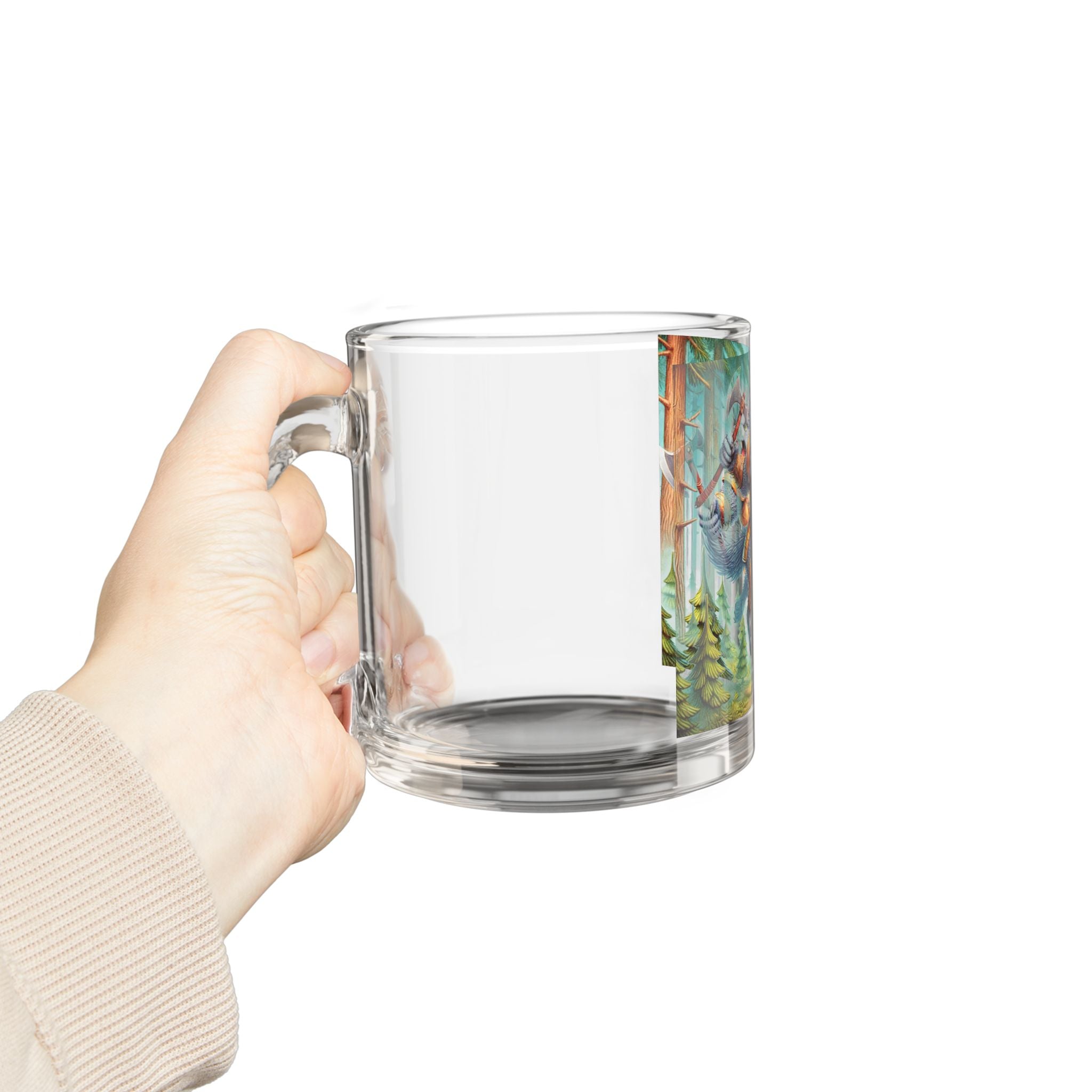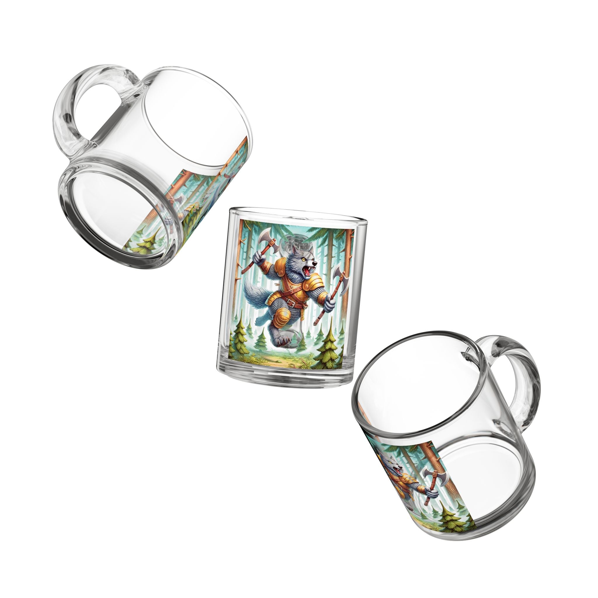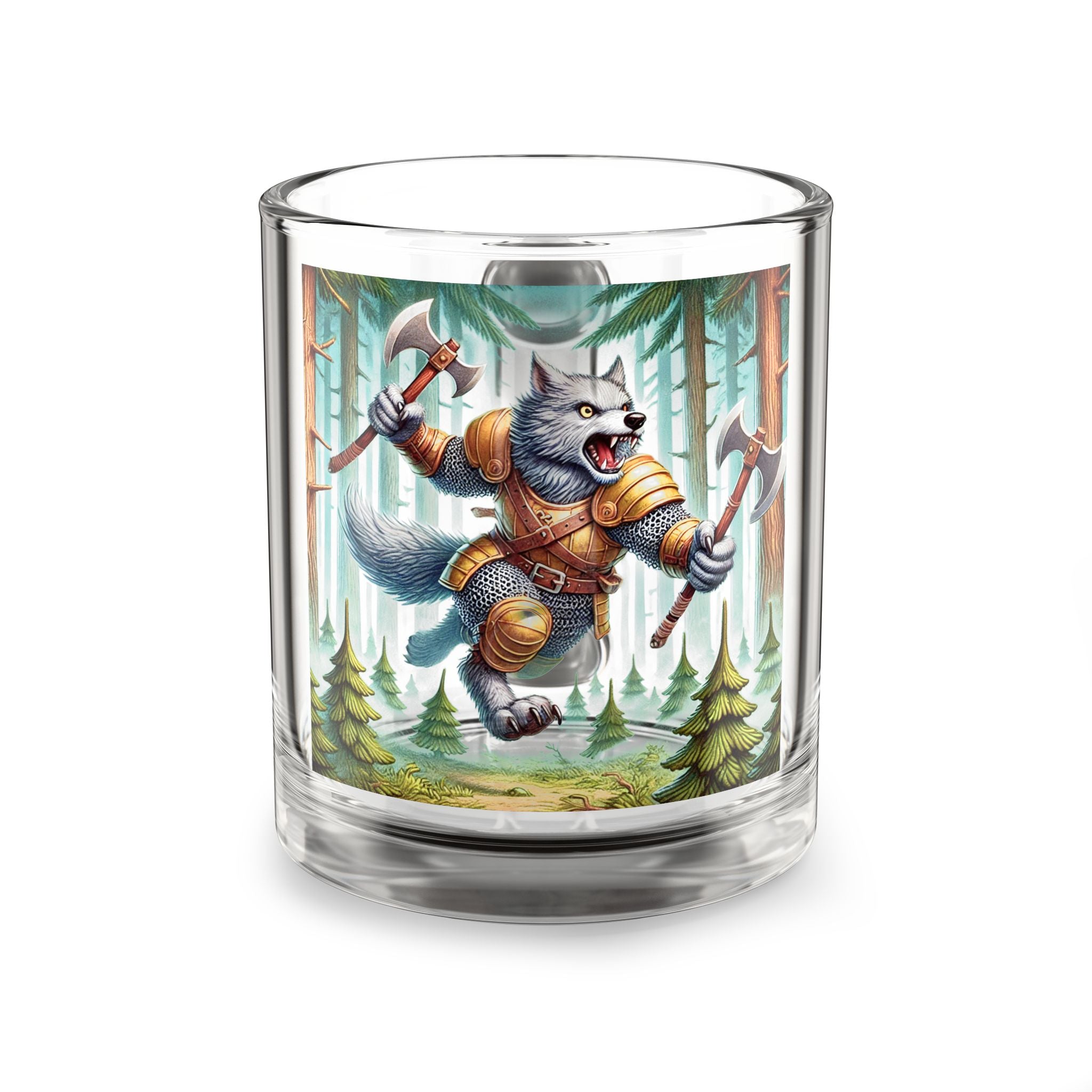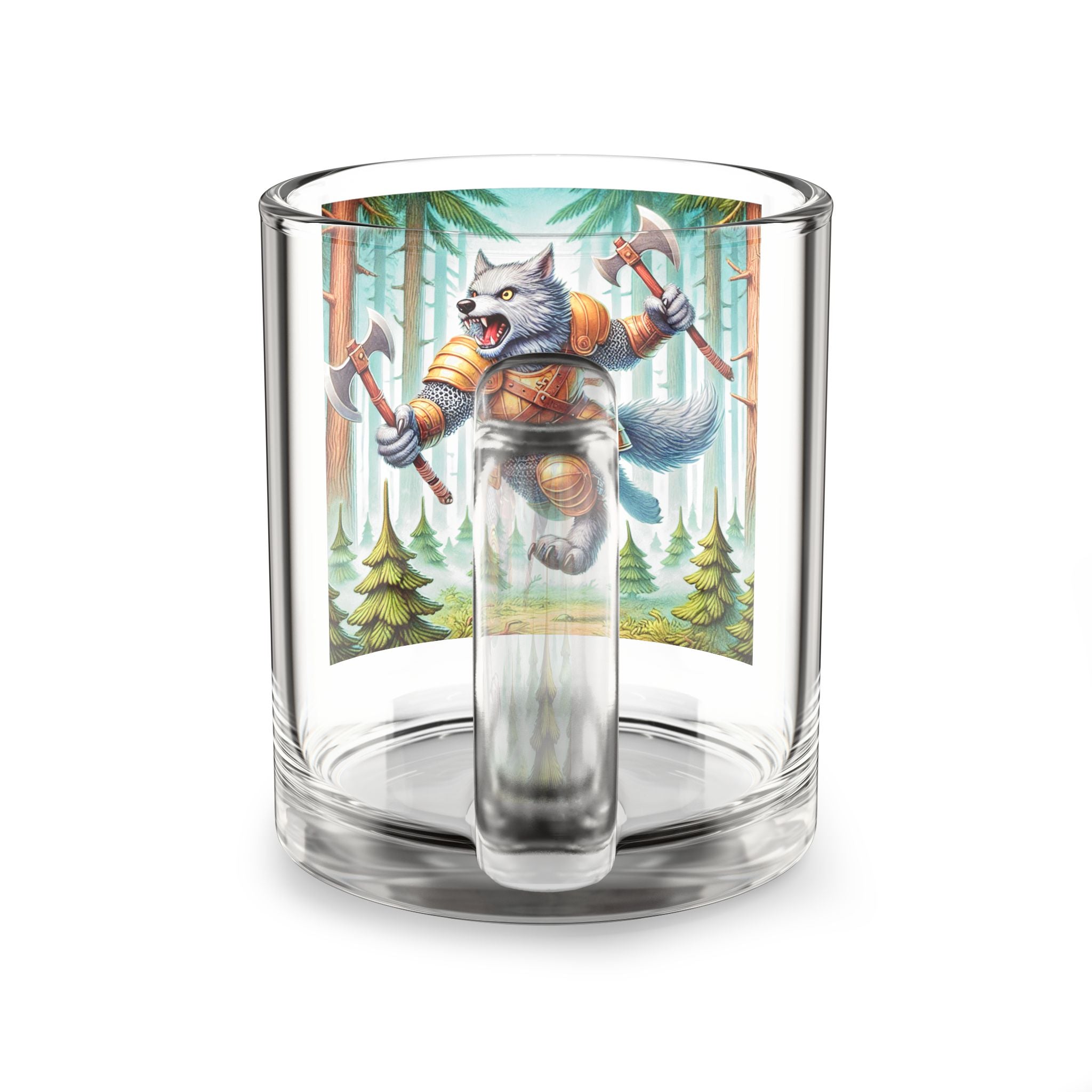 A fierce and dynamic glass mug featuring an illustration of a wolverine vanguard in a misty pine forest, embodying raw... Read more